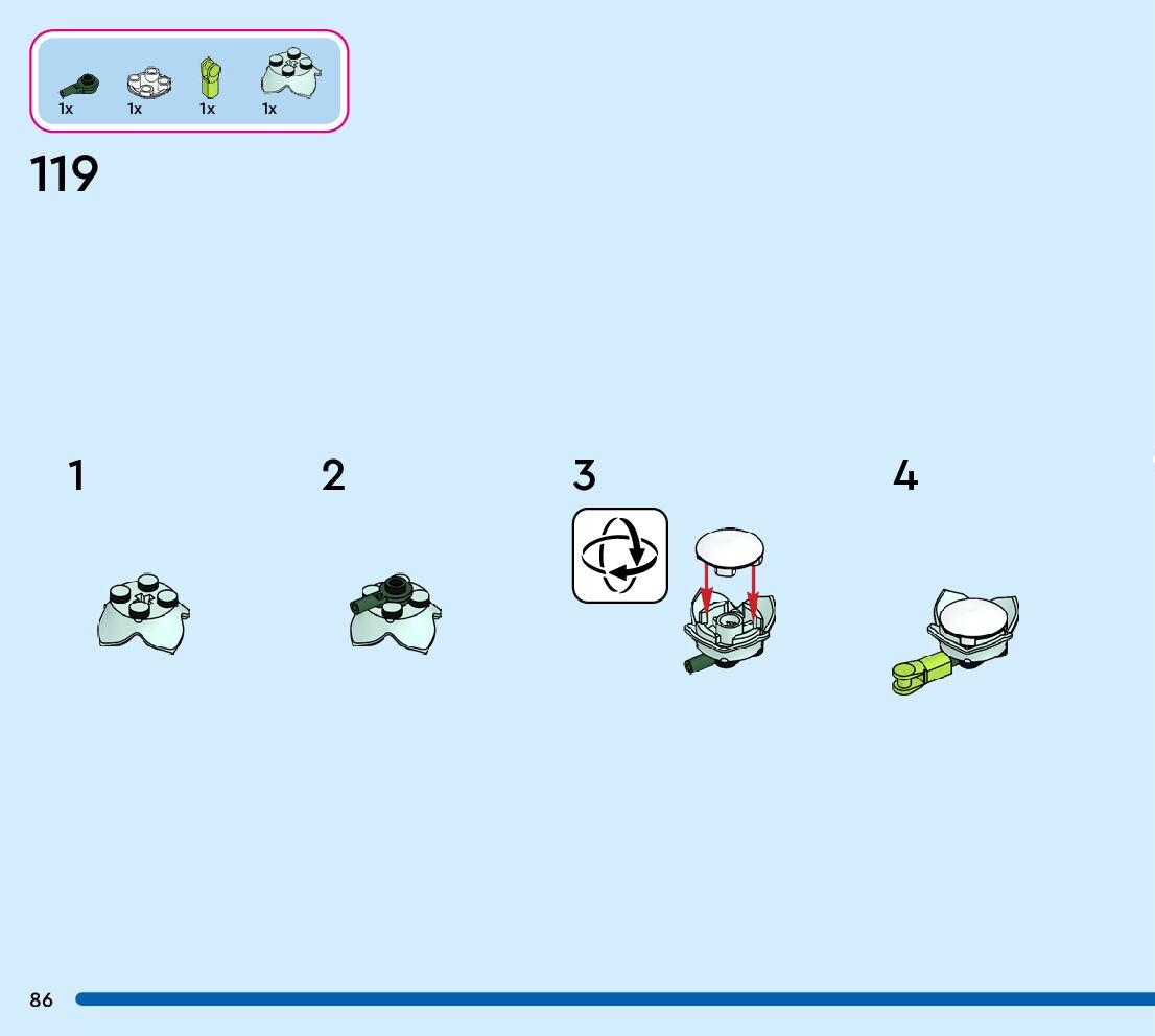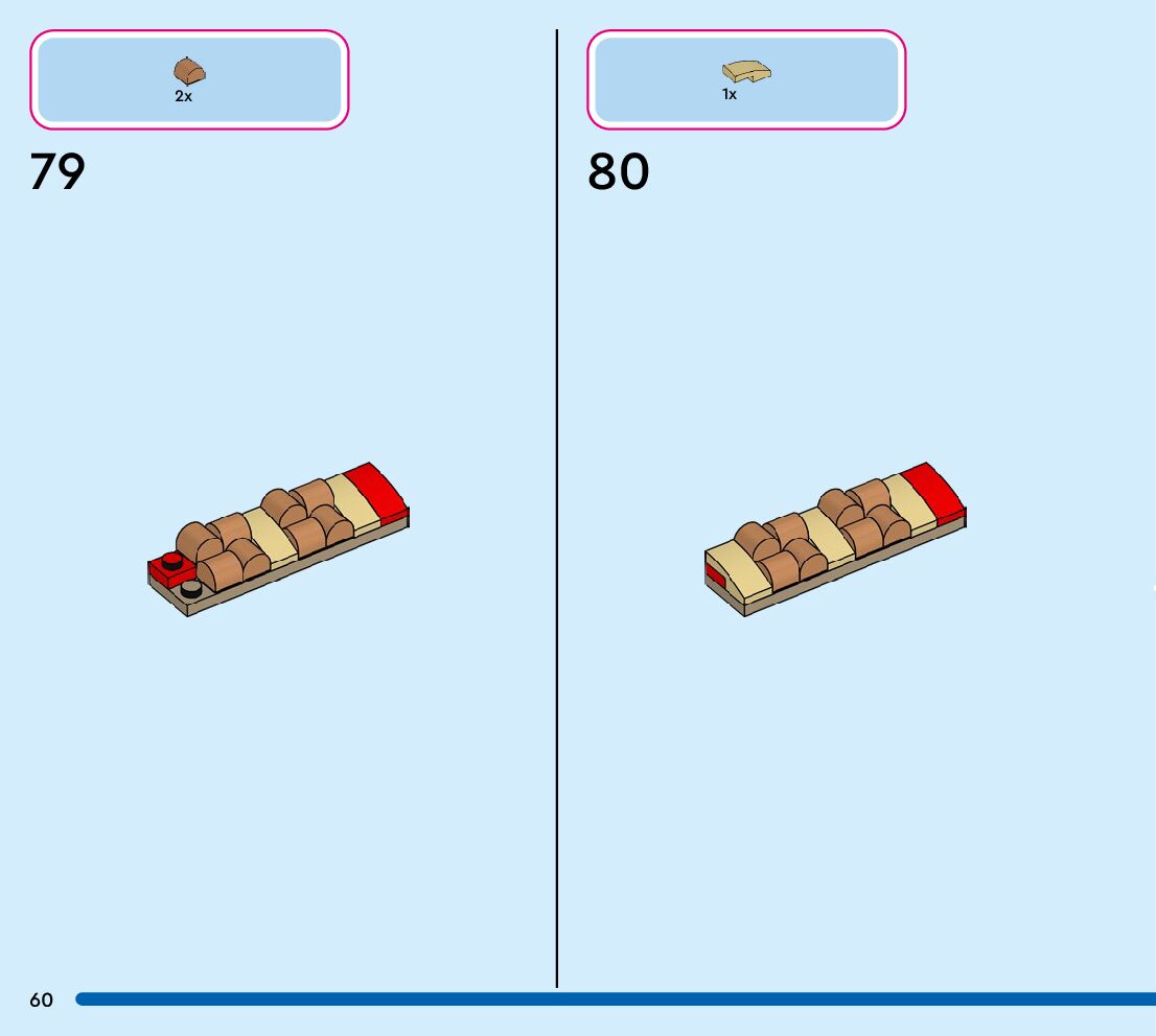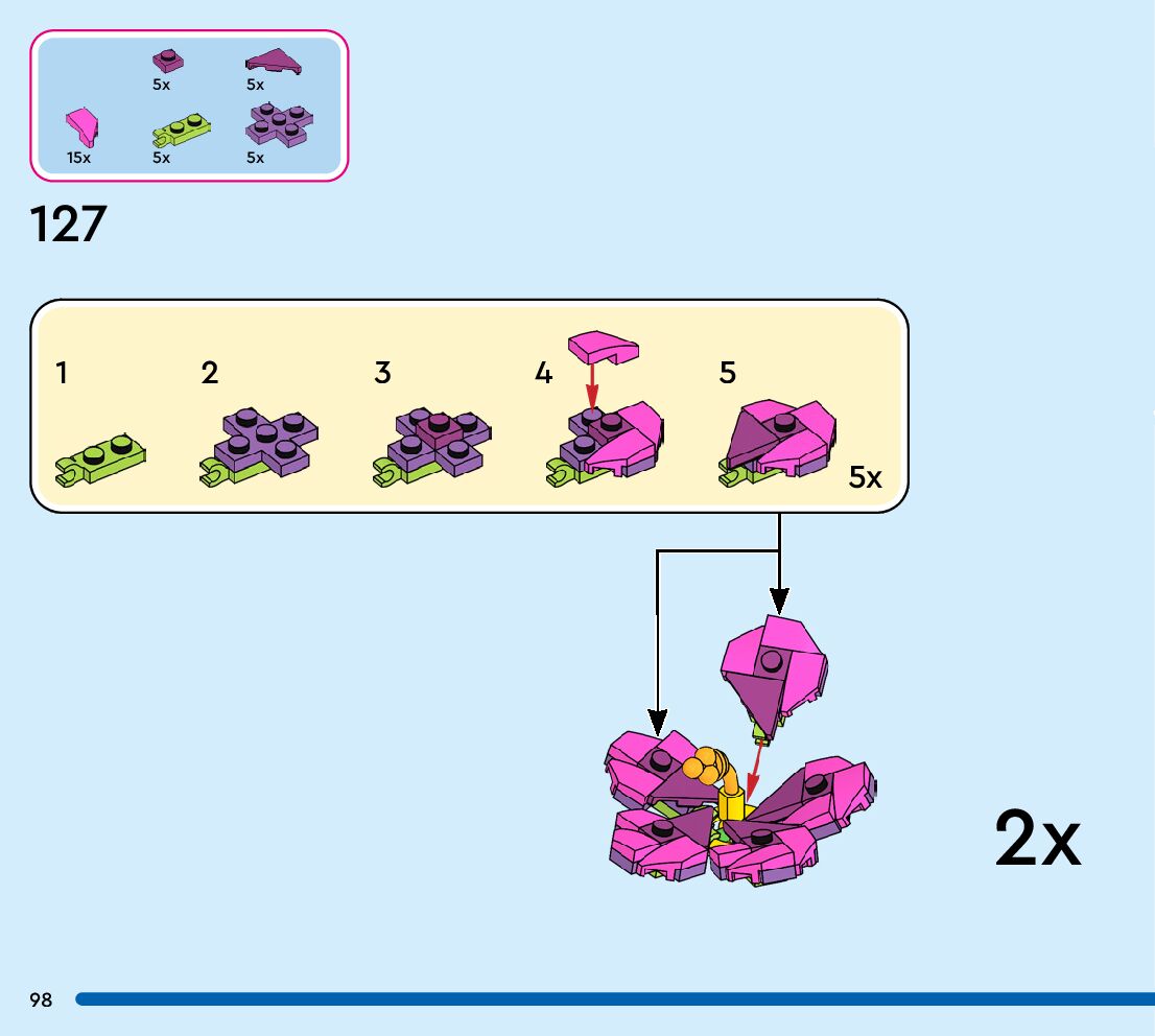 The assembly guide is prepared in a very understandable way for children and adult LEGO enthusiasts. A total of 108 picture galleries are shown, explaining the step-by-step construction stages for 1 different structures.