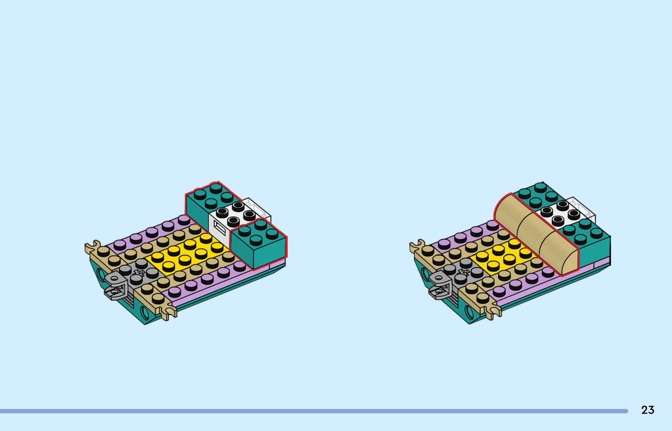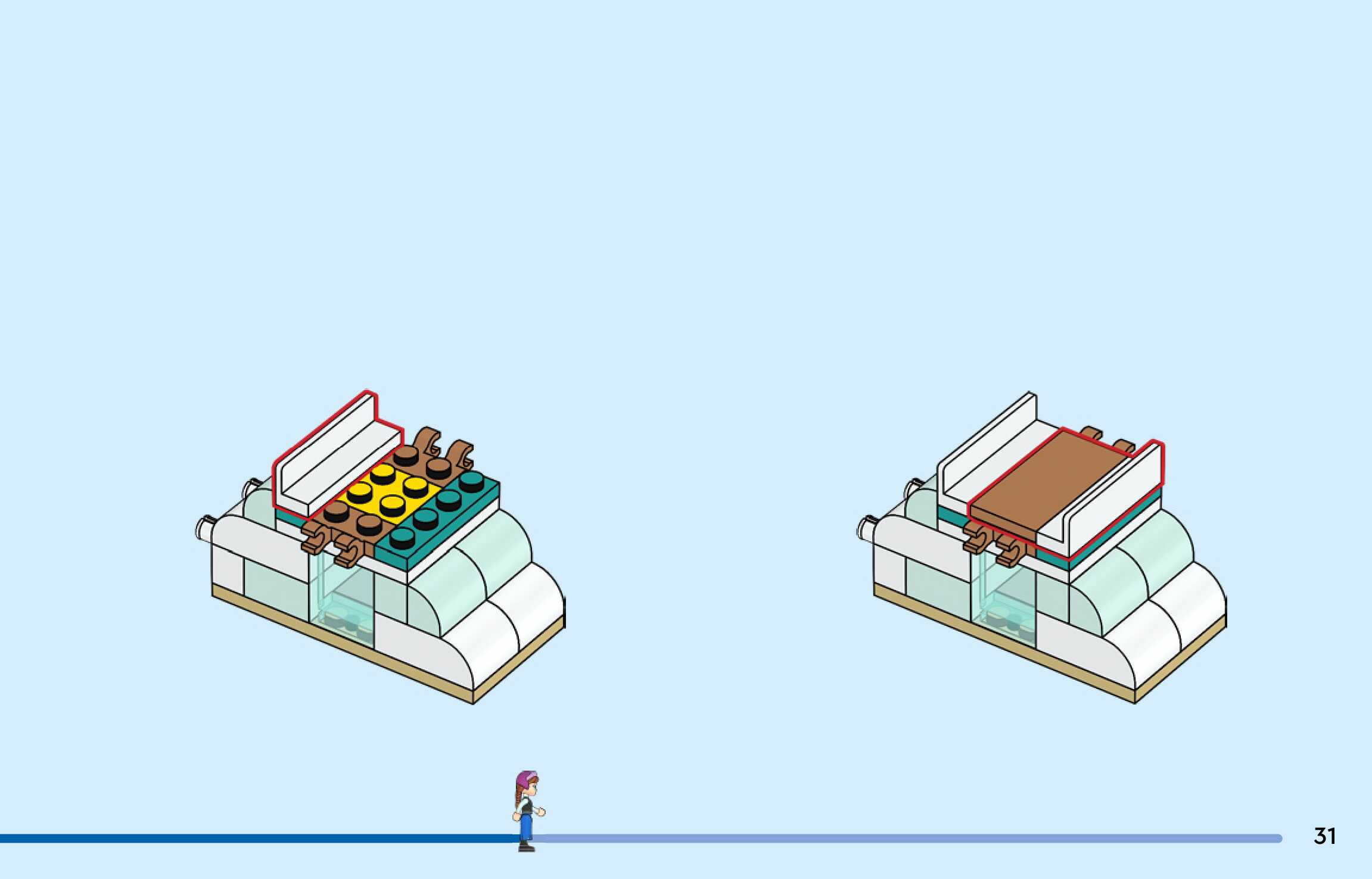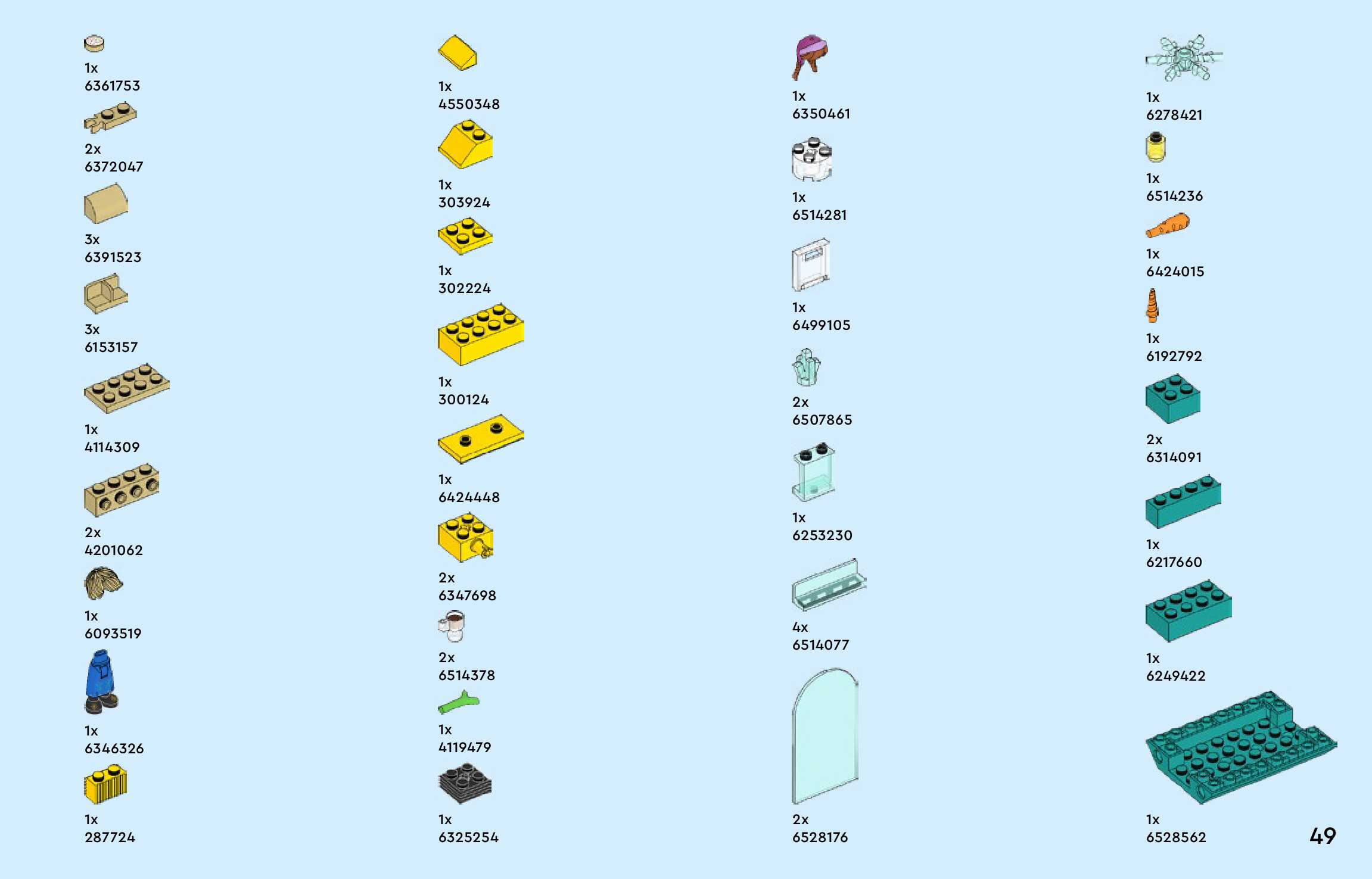 The assembly guide is prepared in a very understandable way for children and adult LEGO enthusiasts. A total of 176 picture galleries are shown, explaining the step-by-step construction stages for 4 different structures.