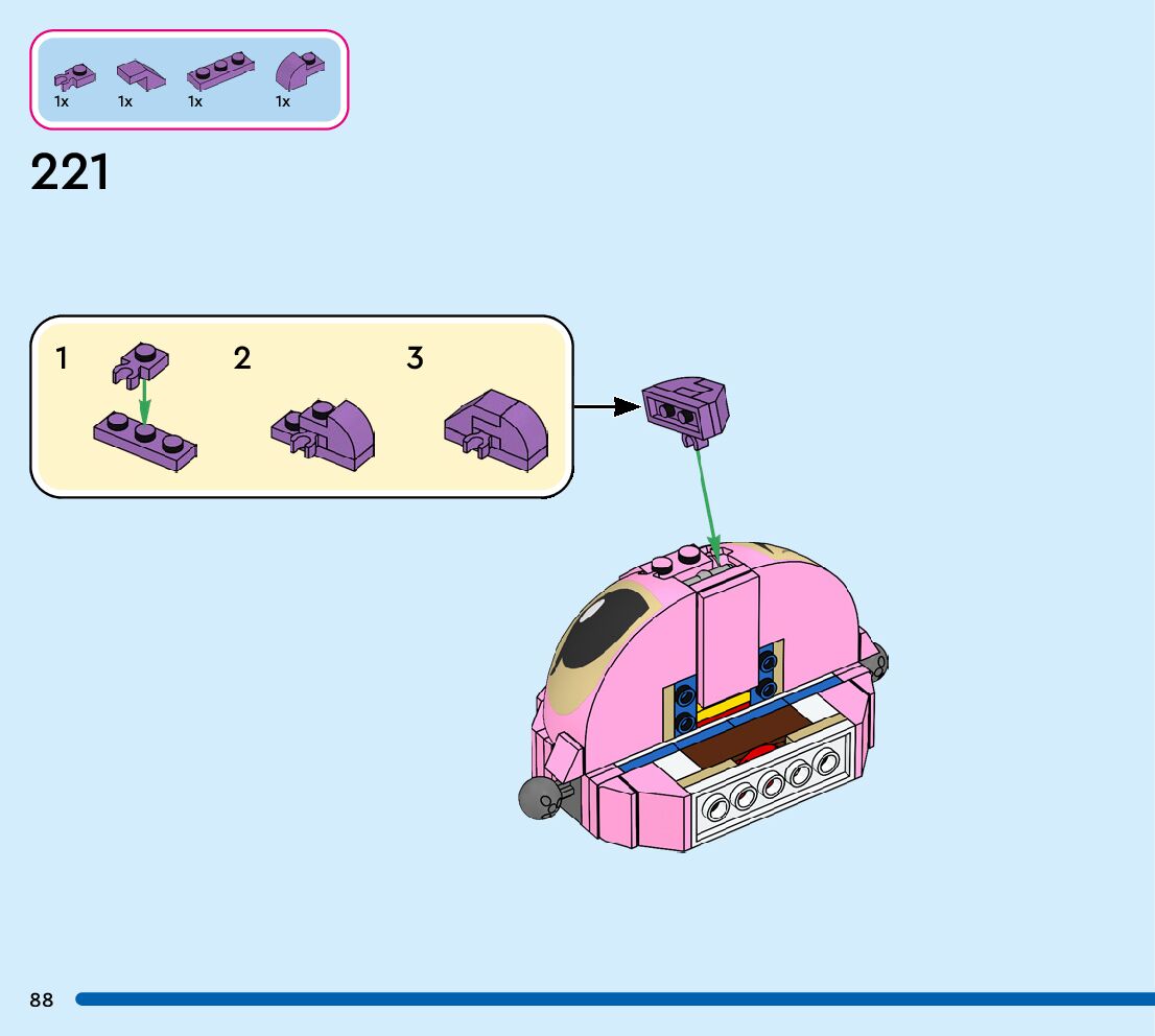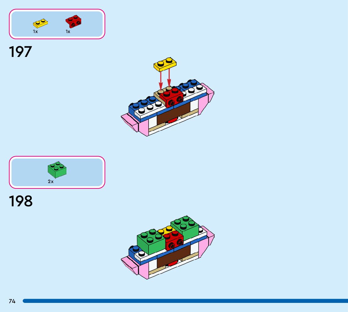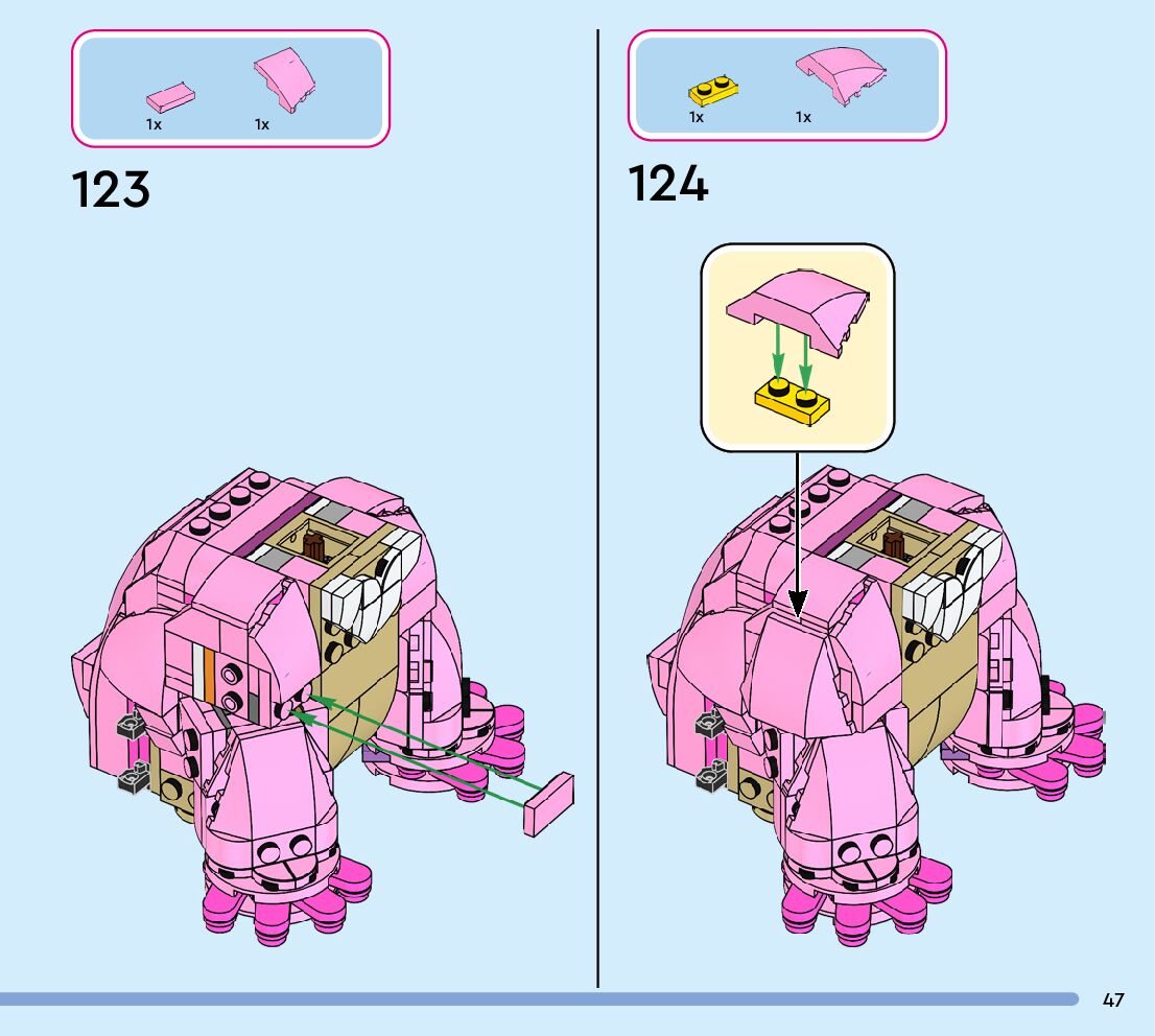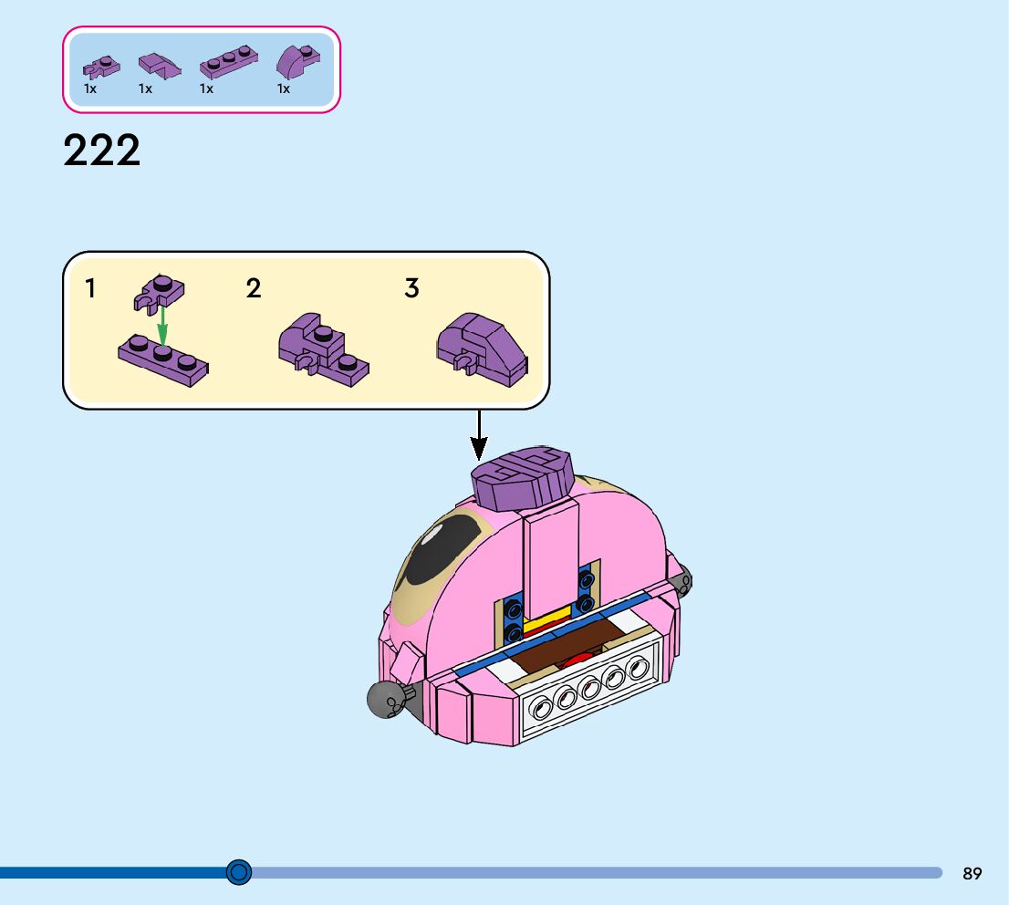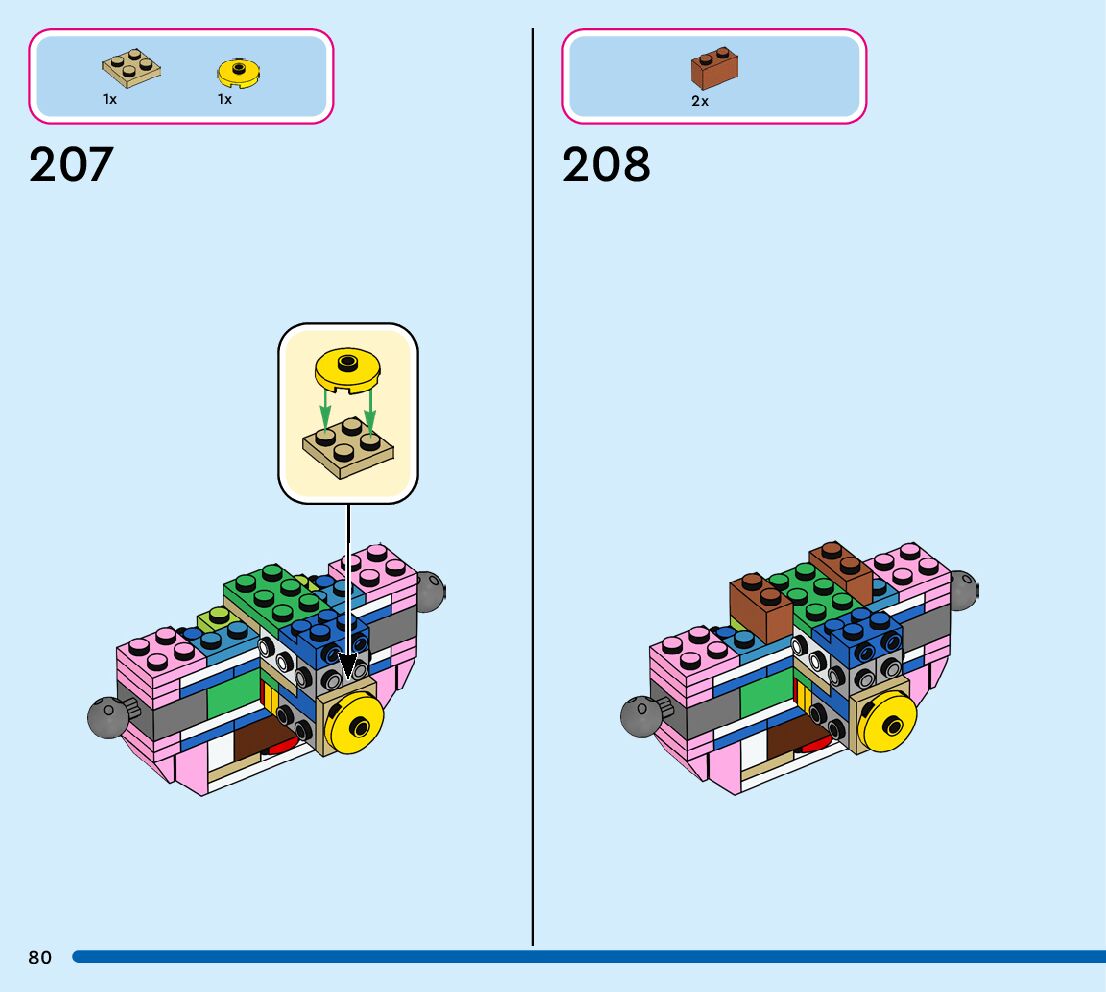 The assembly guide is prepared in a very understandable way for children and adult LEGO enthusiasts. A total of 152 picture galleries are shown, explaining the step-by-step construction stages for 1 different structures.