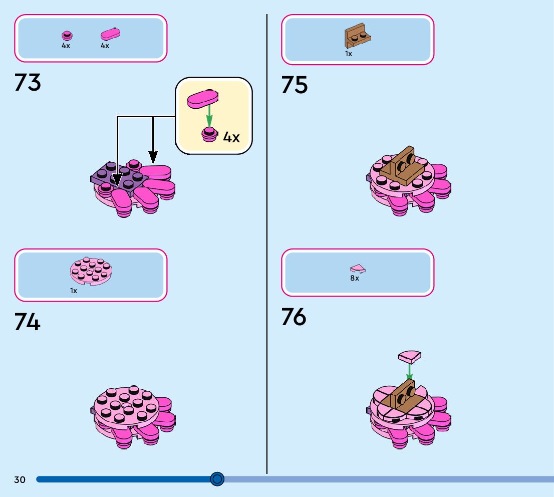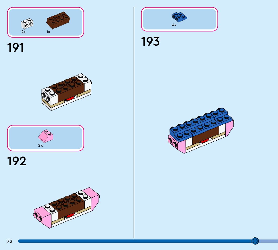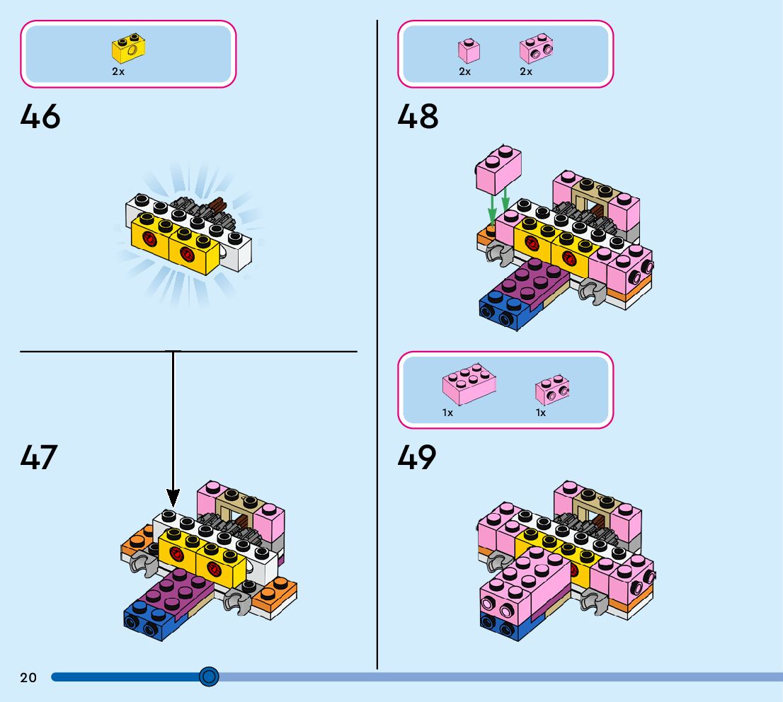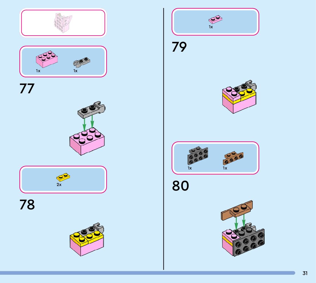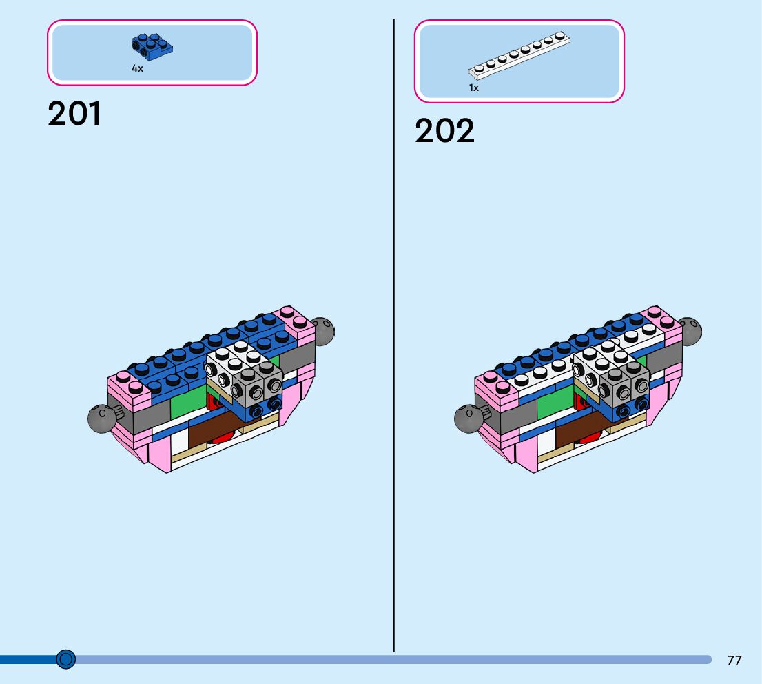The assembly guide is prepared in a very understandable way for children and adult LEGO enthusiasts. A total of 152 picture galleries are shown, explaining the step-by-step construction stages for 1 different structures.