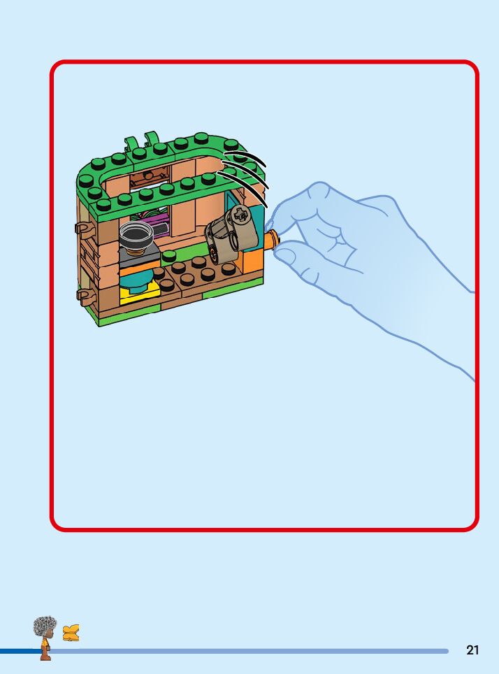 The assembly guide is prepared in a very understandable way for children and adult LEGO enthusiasts. A total of 100 picture galleries are shown, explaining the step-by-step construction stages for 2 different structures.