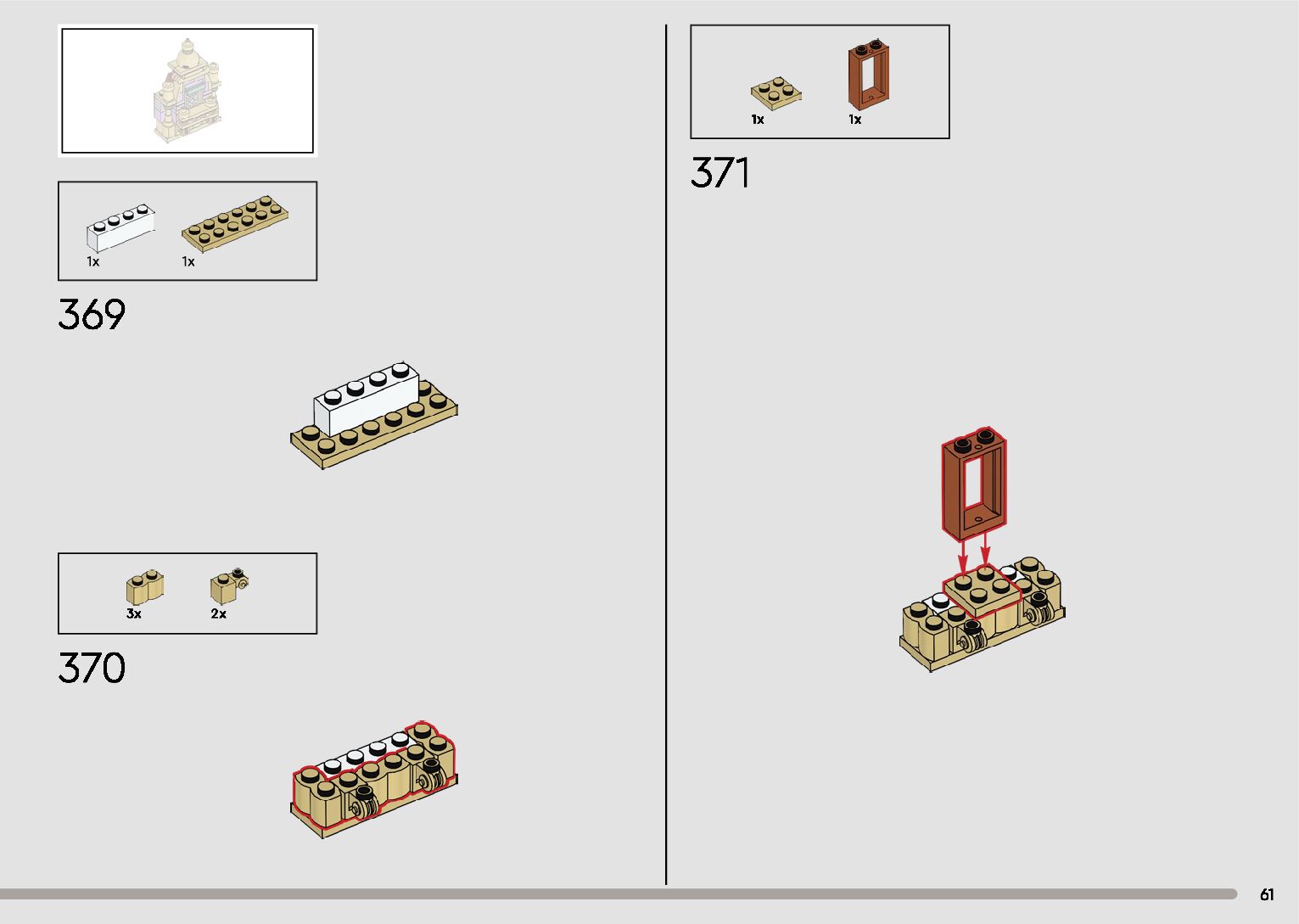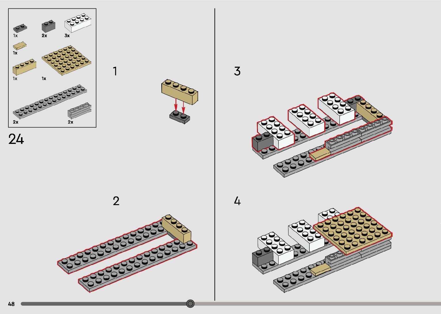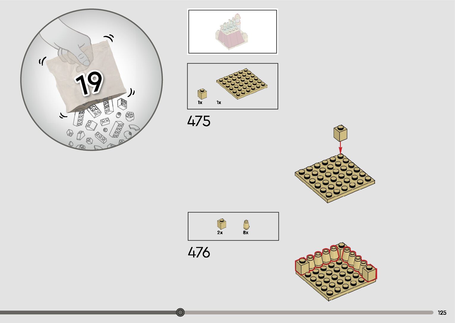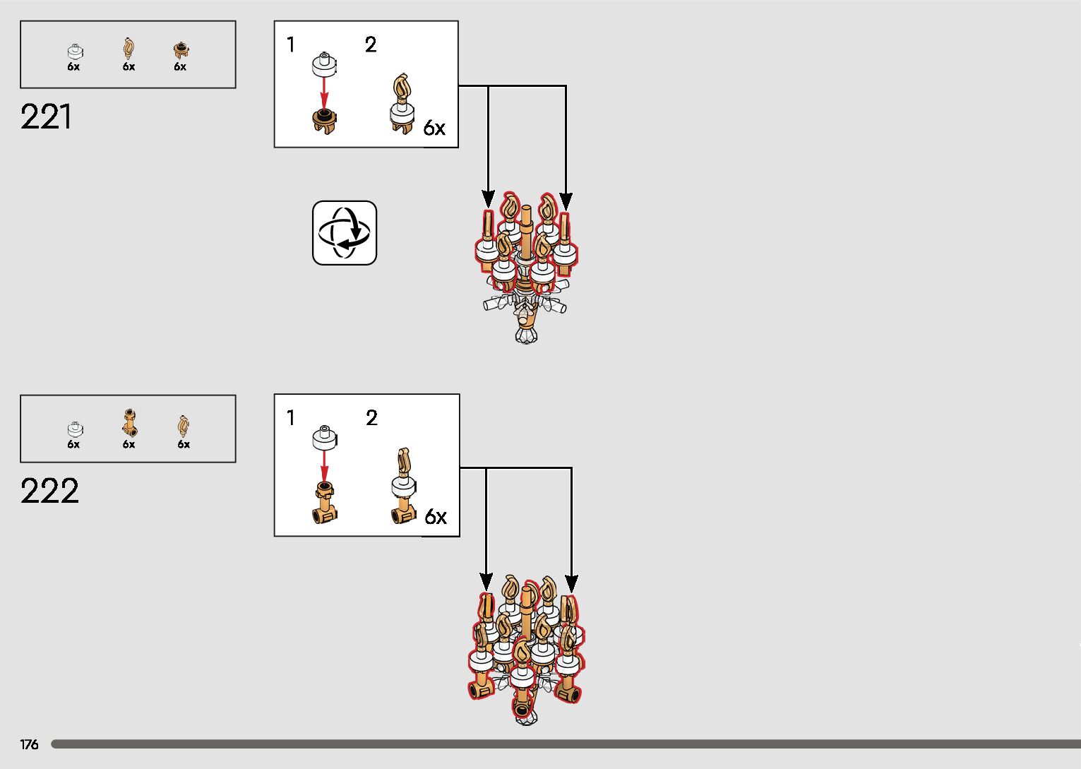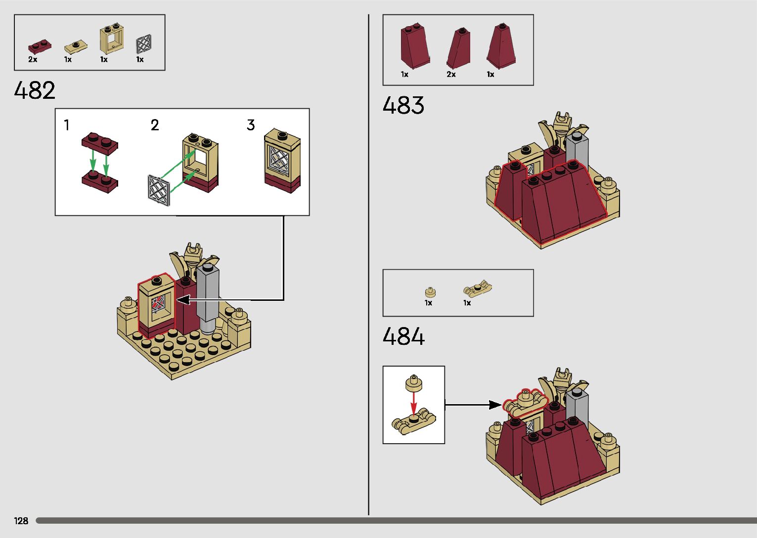 The assembly guide is prepared in a very understandable way for children and adult LEGO enthusiasts. A total of 384 picture galleries are shown, explaining the step-by-step construction stages for 2 different structures.