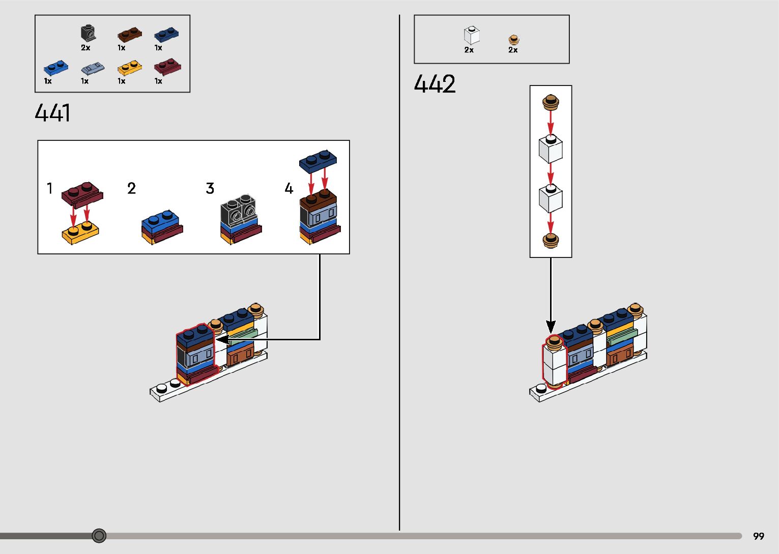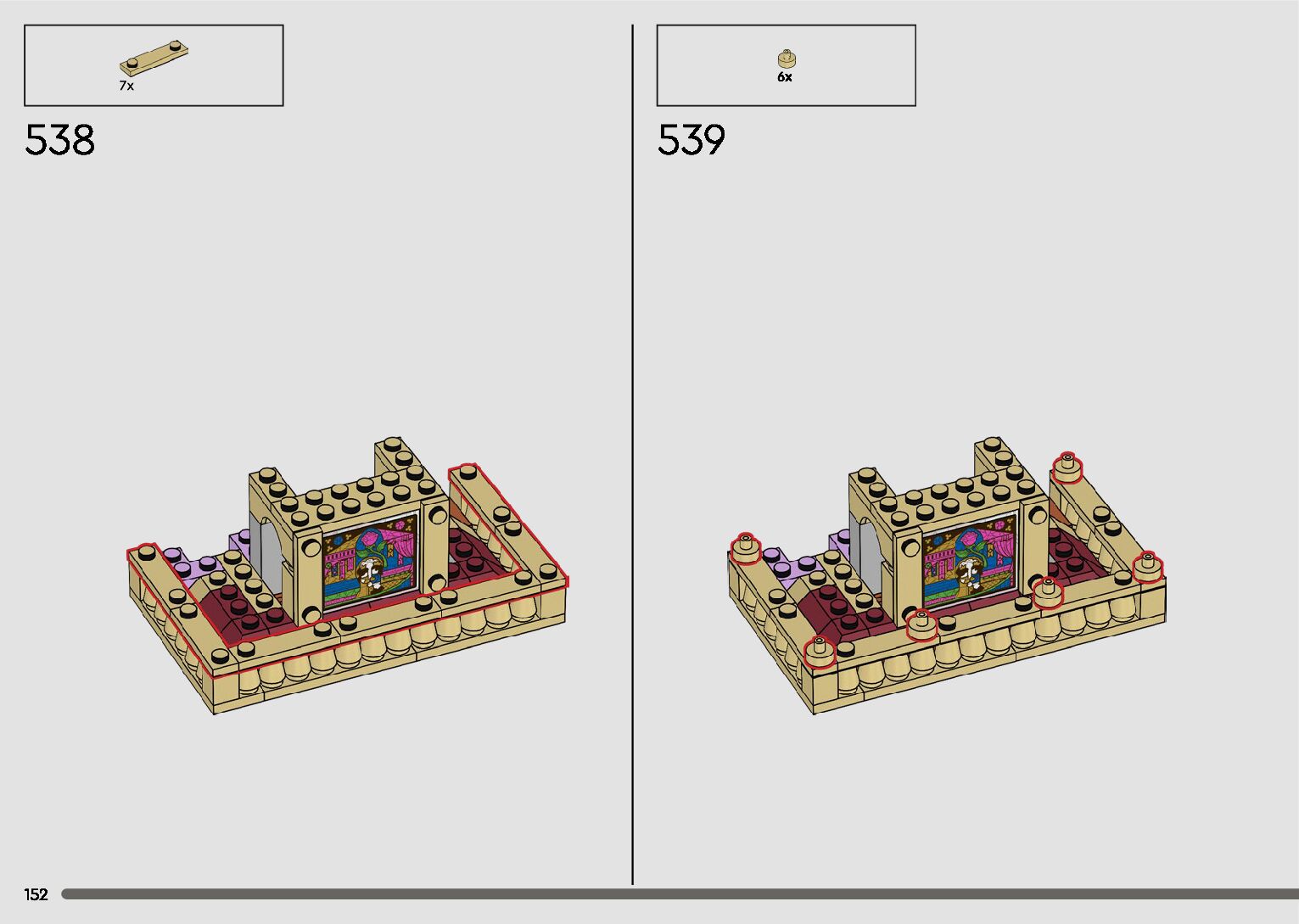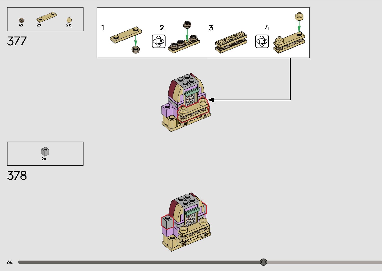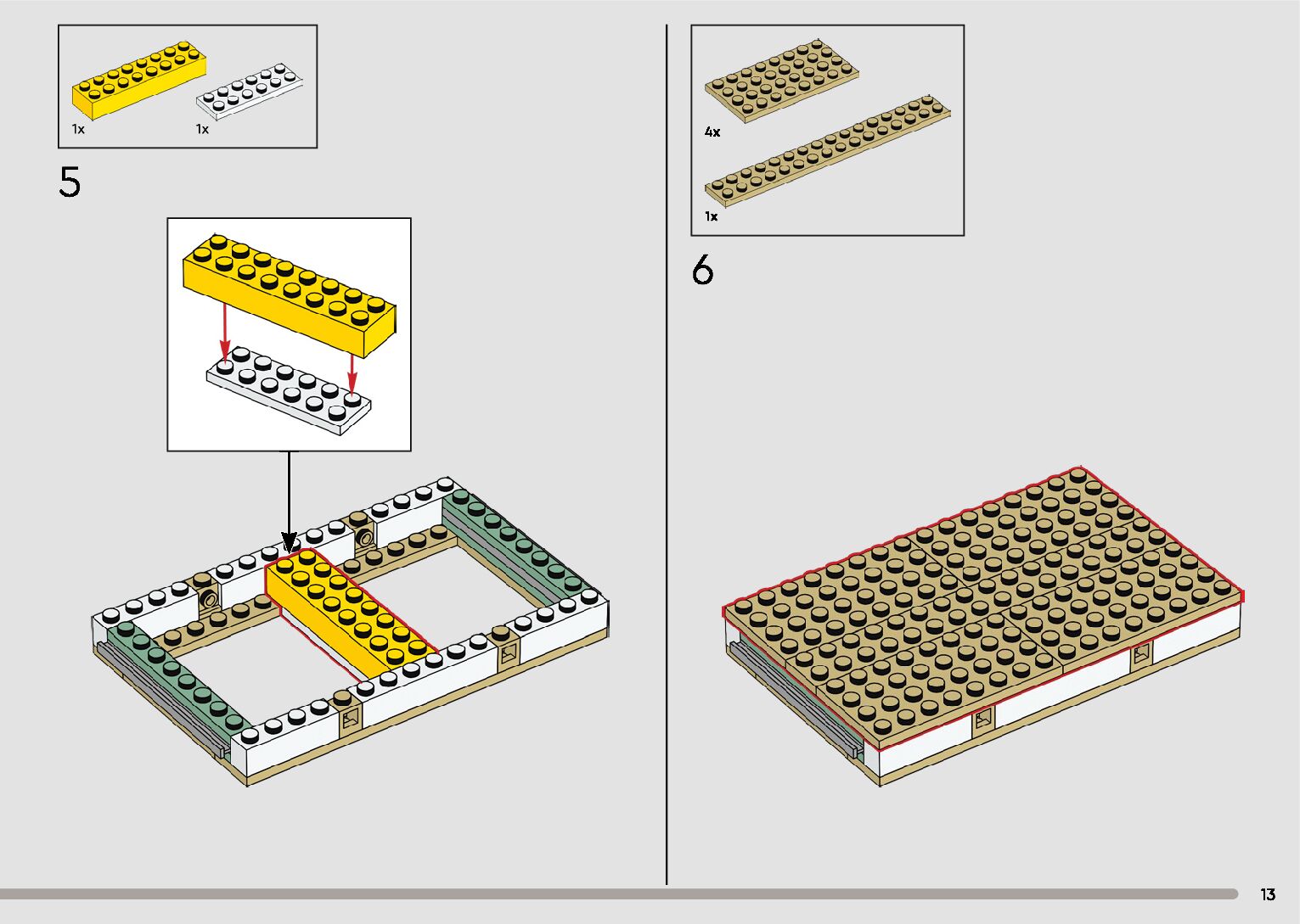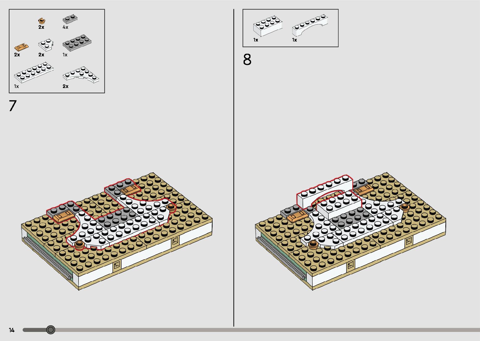 The assembly guide is prepared in a very understandable way for children and adult LEGO enthusiasts. A total of 384 picture galleries are shown, explaining the step-by-step construction stages for 2 different structures.