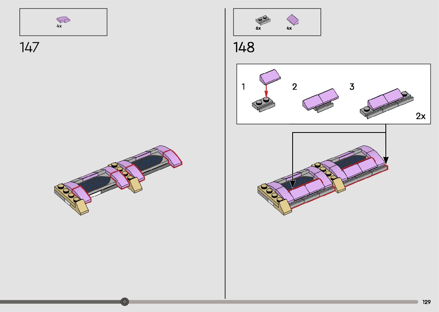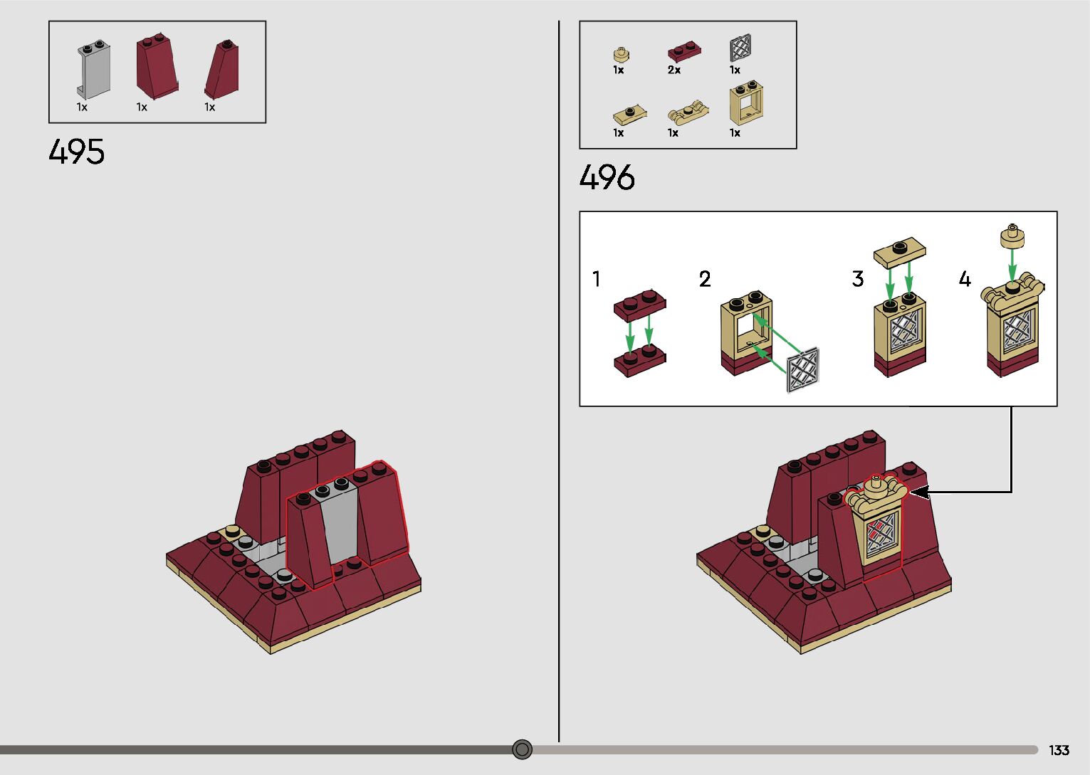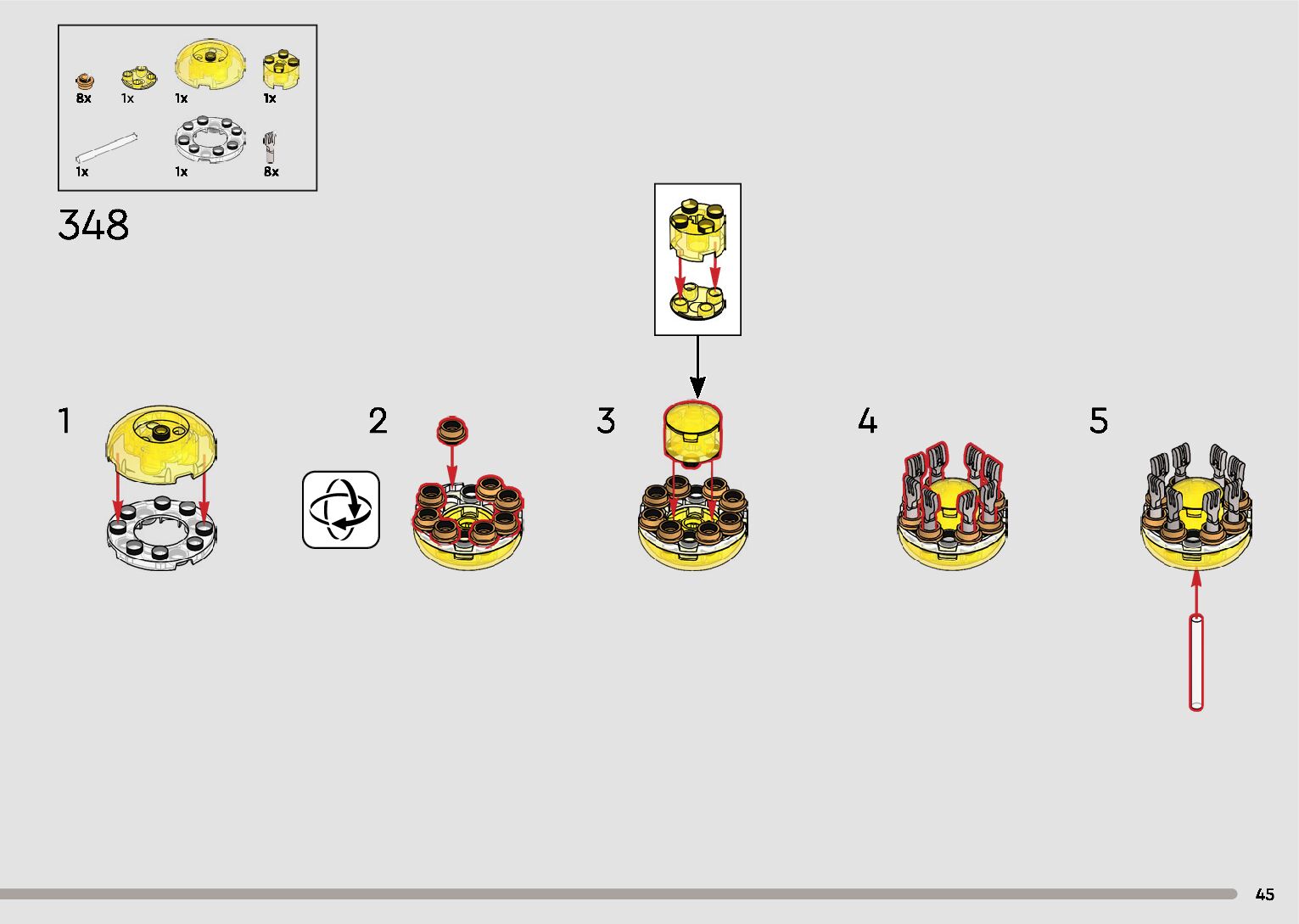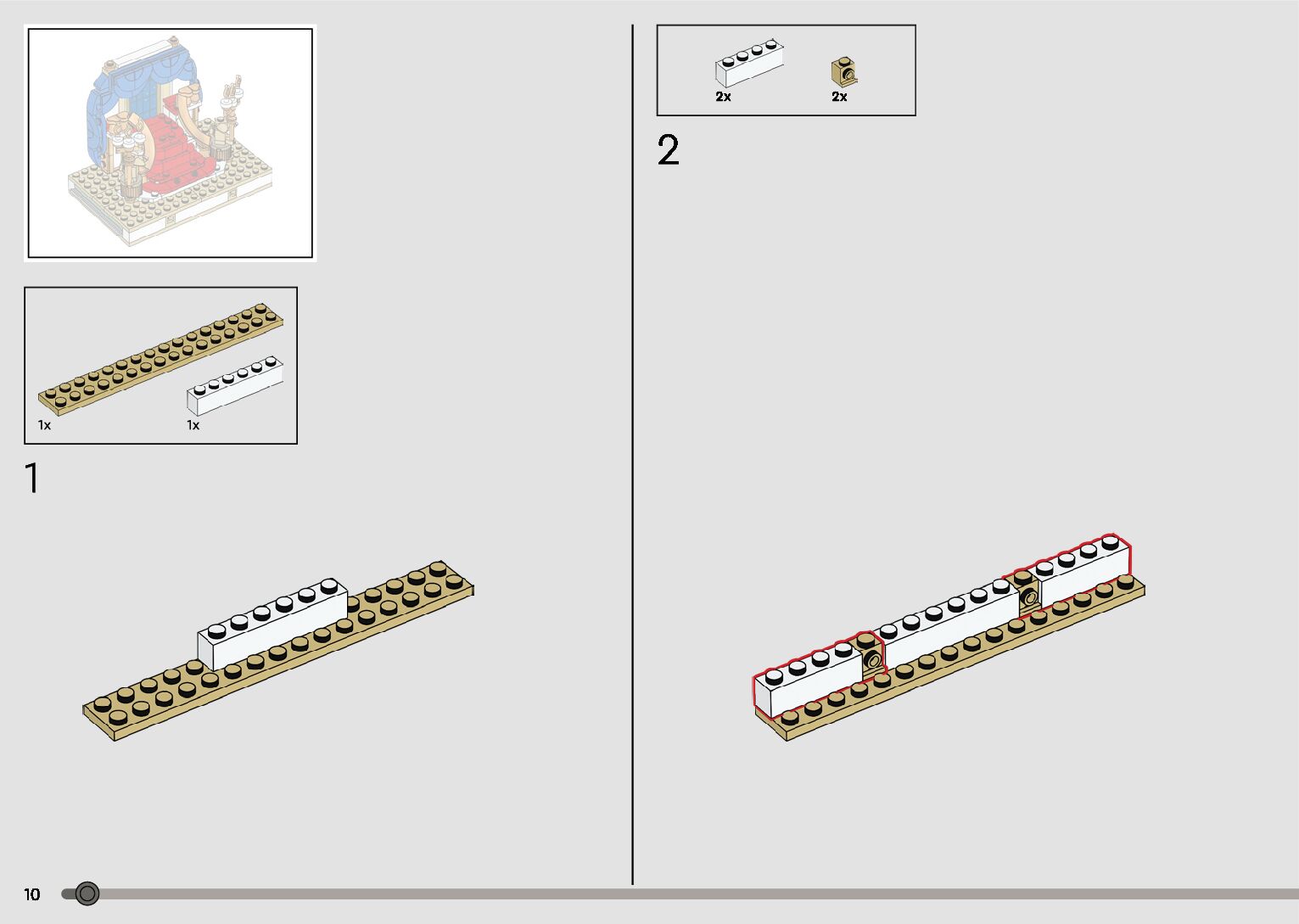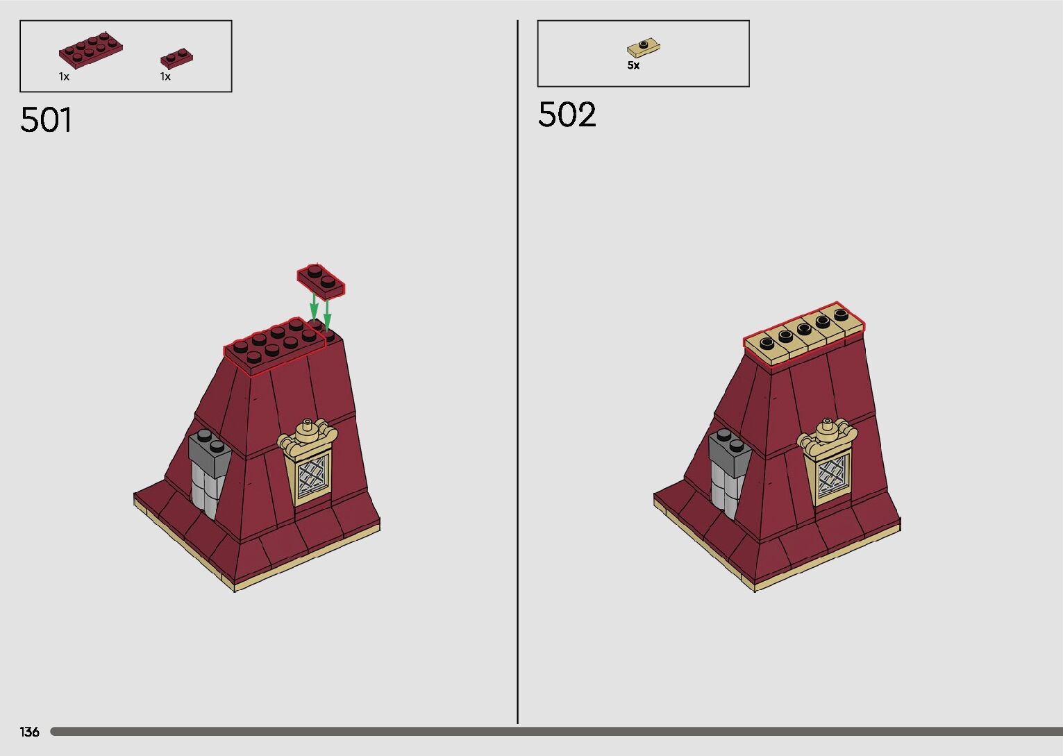 The assembly guide is prepared in a very understandable way for children and adult LEGO enthusiasts. A total of 384 picture galleries are shown, explaining the step-by-step construction stages for 2 different structures.