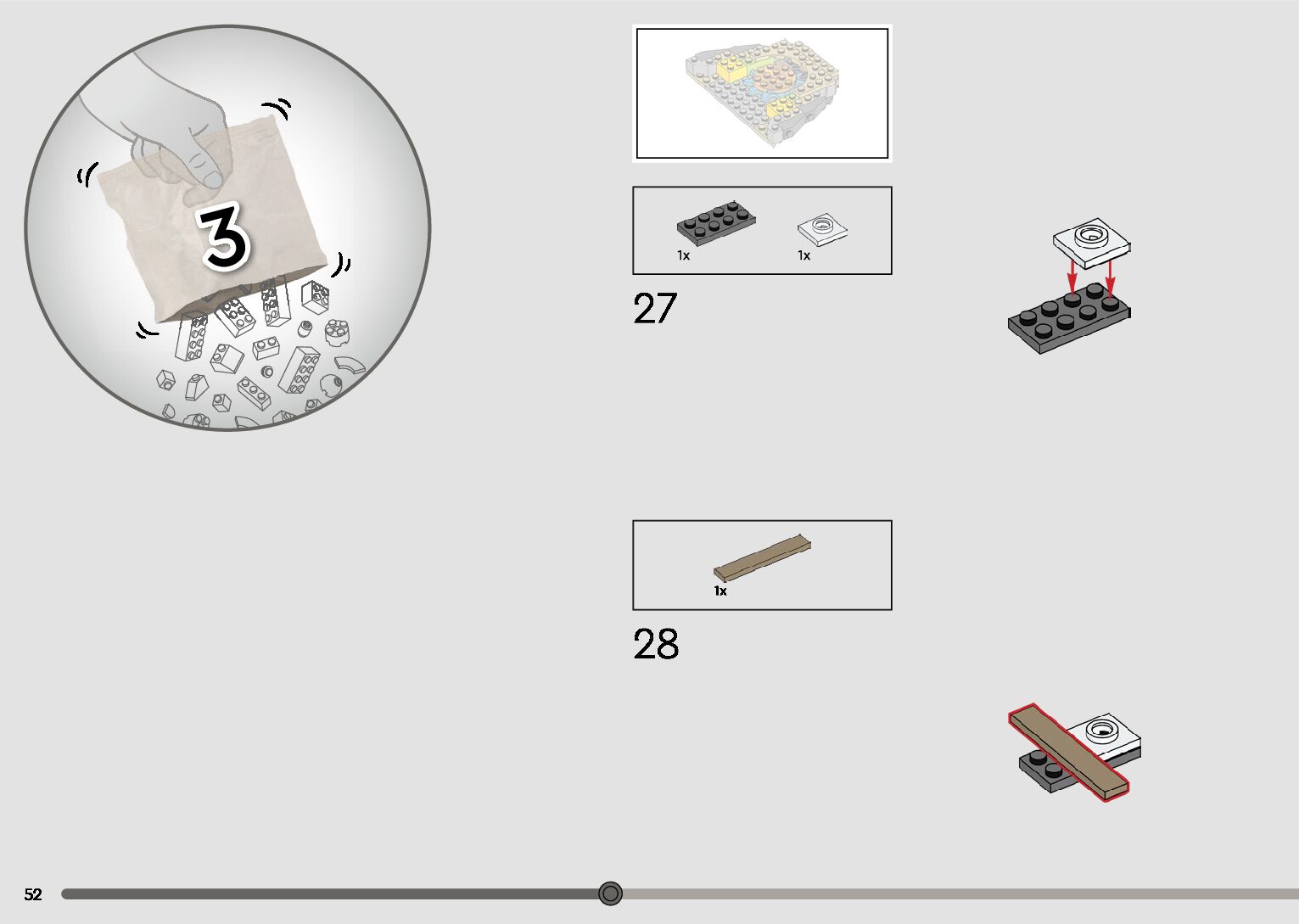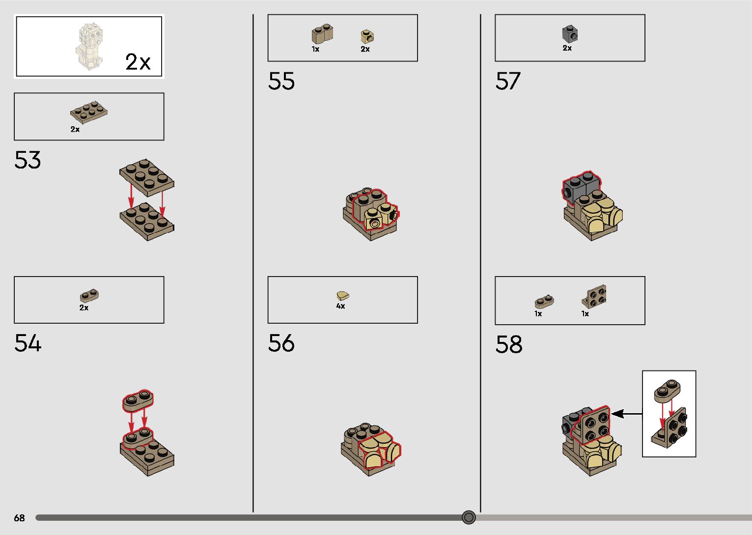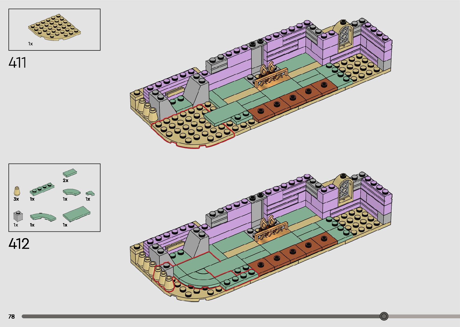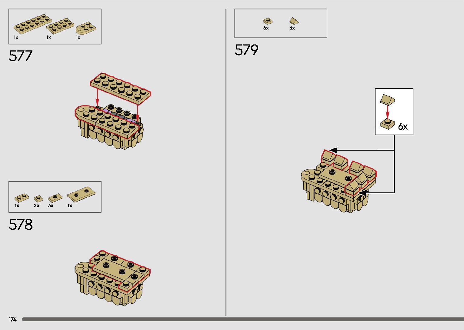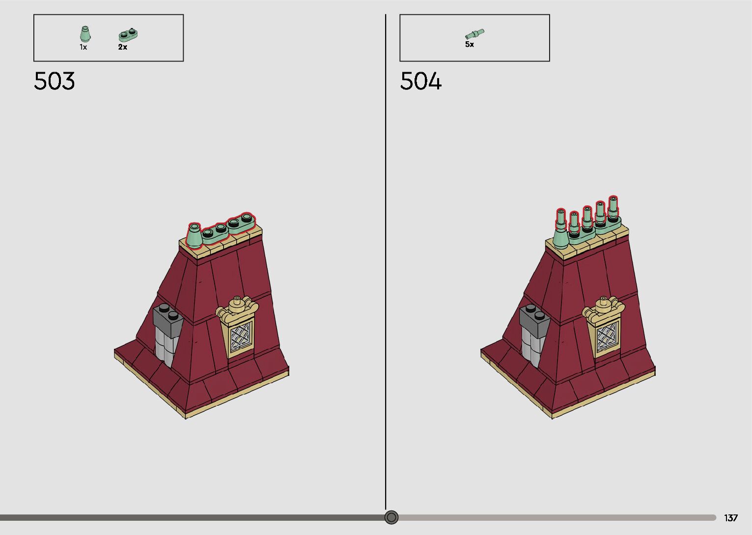 The assembly guide is prepared in a very understandable way for children and adult LEGO enthusiasts. A total of 384 picture galleries are shown, explaining the step-by-step construction stages for 2 different structures.