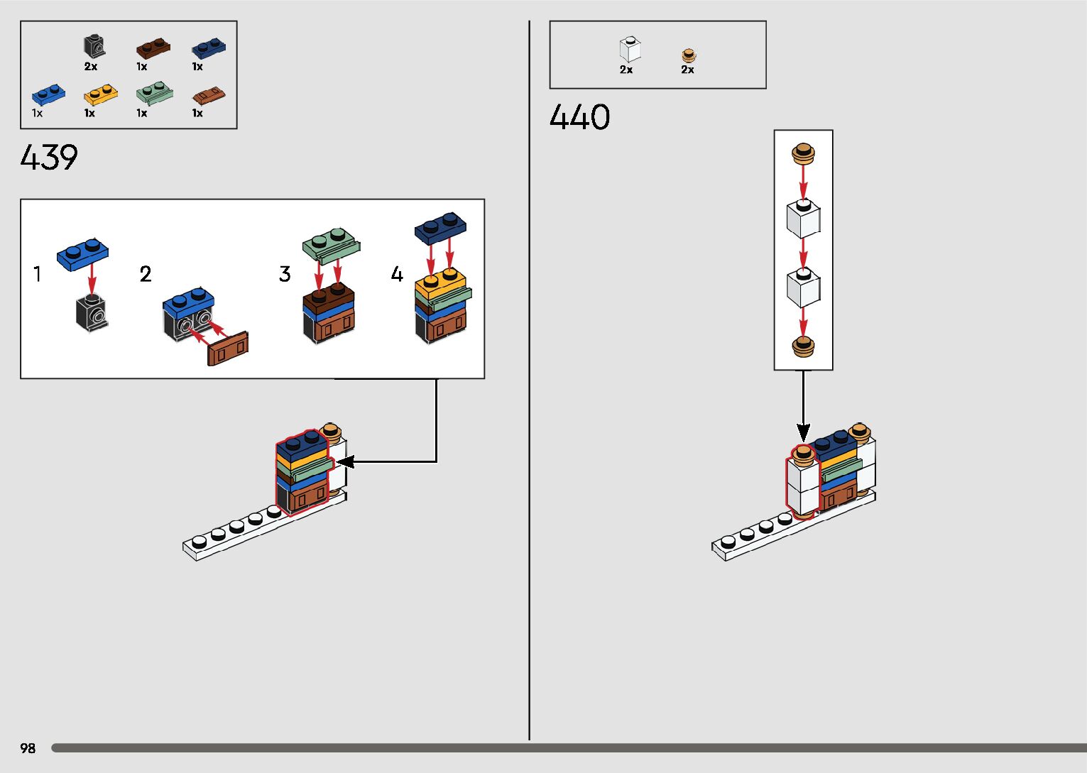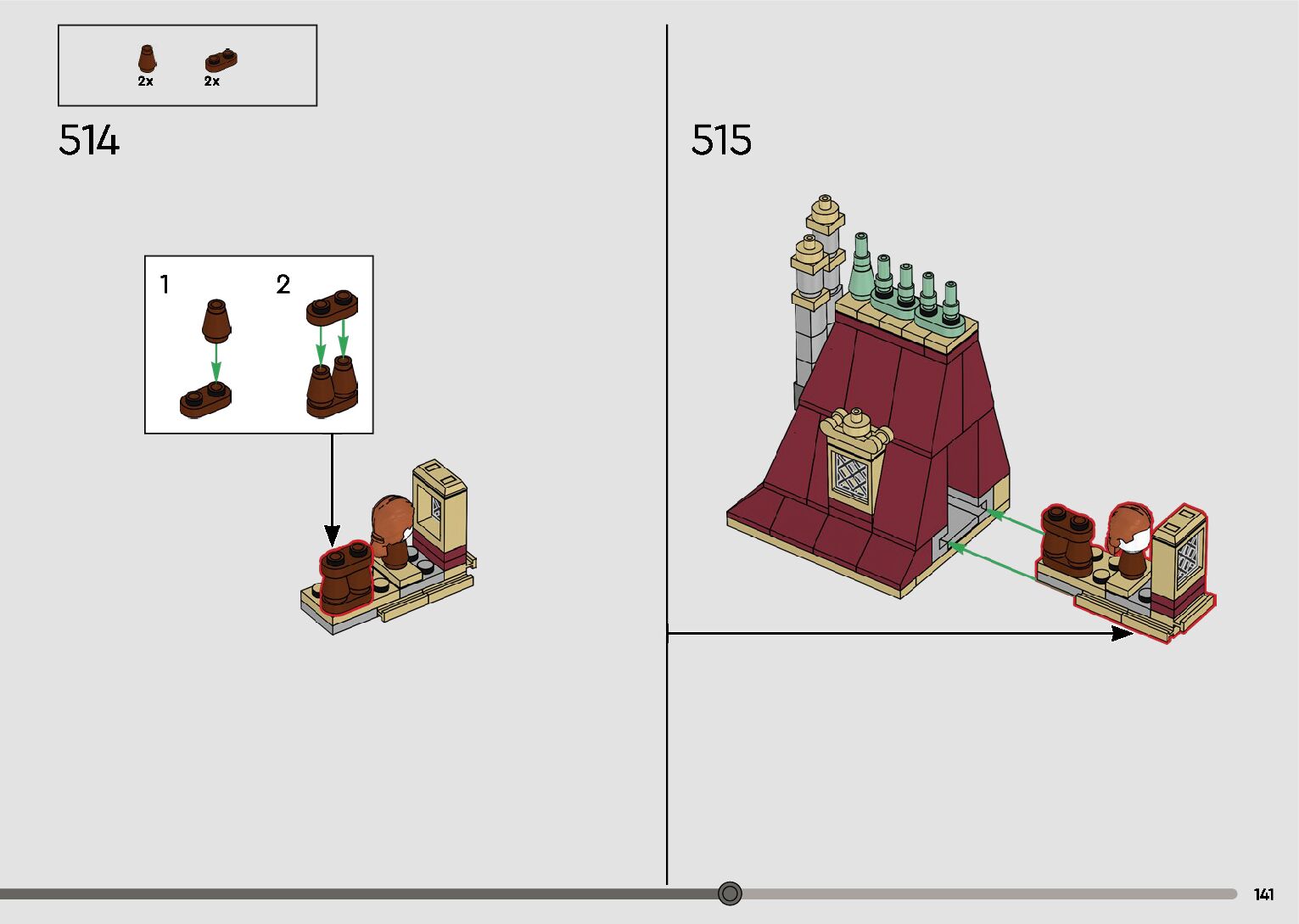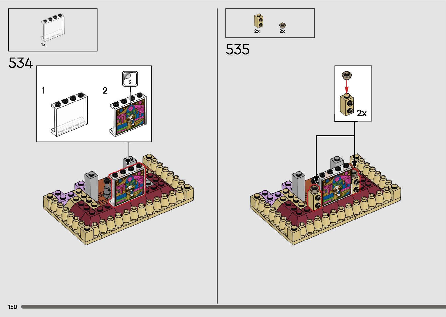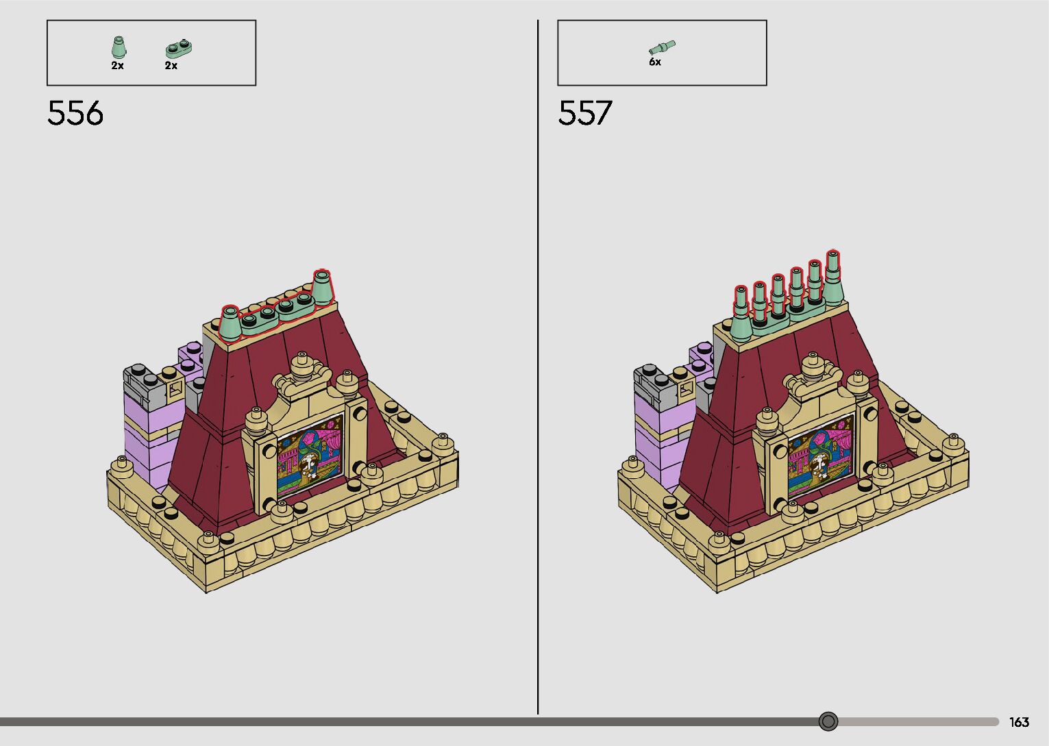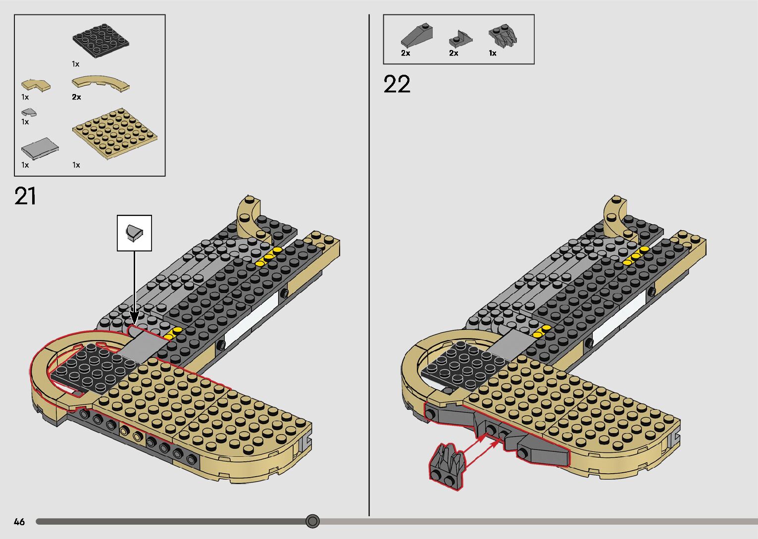 The assembly guide is prepared in a very understandable way for children and adult LEGO enthusiasts. A total of 384 picture galleries are shown, explaining the step-by-step construction stages for 2 different structures.