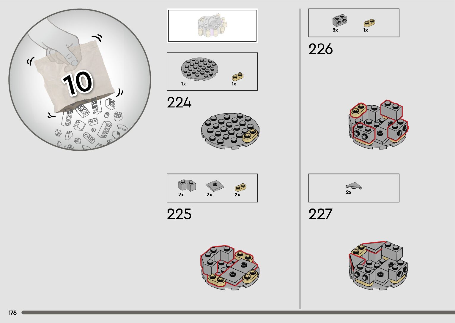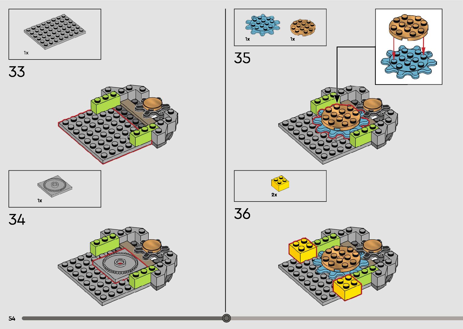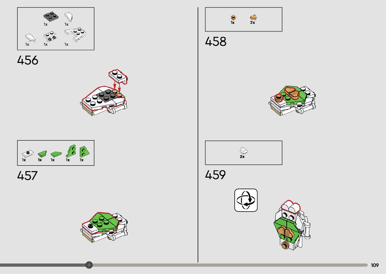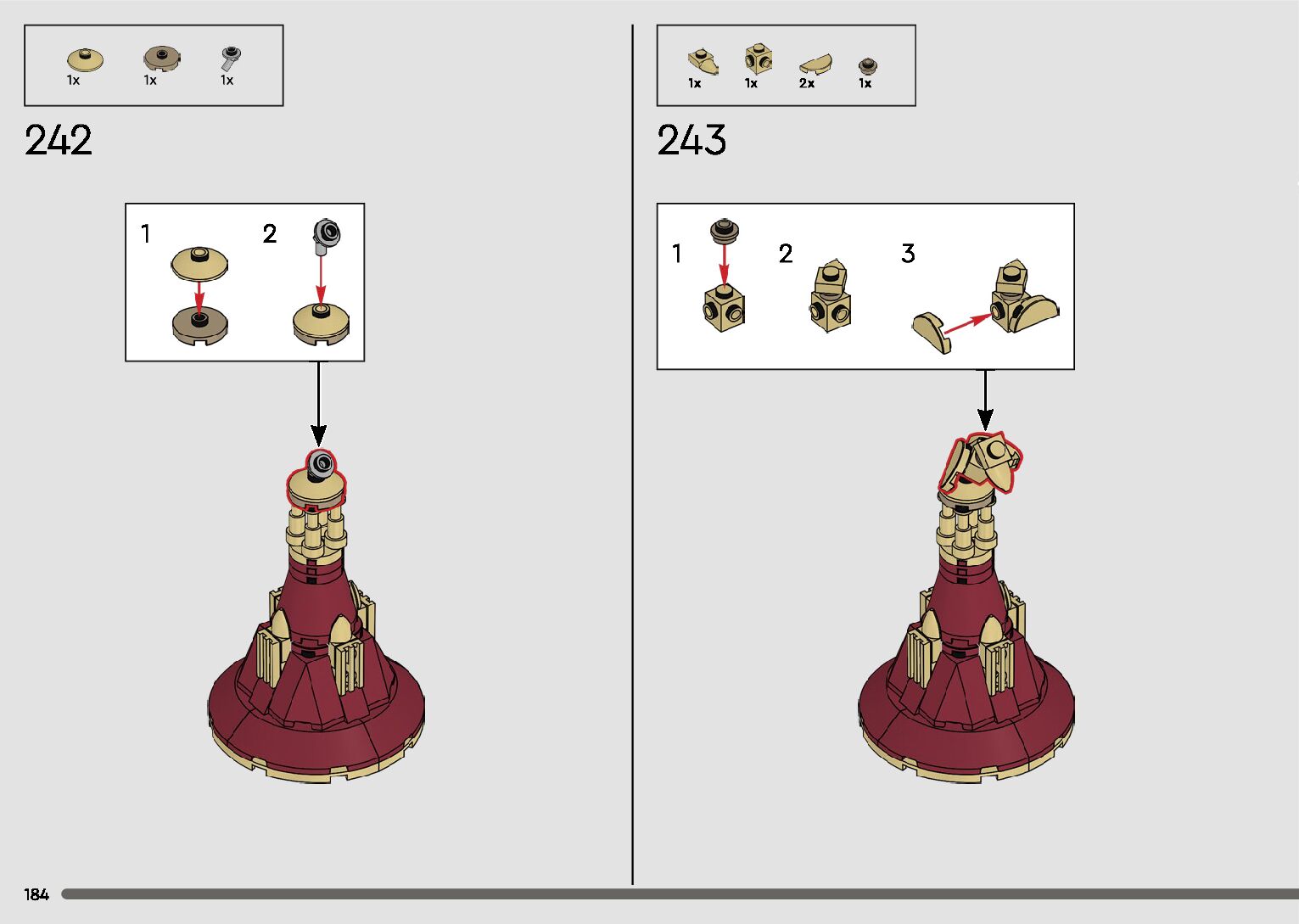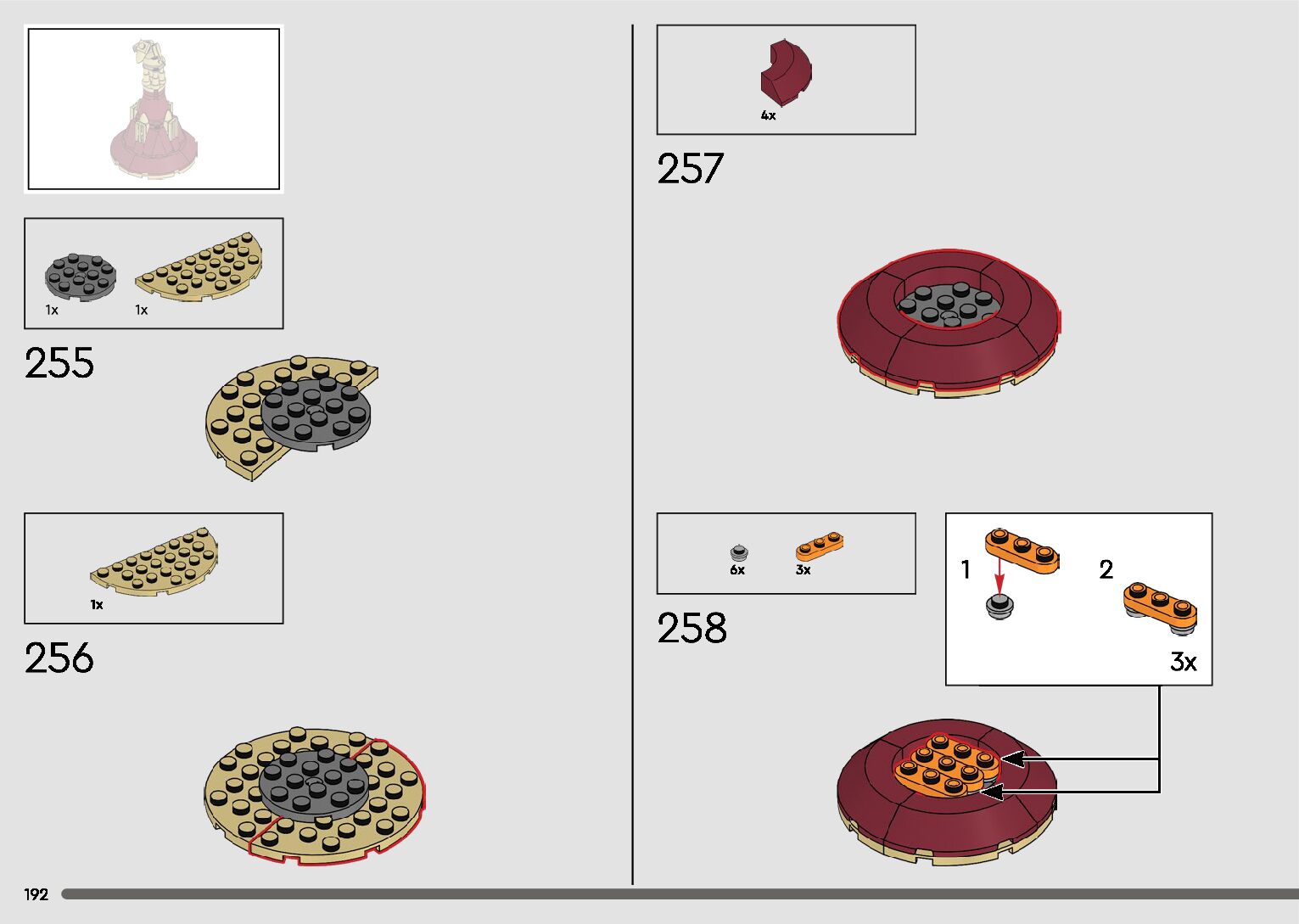 The assembly guide is prepared in a very understandable way for children and adult LEGO enthusiasts. A total of 384 picture galleries are shown, explaining the step-by-step construction stages for 2 different structures.