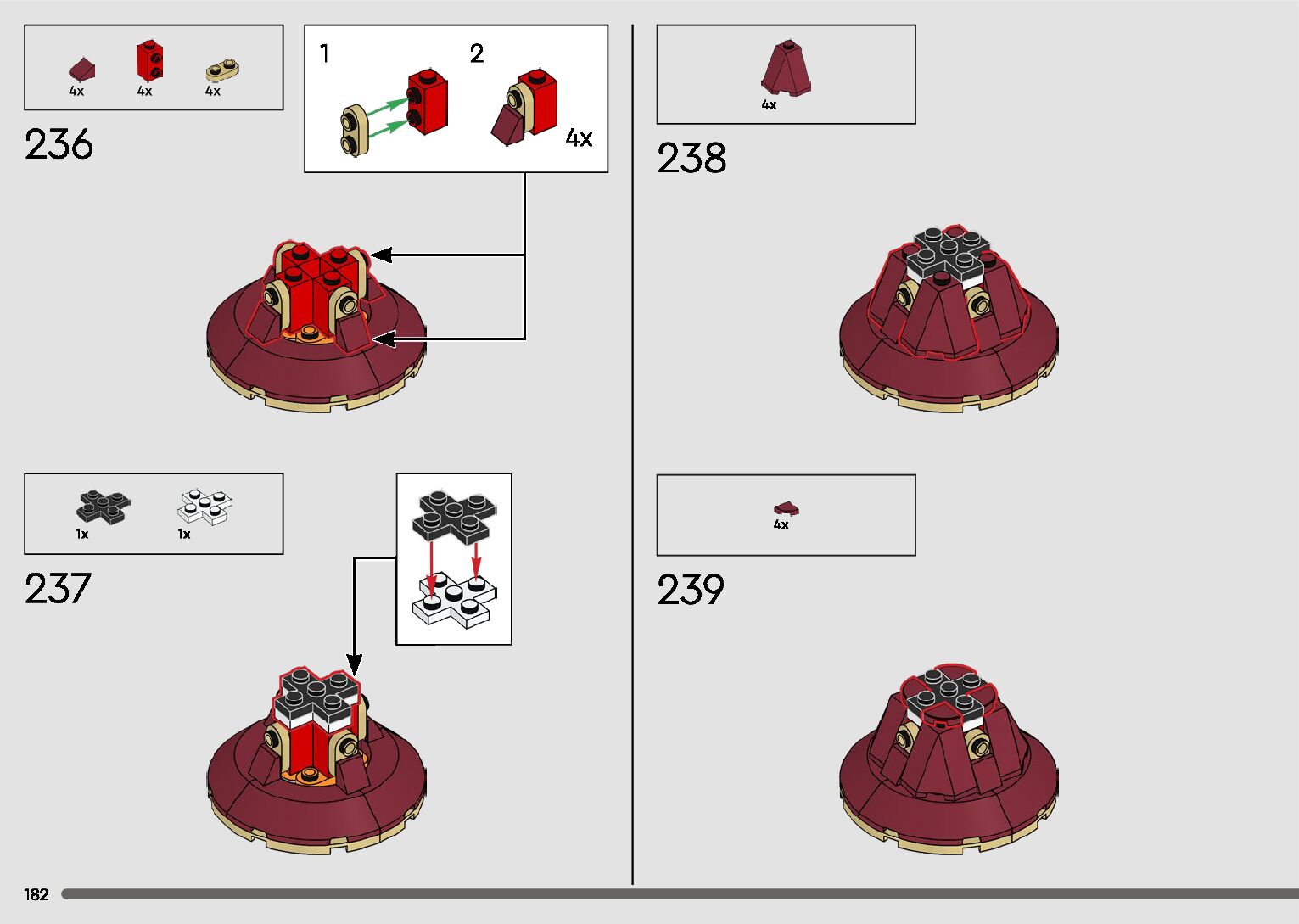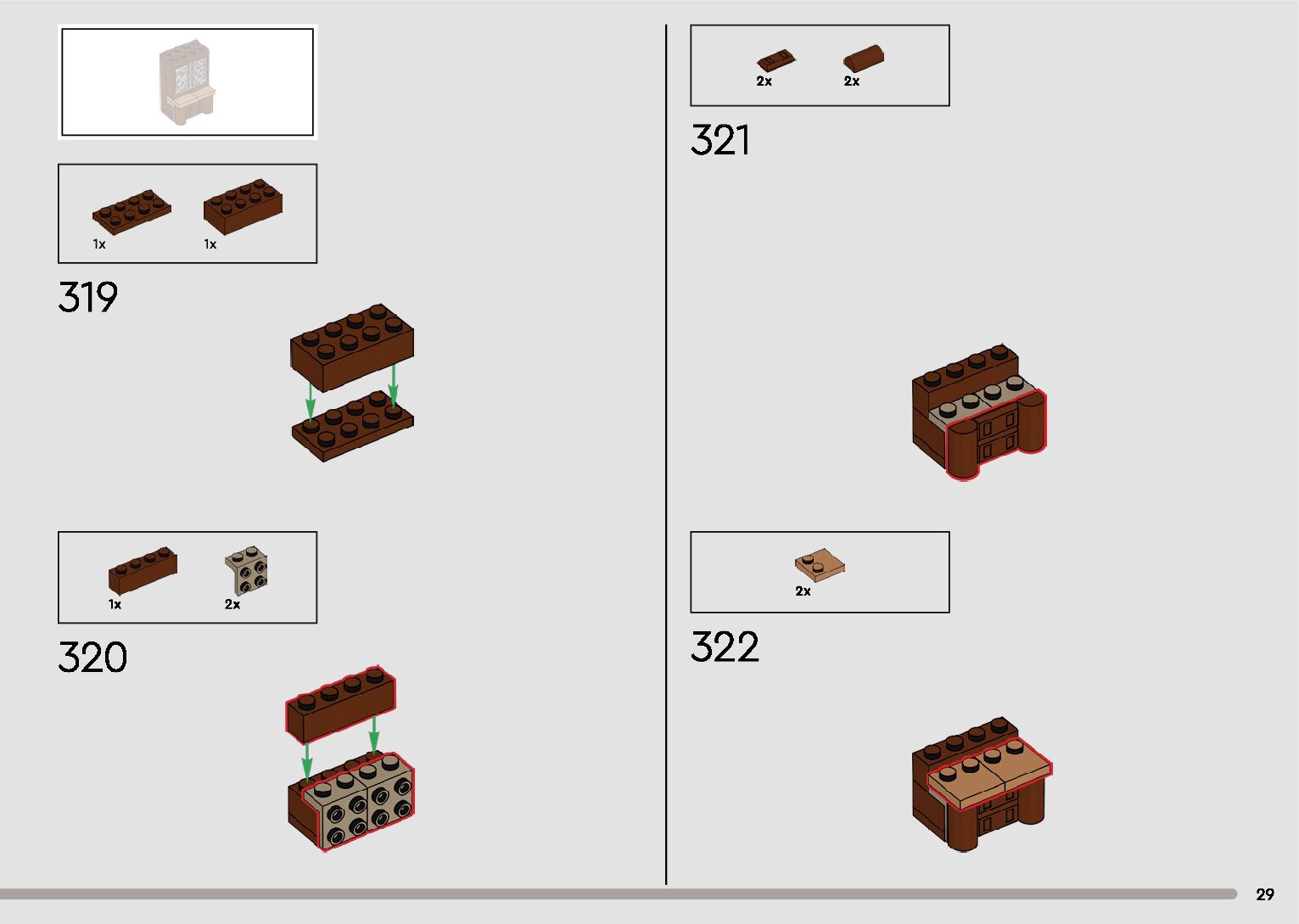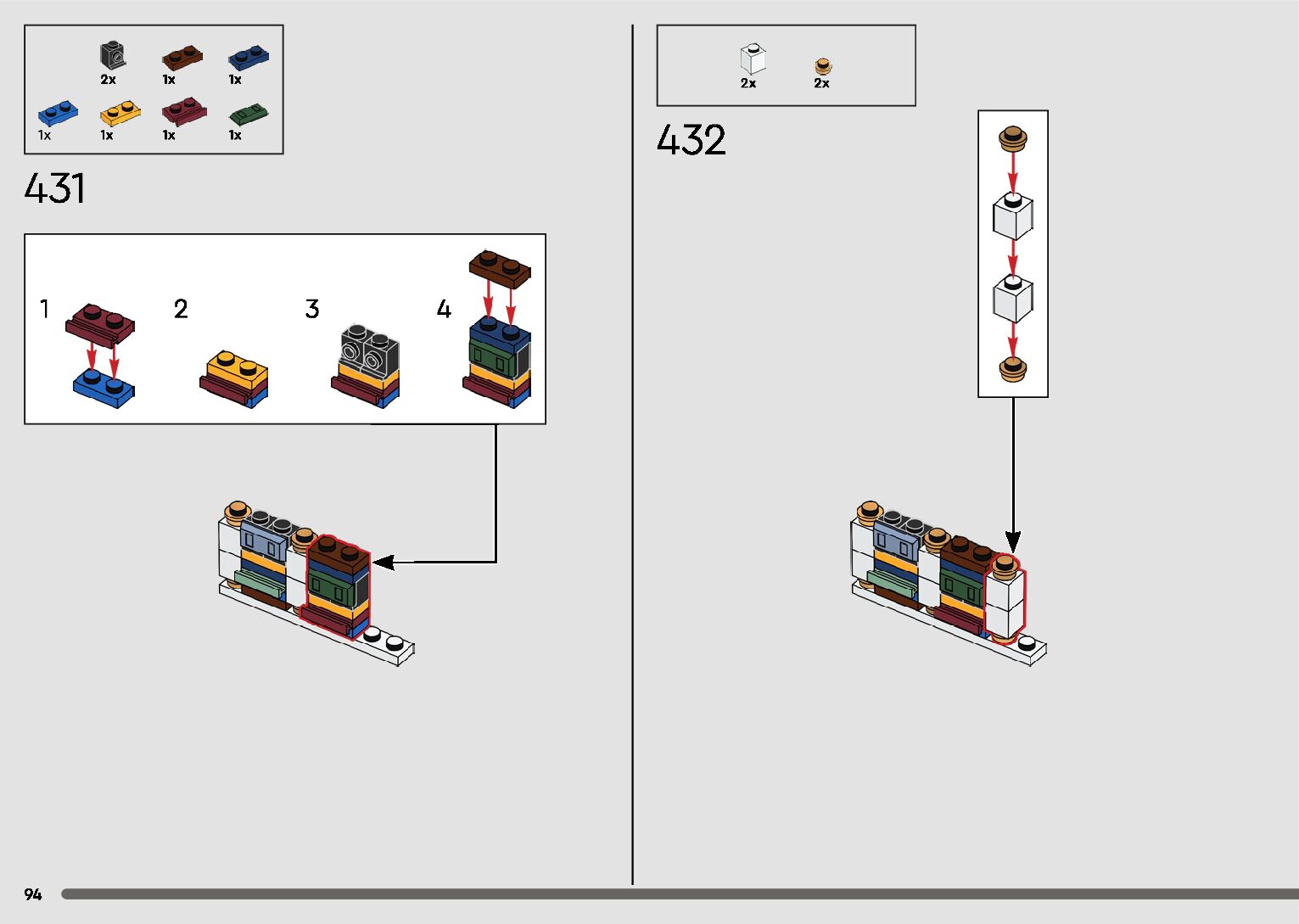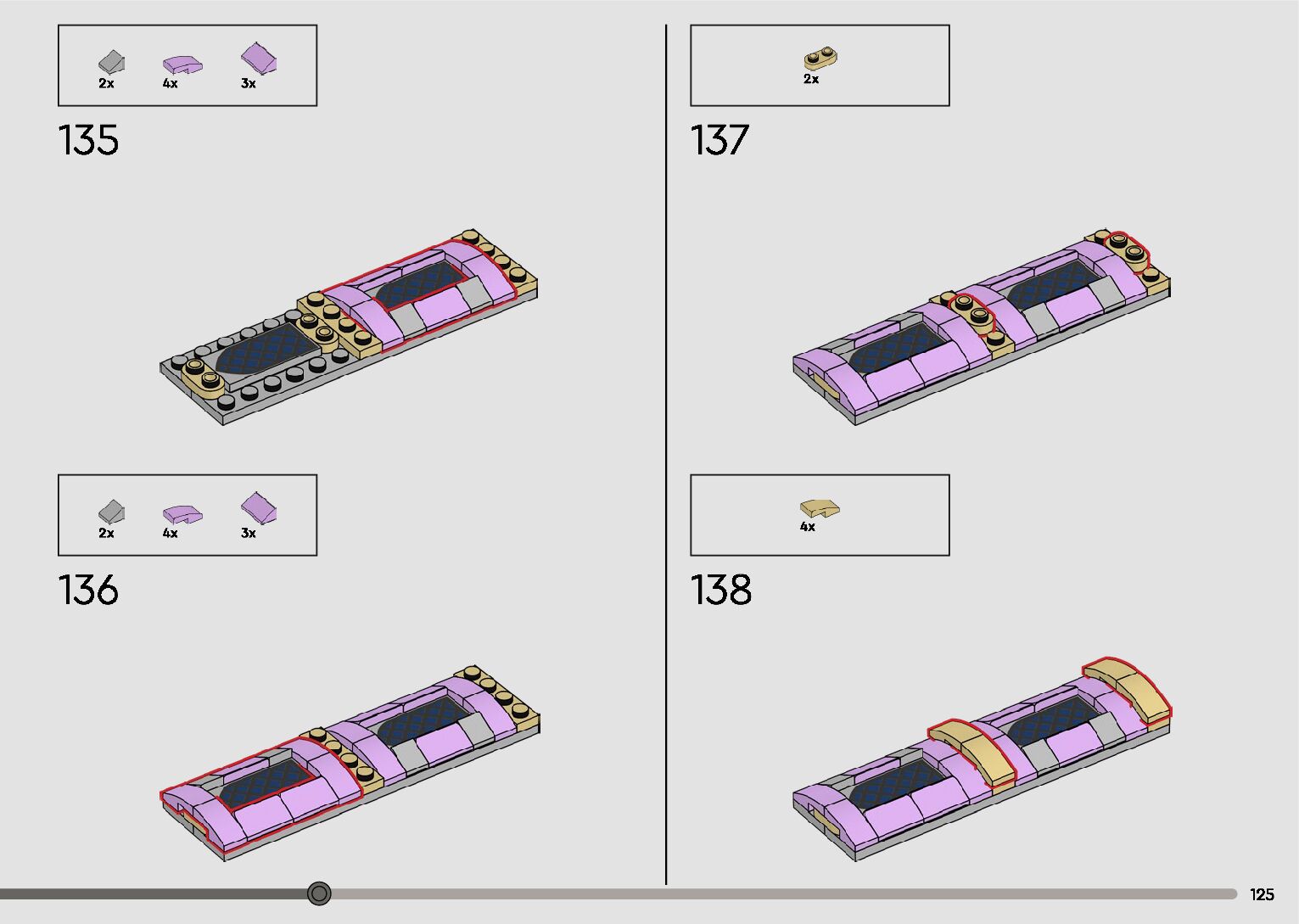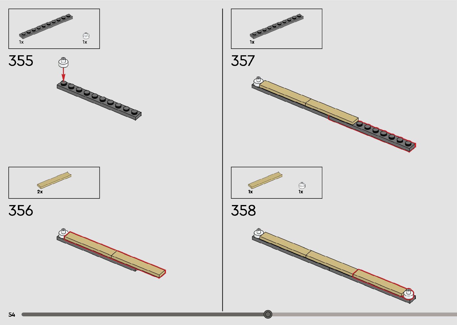 The assembly guide is prepared in a very understandable way for children and adult LEGO enthusiasts. A total of 384 picture galleries are shown, explaining the step-by-step construction stages for 2 different structures.