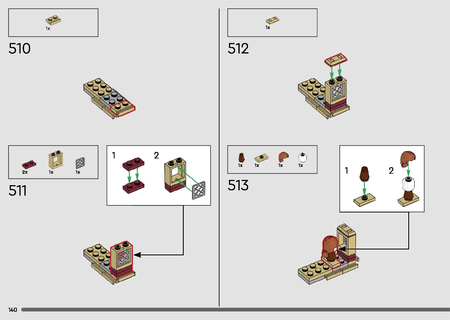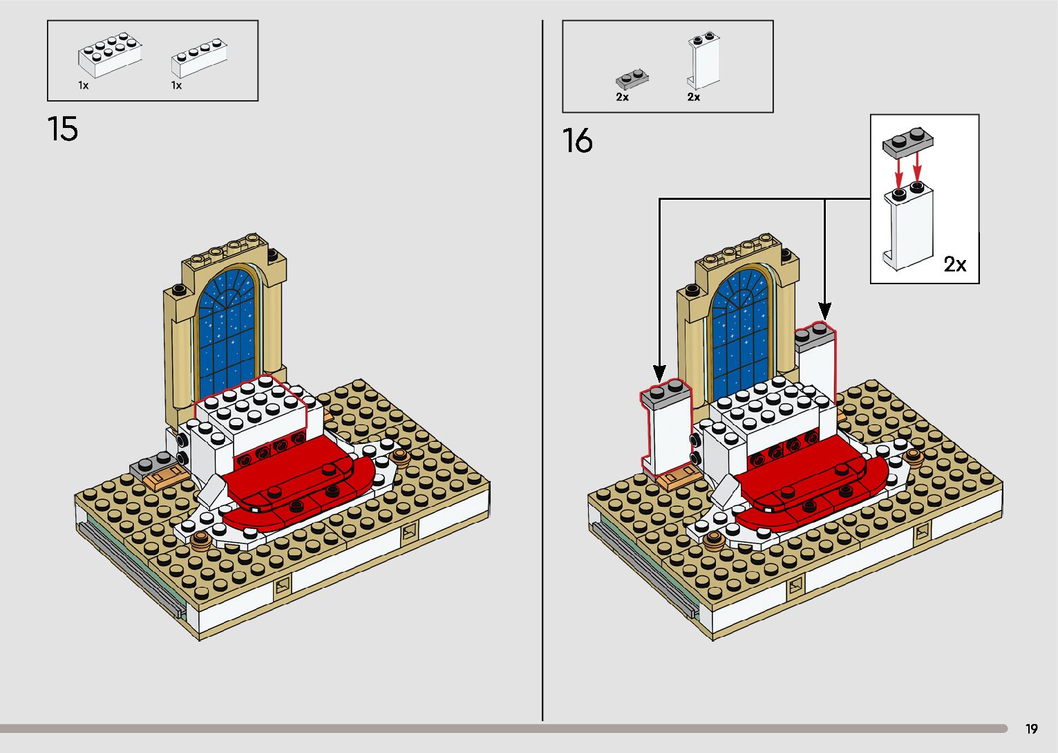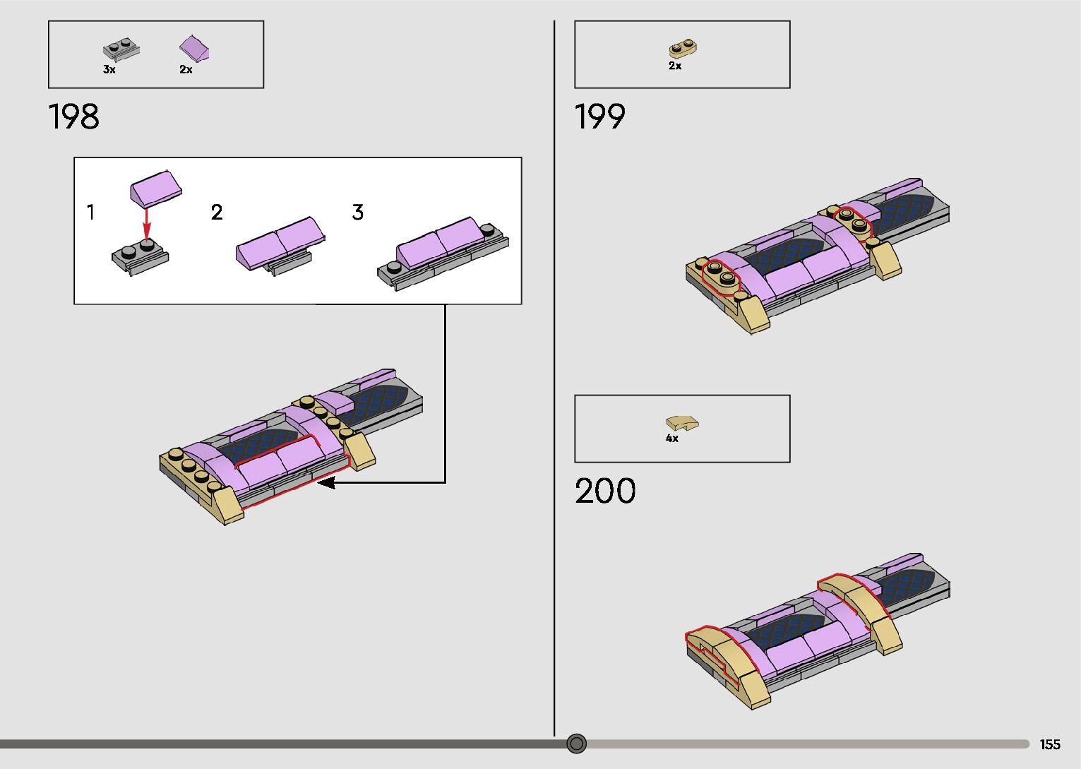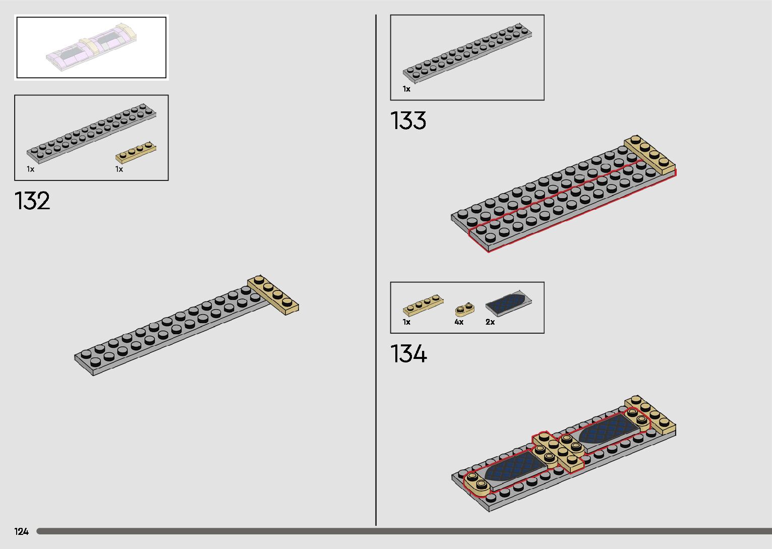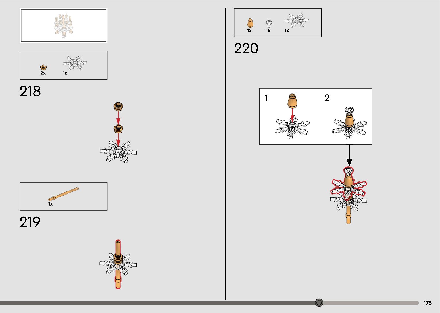 The assembly guide is prepared in a very understandable way for children and adult LEGO enthusiasts. A total of 384 picture galleries are shown, explaining the step-by-step construction stages for 2 different structures.