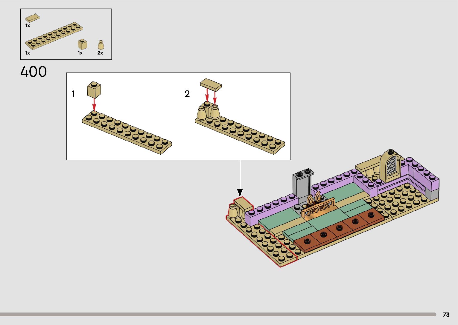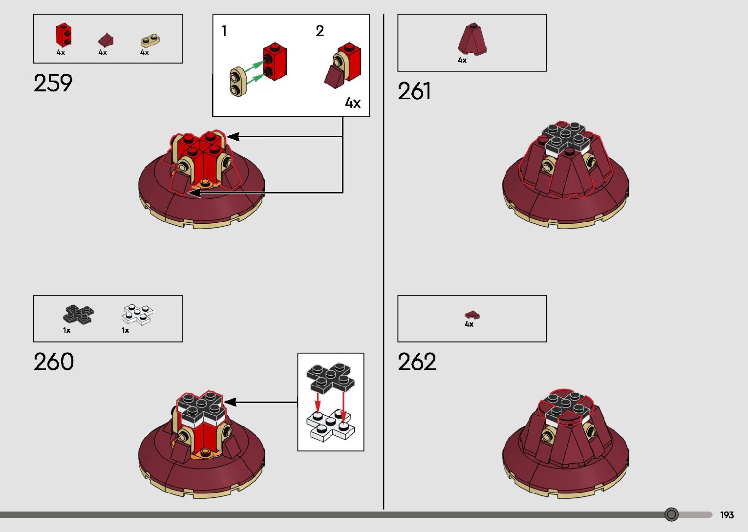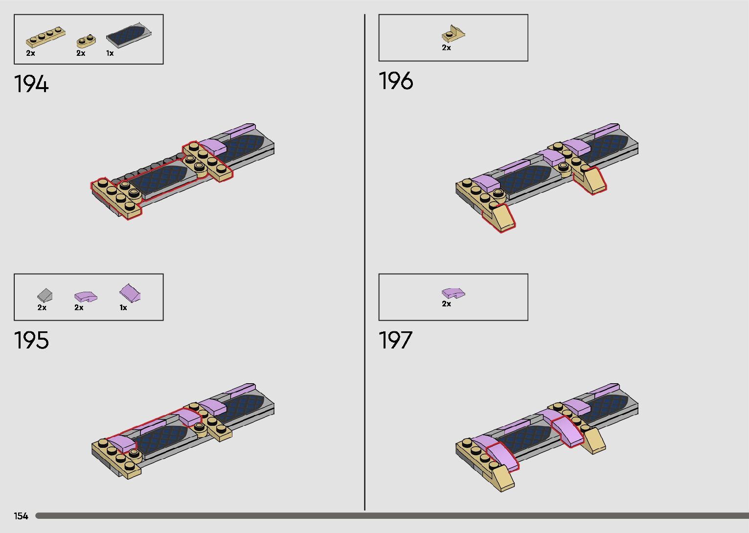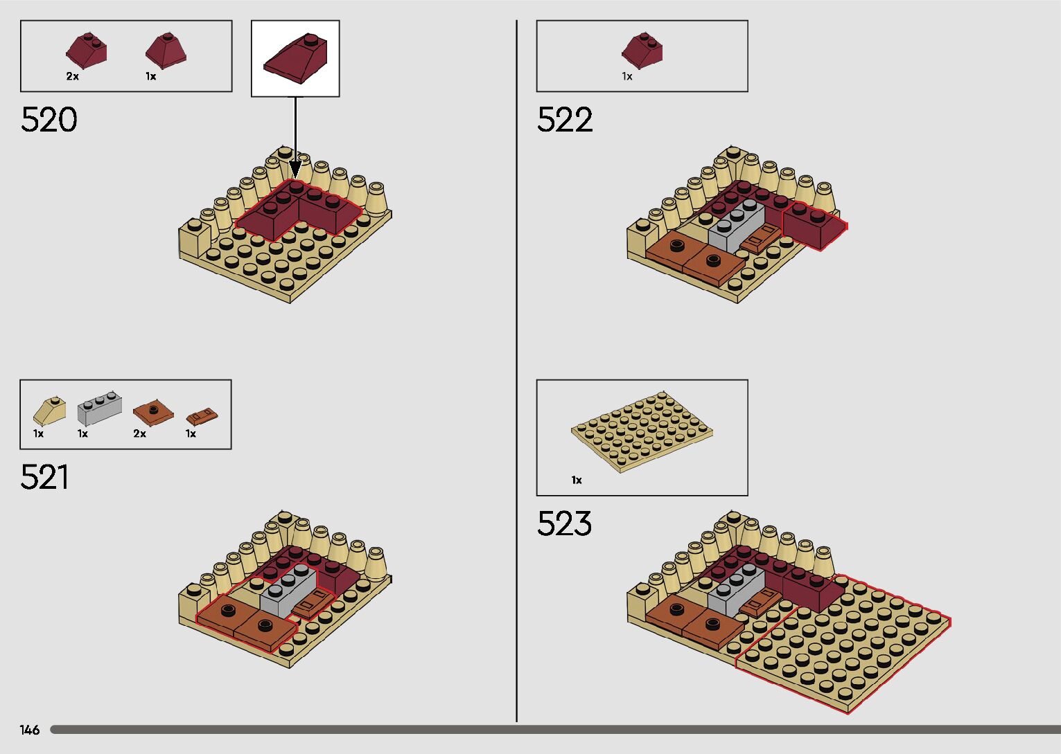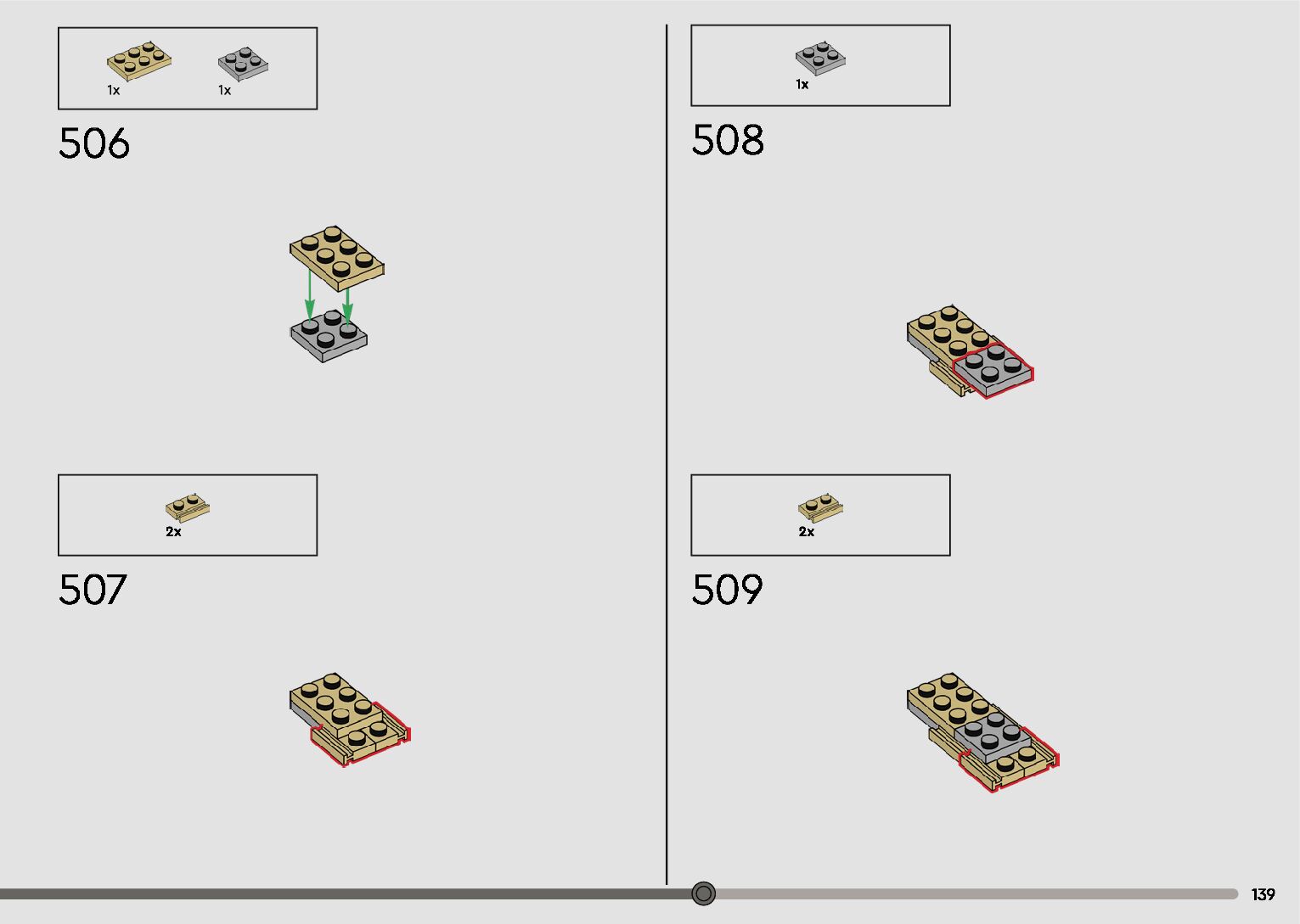 The assembly guide is prepared in a very understandable way for children and adult LEGO enthusiasts. A total of 384 picture galleries are shown, explaining the step-by-step construction stages for 2 different structures.
