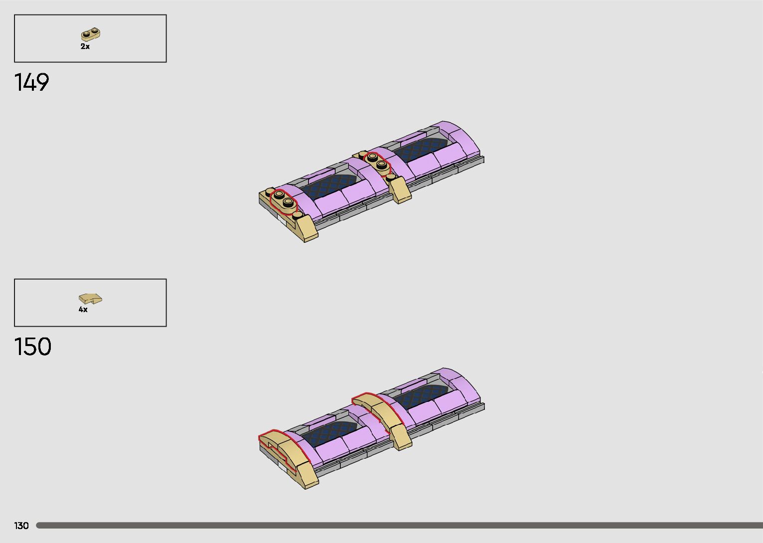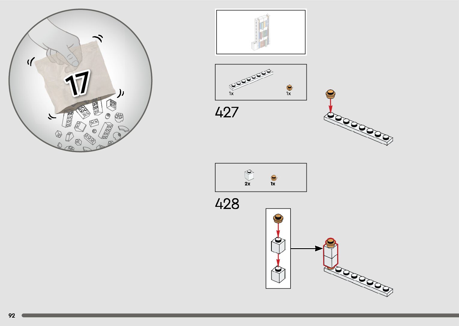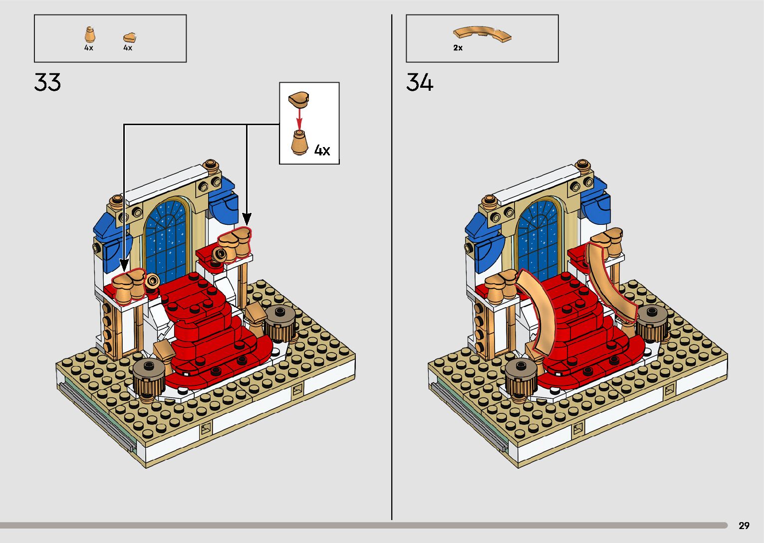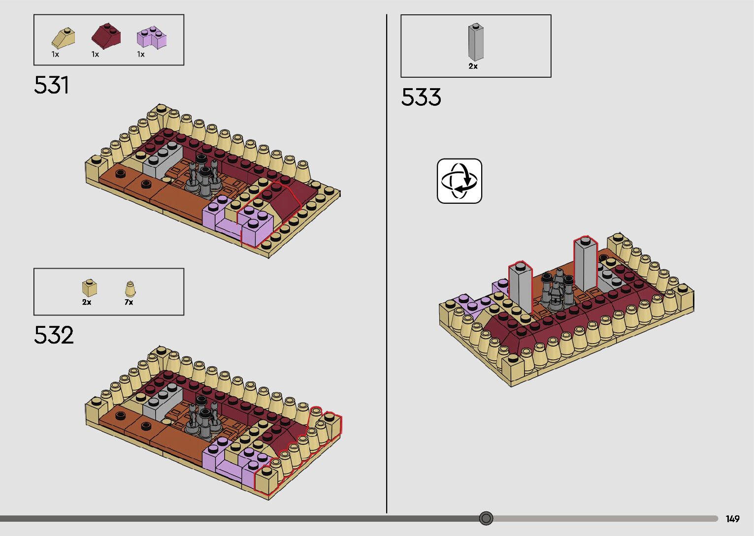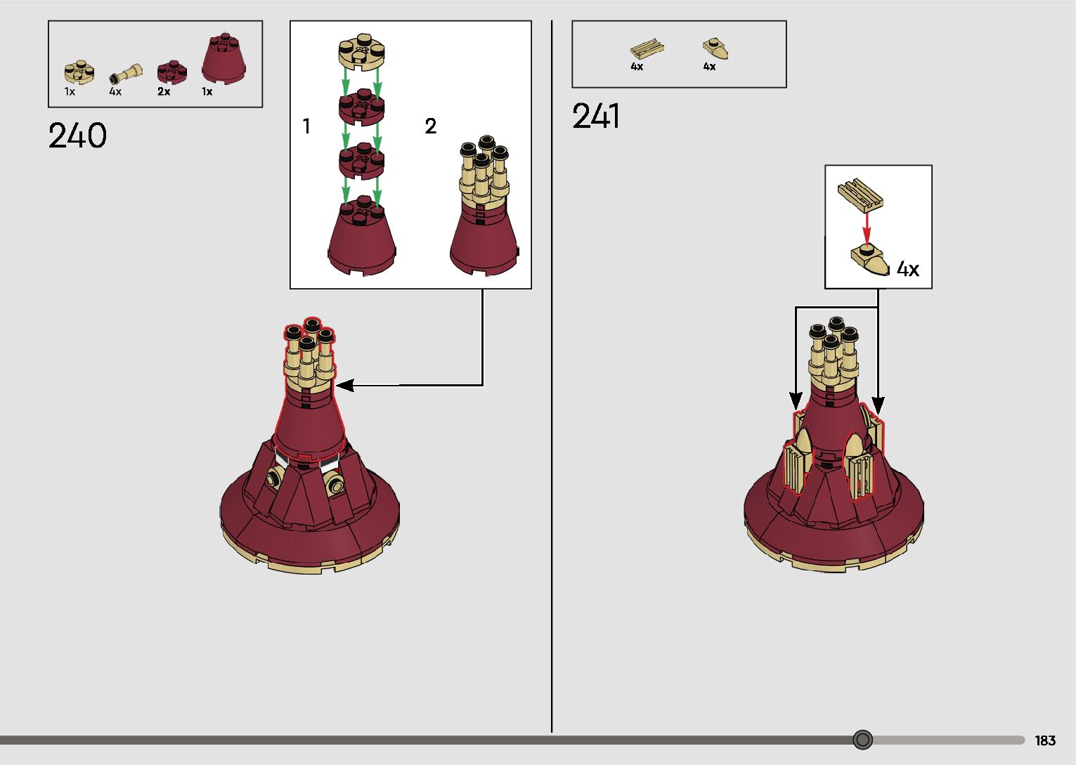 The assembly guide is prepared in a very understandable way for children and adult LEGO enthusiasts. A total of 384 picture galleries are shown, explaining the step-by-step construction stages for 2 different structures.