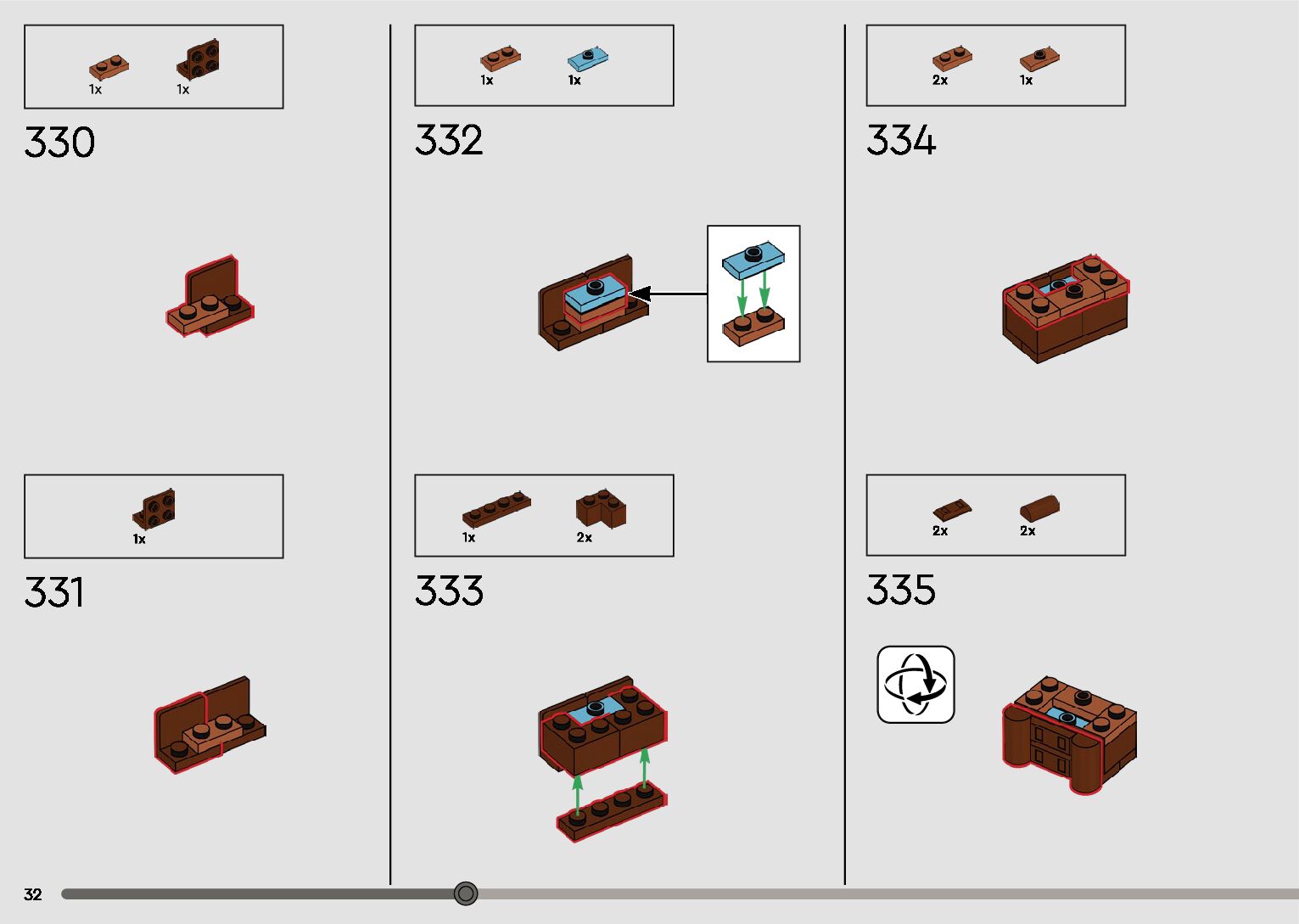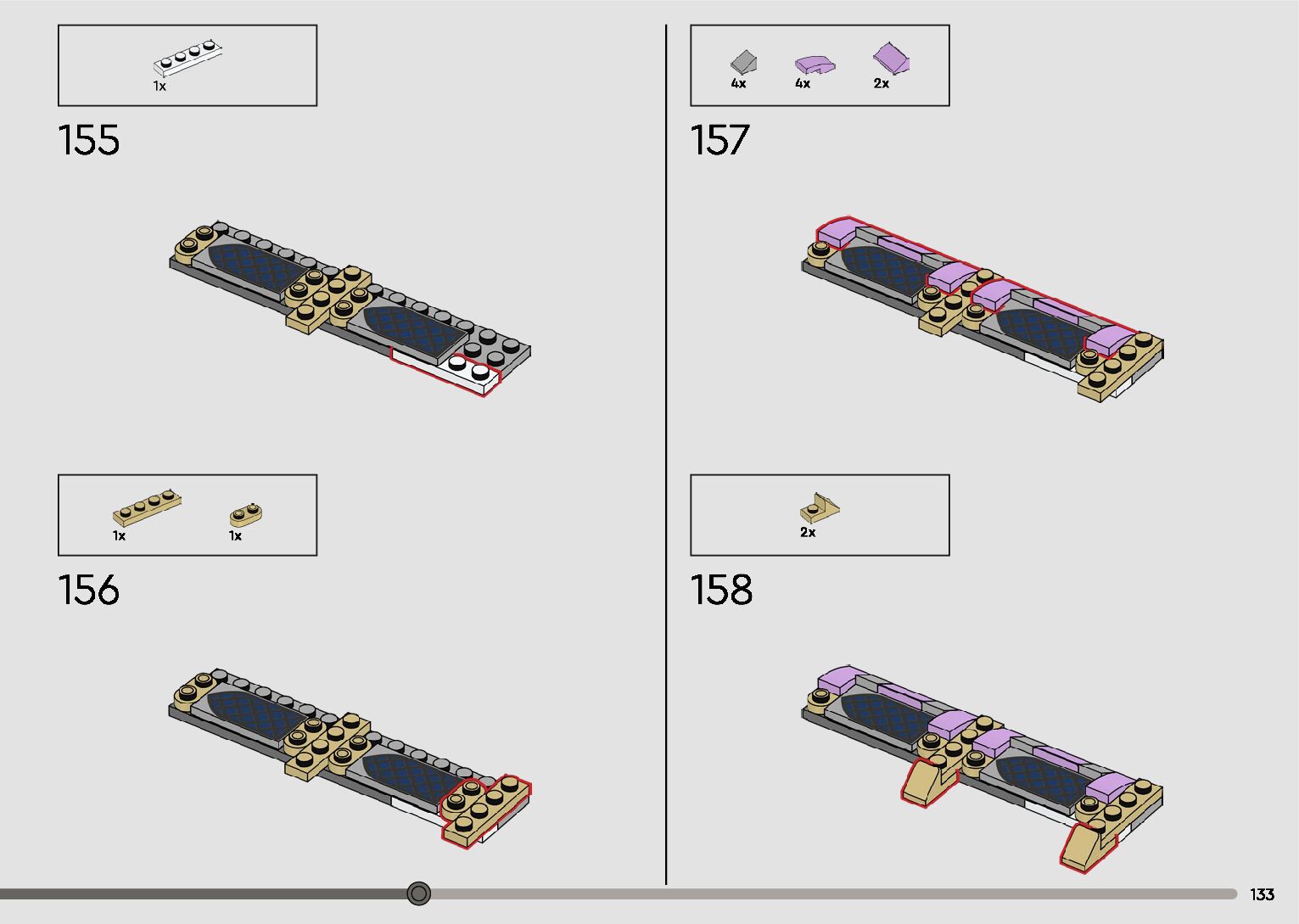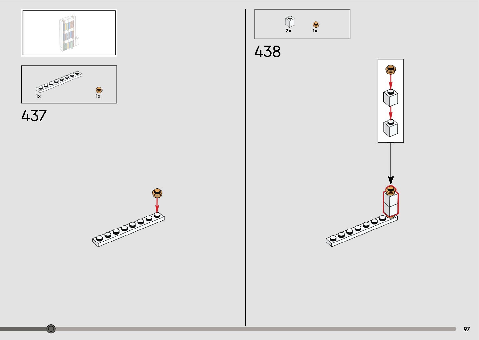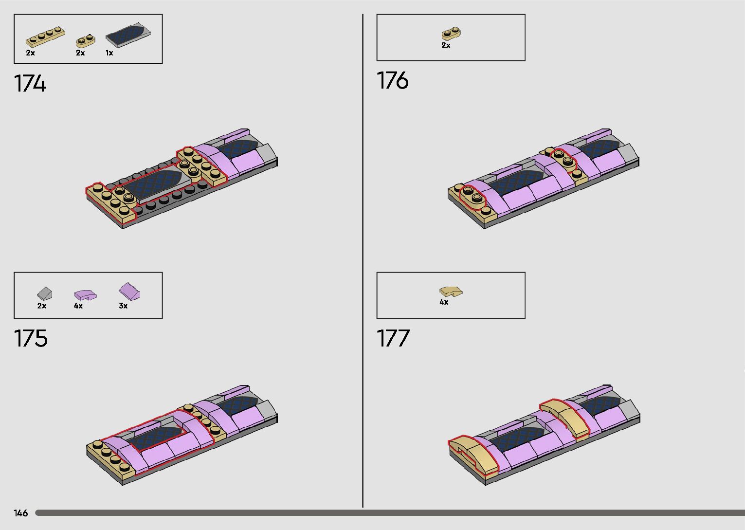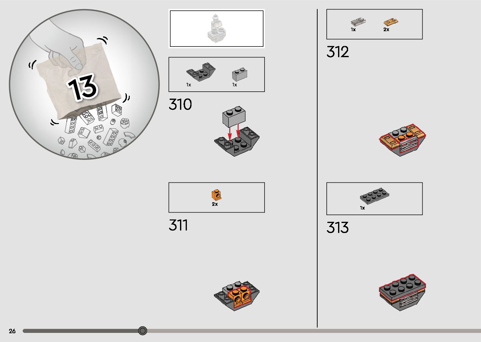The assembly guide is prepared in a very understandable way for children and adult LEGO enthusiasts. A total of 384 picture galleries are shown, explaining the step-by-step construction stages for 2 different structures.