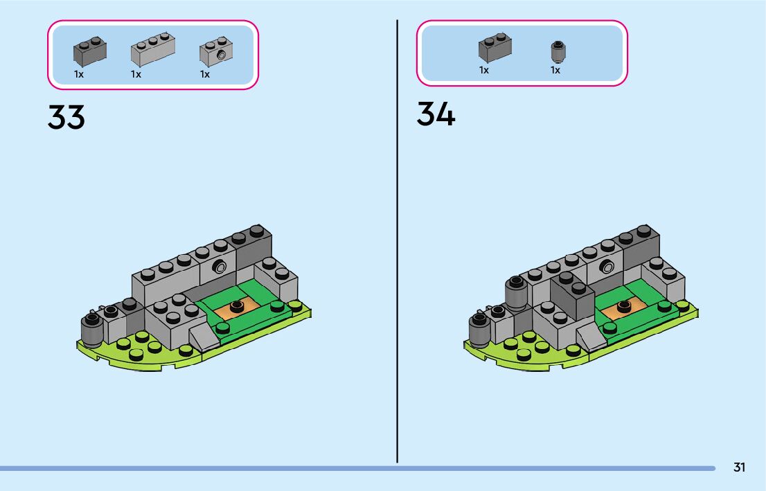 The assembly guide is prepared in a very understandable way for children and adult LEGO enthusiasts. A total of 356 picture galleries are shown, explaining the step-by-step construction stages for 5 different structures.