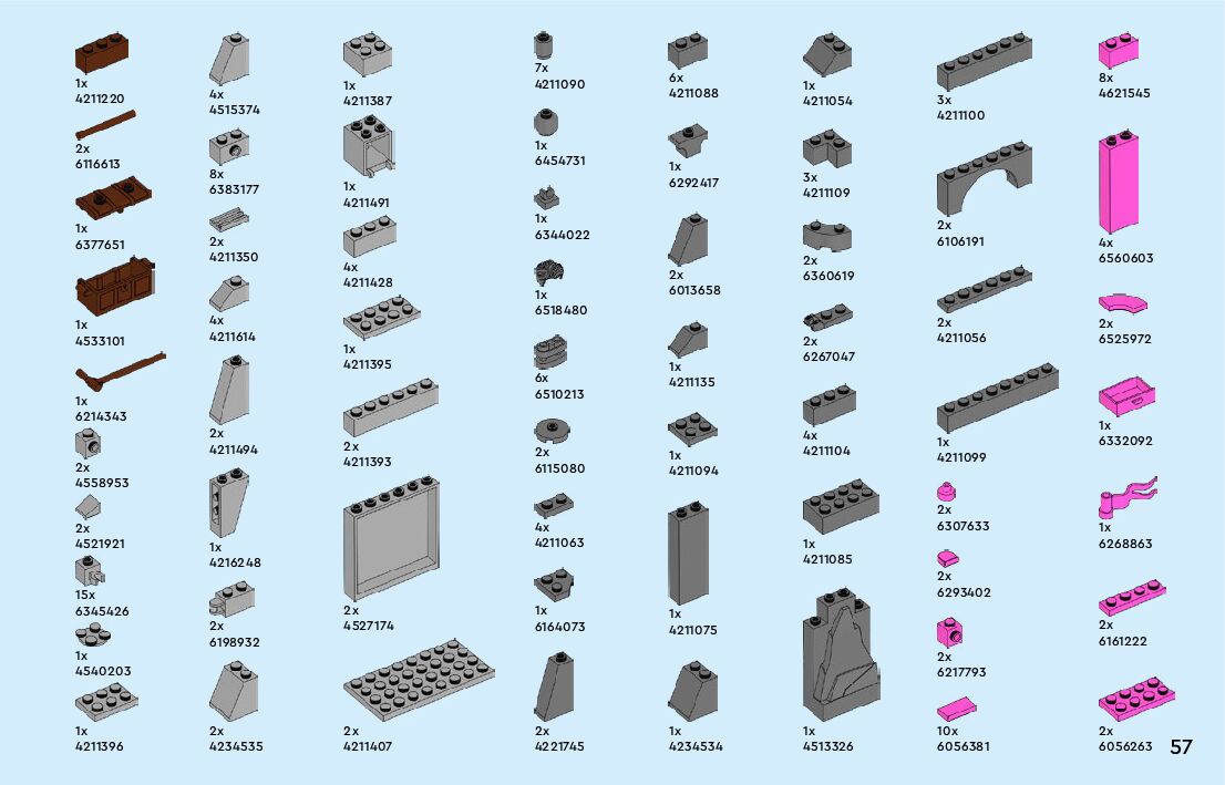 On this page you can find the original construction manual for the LEGO 43267 set. With the assembly manual you can easily learn how to build the Princess Castle & Royal Pets step by step. The set was released in 2025.