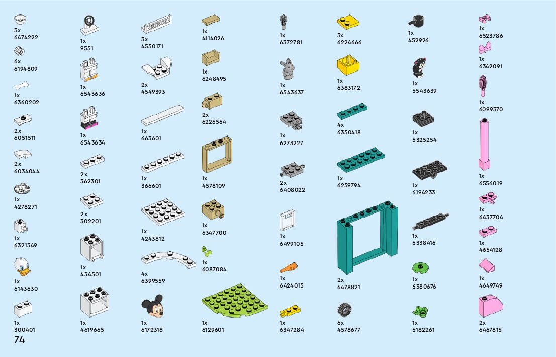 On this page you can find the original construction manual for the LEGO 43274 set. With the assembly manual you can easily learn how to build the Minnie's Pet Hotel step by step. The set was released in 2025.