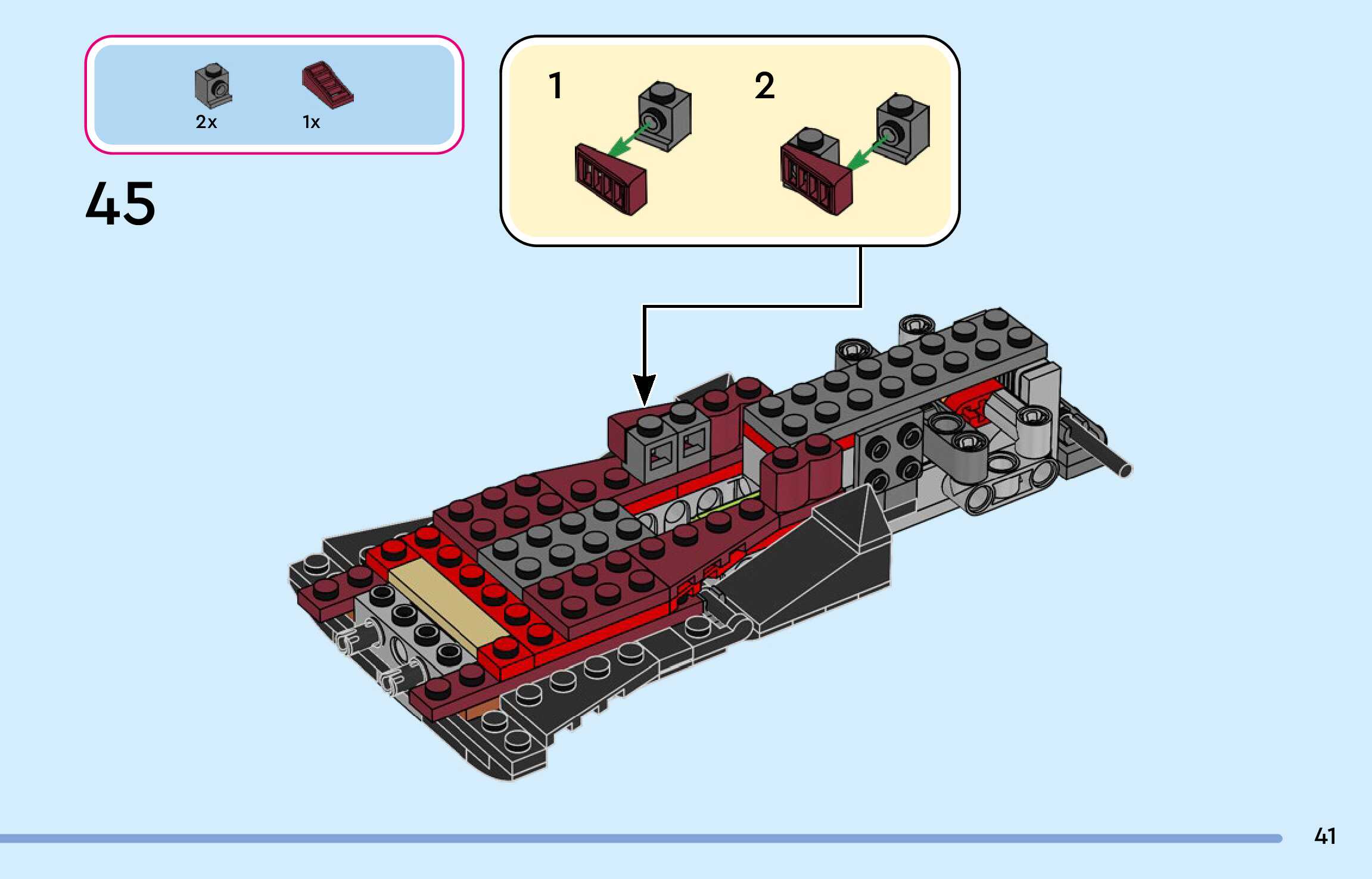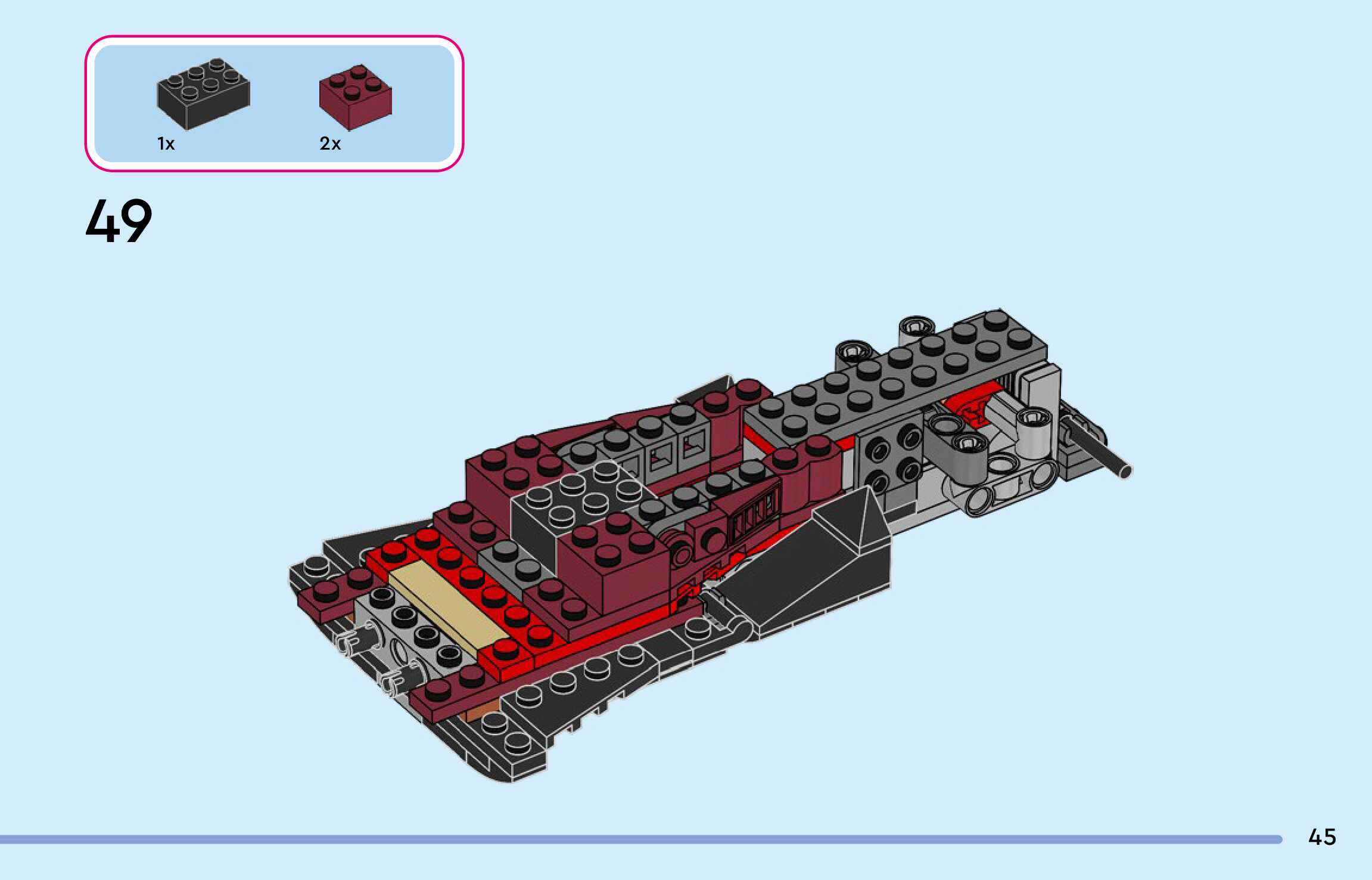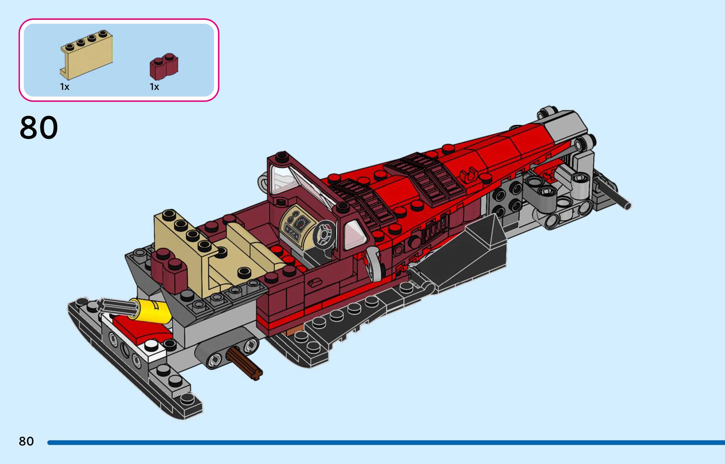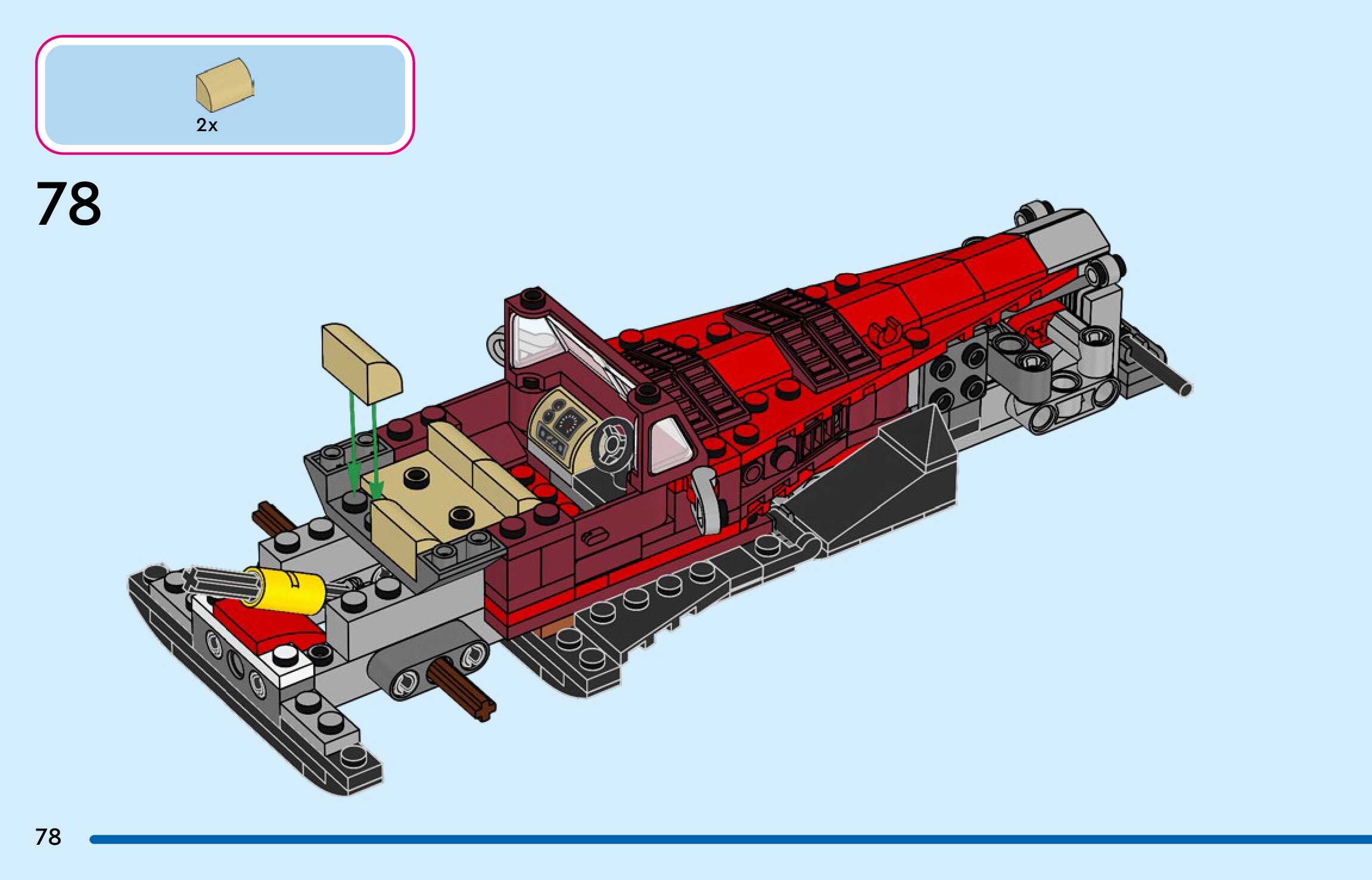 The assembly guide is prepared in a very understandable way for children and adult LEGO enthusiasts. A total of 136 picture galleries are shown, explaining the step-by-step construction stages for 1 different structures.