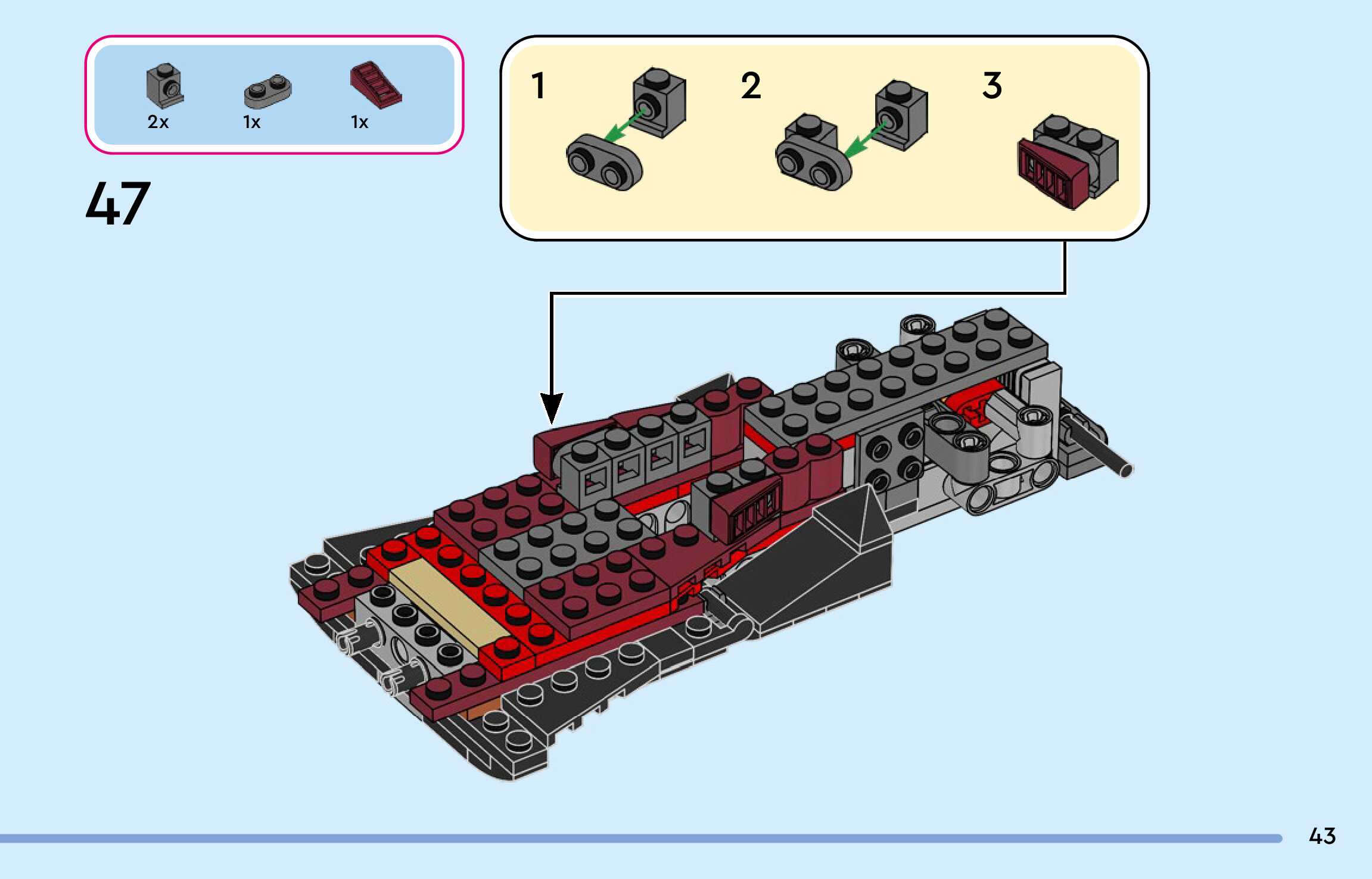 On this page you can find the original construction manual for the LEGO 43277 set. With the assembly manual you can easily learn how to build the Cruella De Vil's Car step by step. The set was released in 2025.