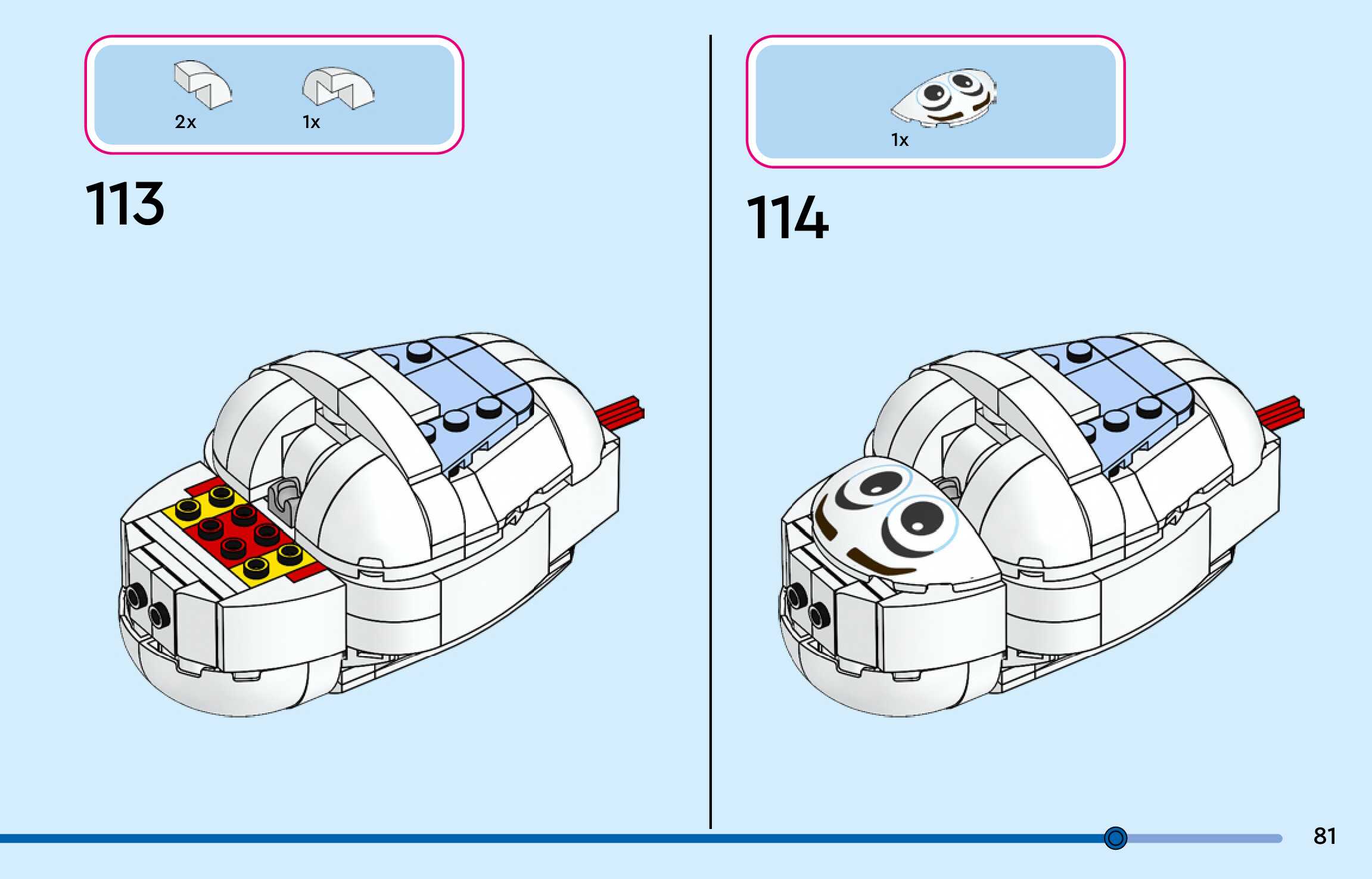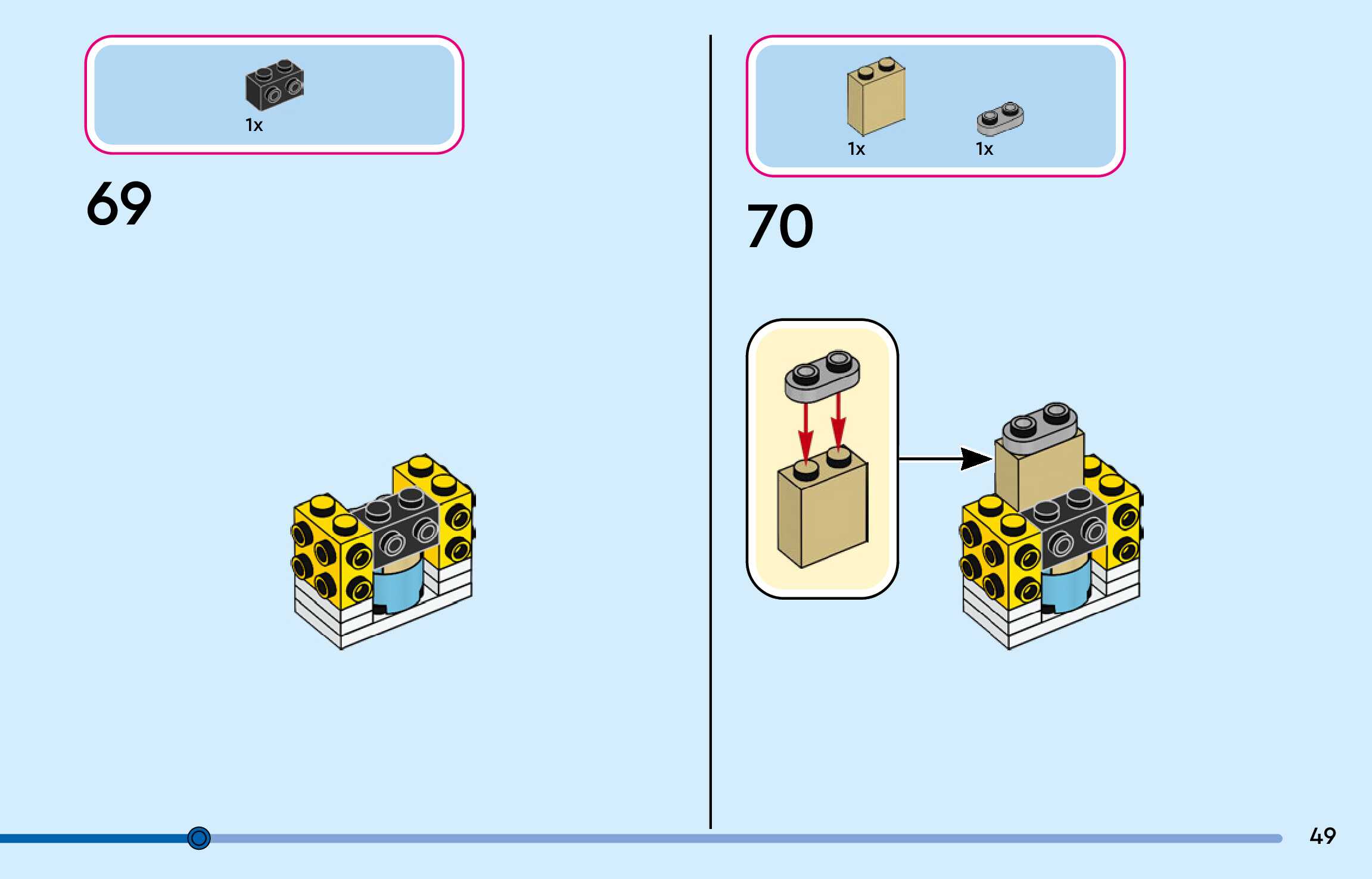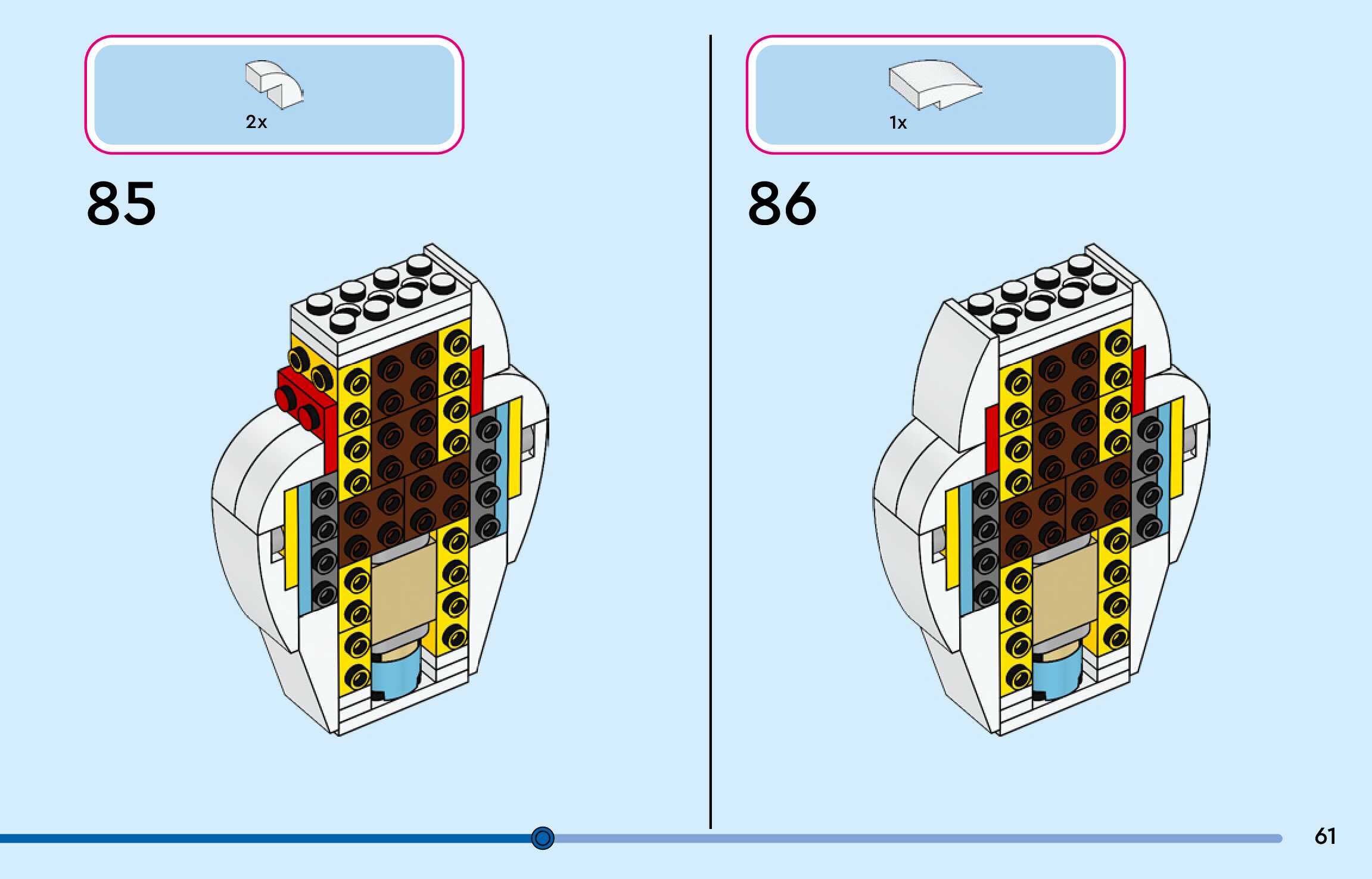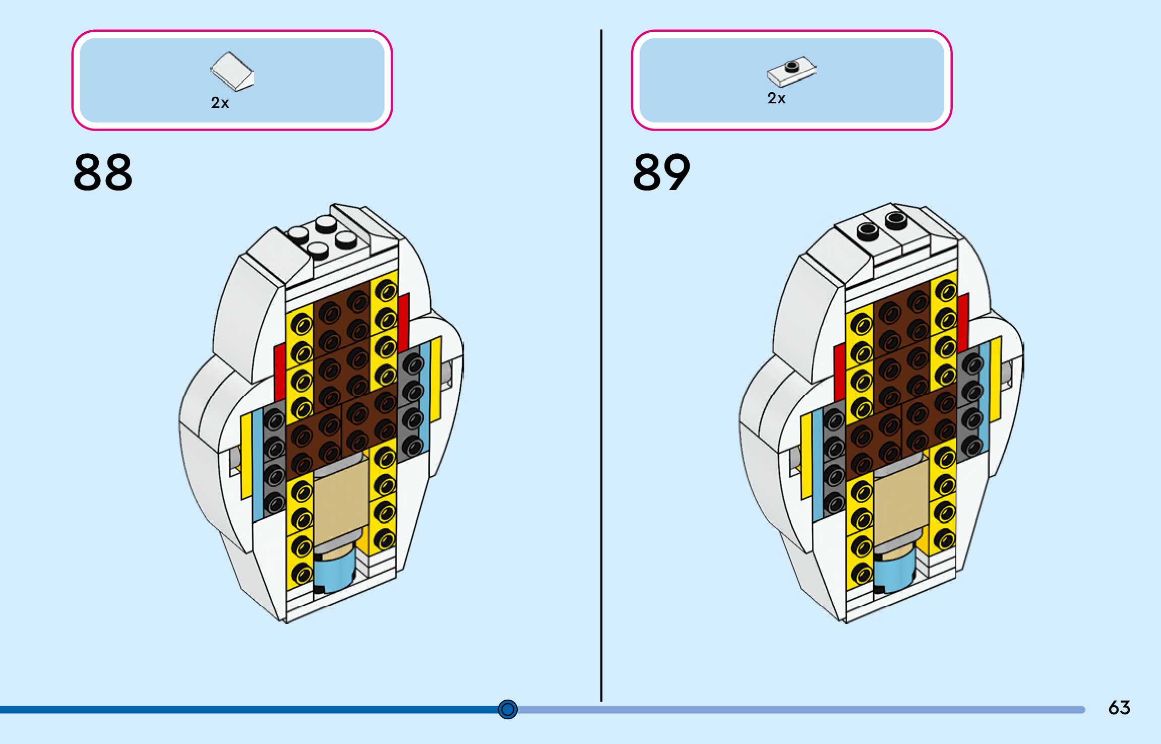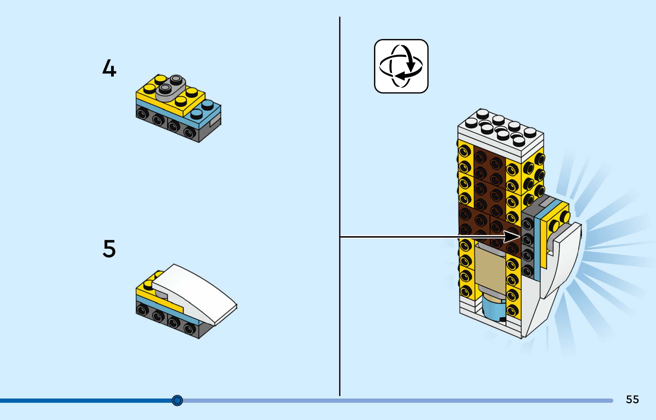 The assembly guide is prepared in a very understandable way for children and adult LEGO enthusiasts. A total of 144 picture galleries are shown, explaining the step-by-step construction stages for 3 different structures.