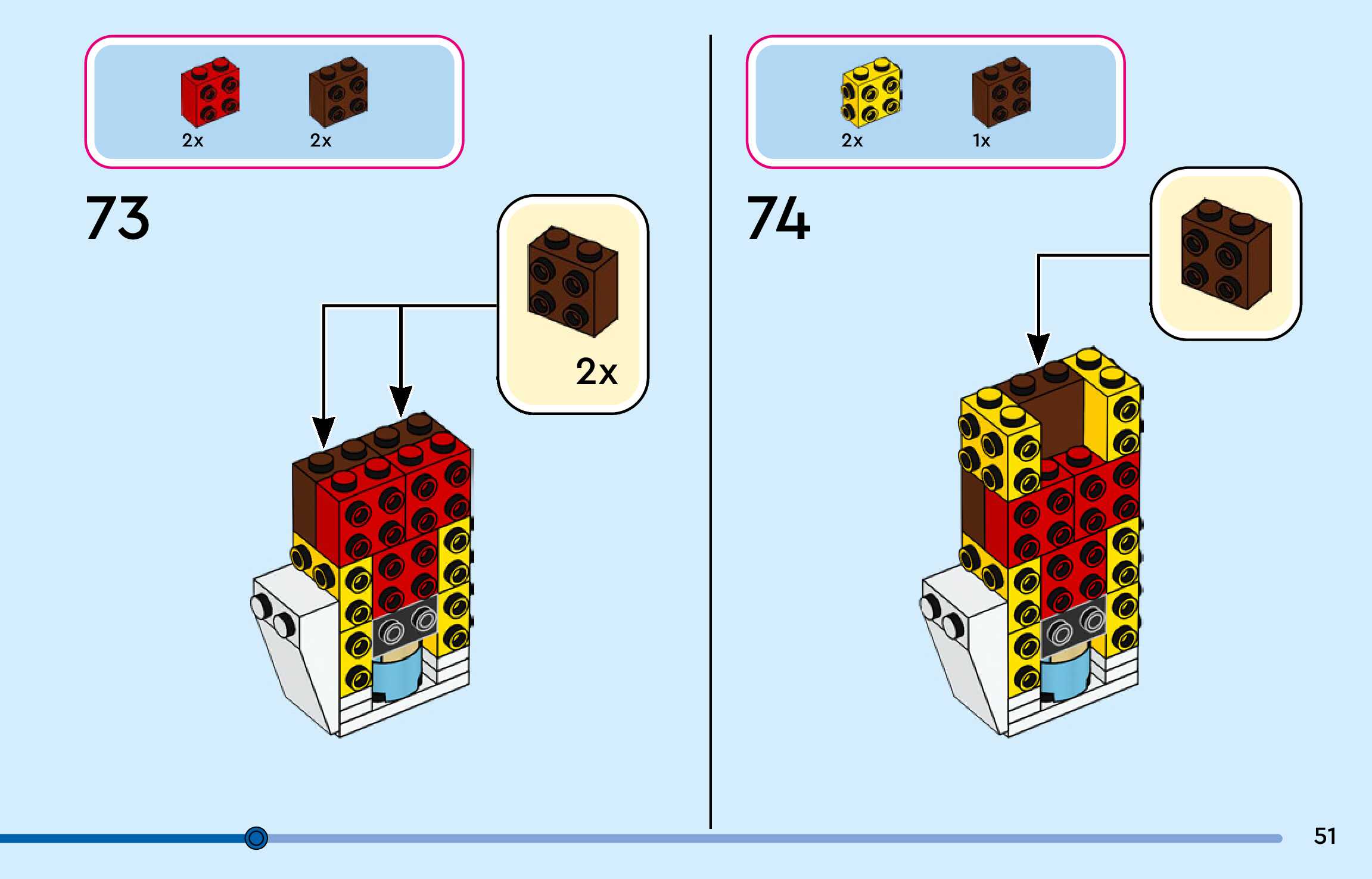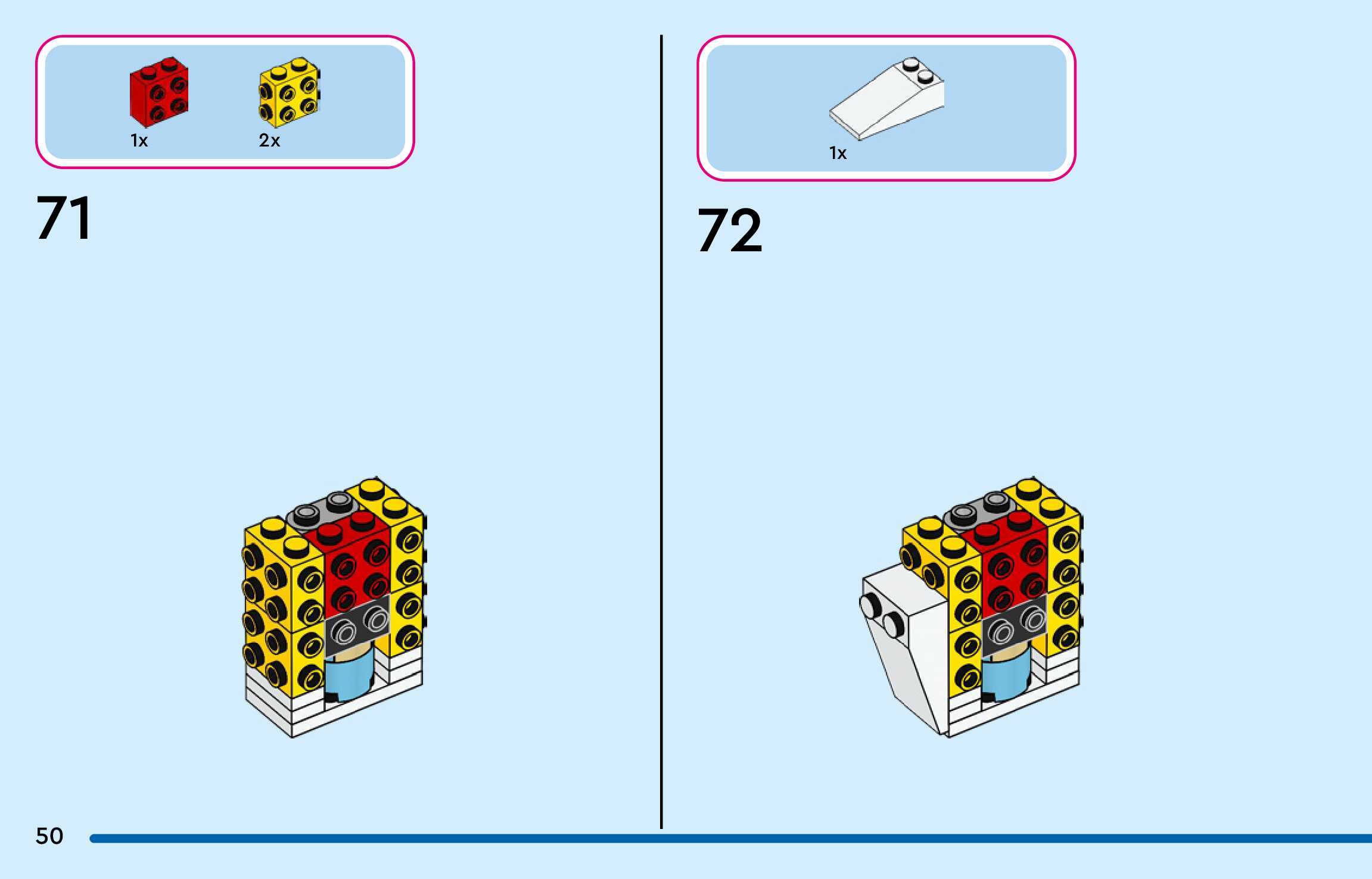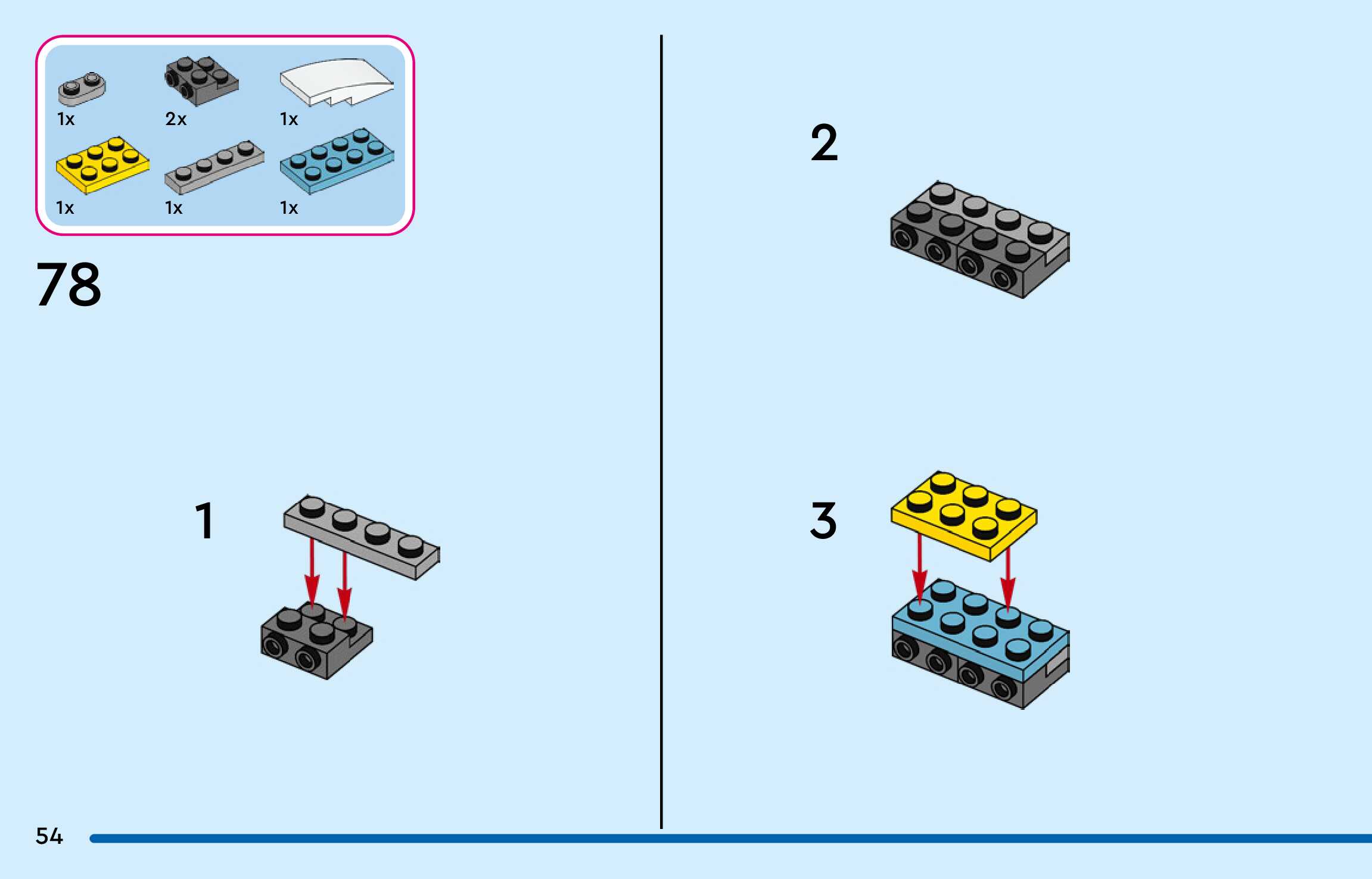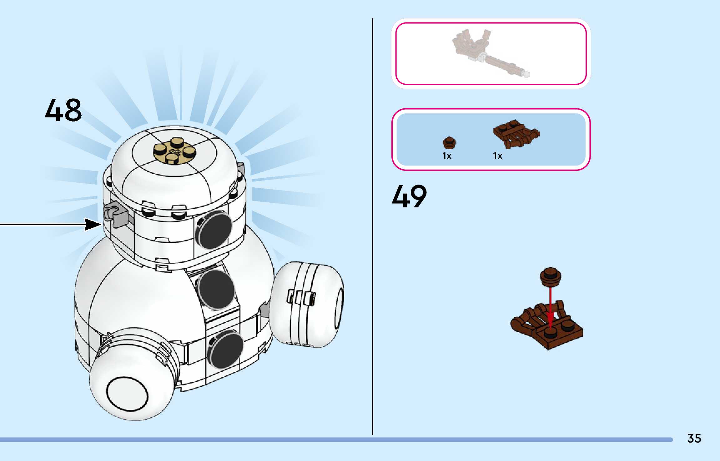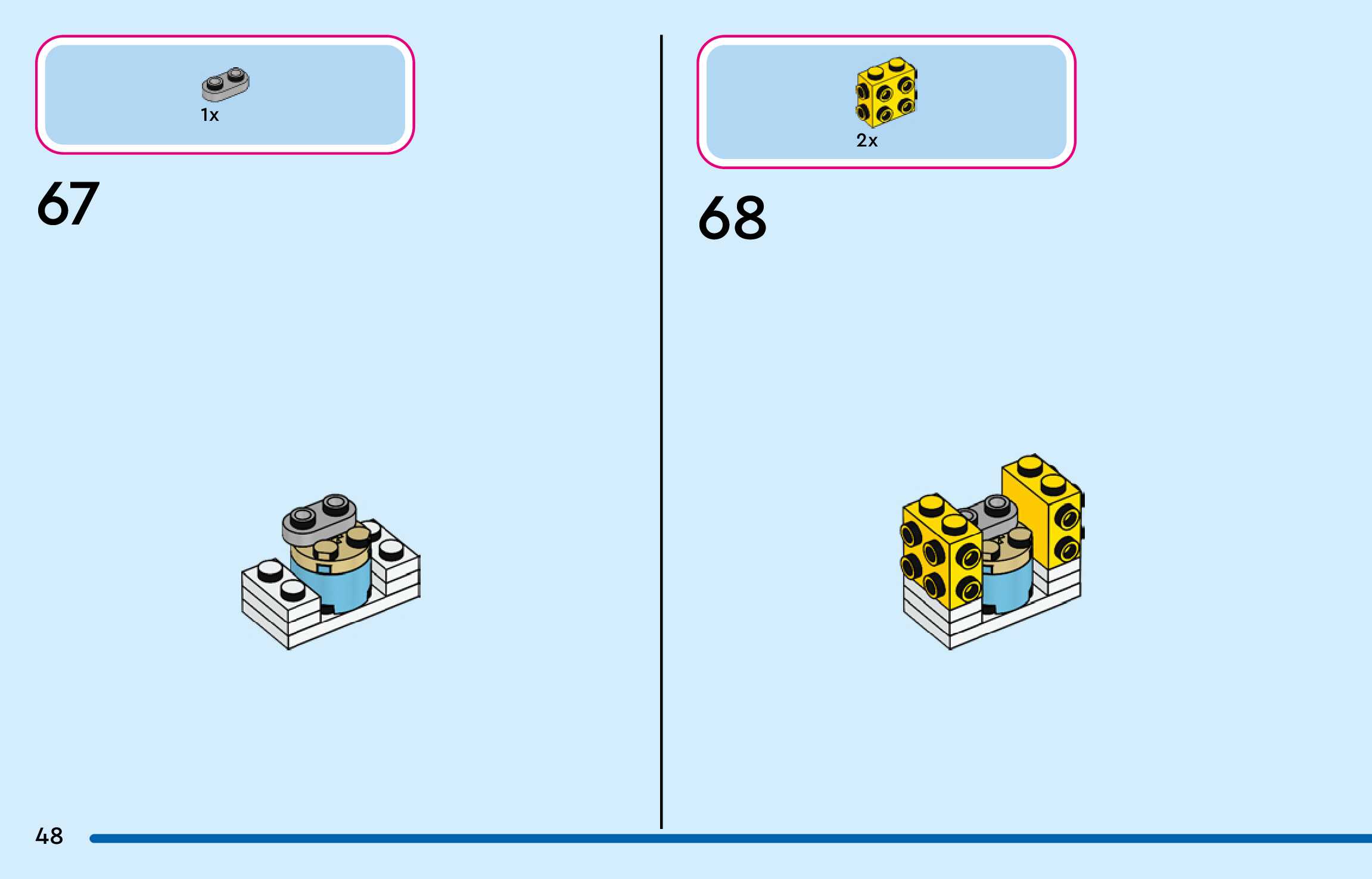 The assembly guide is prepared in a very understandable way for children and adult LEGO enthusiasts. A total of 144 picture galleries are shown, explaining the step-by-step construction stages for 3 different structures.