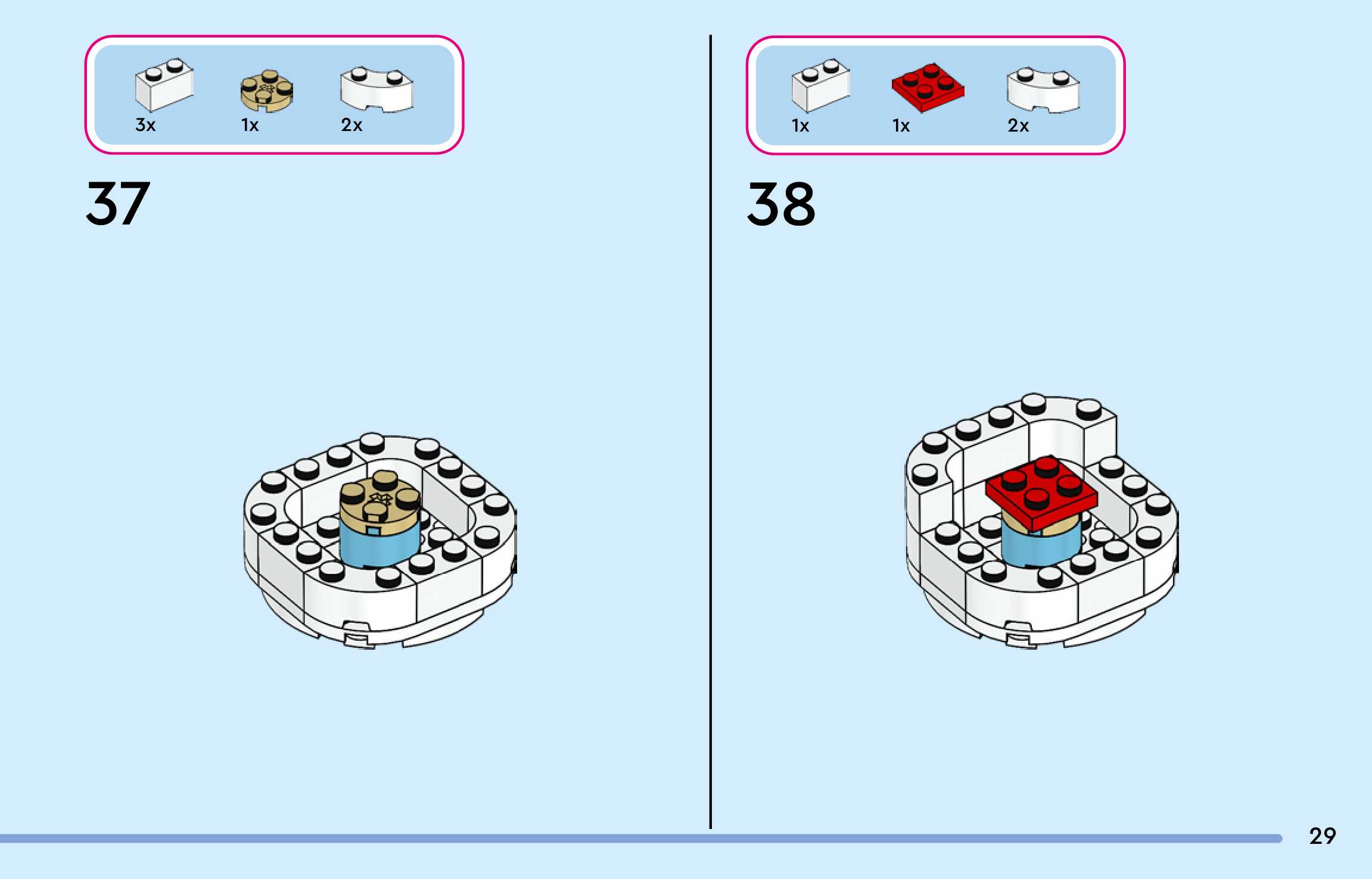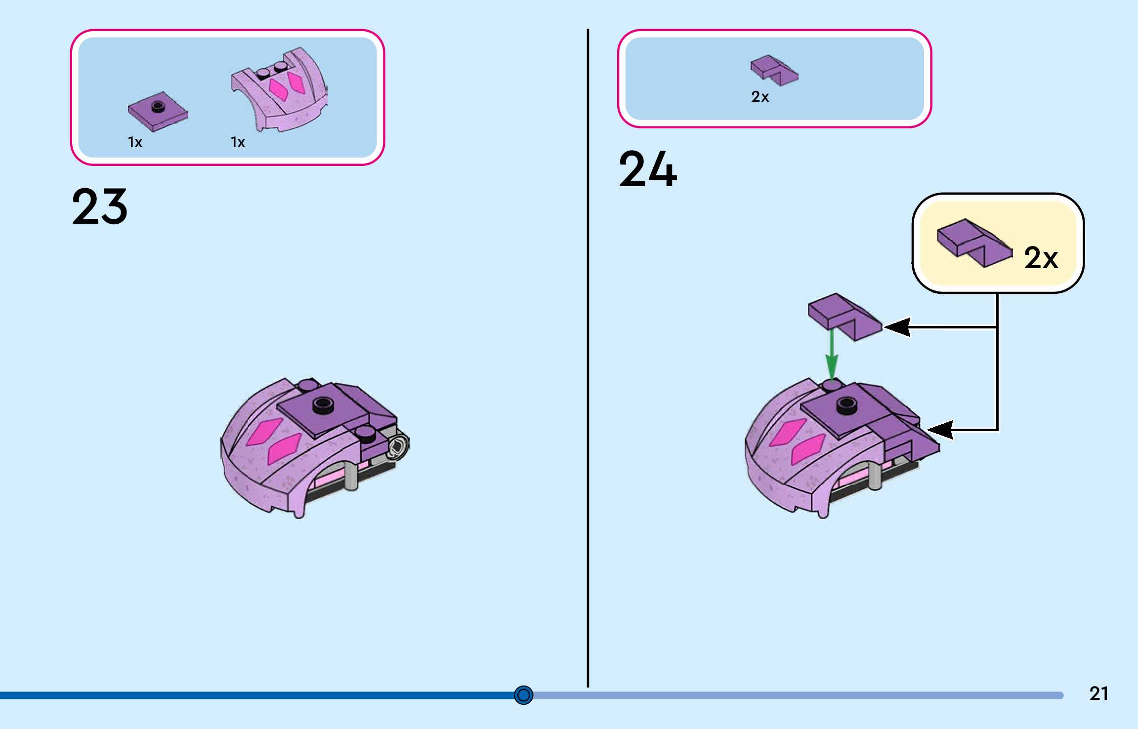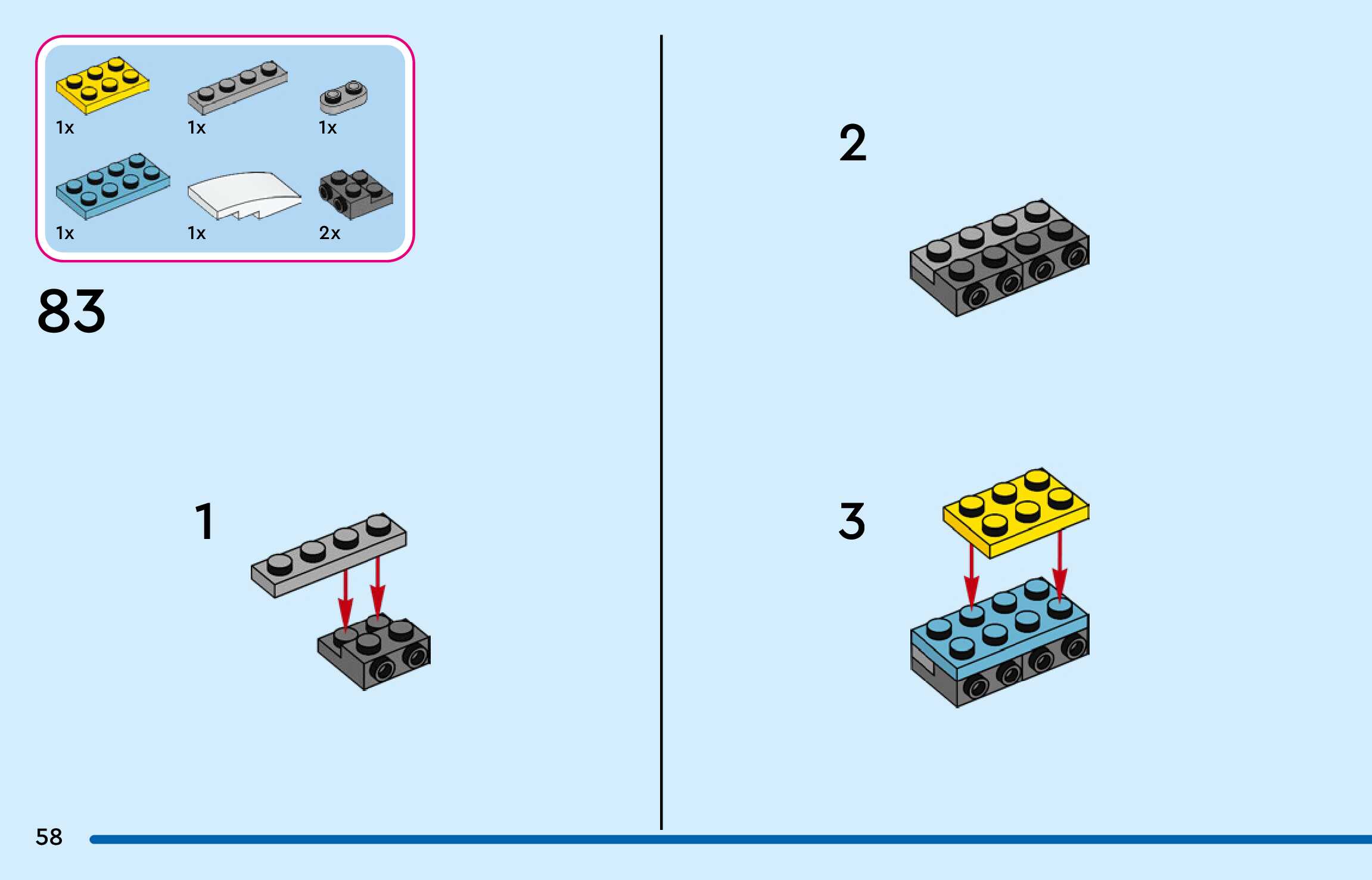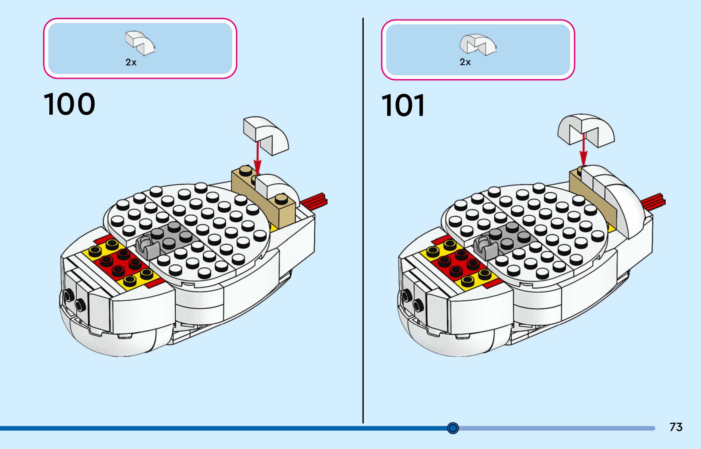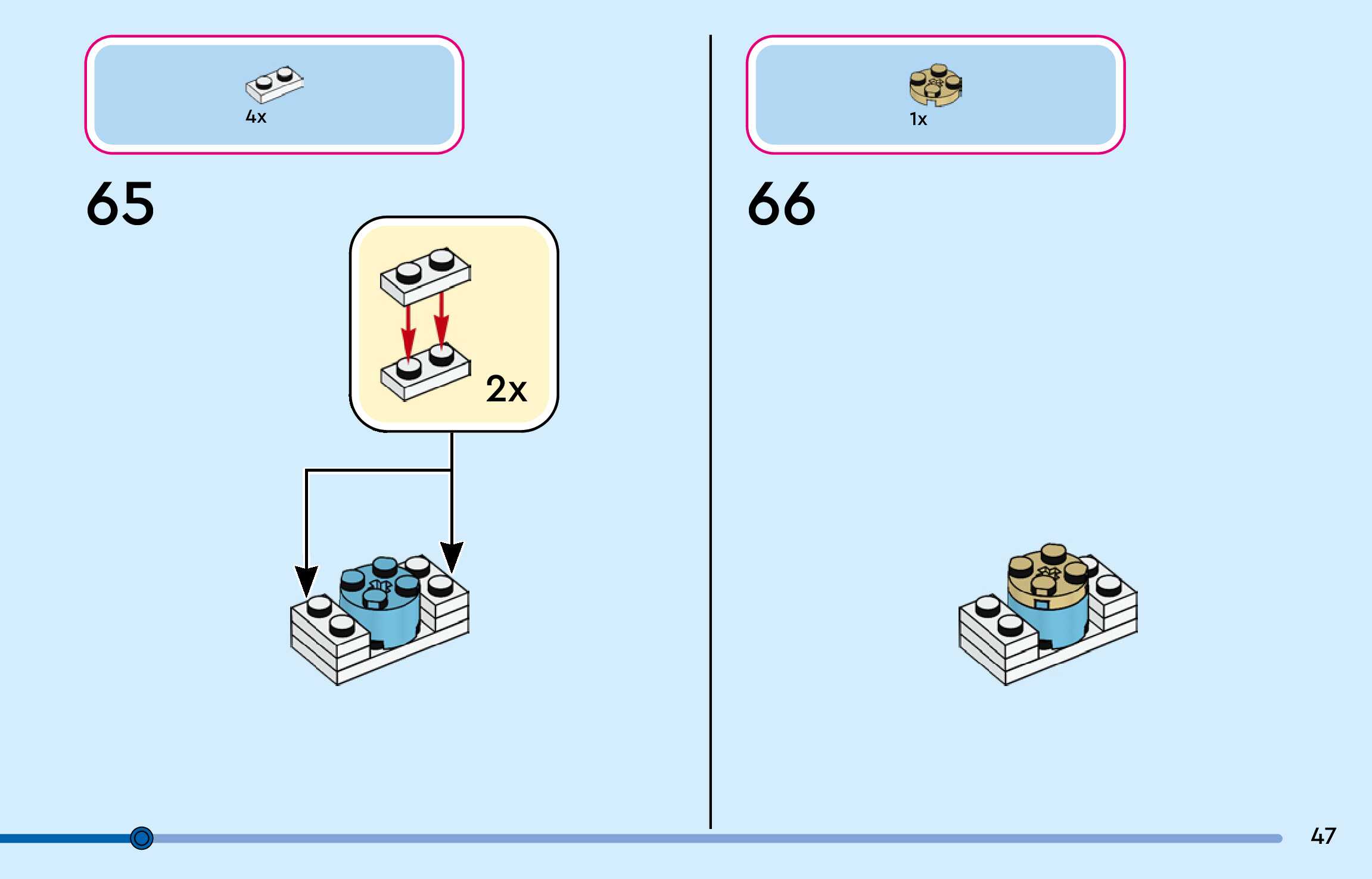 The assembly guide is prepared in a very understandable way for children and adult LEGO enthusiasts. A total of 144 picture galleries are shown, explaining the step-by-step construction stages for 3 different structures.