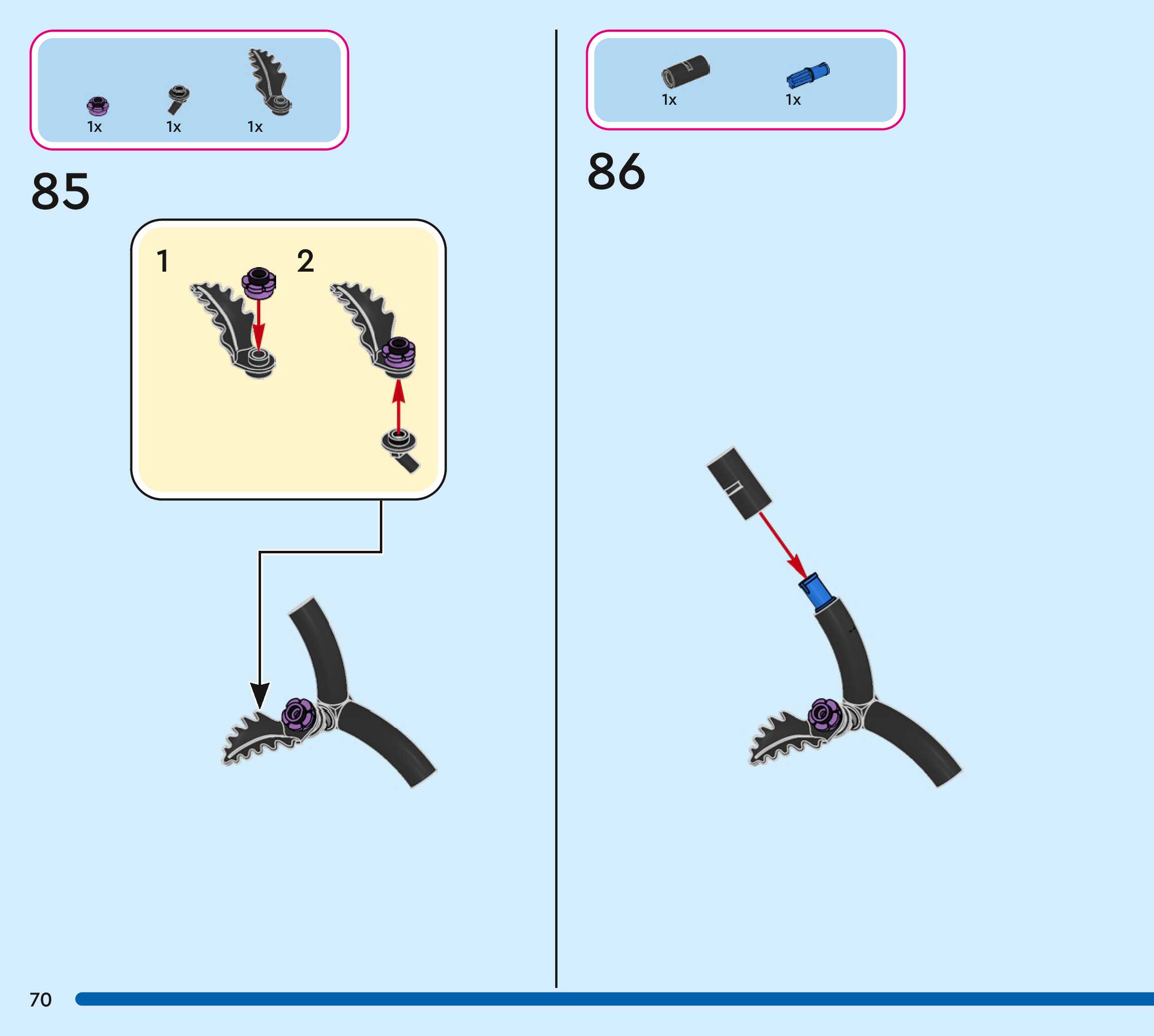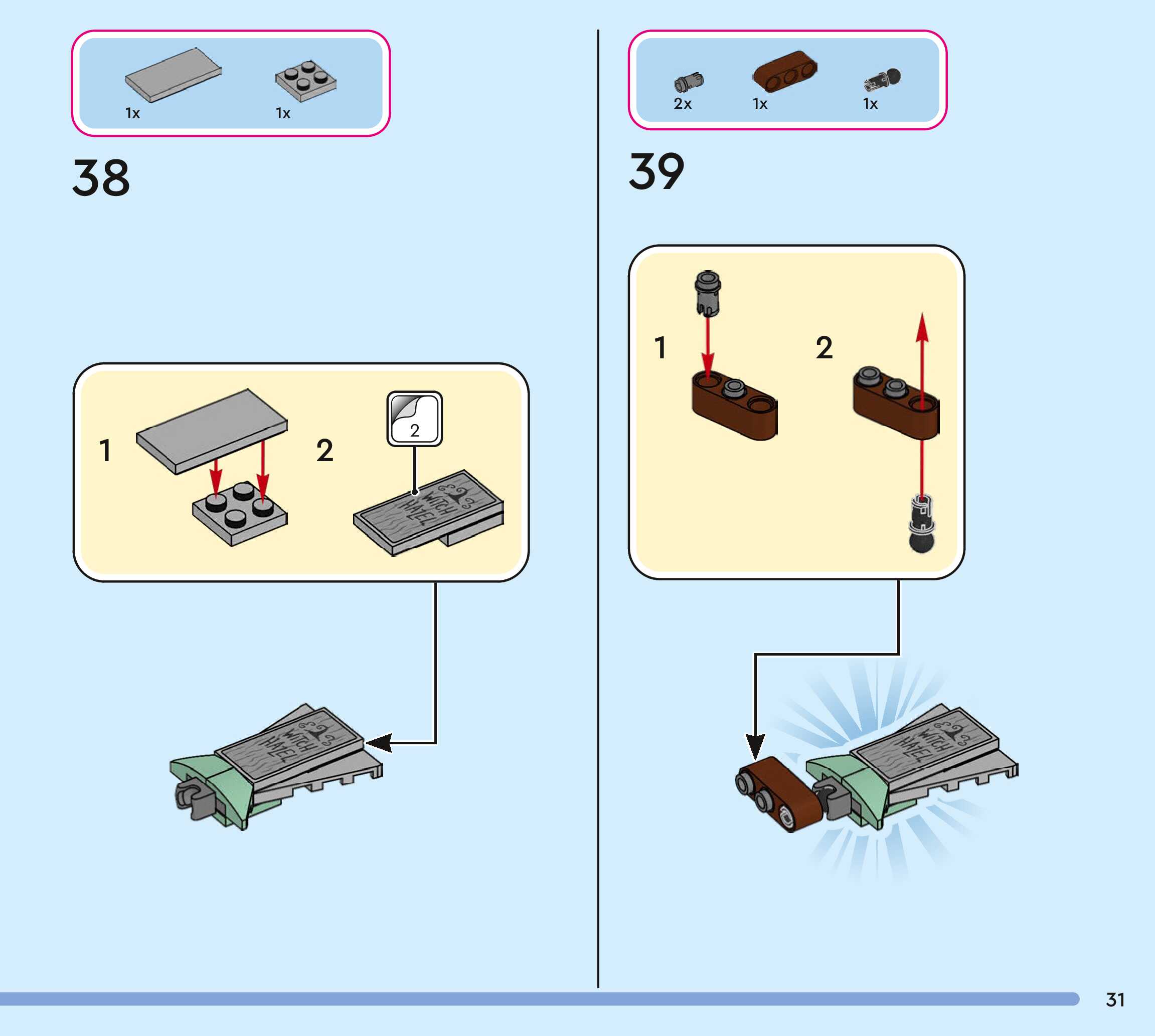 The assembly guide is prepared in a very understandable way for children and adult LEGO enthusiasts. A total of 84 picture galleries are shown, explaining the step-by-step construction stages for 1 different structures.