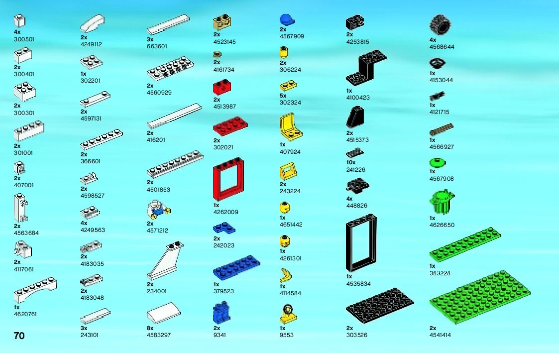 The assembly guide is prepared in a very understandable way for children and adult LEGO enthusiasts. A total of 72 picture galleries are shown, explaining the step-by-step construction stages for 1 different structures.