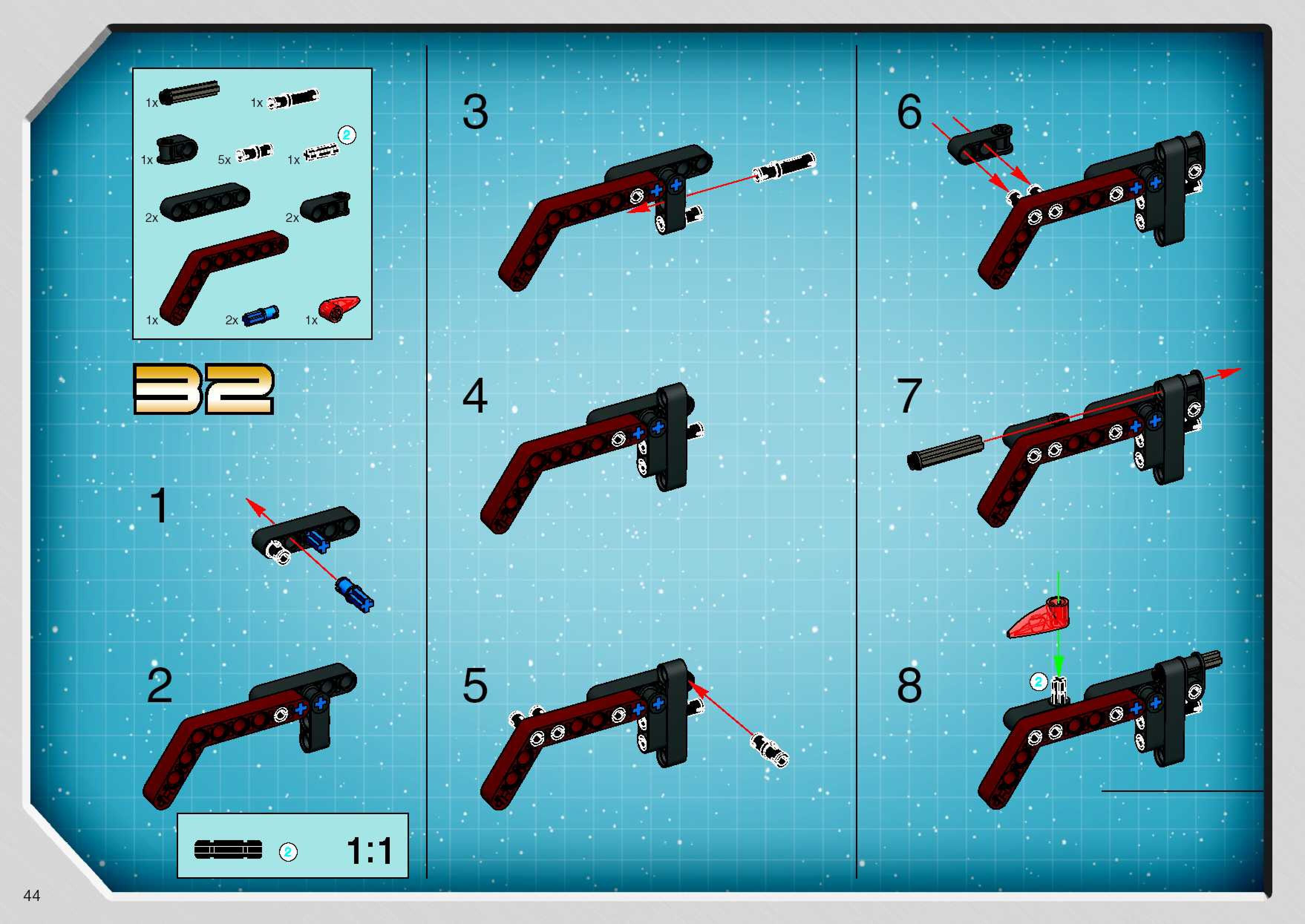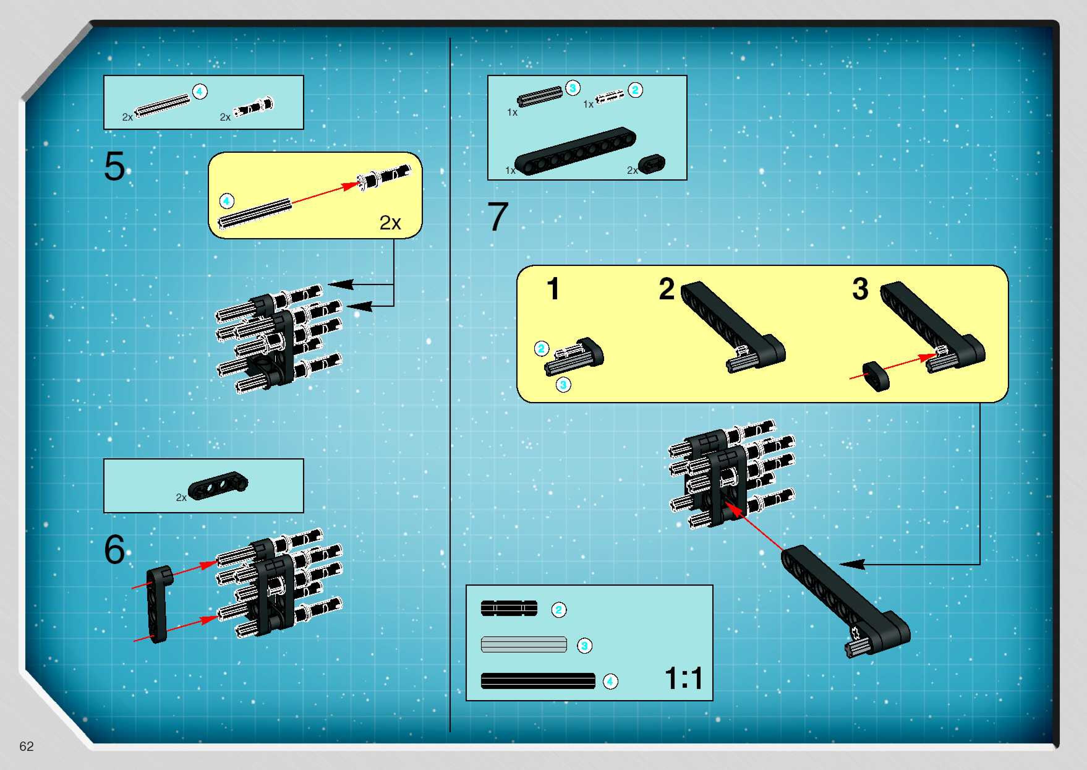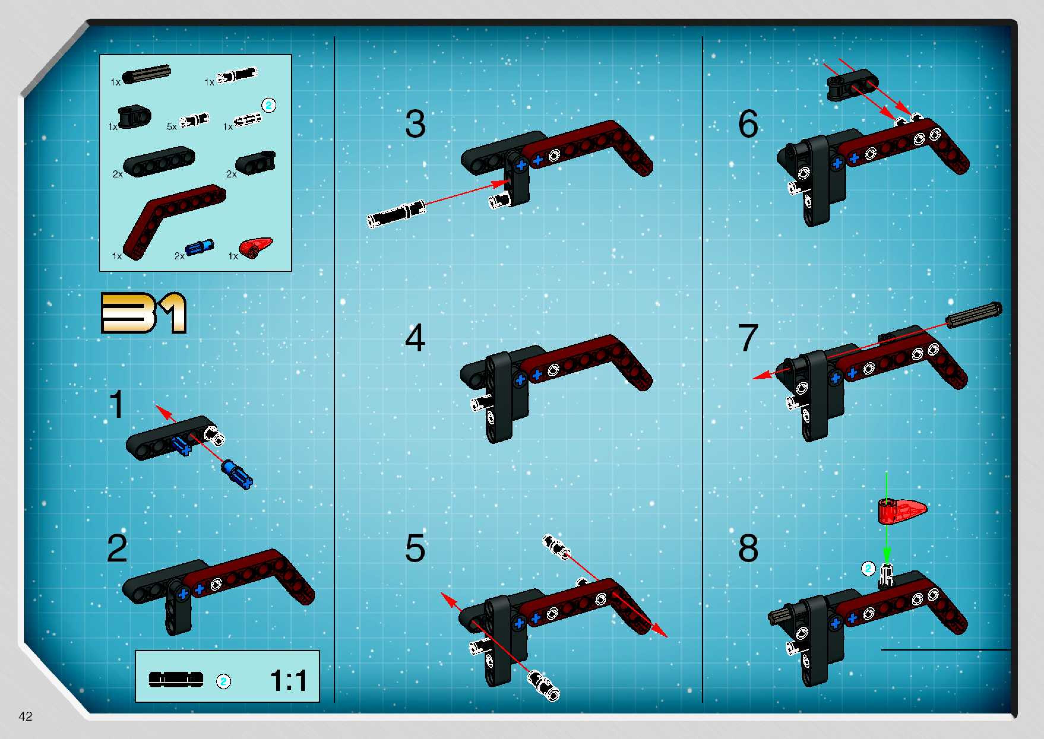The assembly guide is prepared in a very understandable way for children and adult LEGO enthusiasts. A total of 68 picture galleries are shown, explaining the step-by-step construction stages for 1 different structures.