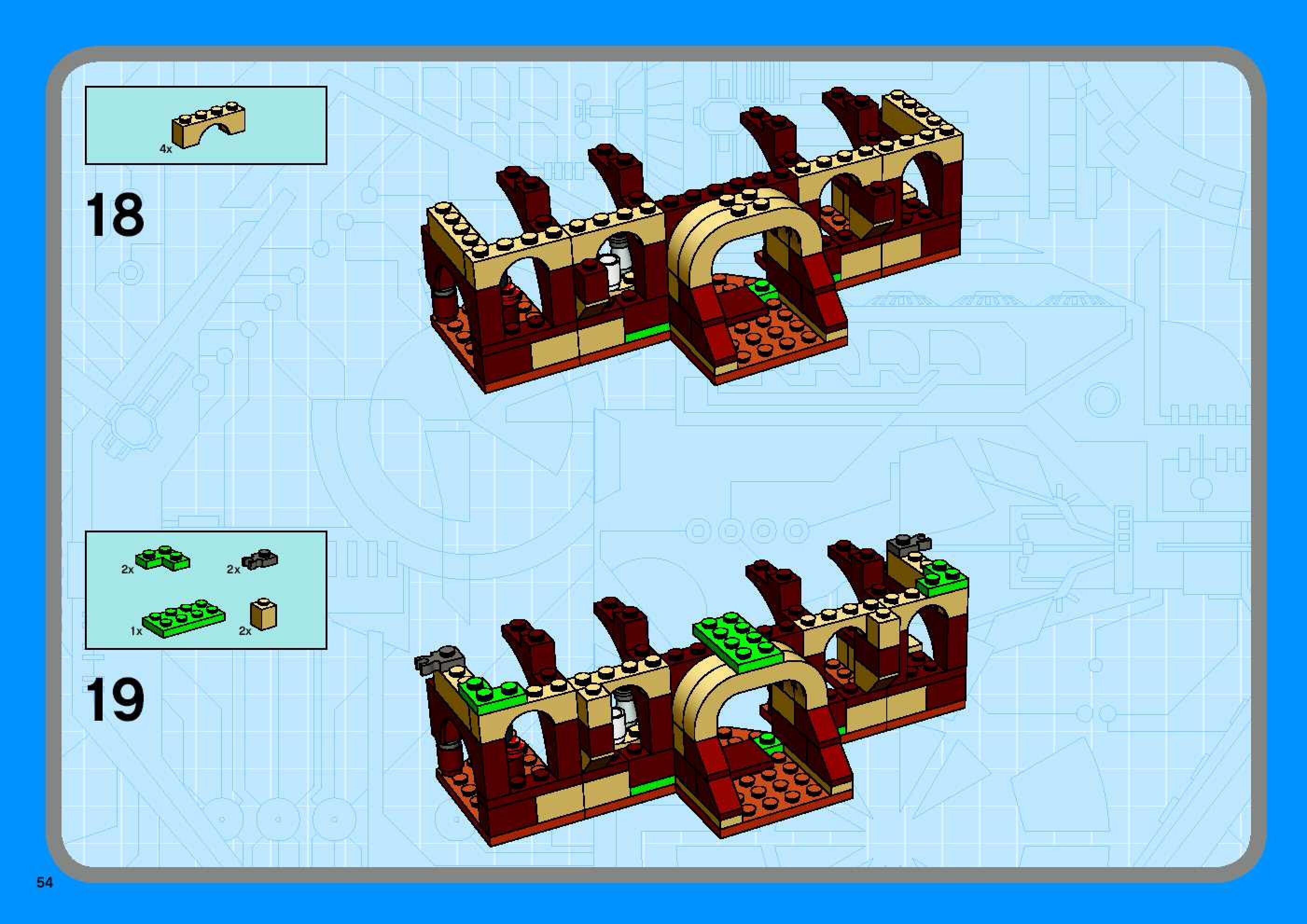 The assembly guide is prepared in a very understandable way for children and adult LEGO enthusiasts. A total of 64 picture galleries are shown, explaining the step-by-step construction stages for 1 different structures.