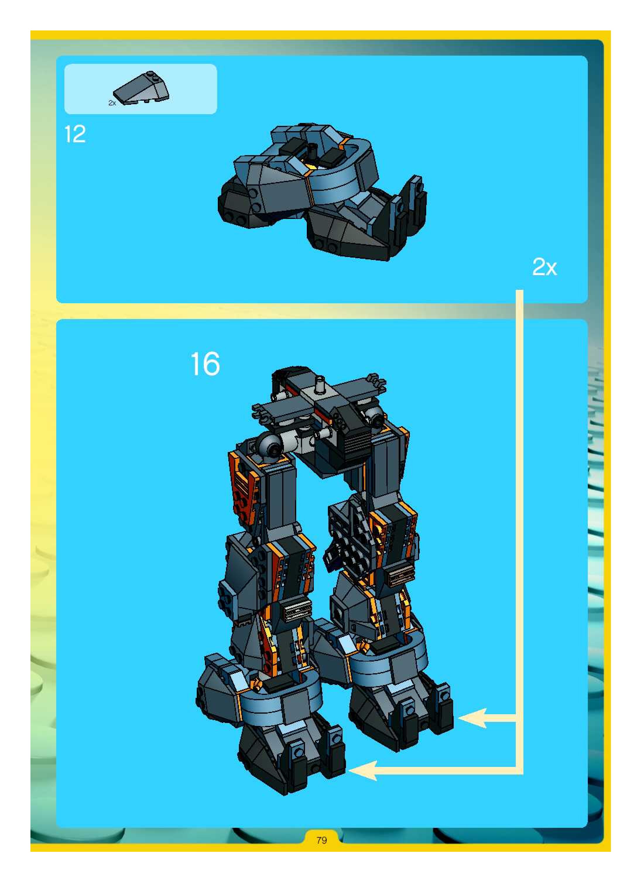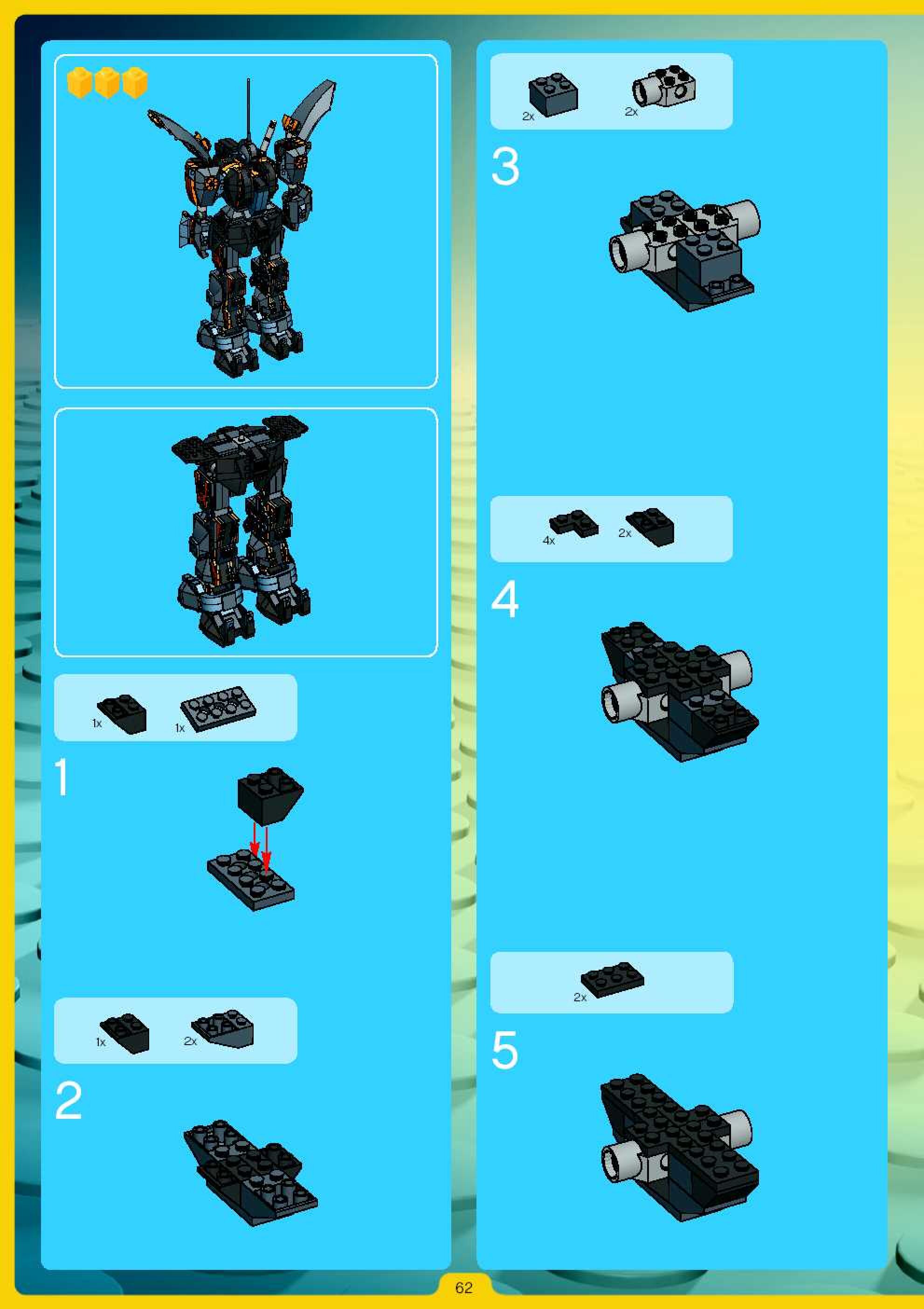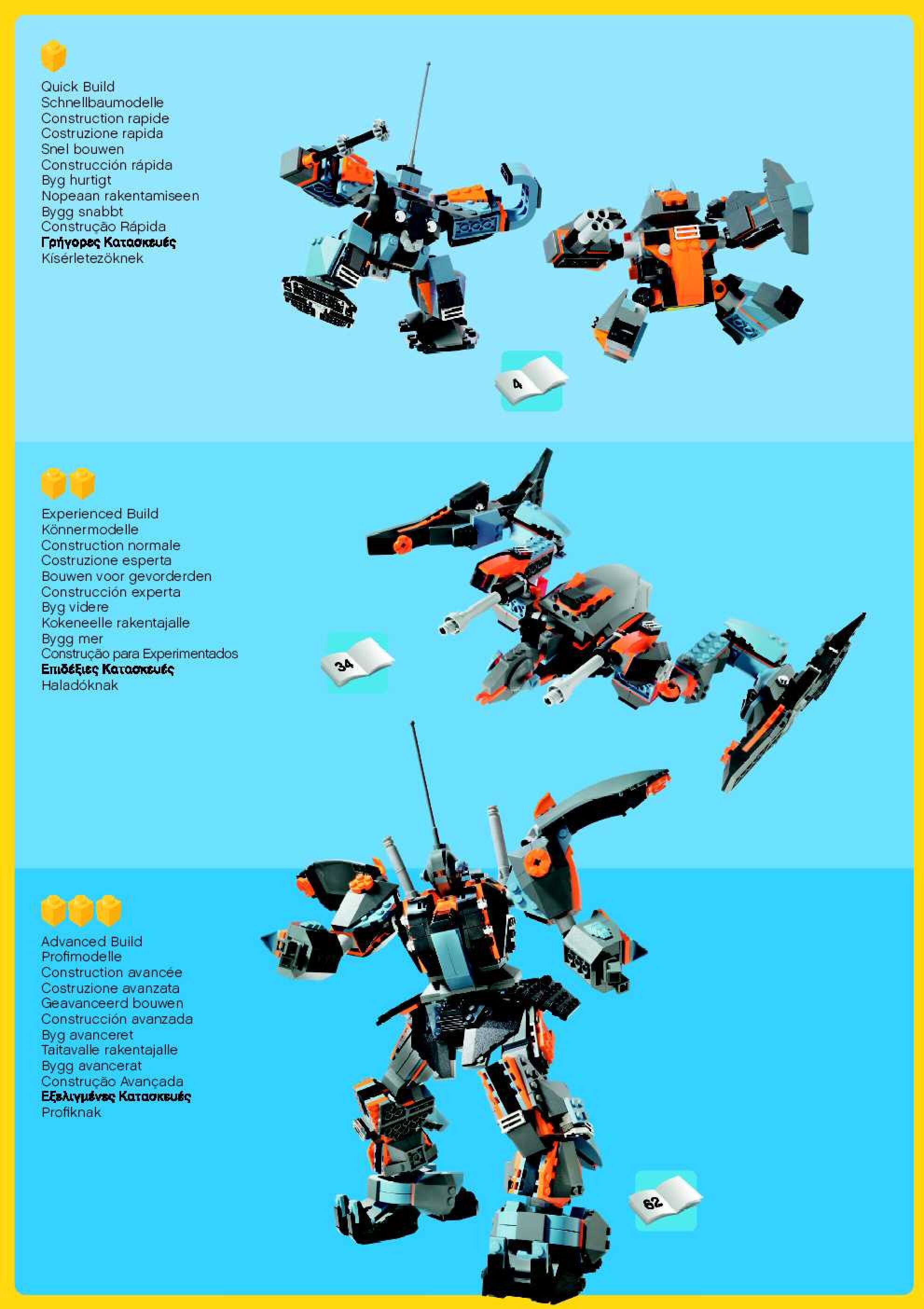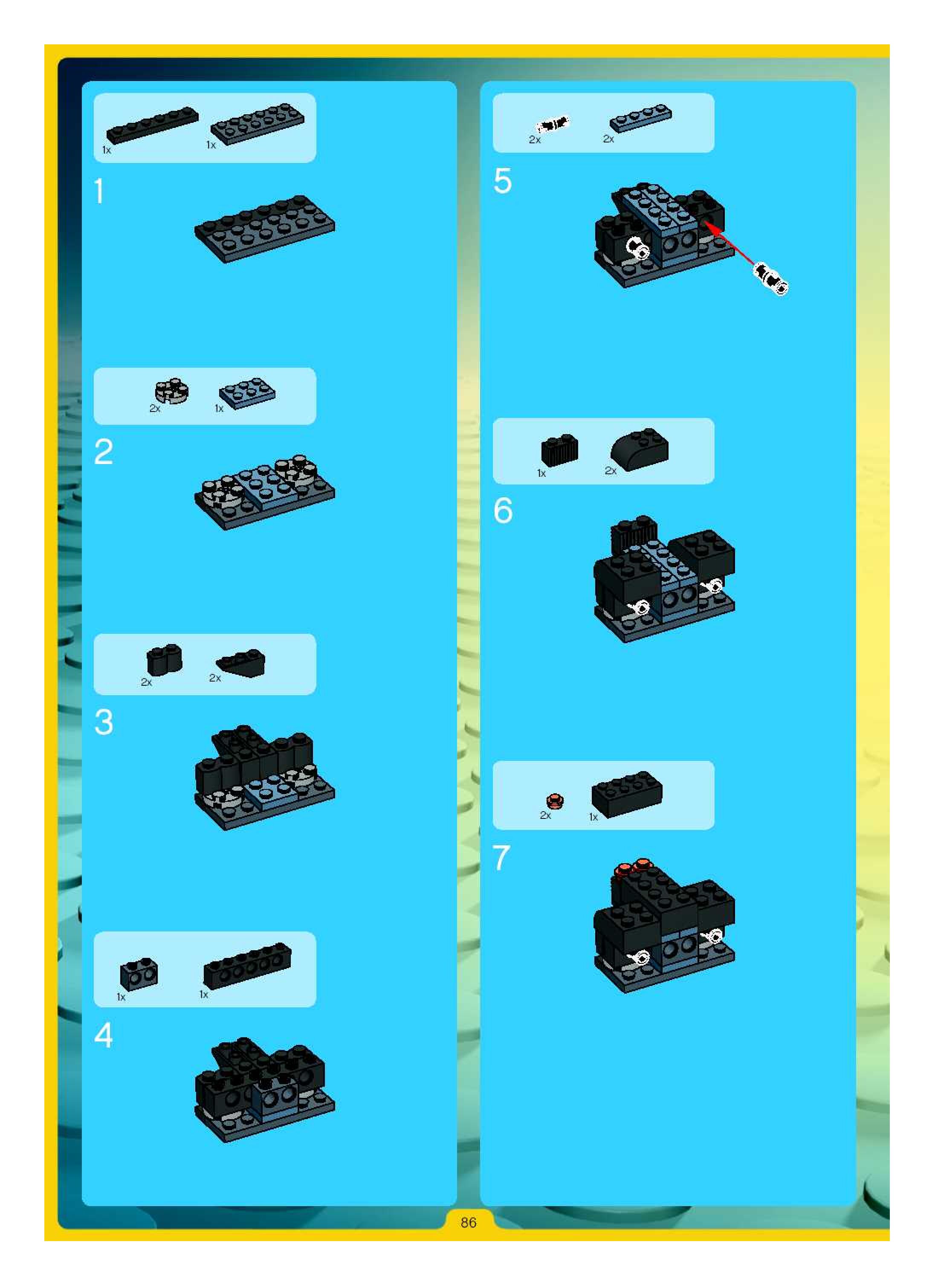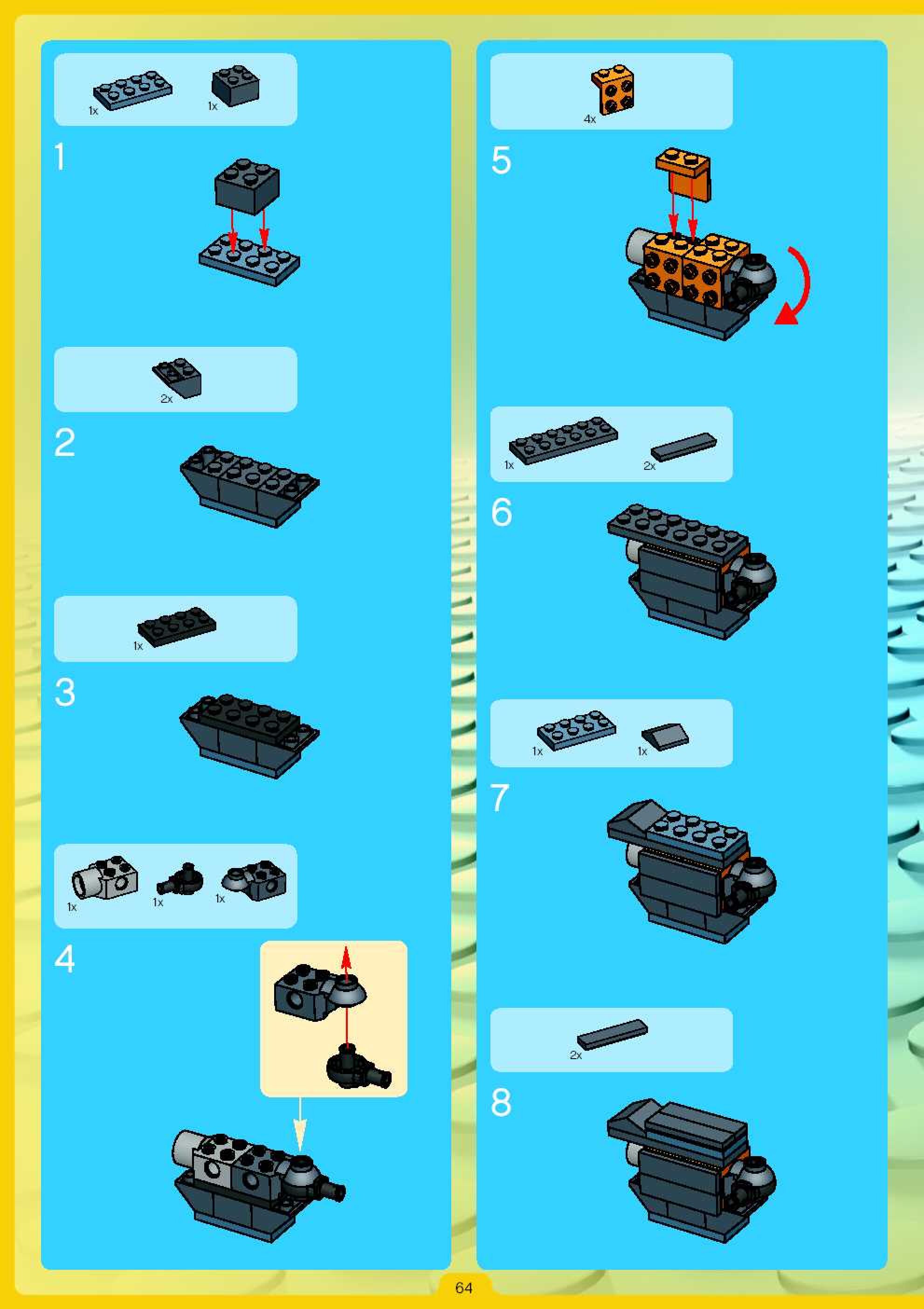 The assembly guide is prepared in a very understandable way for children and adult LEGO enthusiasts. A total of 104 picture galleries are shown, explaining the step-by-step construction stages for 1 different structures.