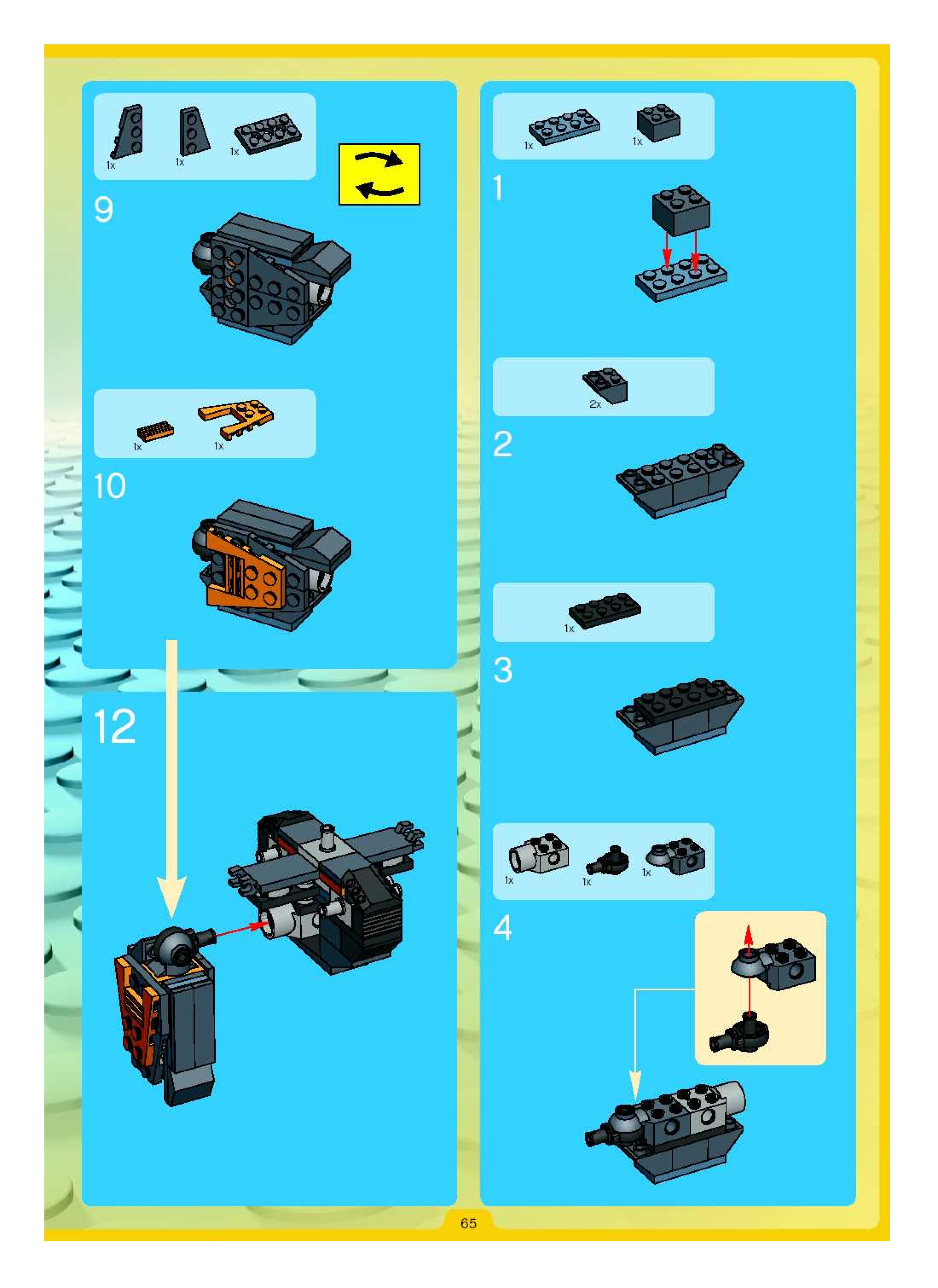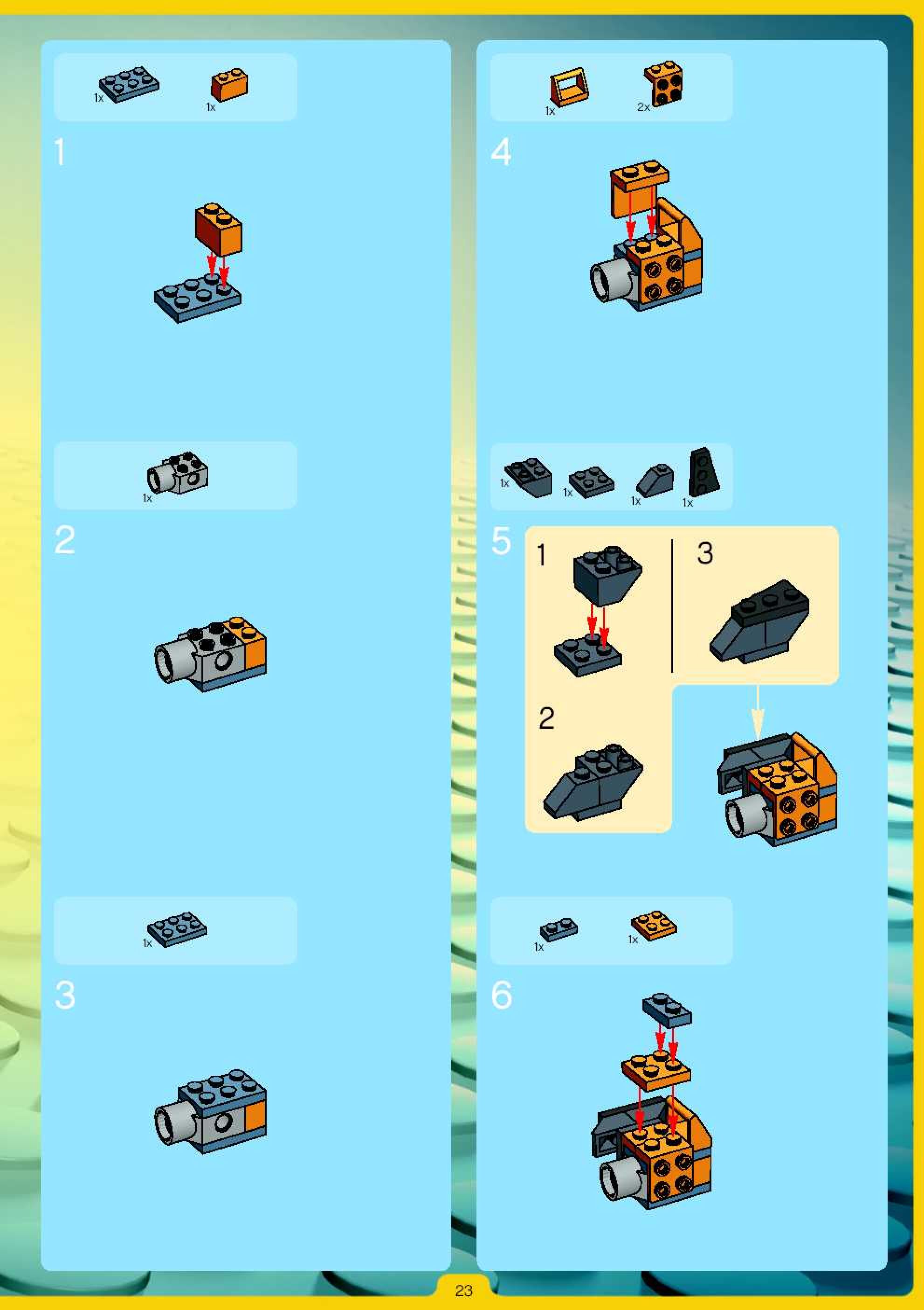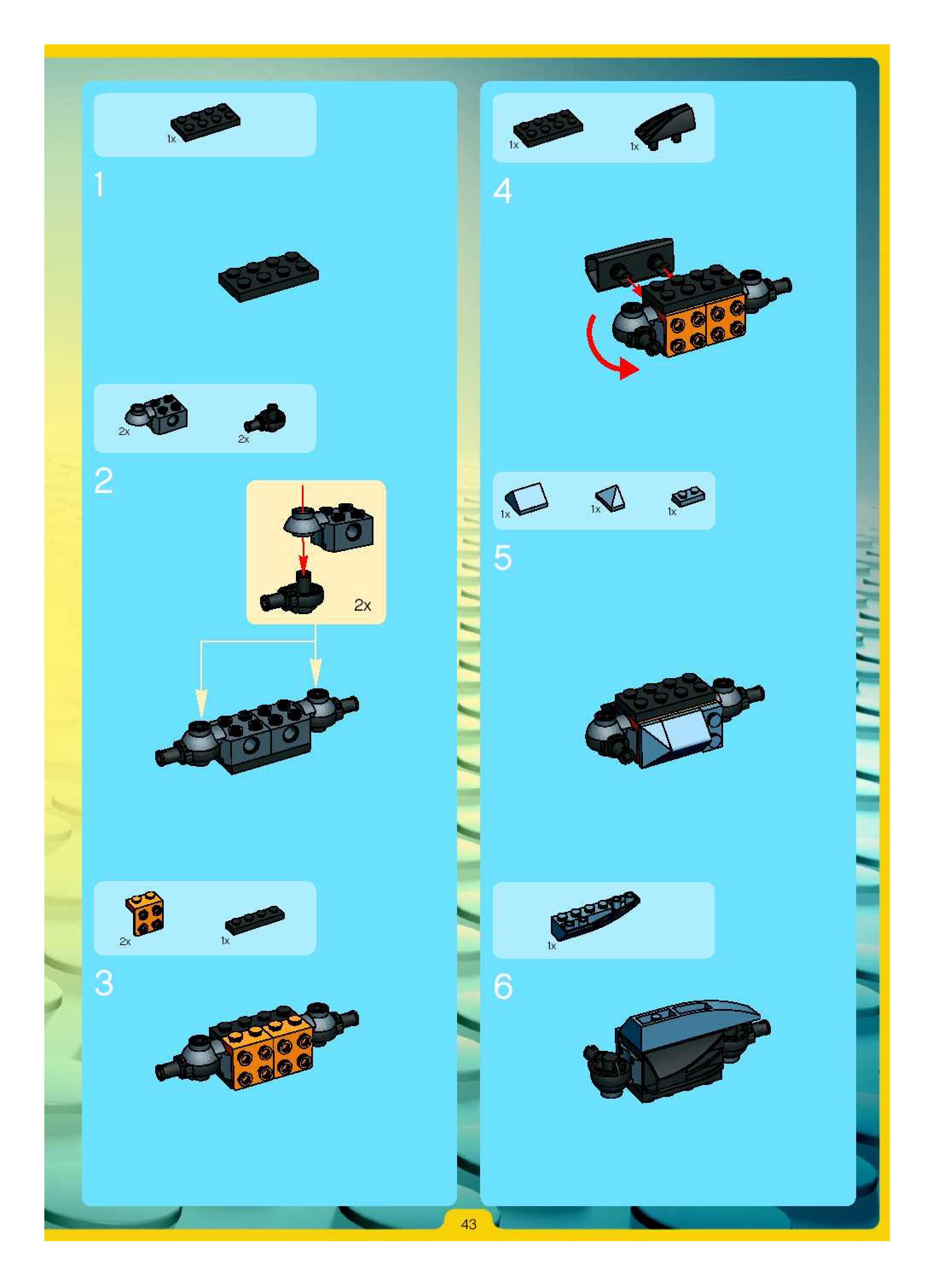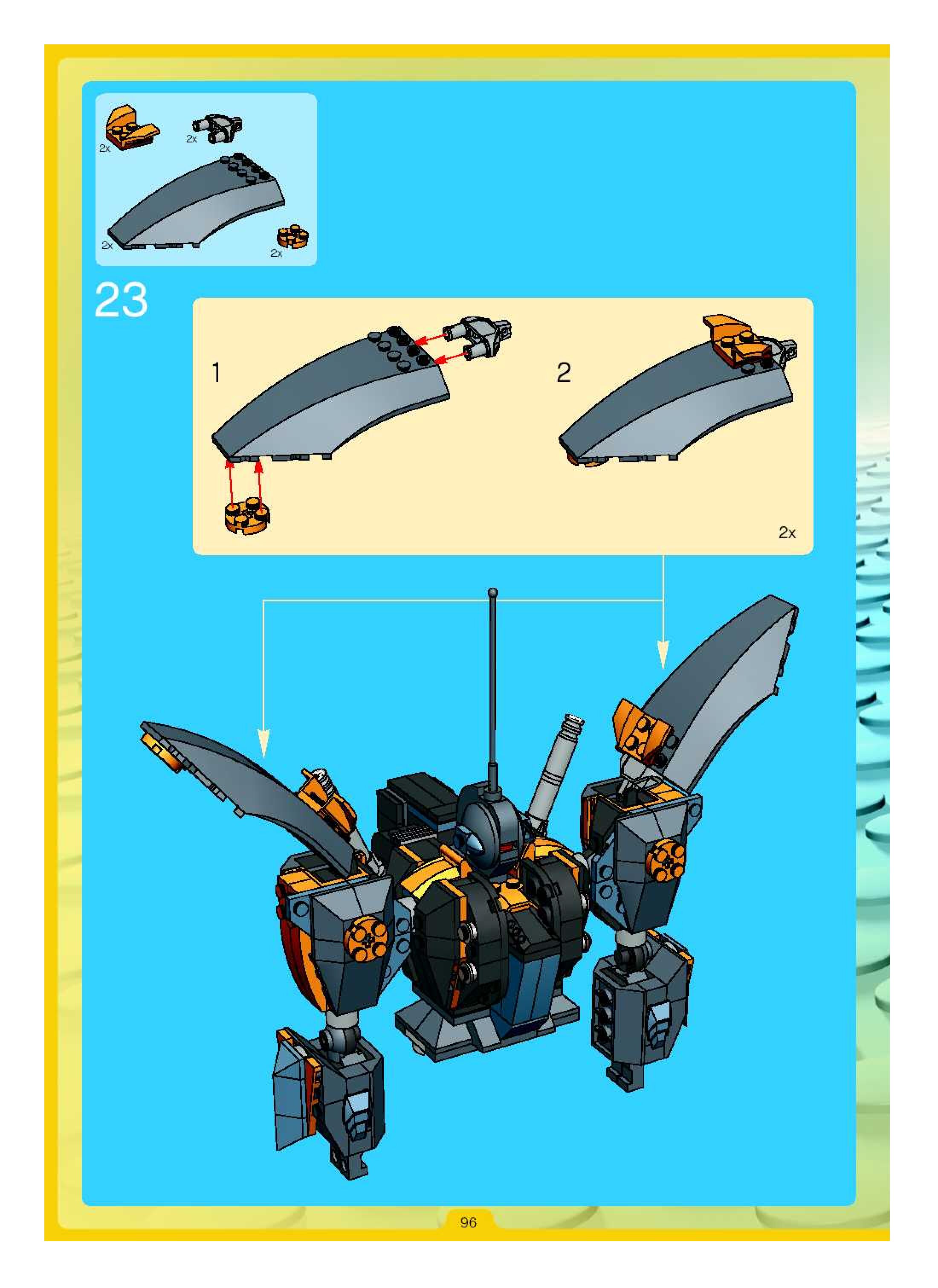 The assembly guide is prepared in a very understandable way for children and adult LEGO enthusiasts. A total of 104 picture galleries are shown, explaining the step-by-step construction stages for 1 different structures.