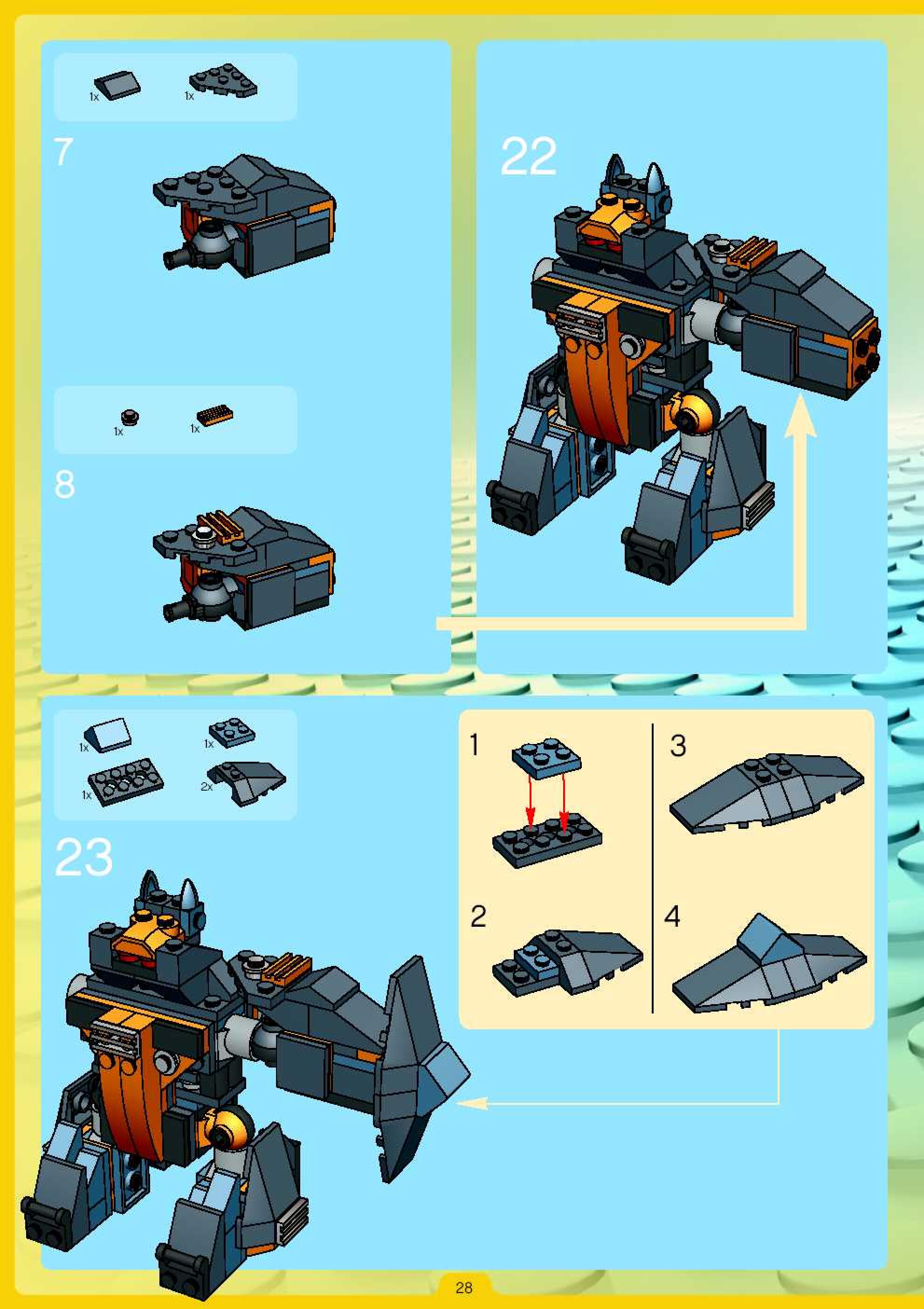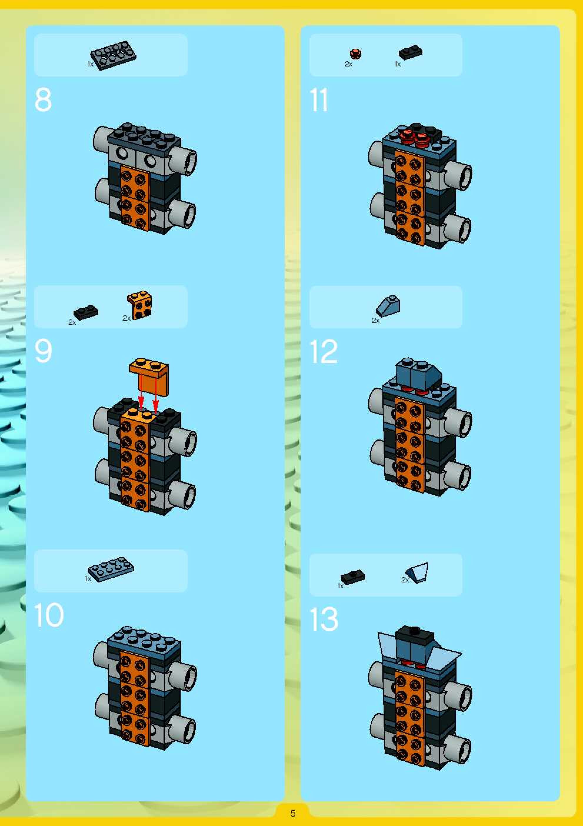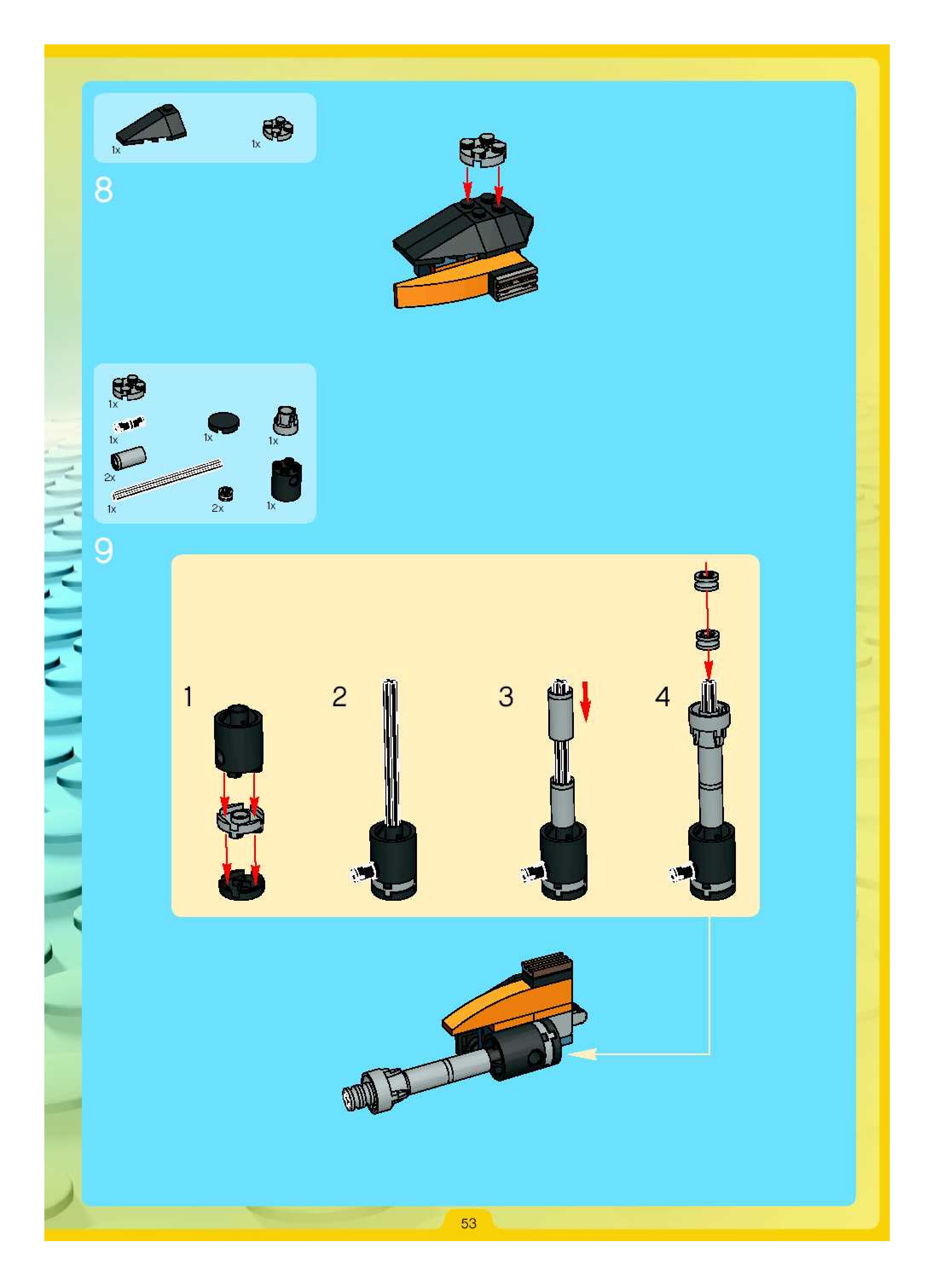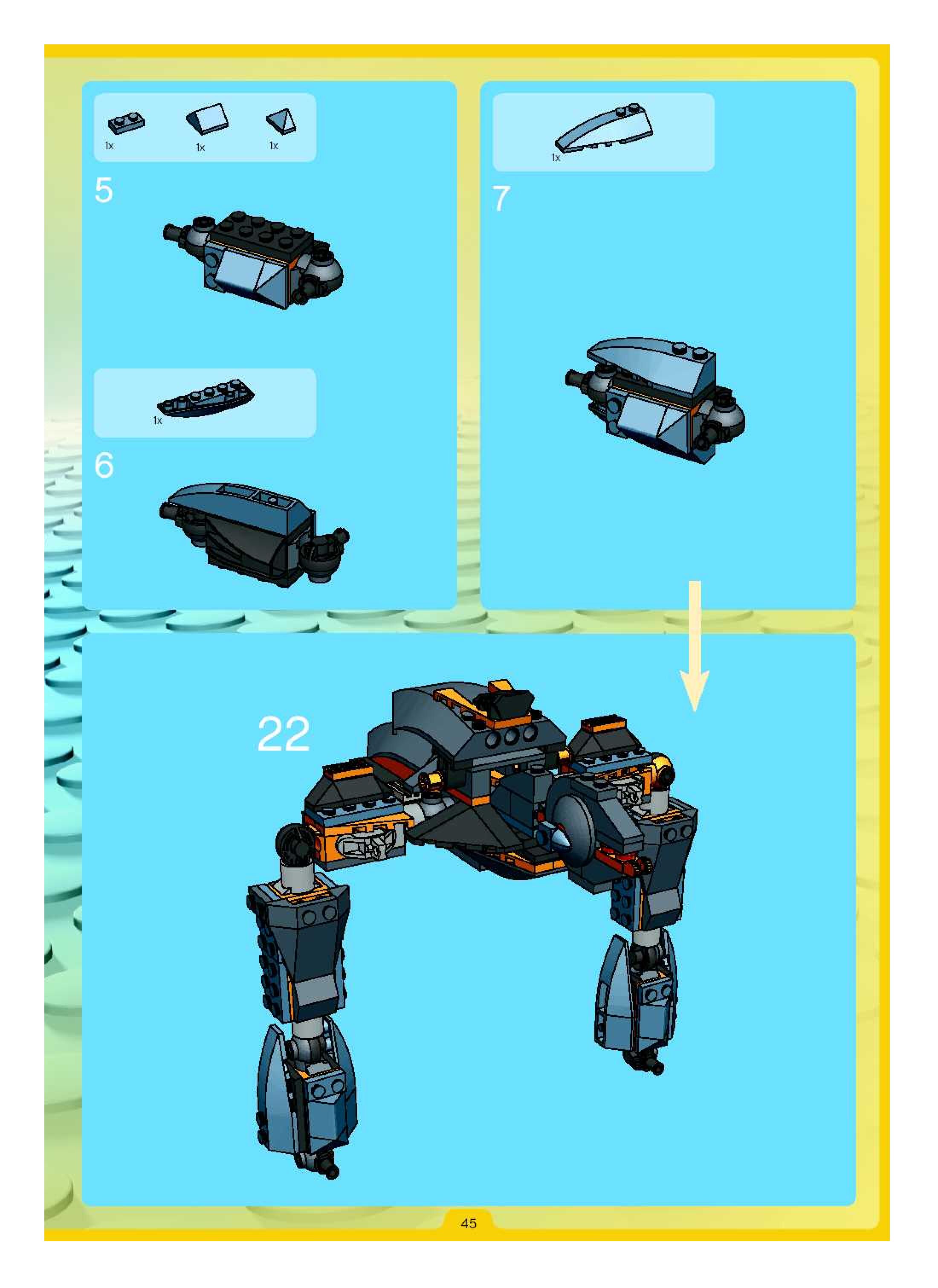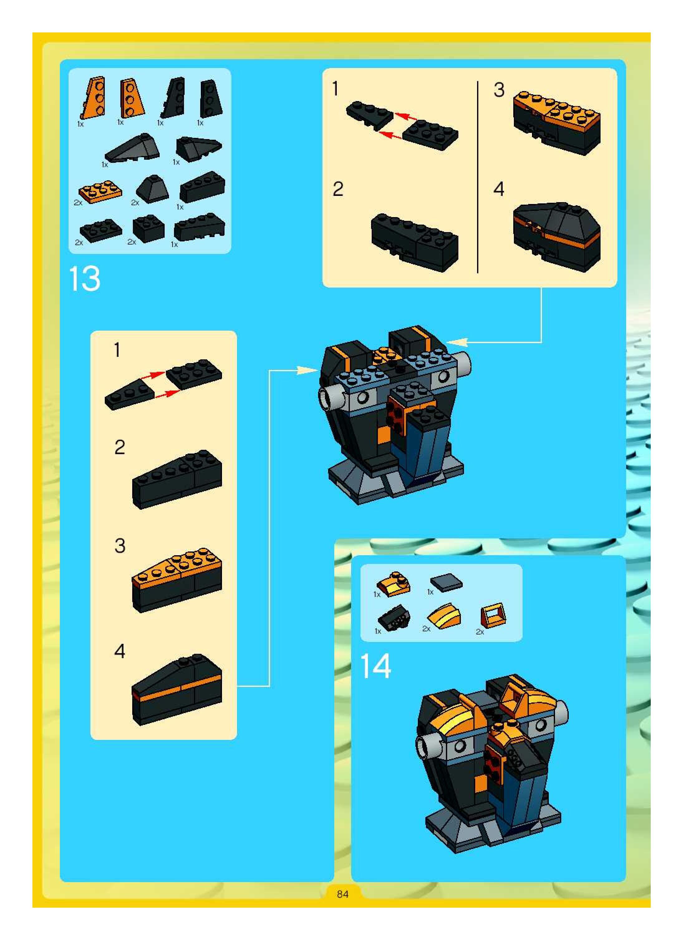 The assembly guide is prepared in a very understandable way for children and adult LEGO enthusiasts. A total of 104 picture galleries are shown, explaining the step-by-step construction stages for 1 different structures.