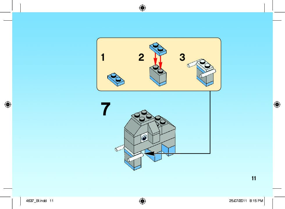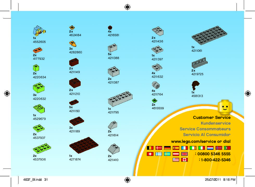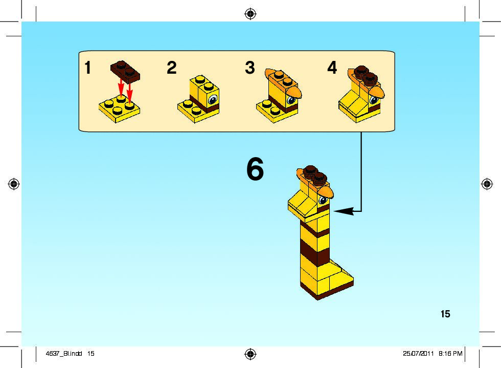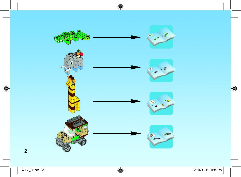 On this page you can find the original construction manual for the LEGO 4637 set. With the assembly manual you can easily learn how to build the 4637 Safari Building Set step by step. The set was released in 2011.