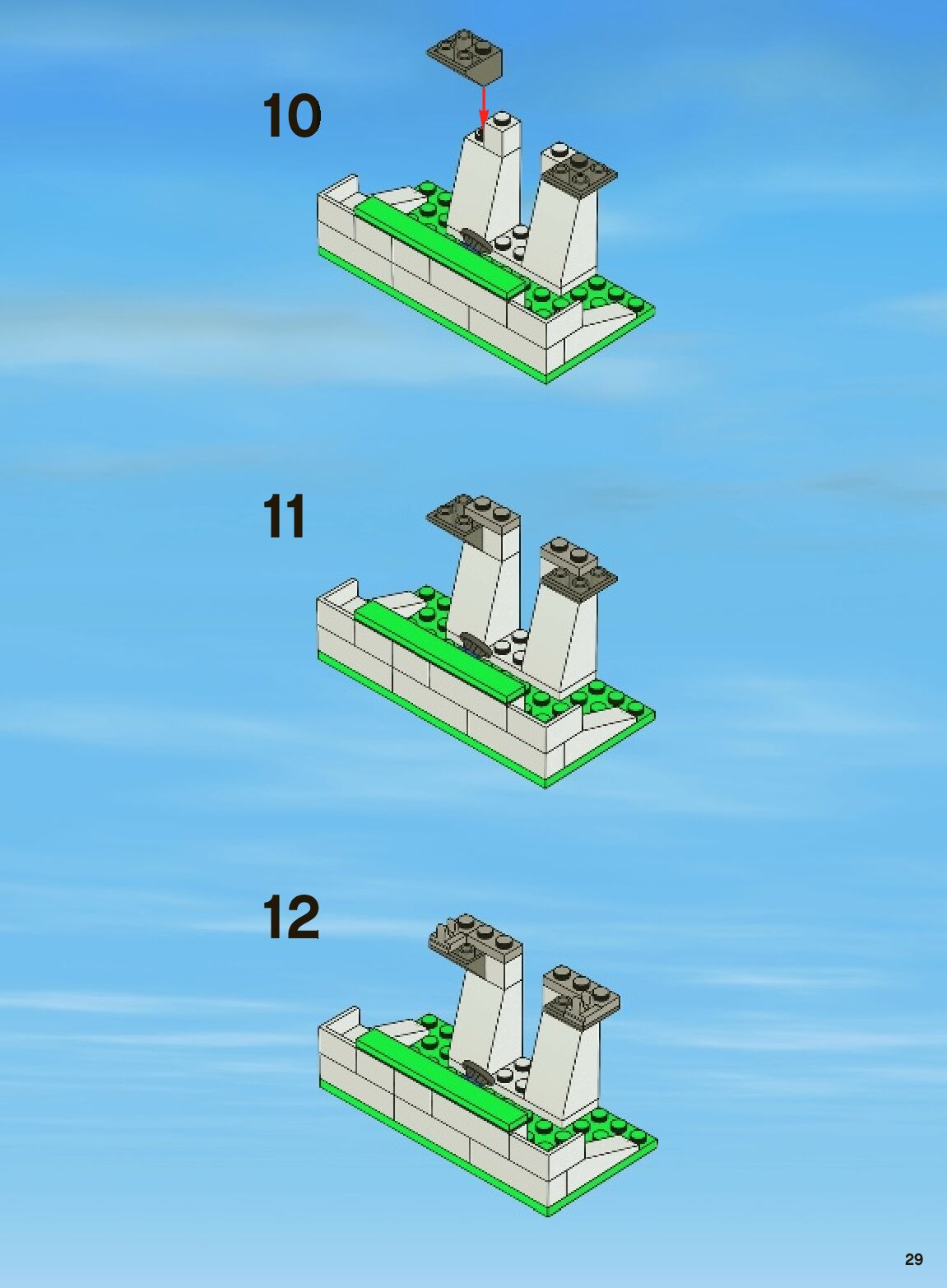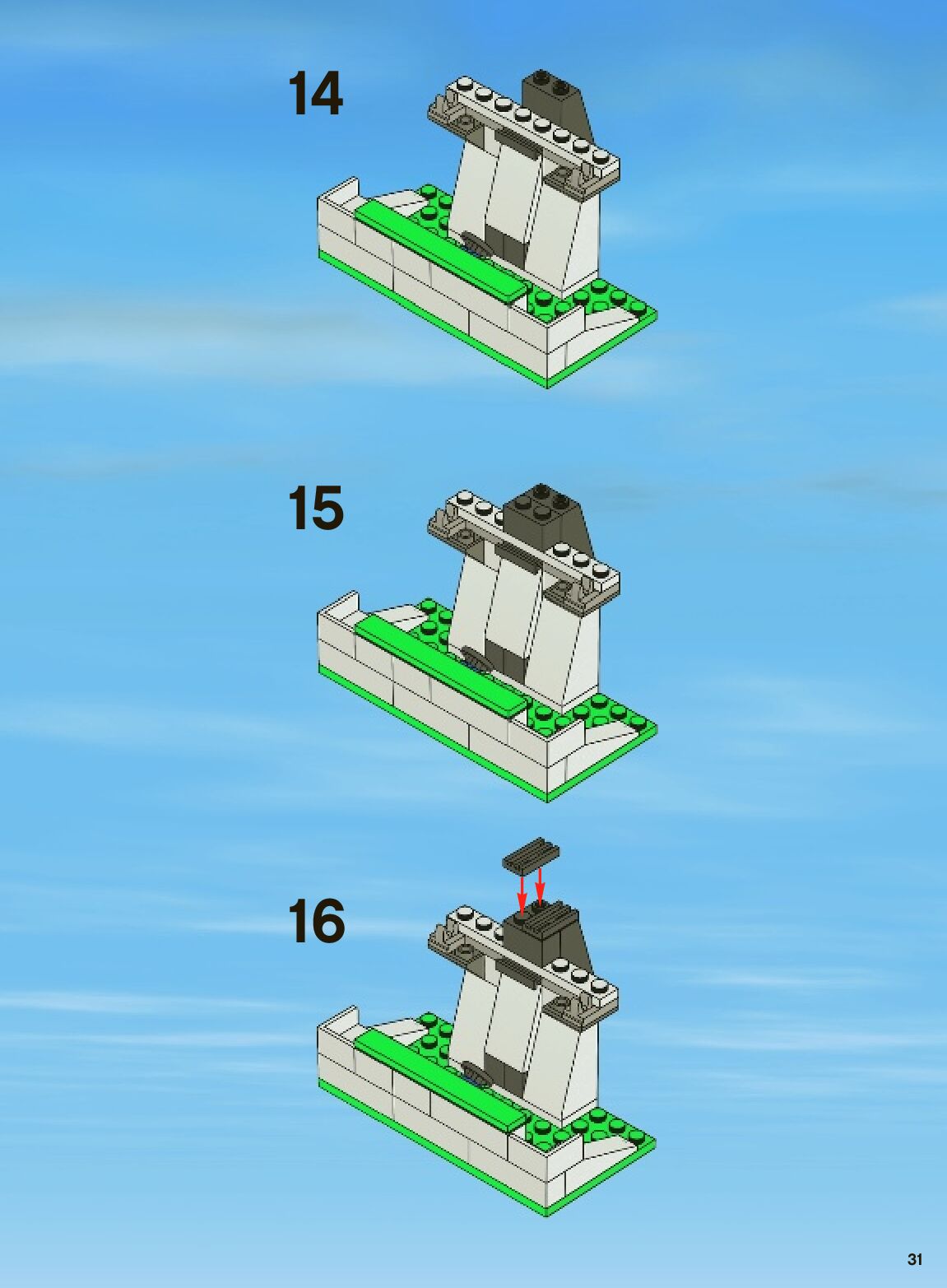 The assembly guide is prepared in a very understandable way for children and adult LEGO enthusiasts. A total of 152 picture galleries are shown, explaining the step-by-step construction stages for 3 different structures.