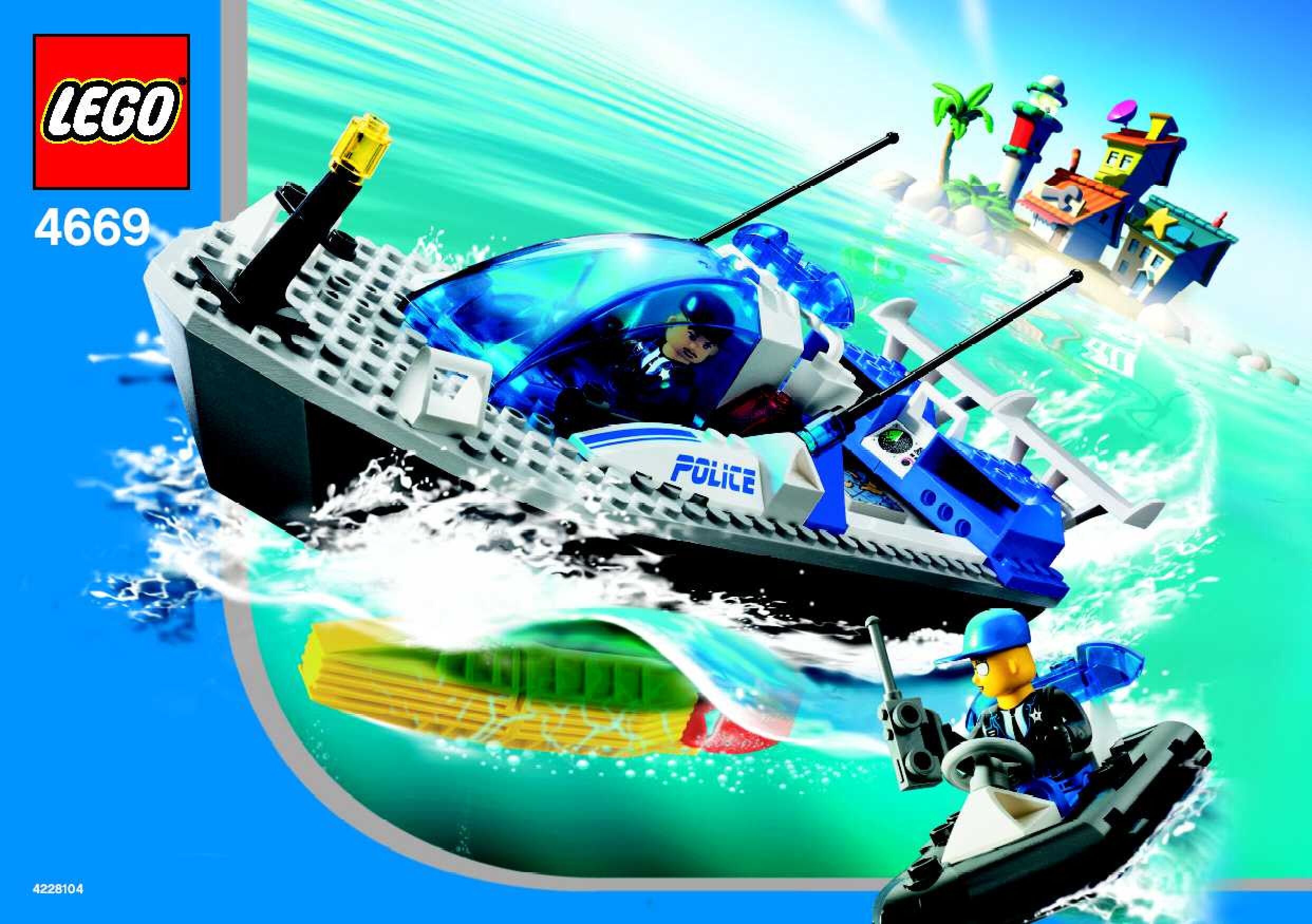On this page you can find the original construction manual for the LEGO 4669 set. With the assembly manual you can easily learn how to build the 4669 Turbo-charged Police Boat step by step. The set was released in 2004.