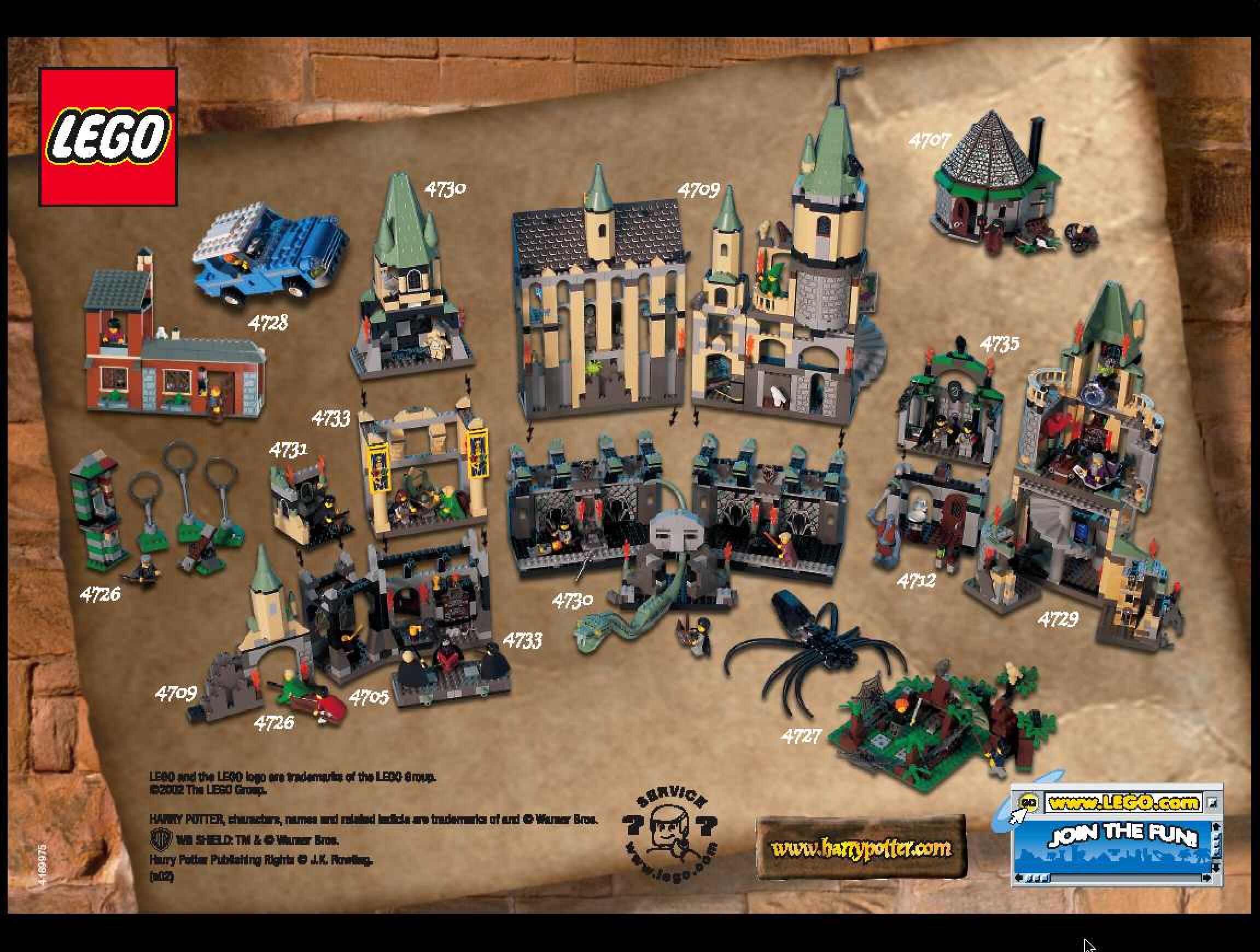 On this page you can find the original construction manual for the LEGO 4727 set. With the assembly manual you can easily learn how to build the 4727 Aragog in the Forbidden Forest step by step. The set was released in 2002.