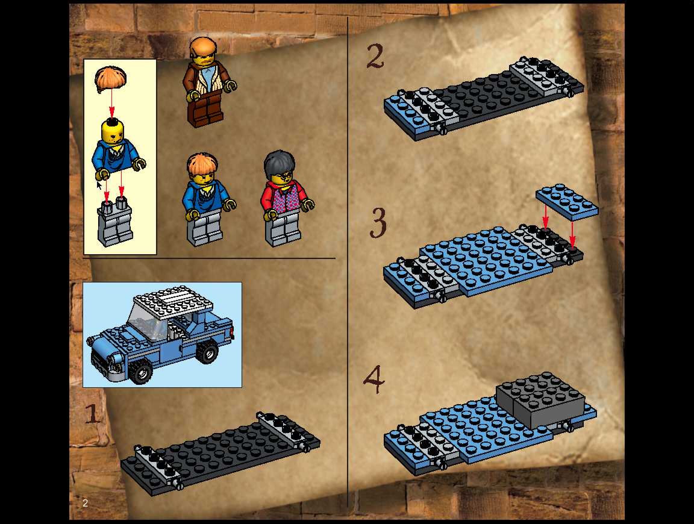 On this page you can find the original construction manual for the LEGO 4728 set. With the assembly manual you can easily learn how to build the 4728 Escape from Privet Drive step by step. The set was released in 2002.