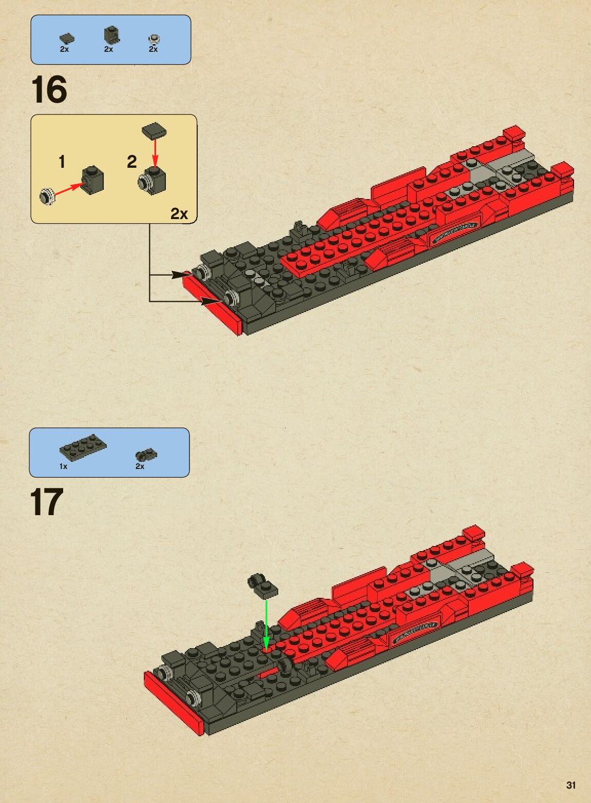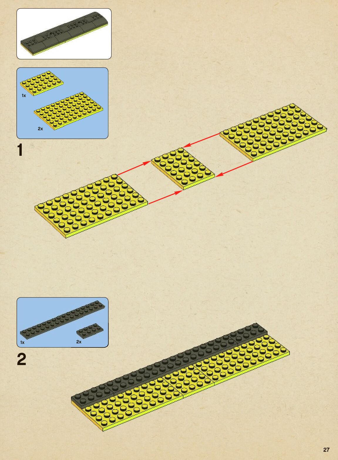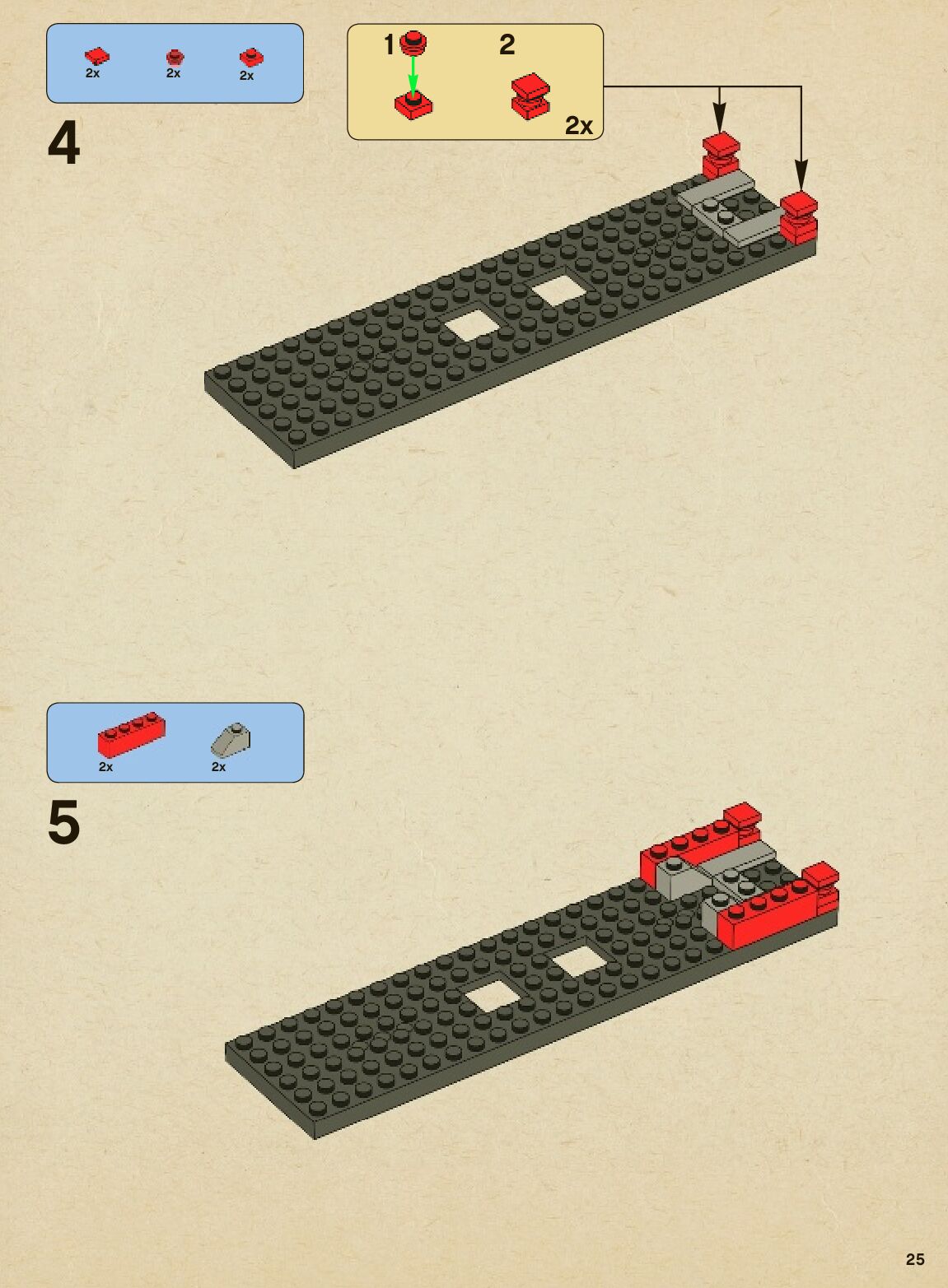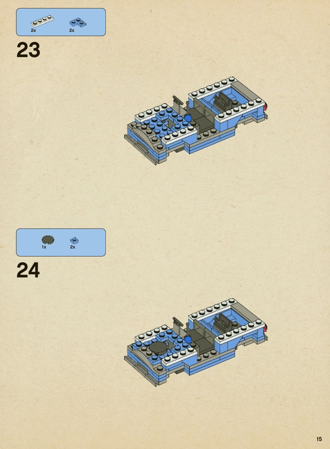 The assembly guide is prepared in a very understandable way for children and adult LEGO enthusiasts. A total of 100 picture galleries are shown, explaining the step-by-step construction stages for 2 different structures.