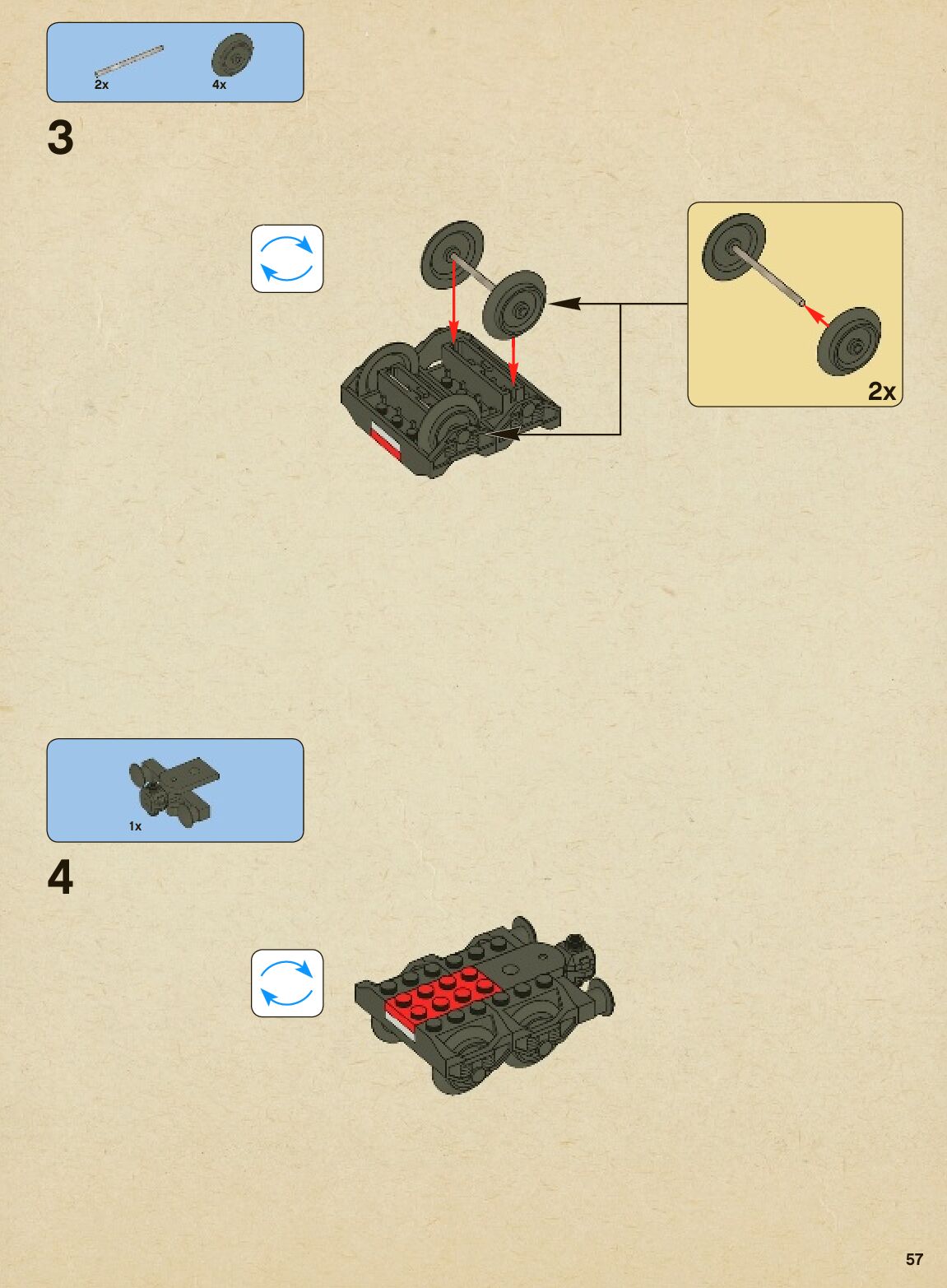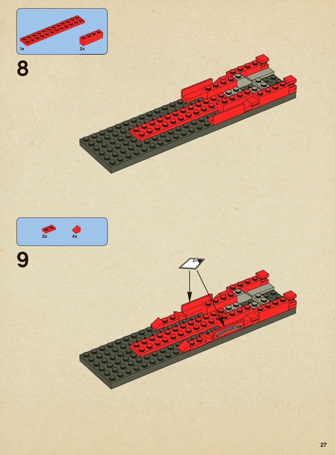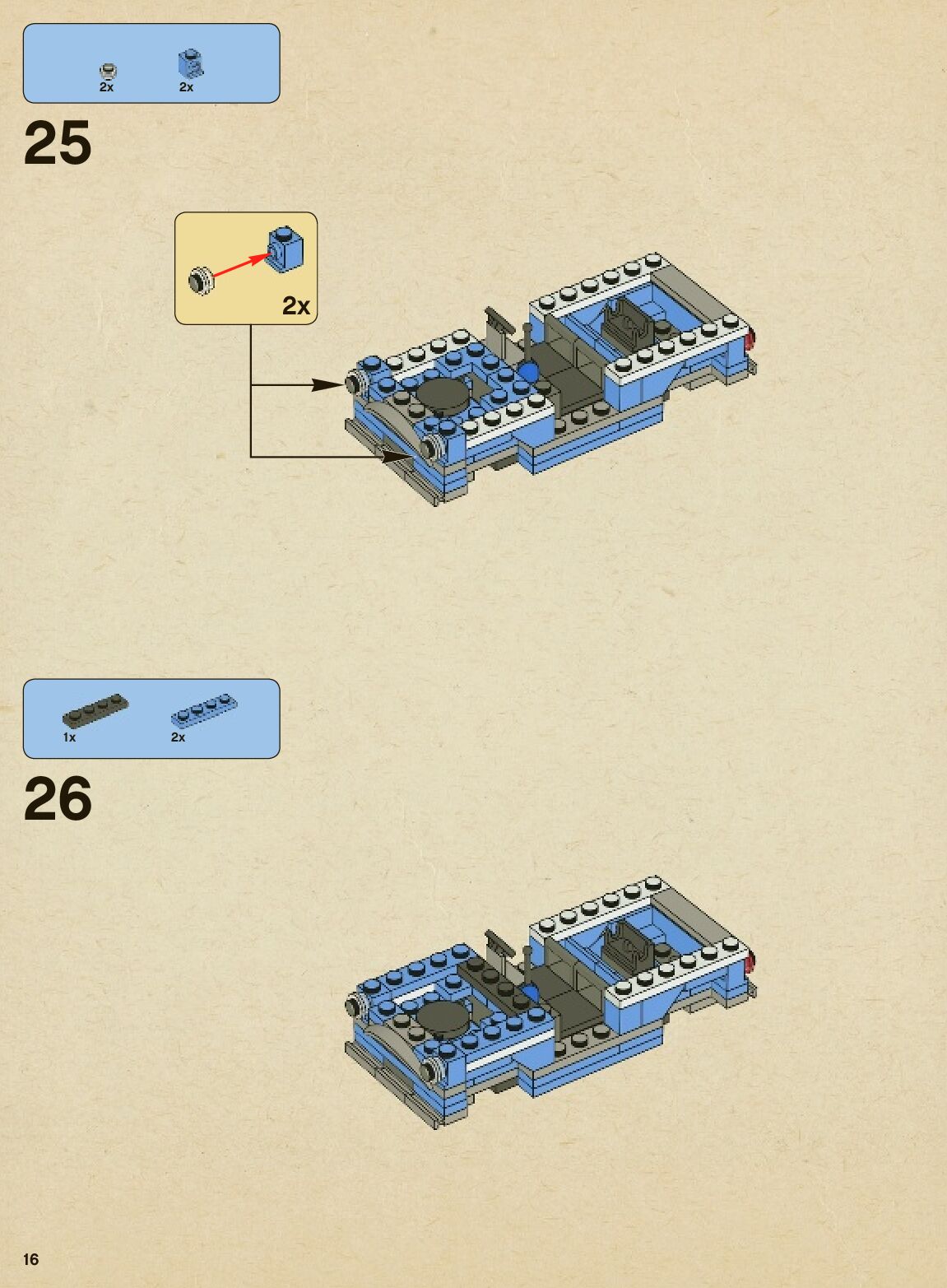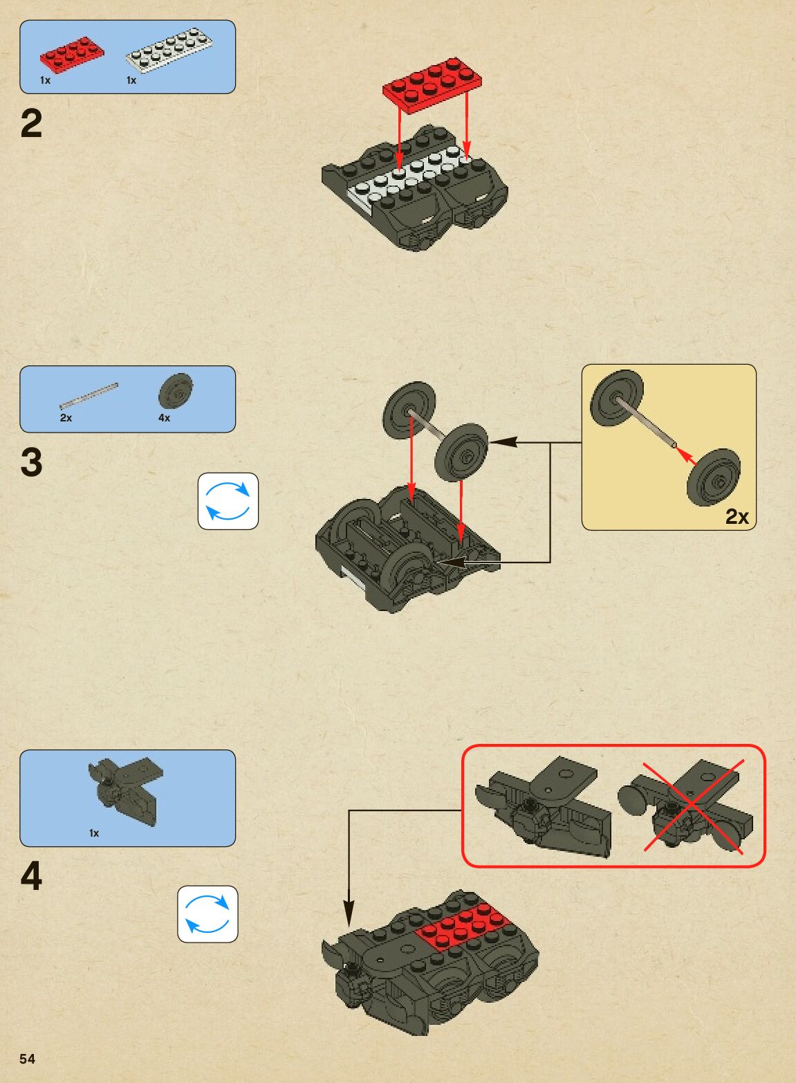 The assembly guide is prepared in a very understandable way for children and adult LEGO enthusiasts. A total of 100 picture galleries are shown, explaining the step-by-step construction stages for 2 different structures.