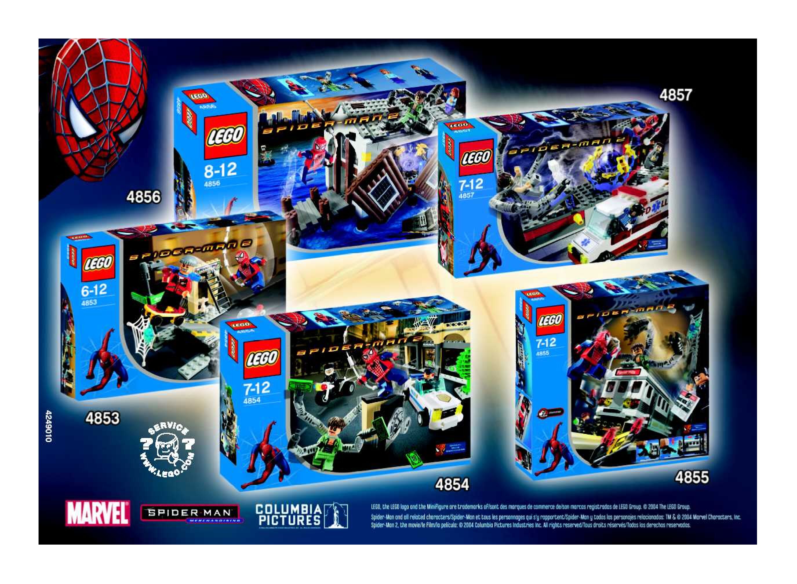 On this page you can find the original construction manual for the LEGO 4857 set. With the assembly manual you can easily learn how to build the 4857 Doc Ock’s Fusion Lab step by step. The set was released in 2004.