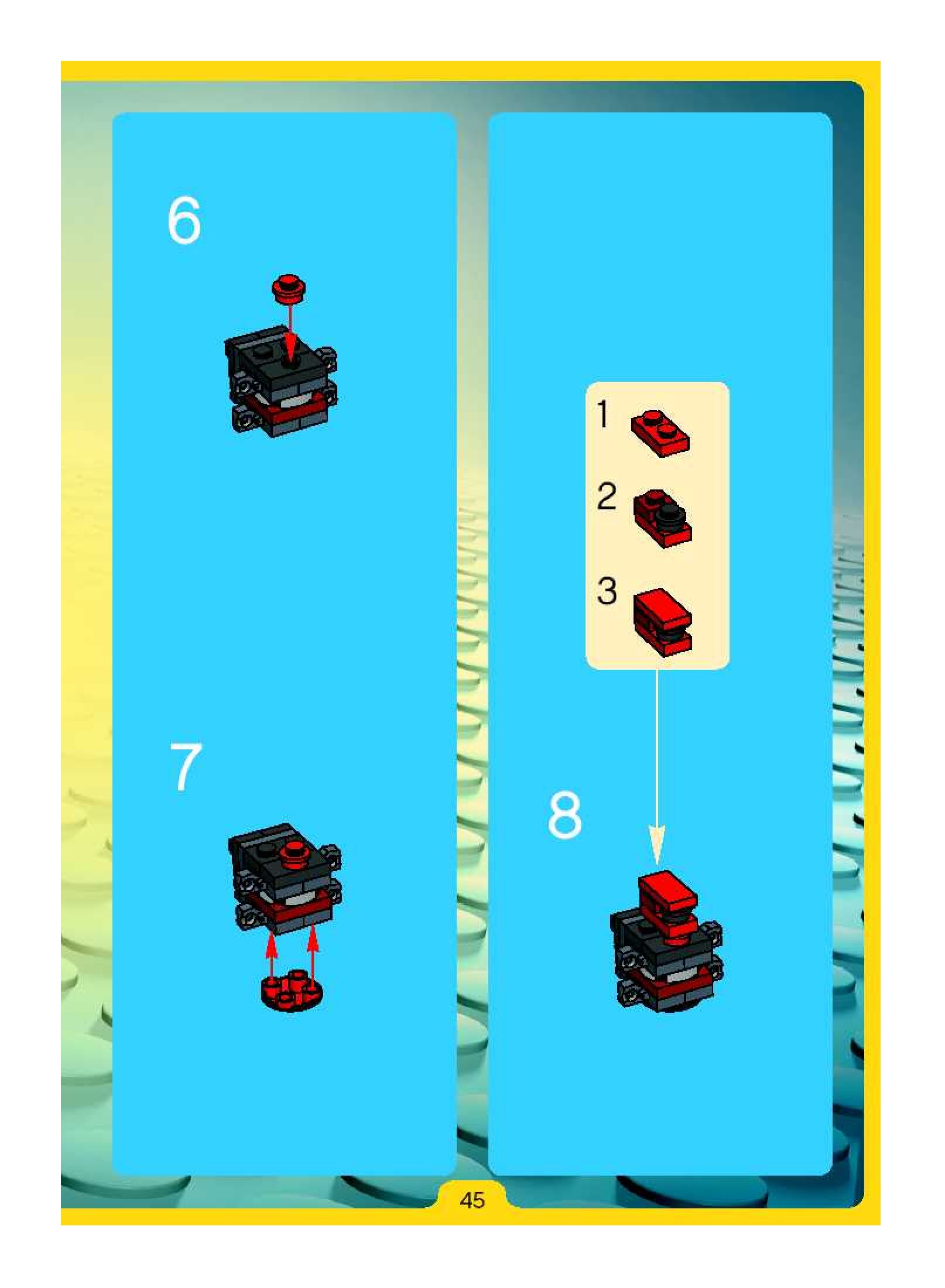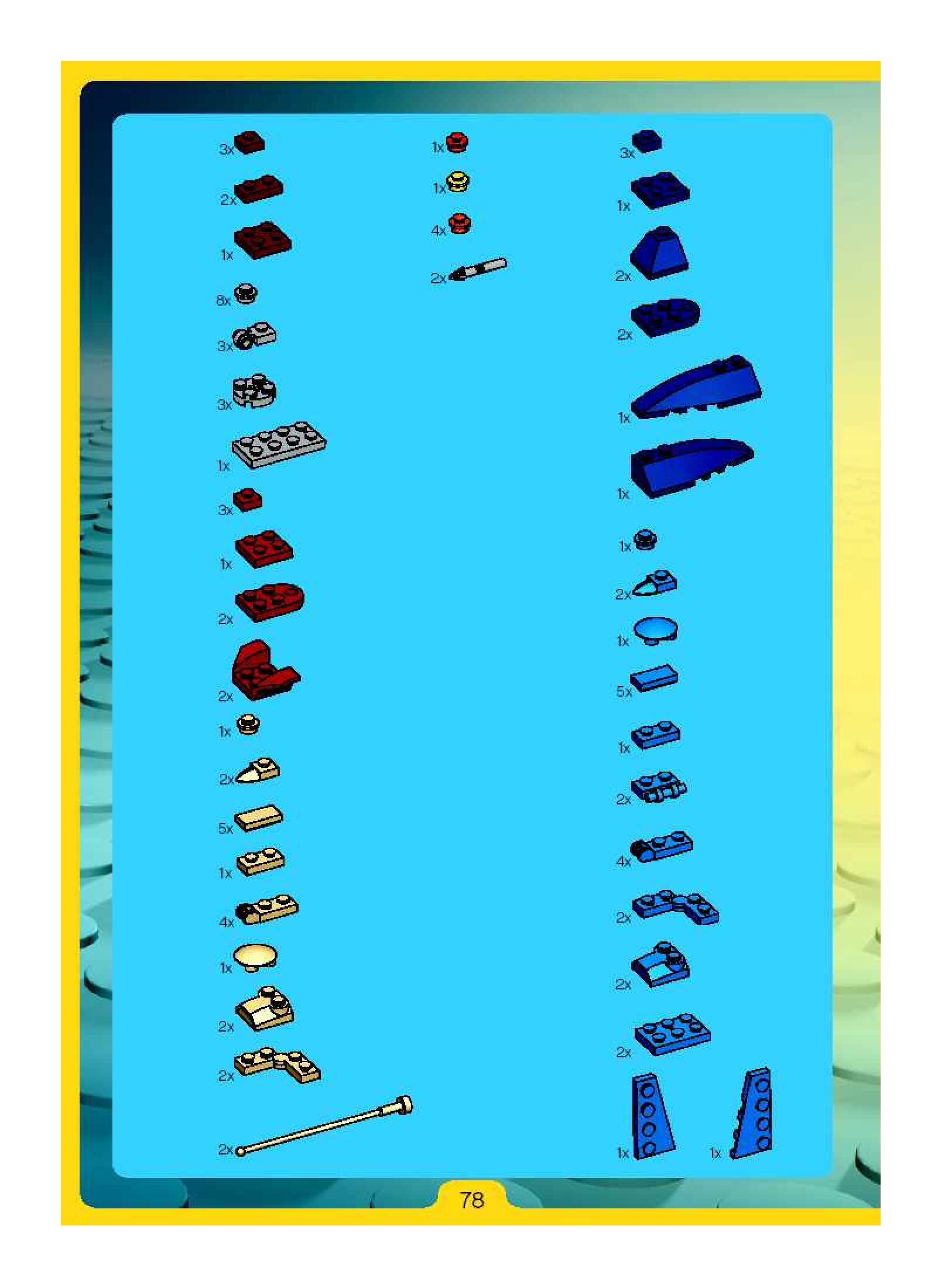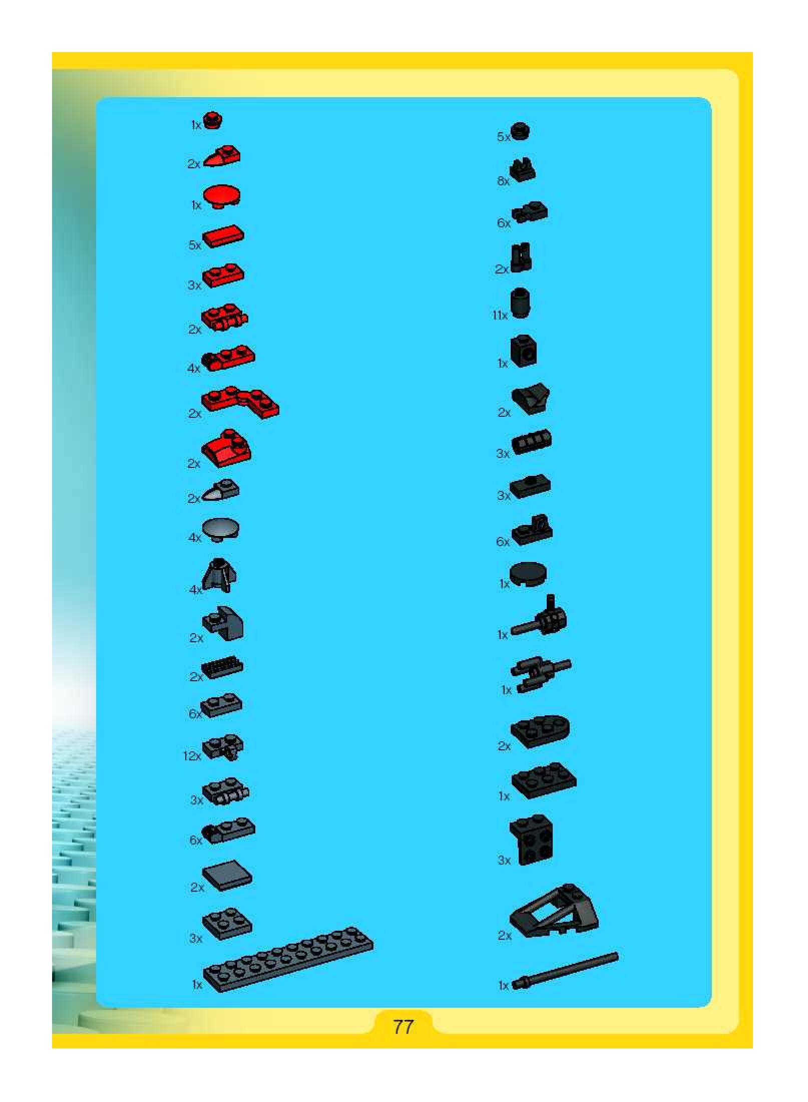The assembly guide is prepared in a very understandable way for children and adult LEGO enthusiasts. A total of 80 picture galleries are shown, explaining the step-by-step construction stages for 1 different structures.