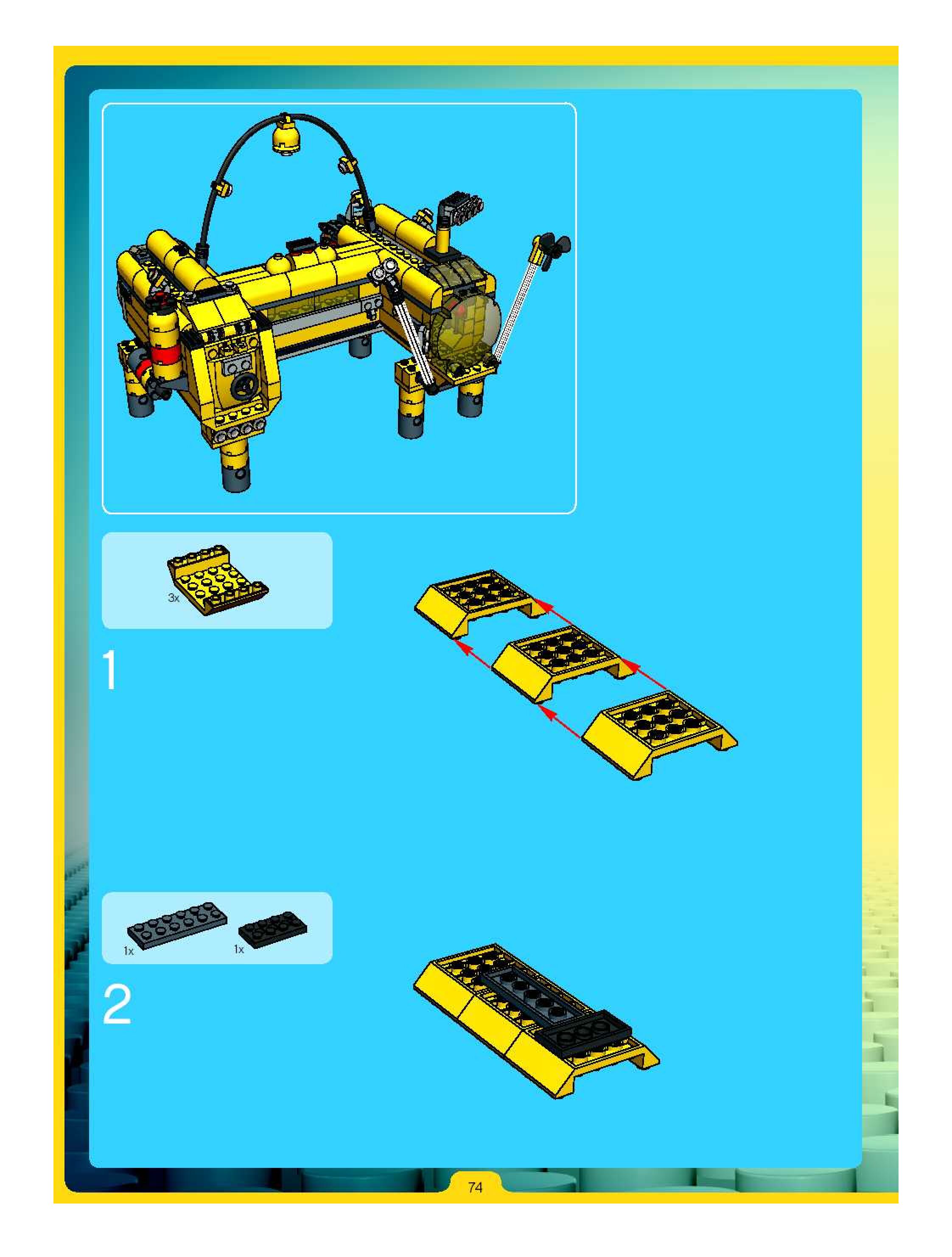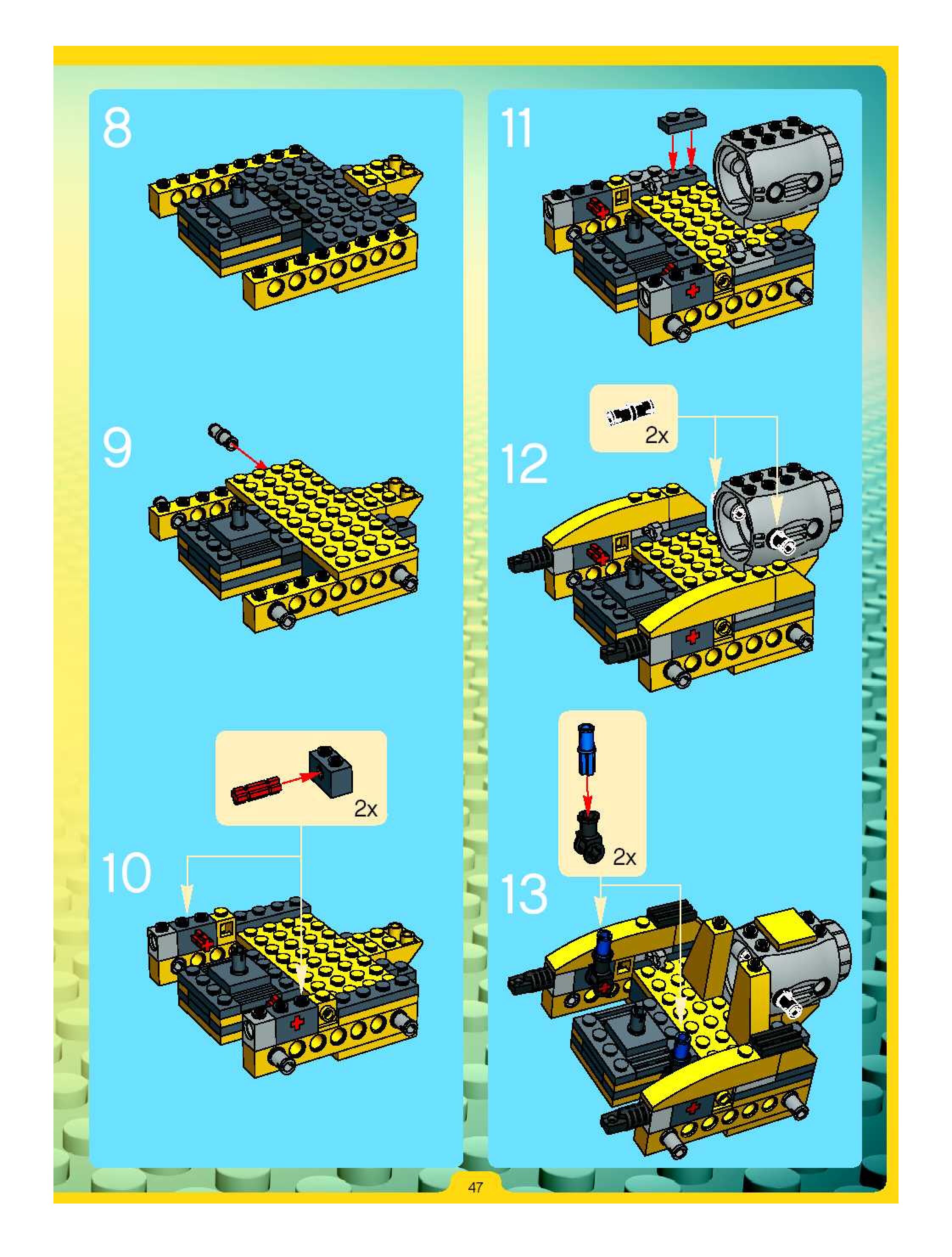 The assembly guide is prepared in a very understandable way for children and adult LEGO enthusiasts. A total of 108 picture galleries are shown, explaining the step-by-step construction stages for 1 different structures.