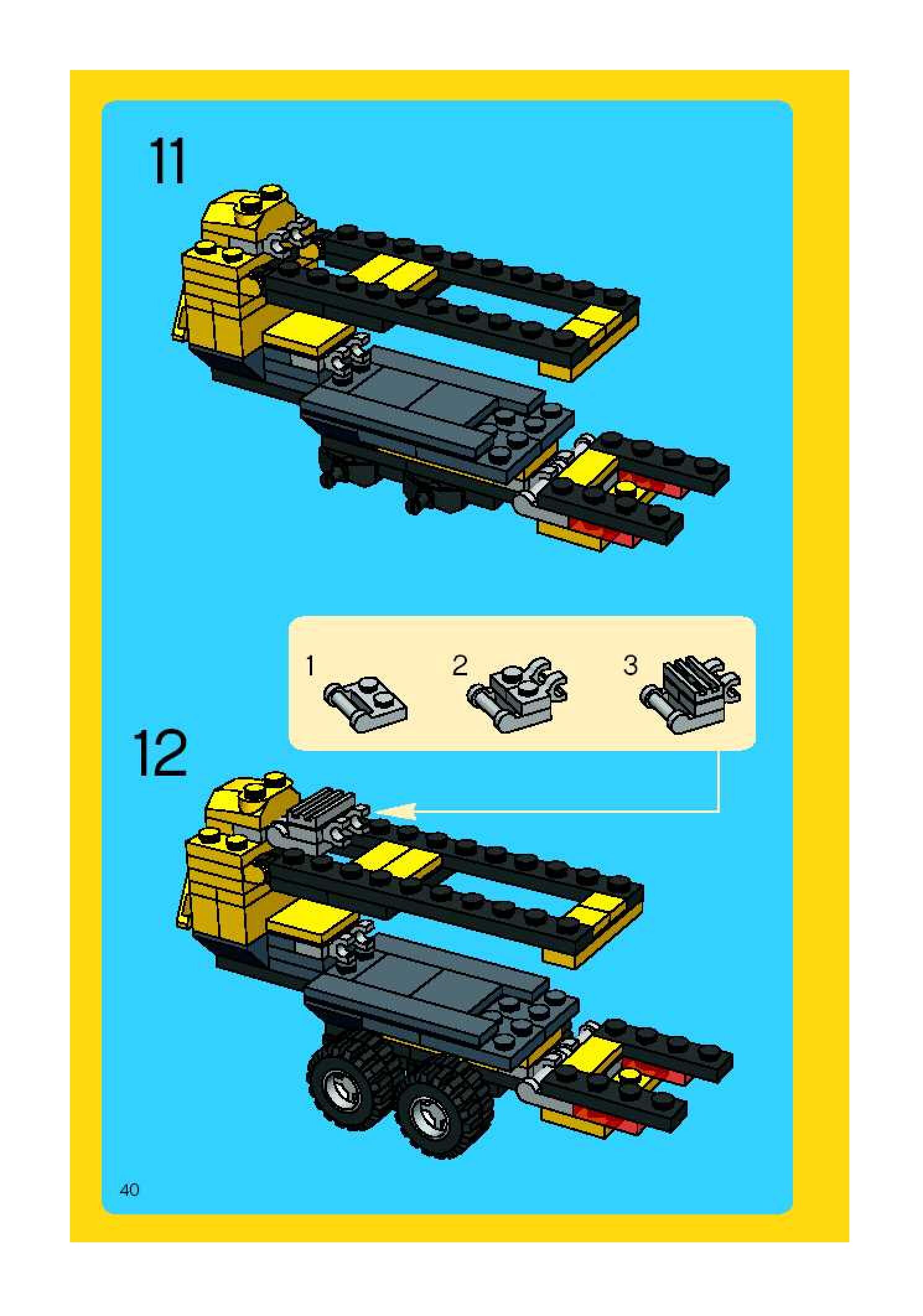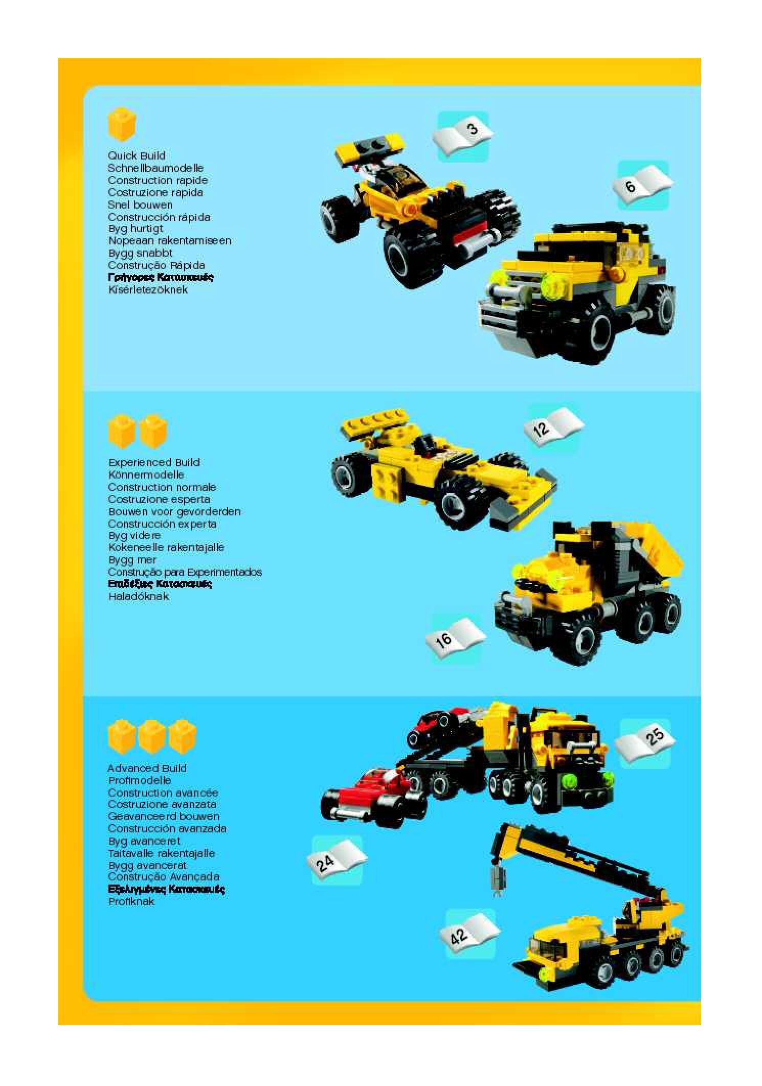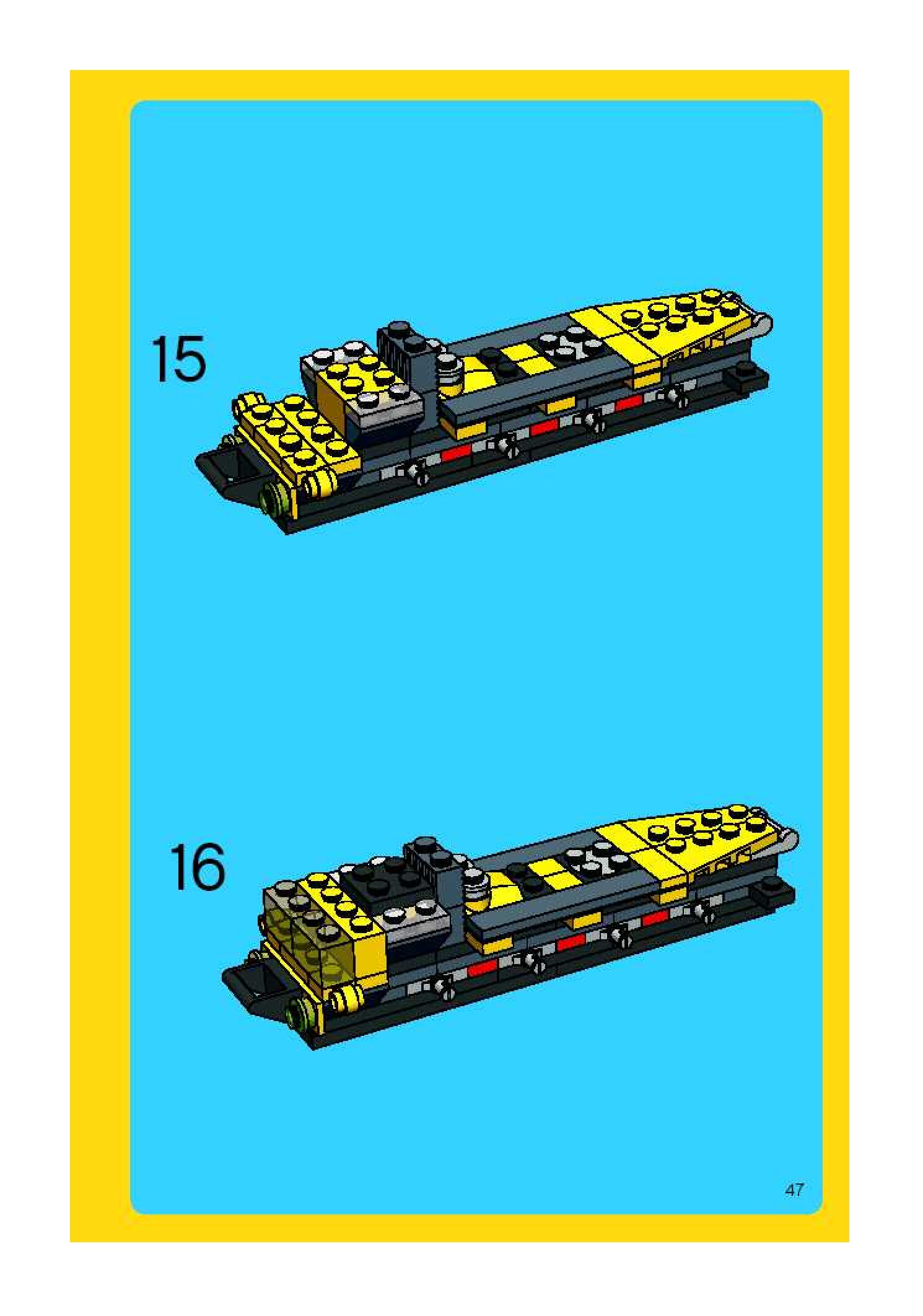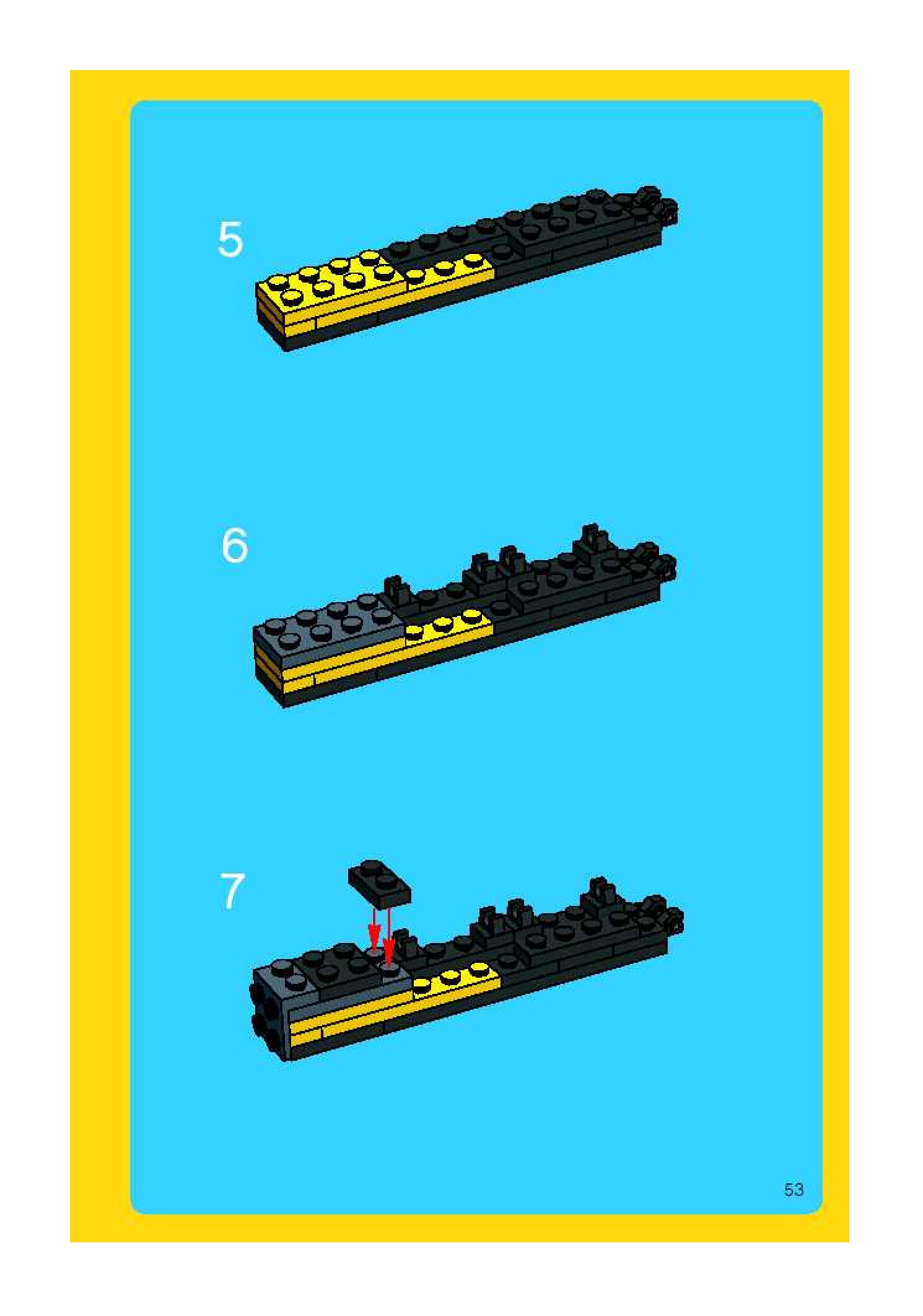 The assembly guide is prepared in a very understandable way for children and adult LEGO enthusiasts. A total of 64 picture galleries are shown, explaining the step-by-step construction stages for 1 different structures.