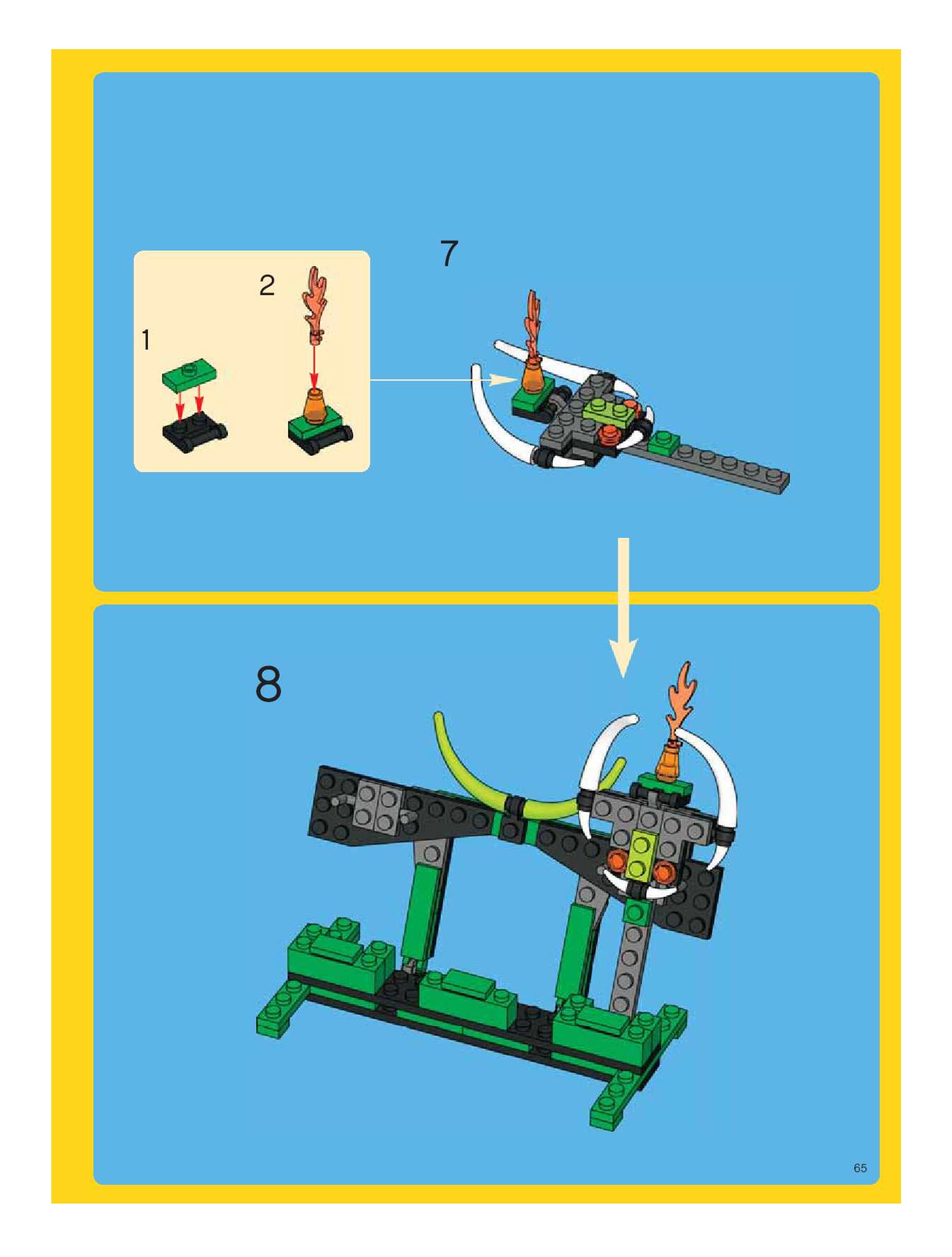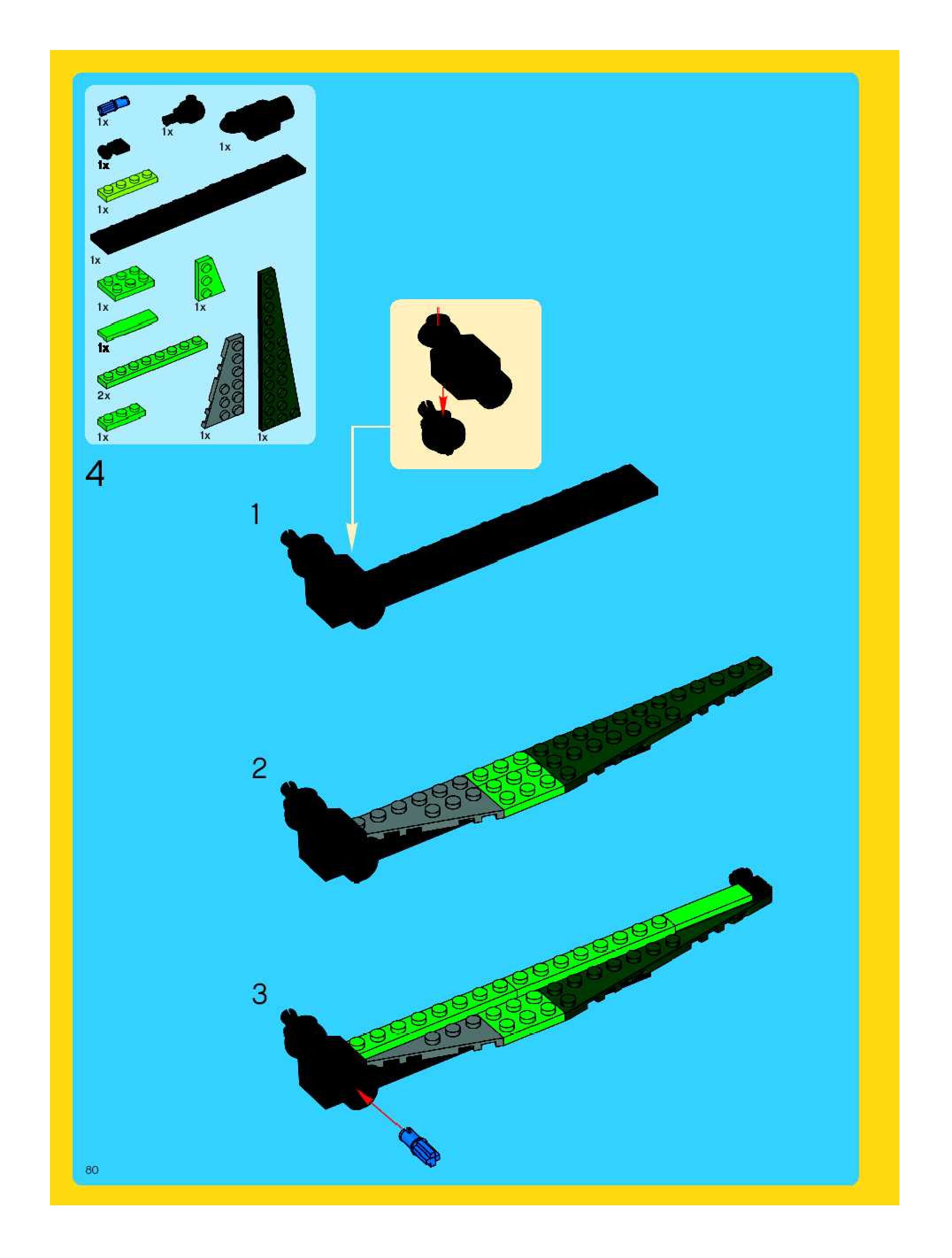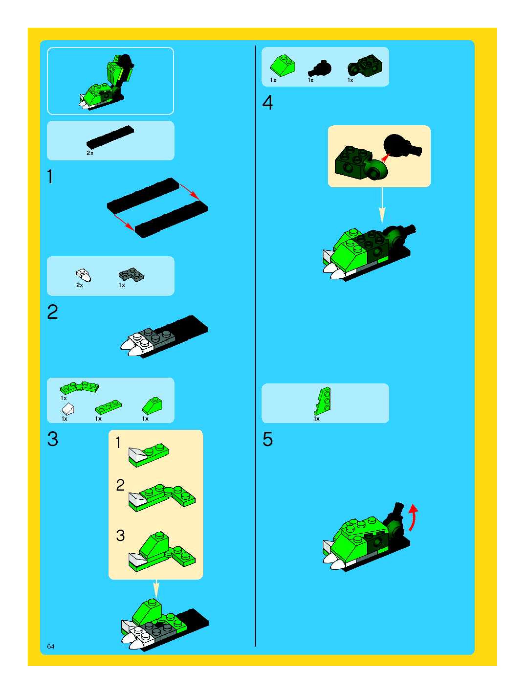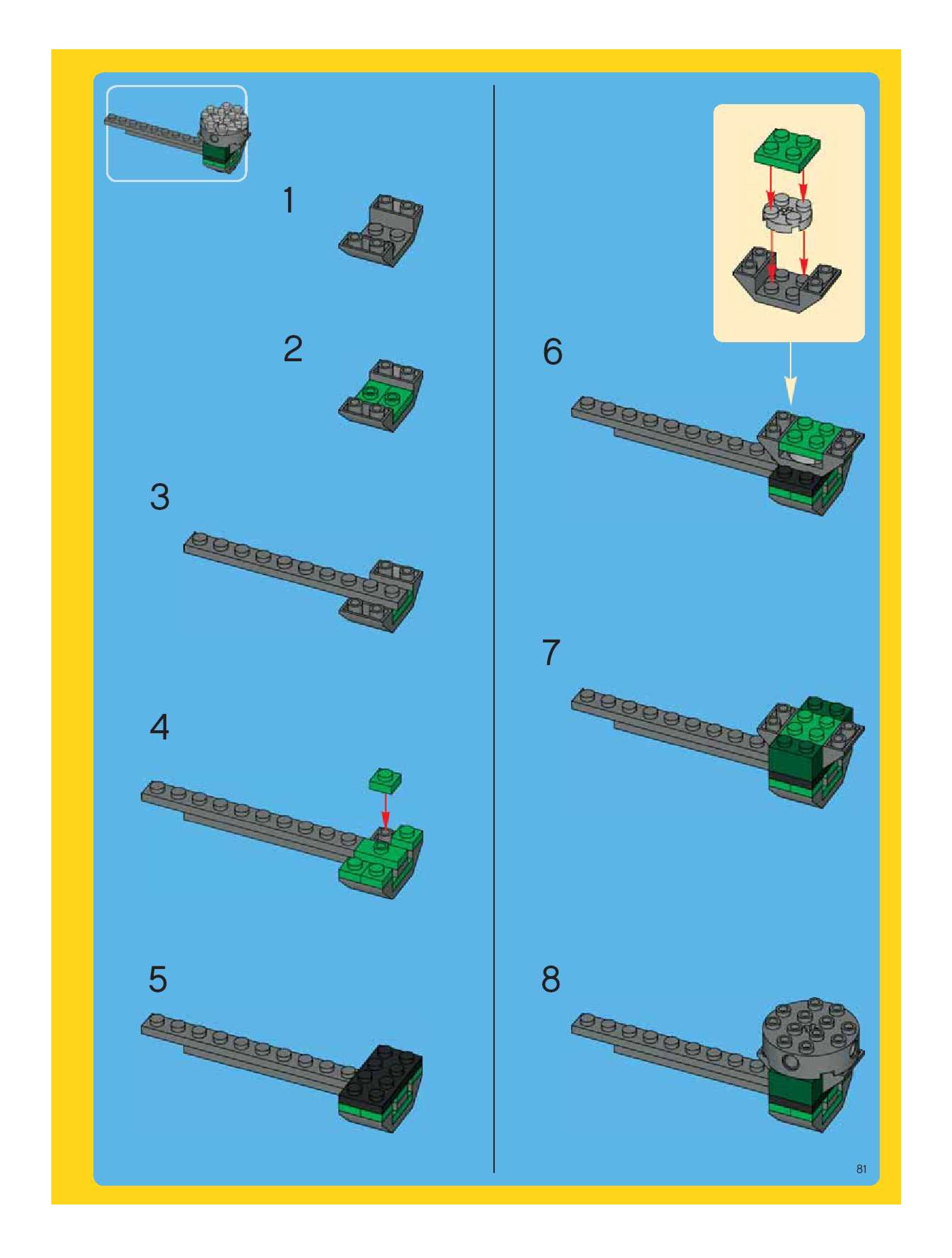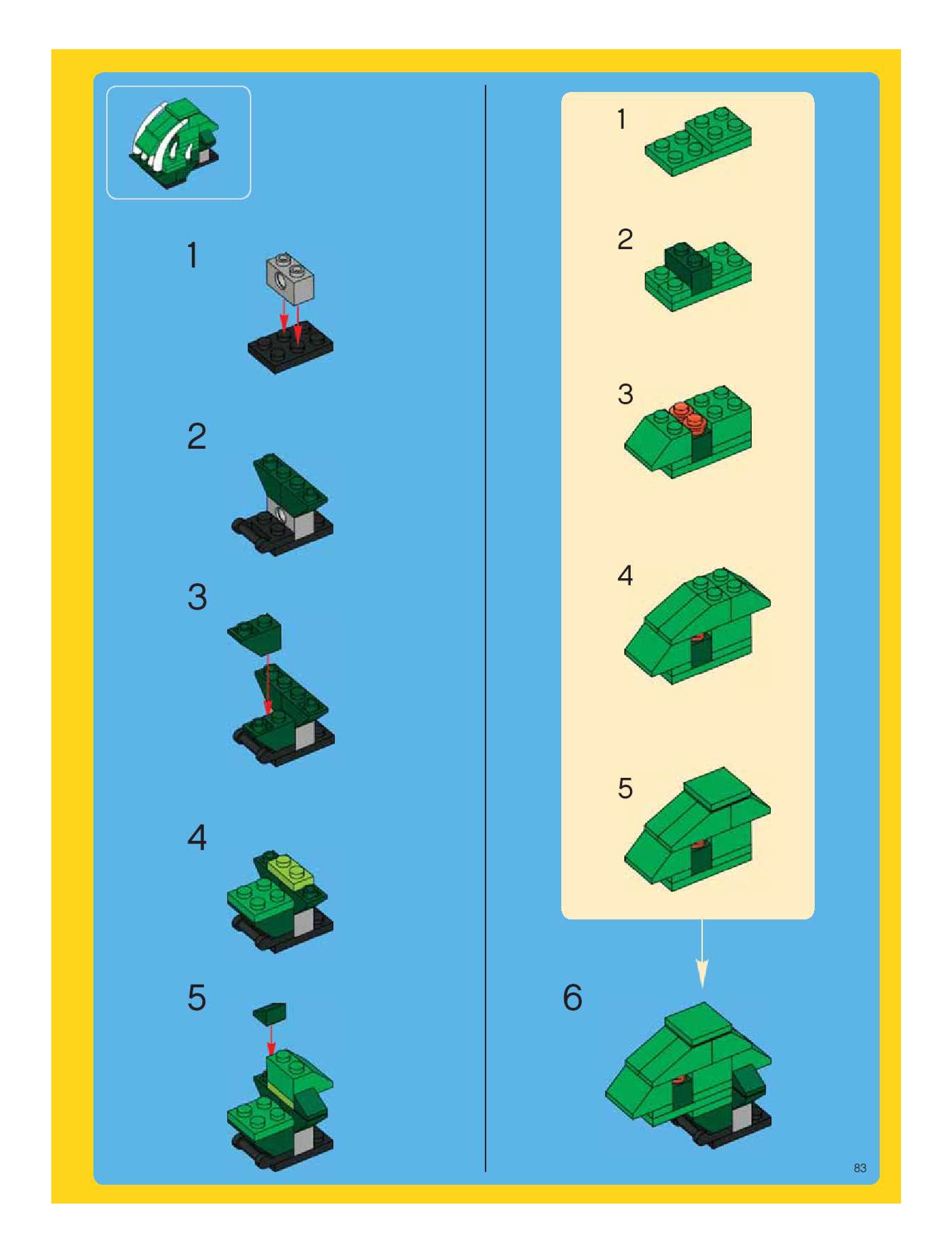 The assembly guide is prepared in a very understandable way for children and adult LEGO enthusiasts. A total of 184 picture galleries are shown, explaining the step-by-step construction stages for 2 different structures.