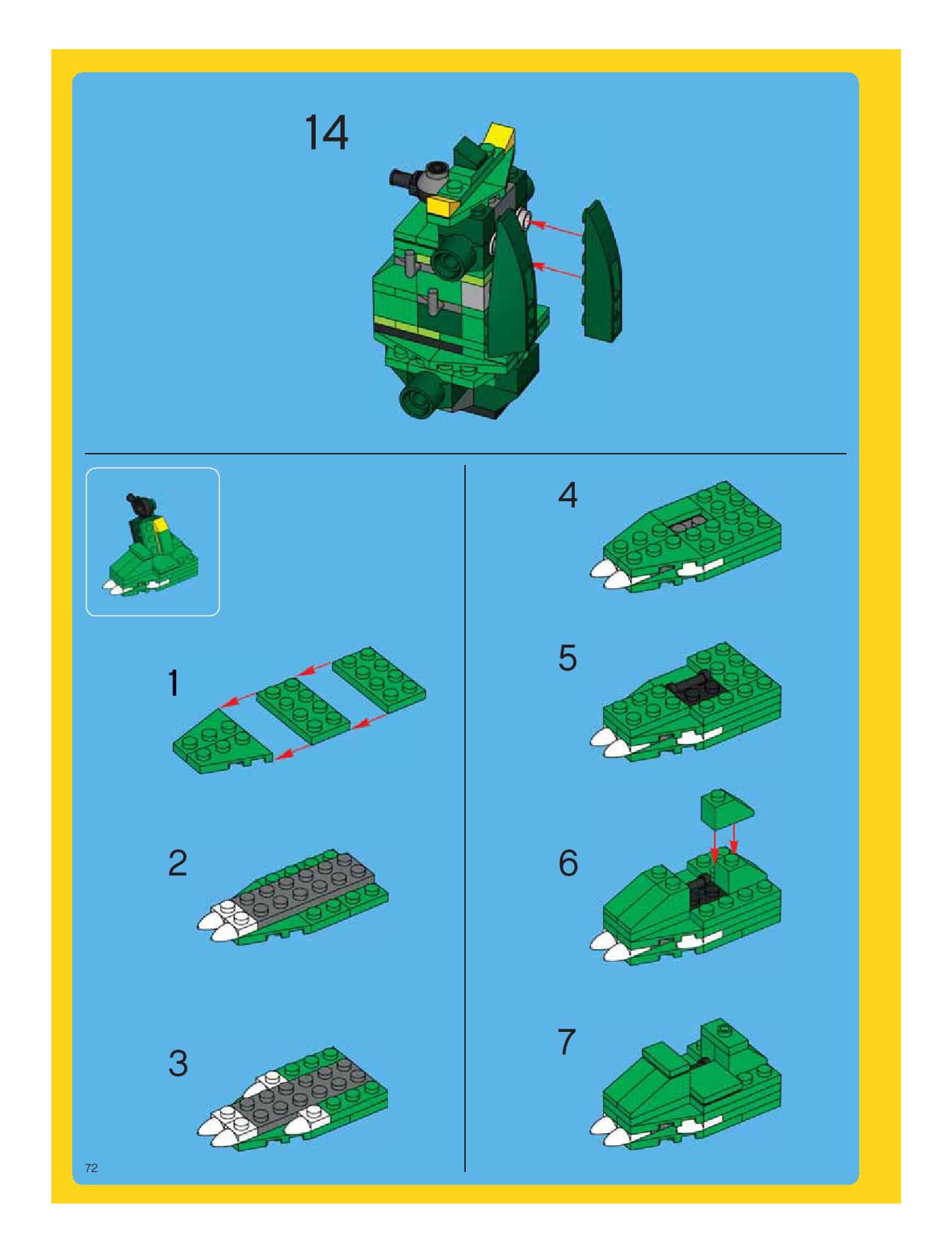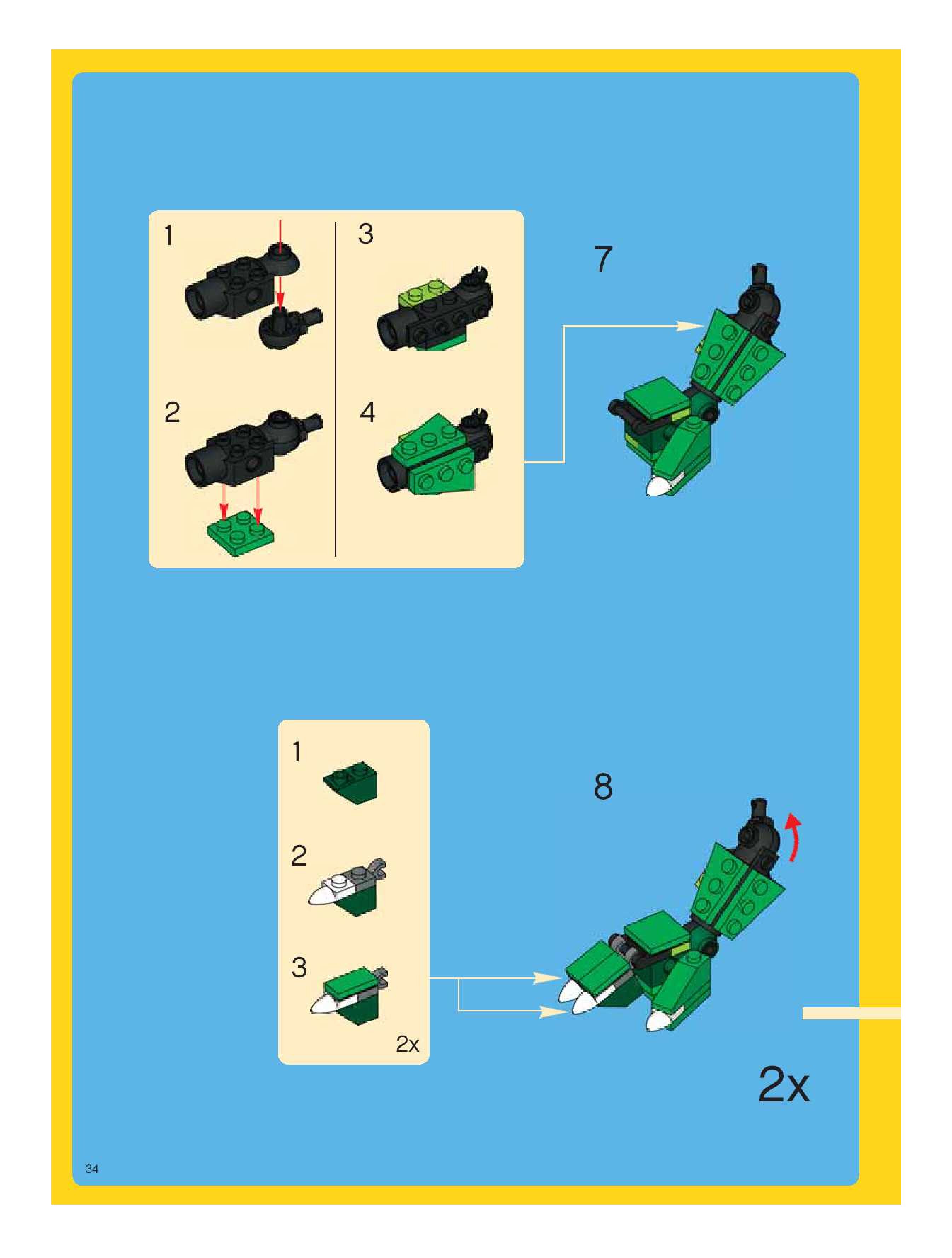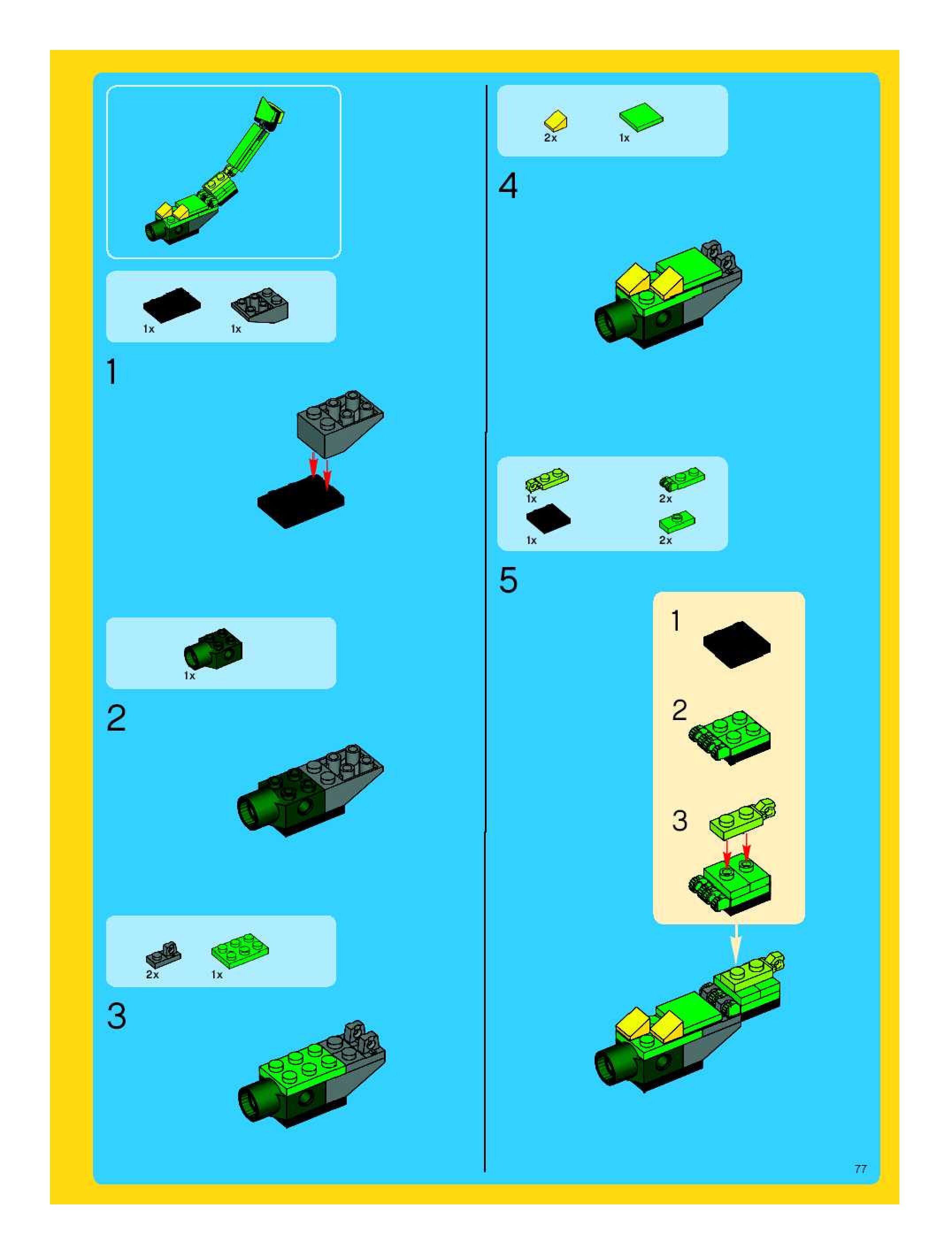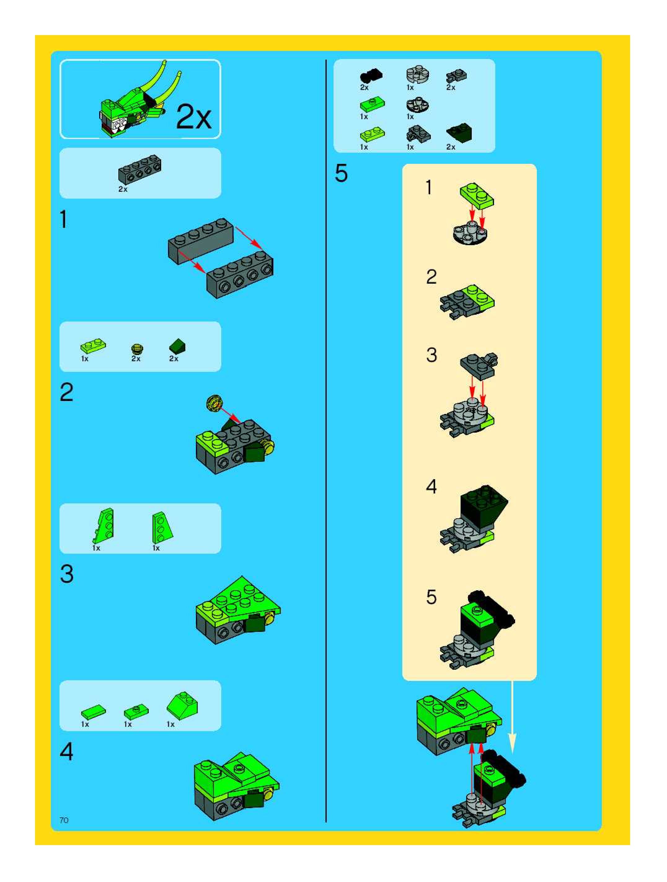 The assembly guide is prepared in a very understandable way for children and adult LEGO enthusiasts. A total of 184 picture galleries are shown, explaining the step-by-step construction stages for 2 different structures.