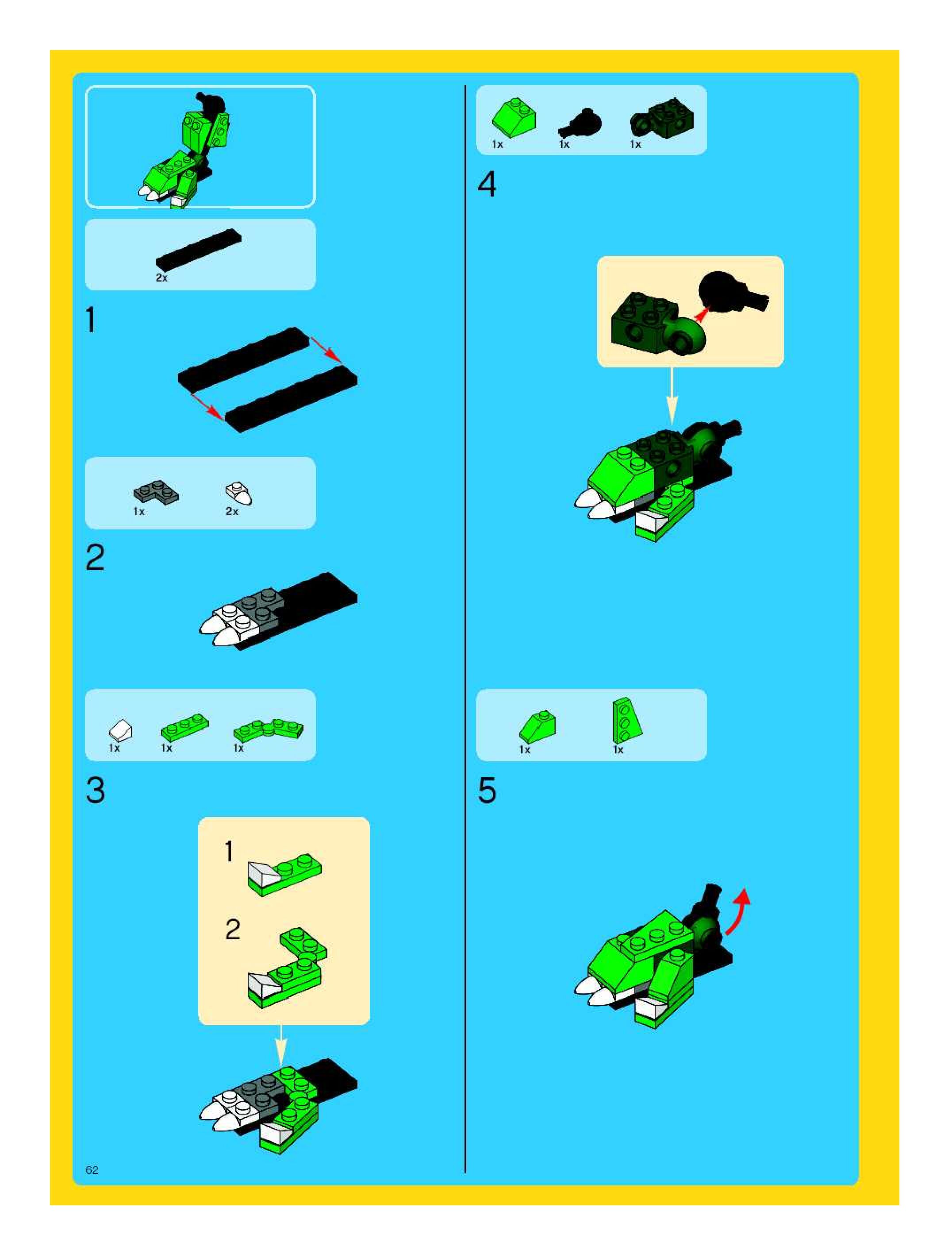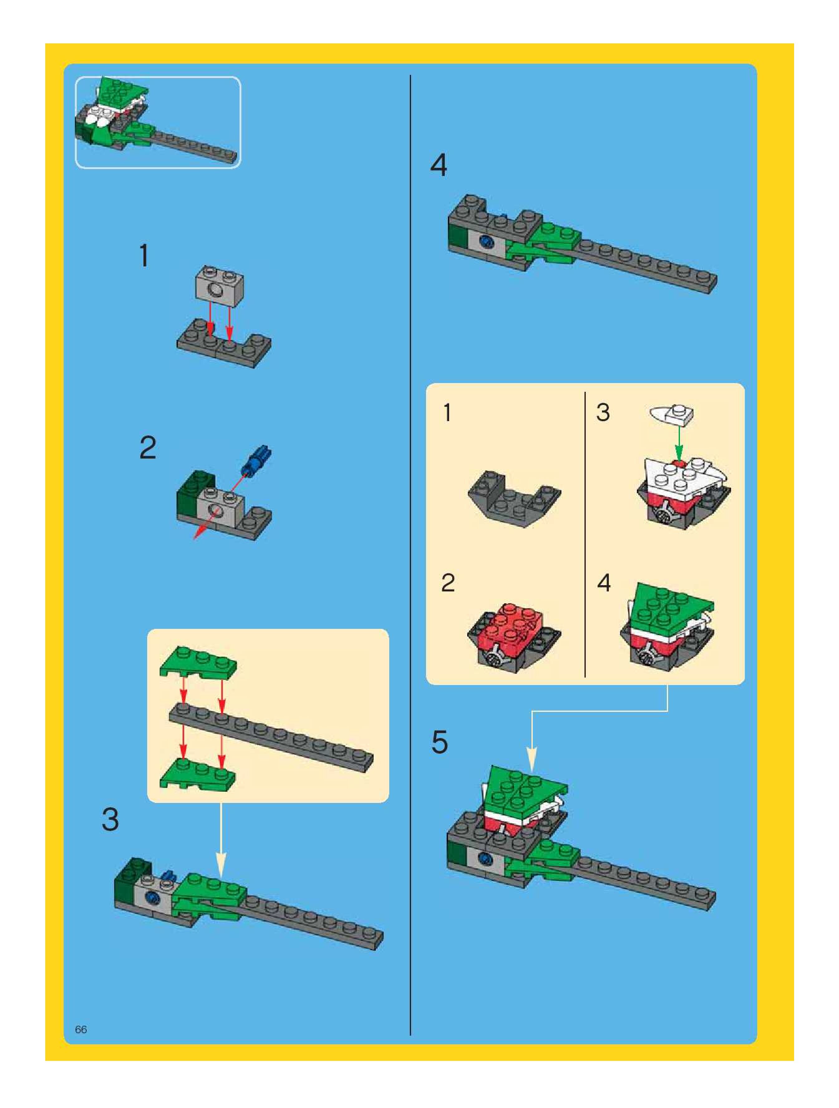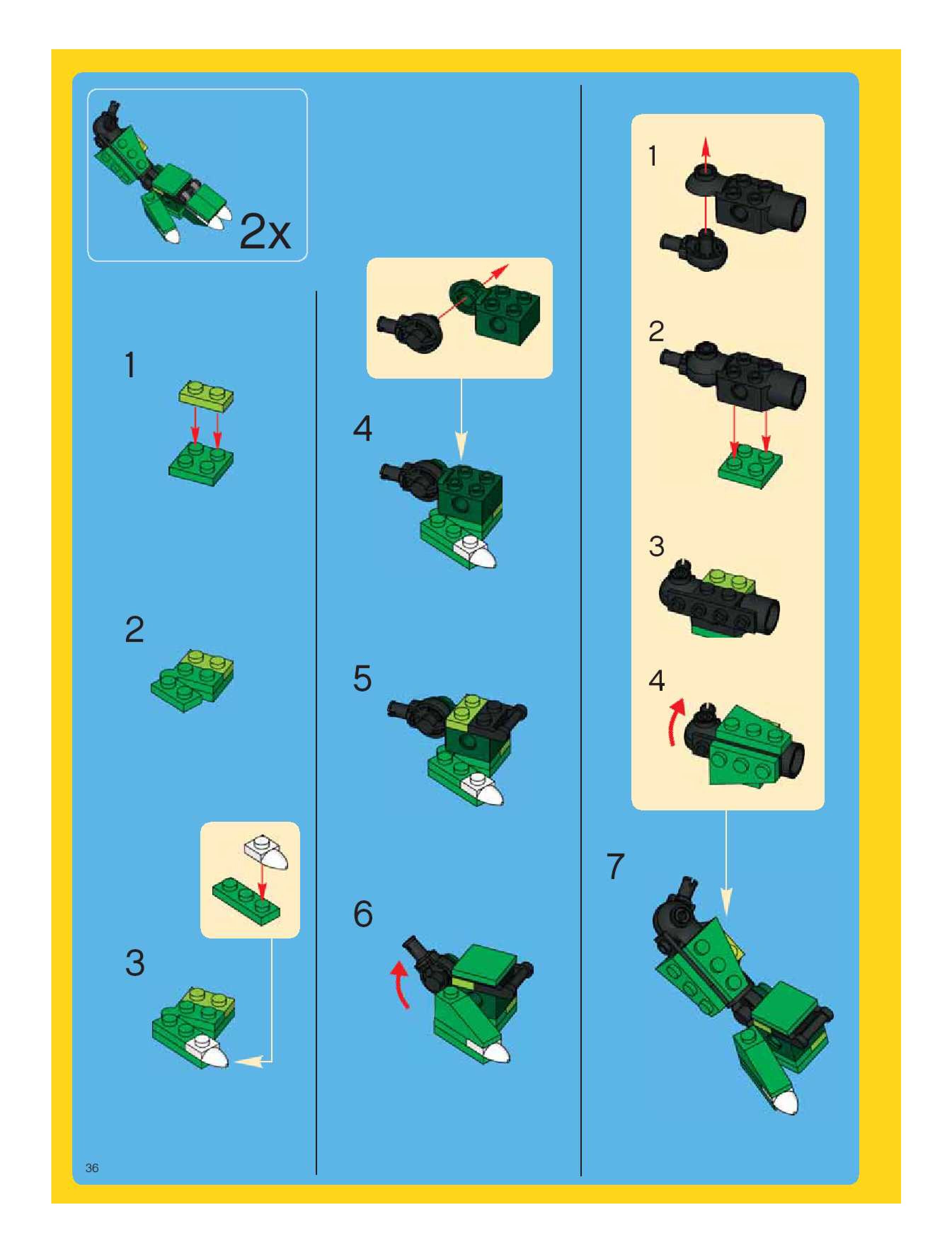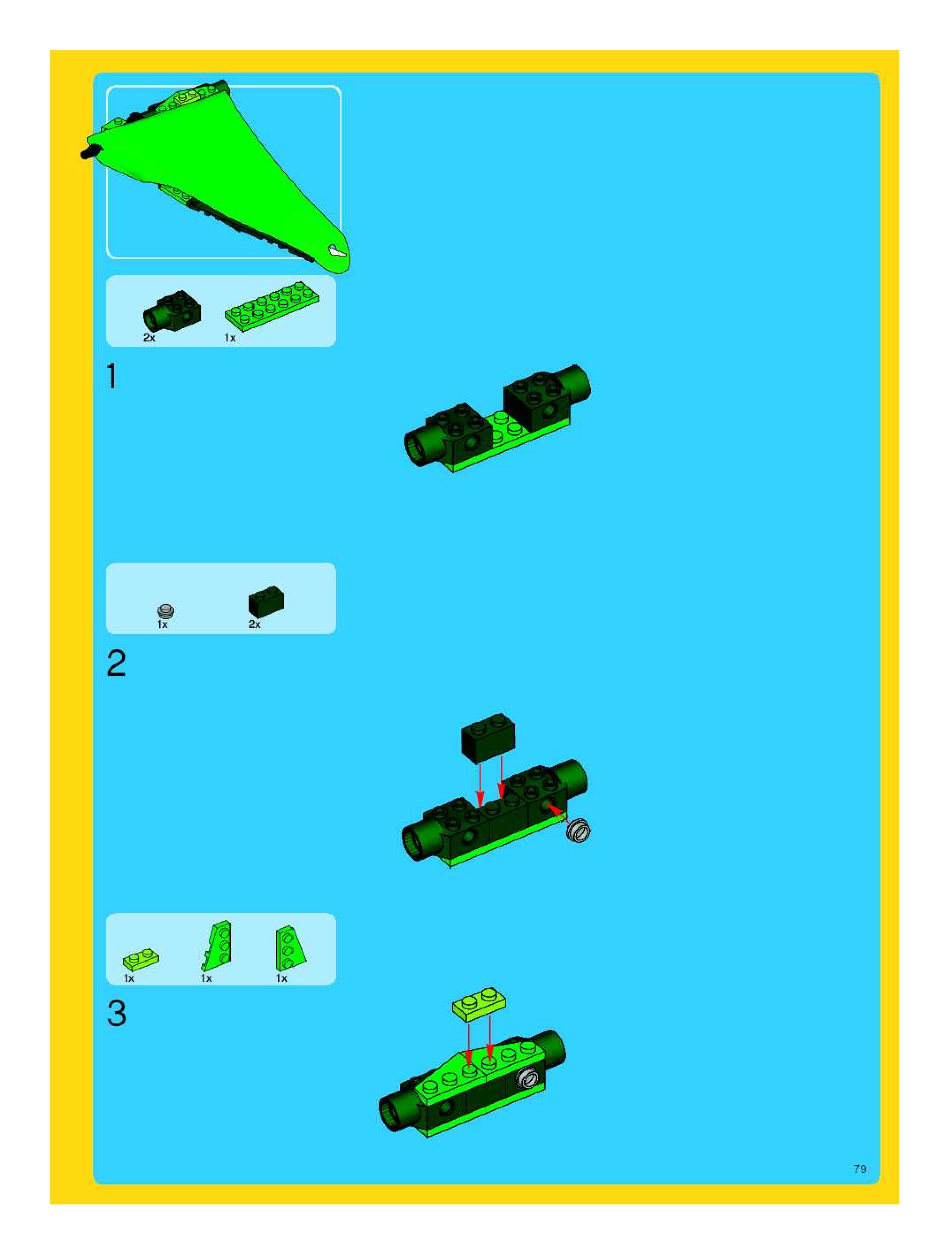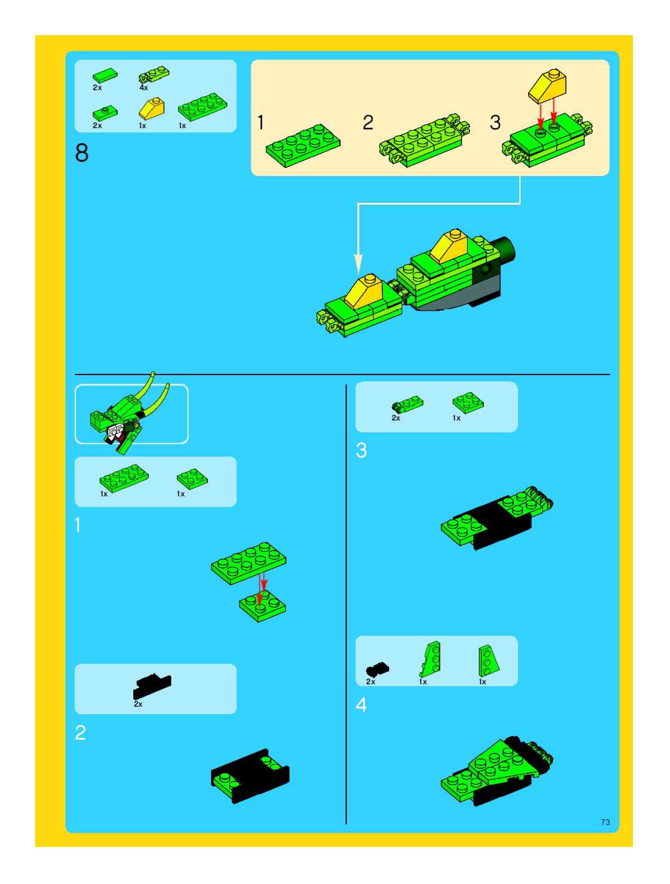 The assembly guide is prepared in a very understandable way for children and adult LEGO enthusiasts. A total of 184 picture galleries are shown, explaining the step-by-step construction stages for 2 different structures.