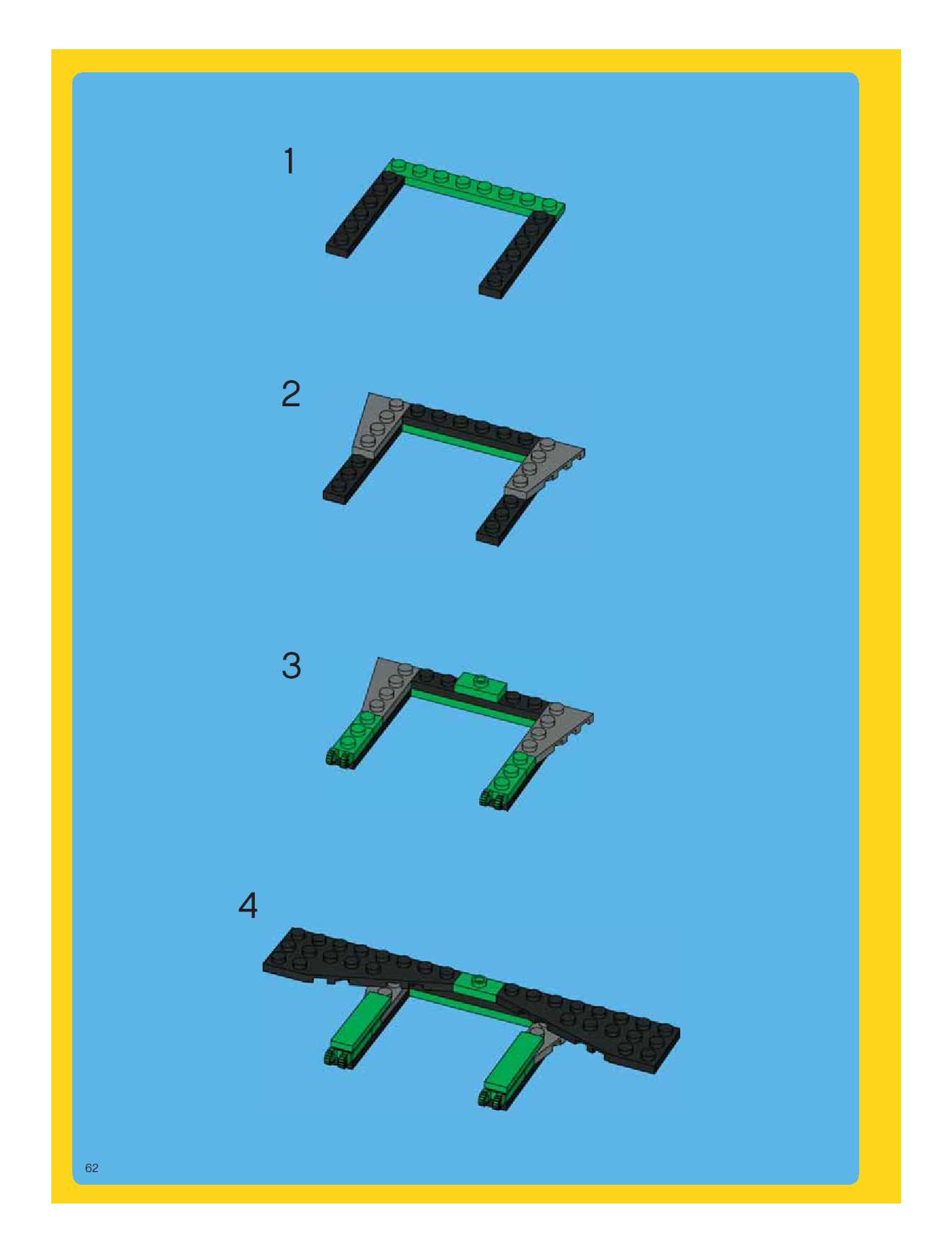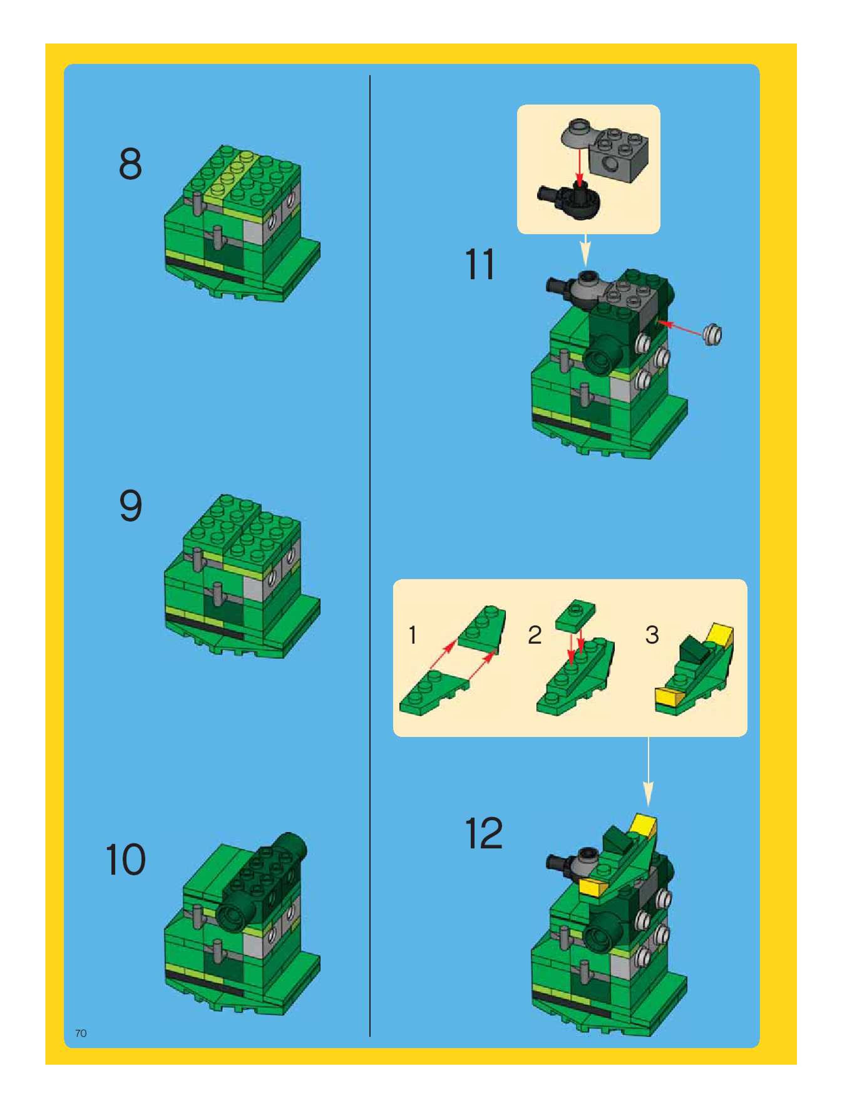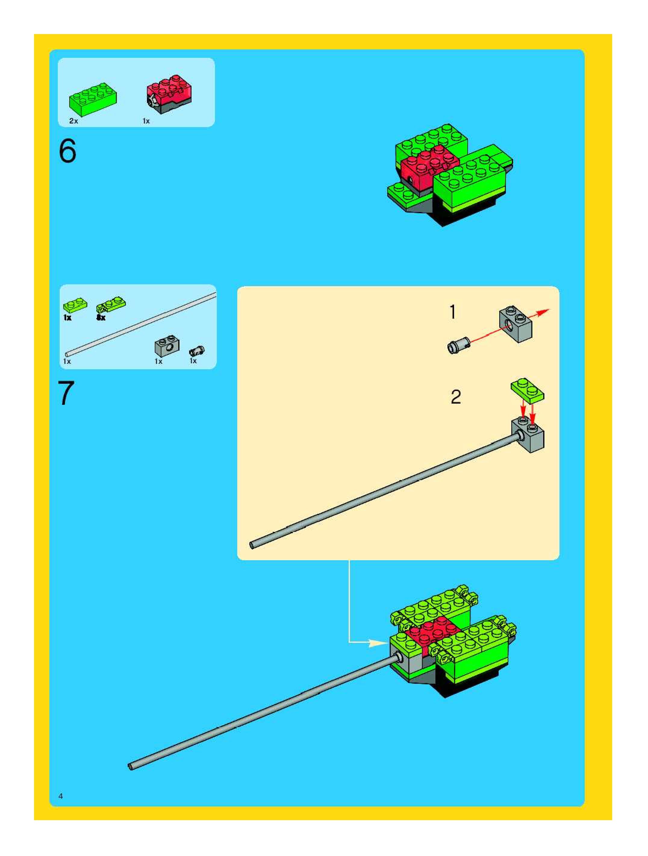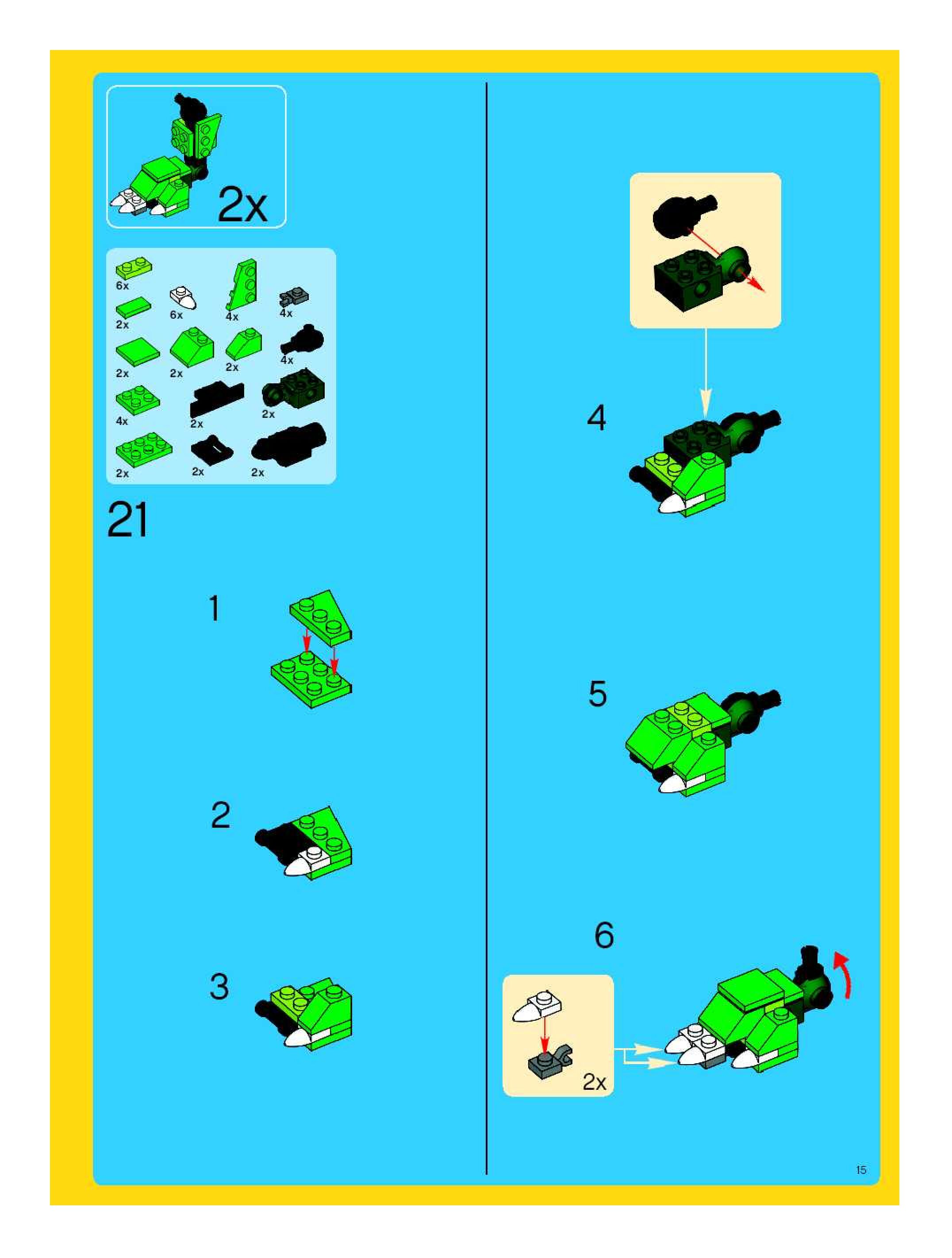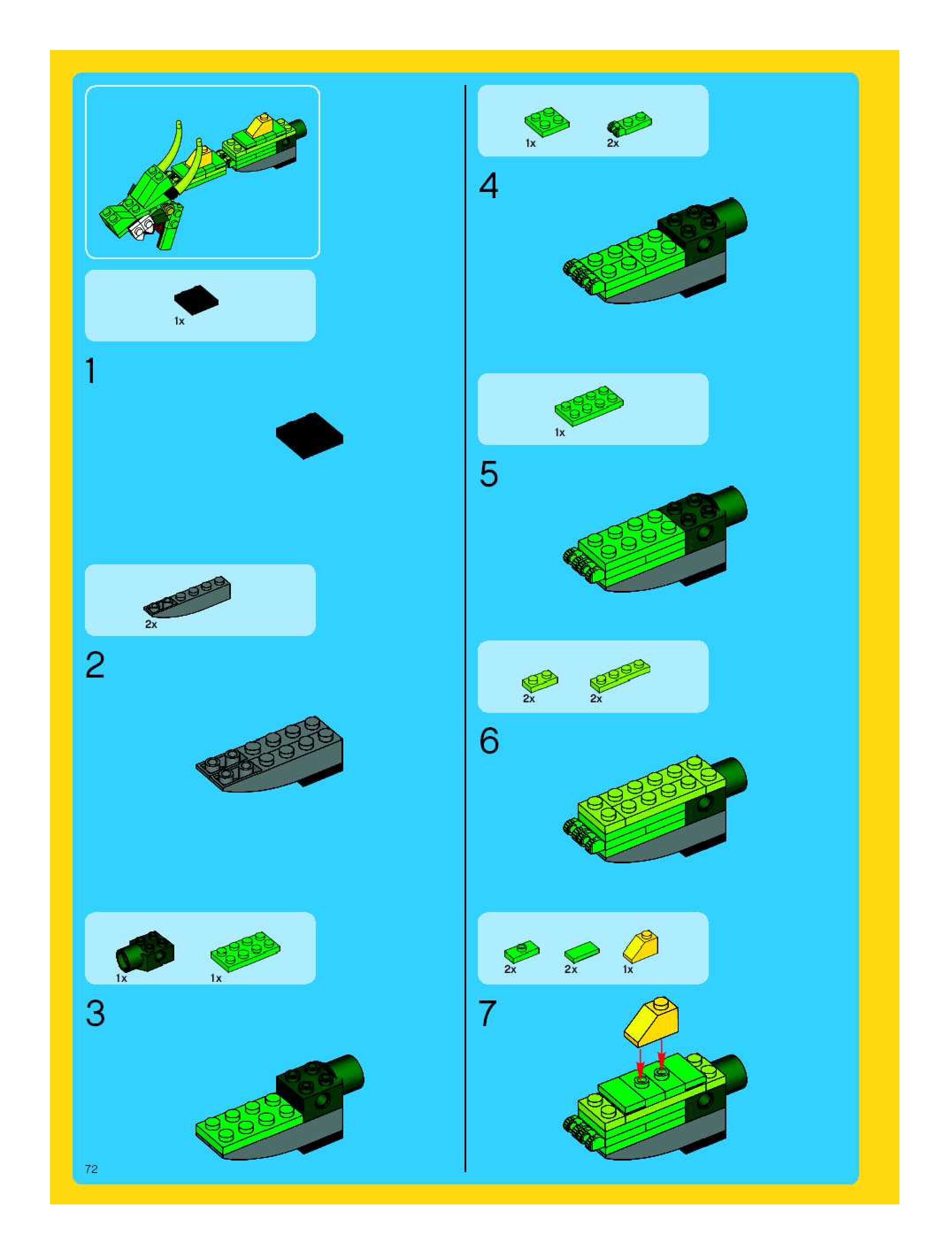 The assembly guide is prepared in a very understandable way for children and adult LEGO enthusiasts. A total of 184 picture galleries are shown, explaining the step-by-step construction stages for 2 different structures.