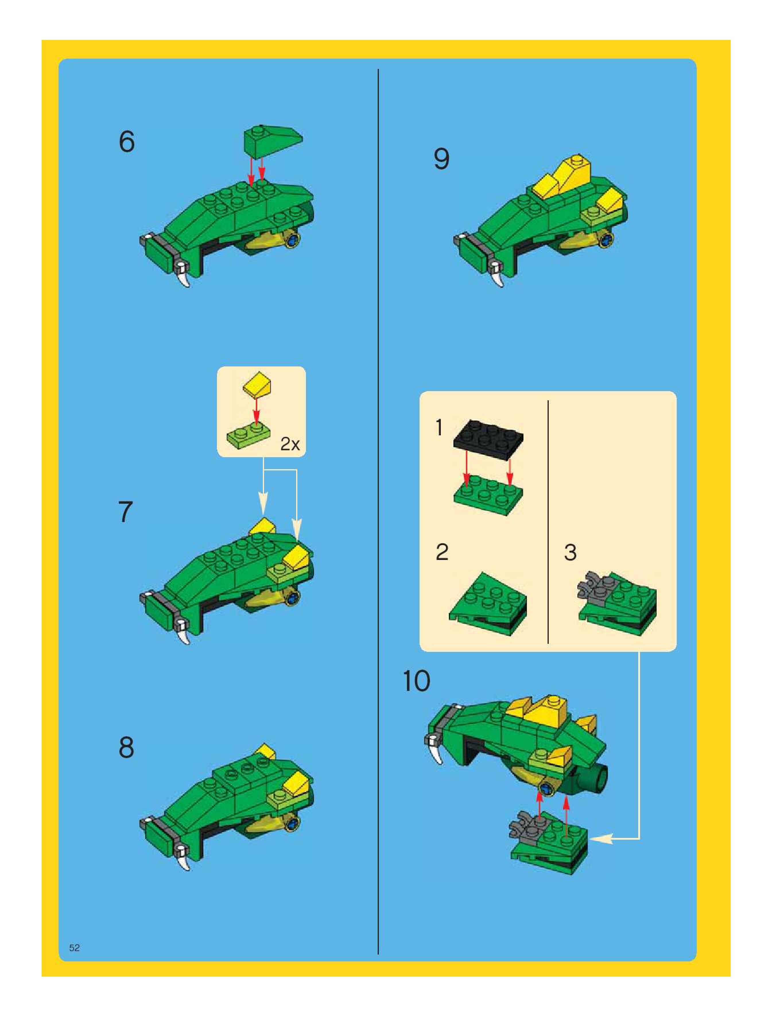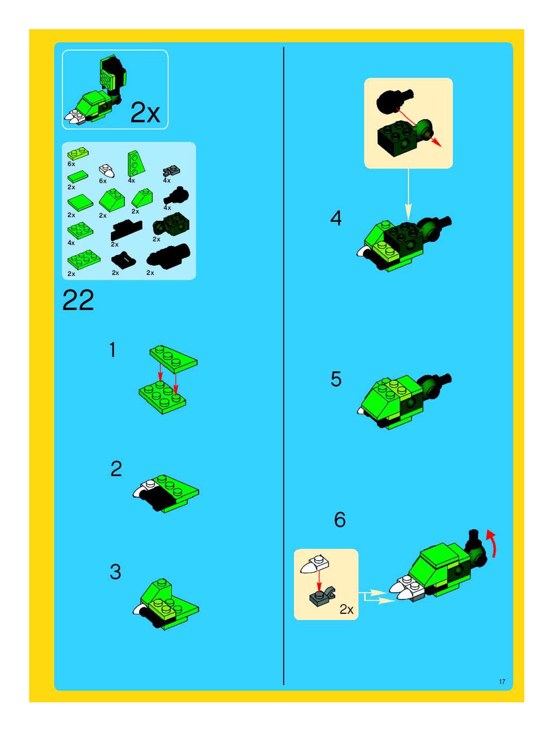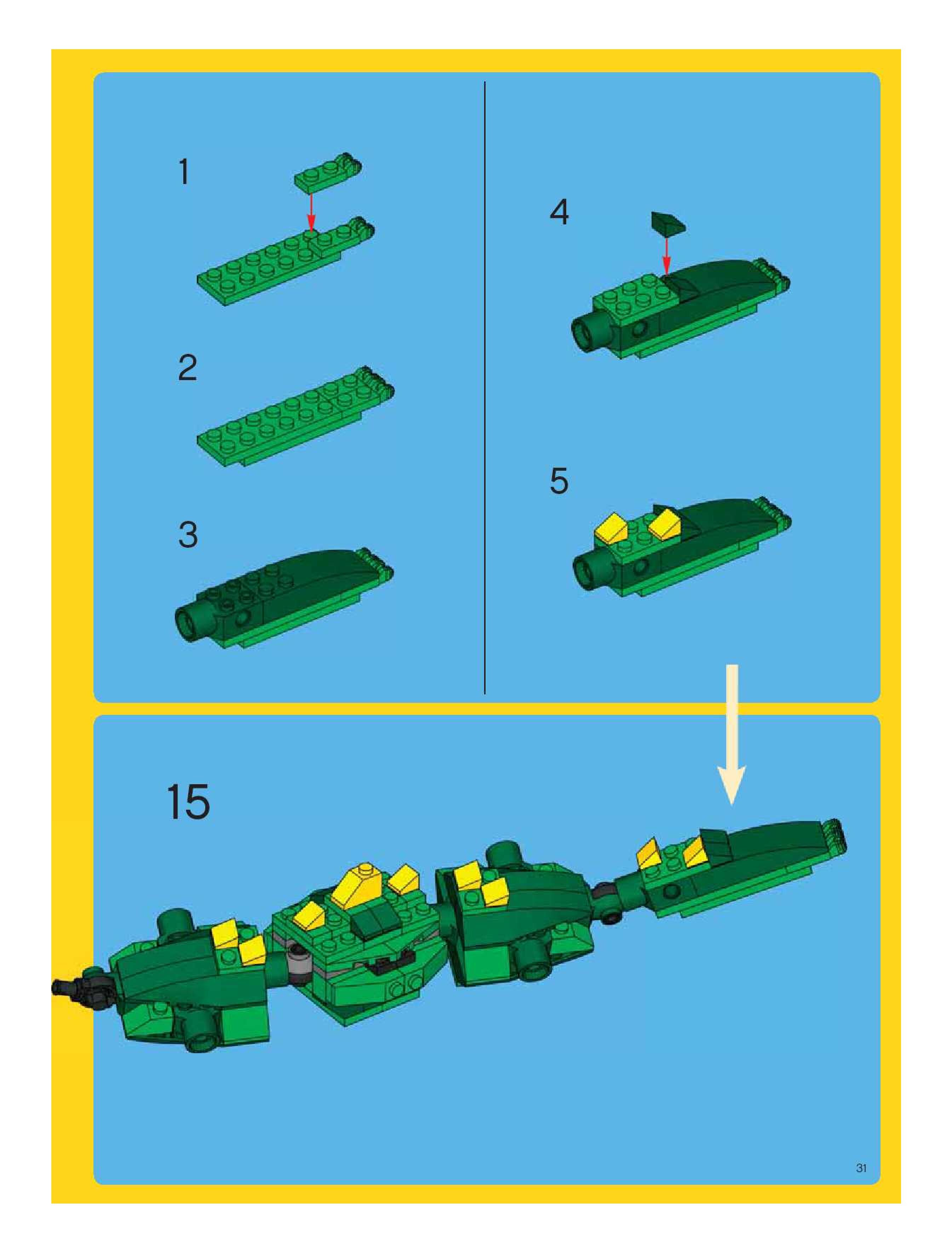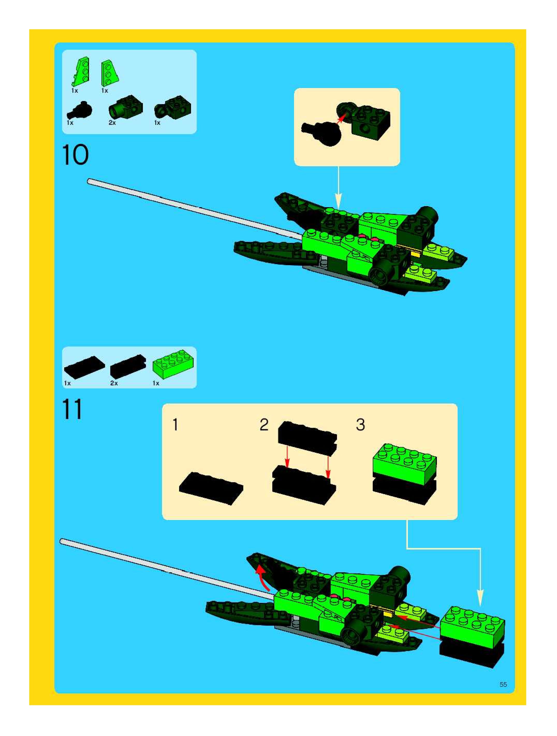 The assembly guide is prepared in a very understandable way for children and adult LEGO enthusiasts. A total of 184 picture galleries are shown, explaining the step-by-step construction stages for 2 different structures.