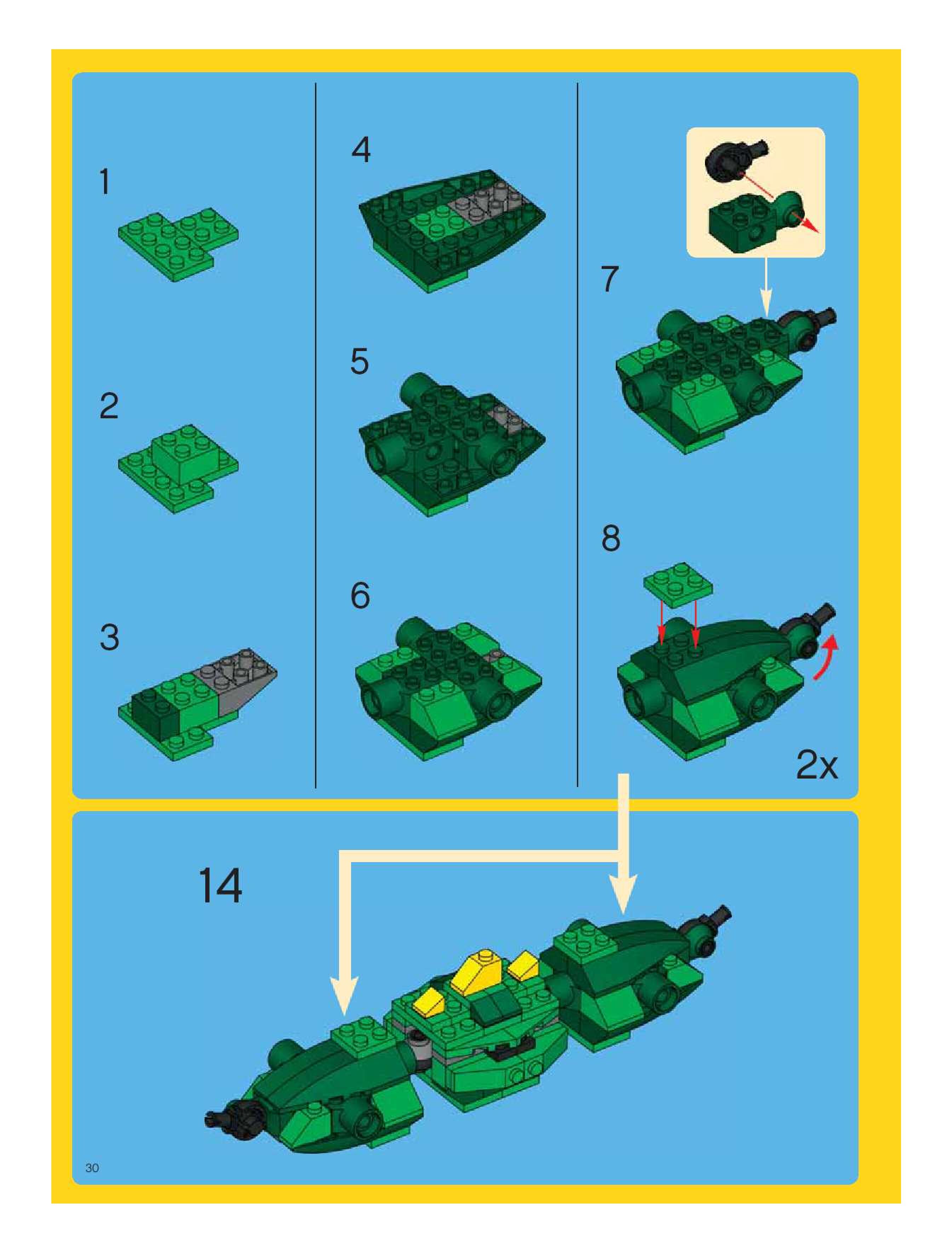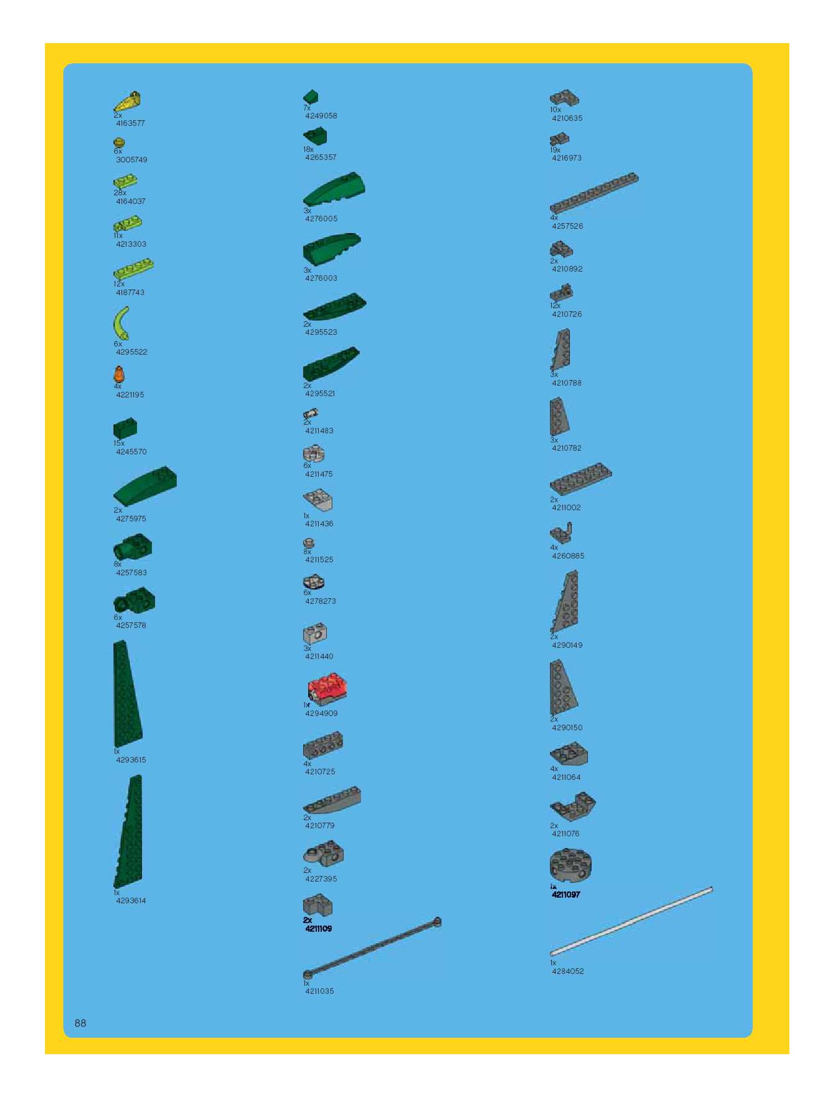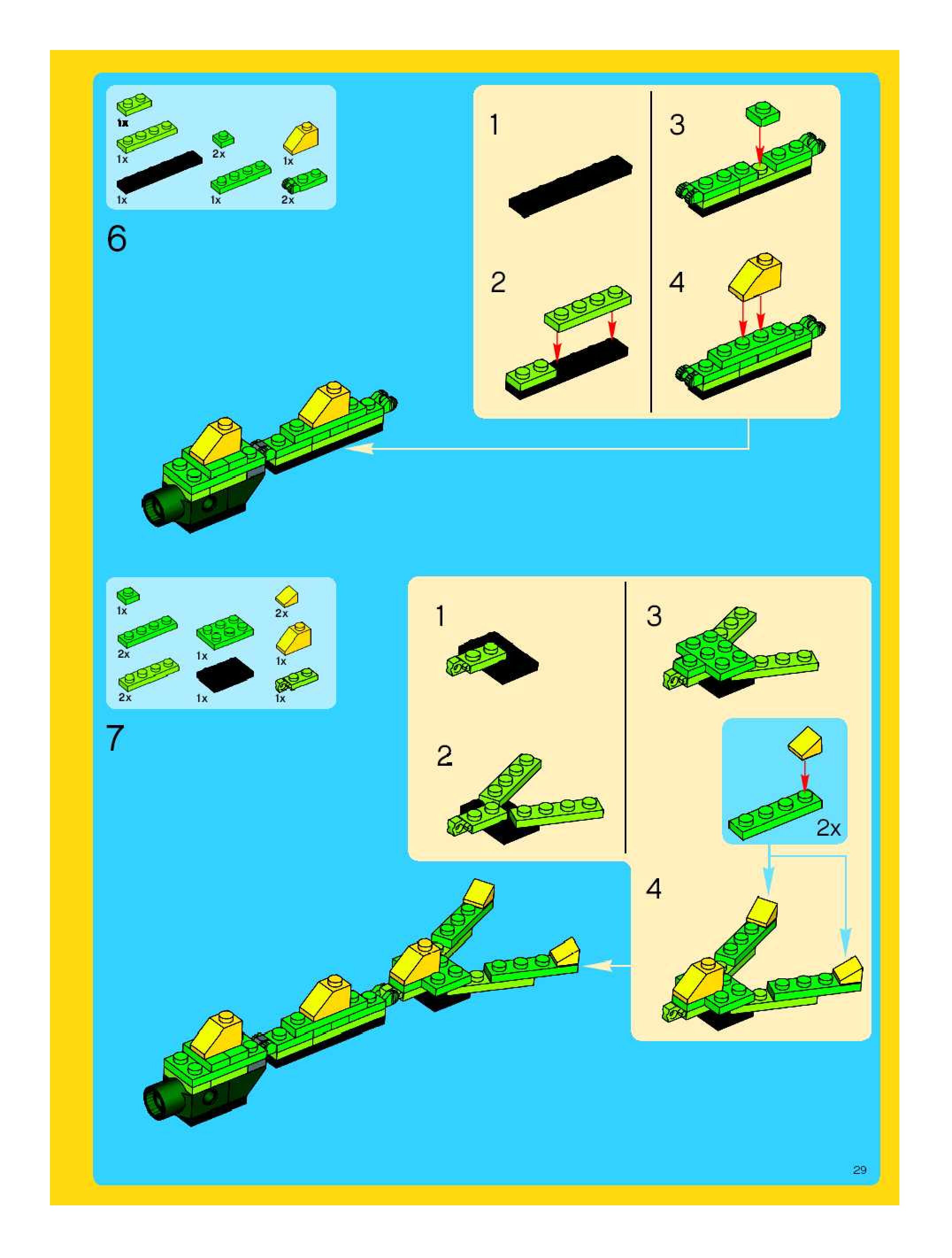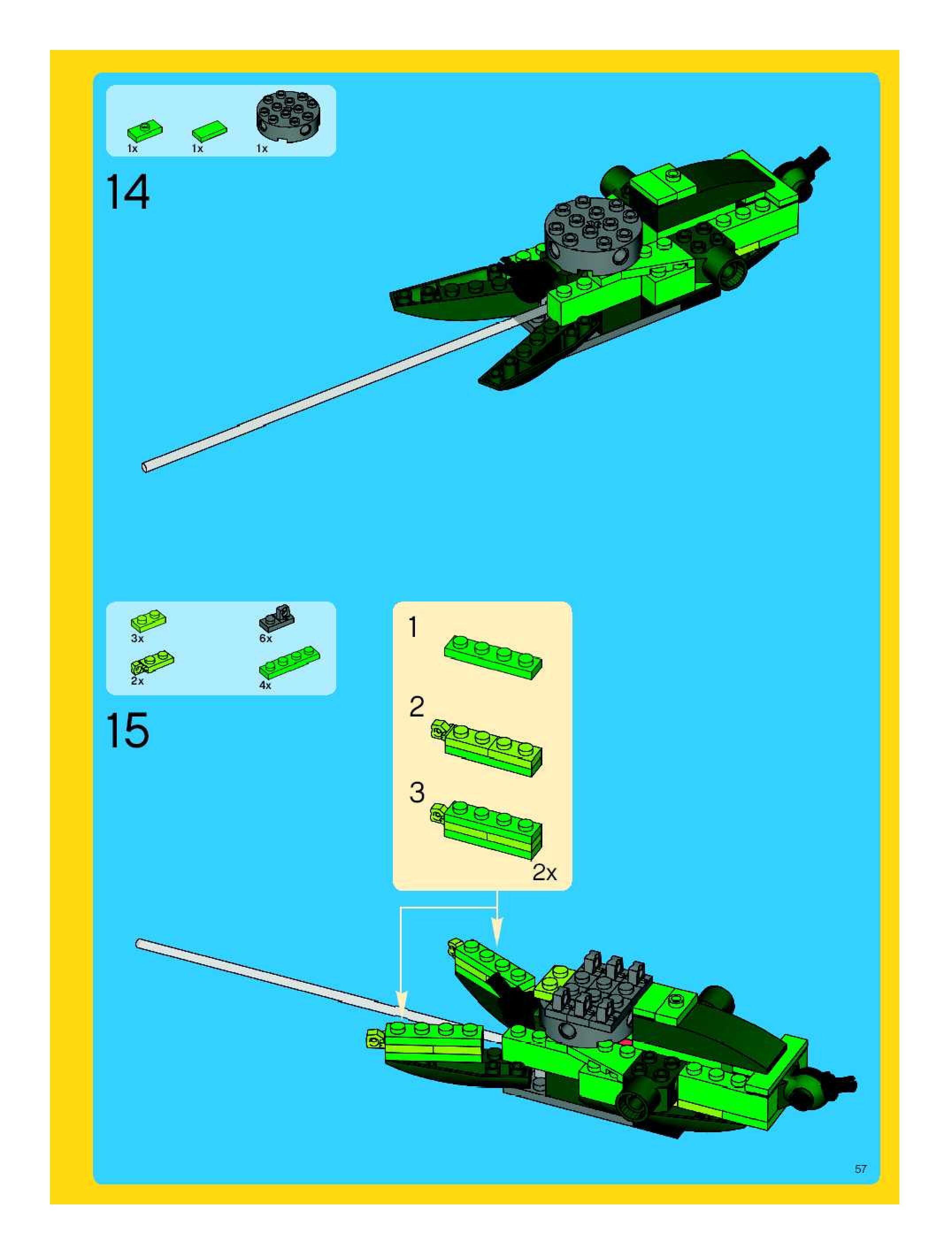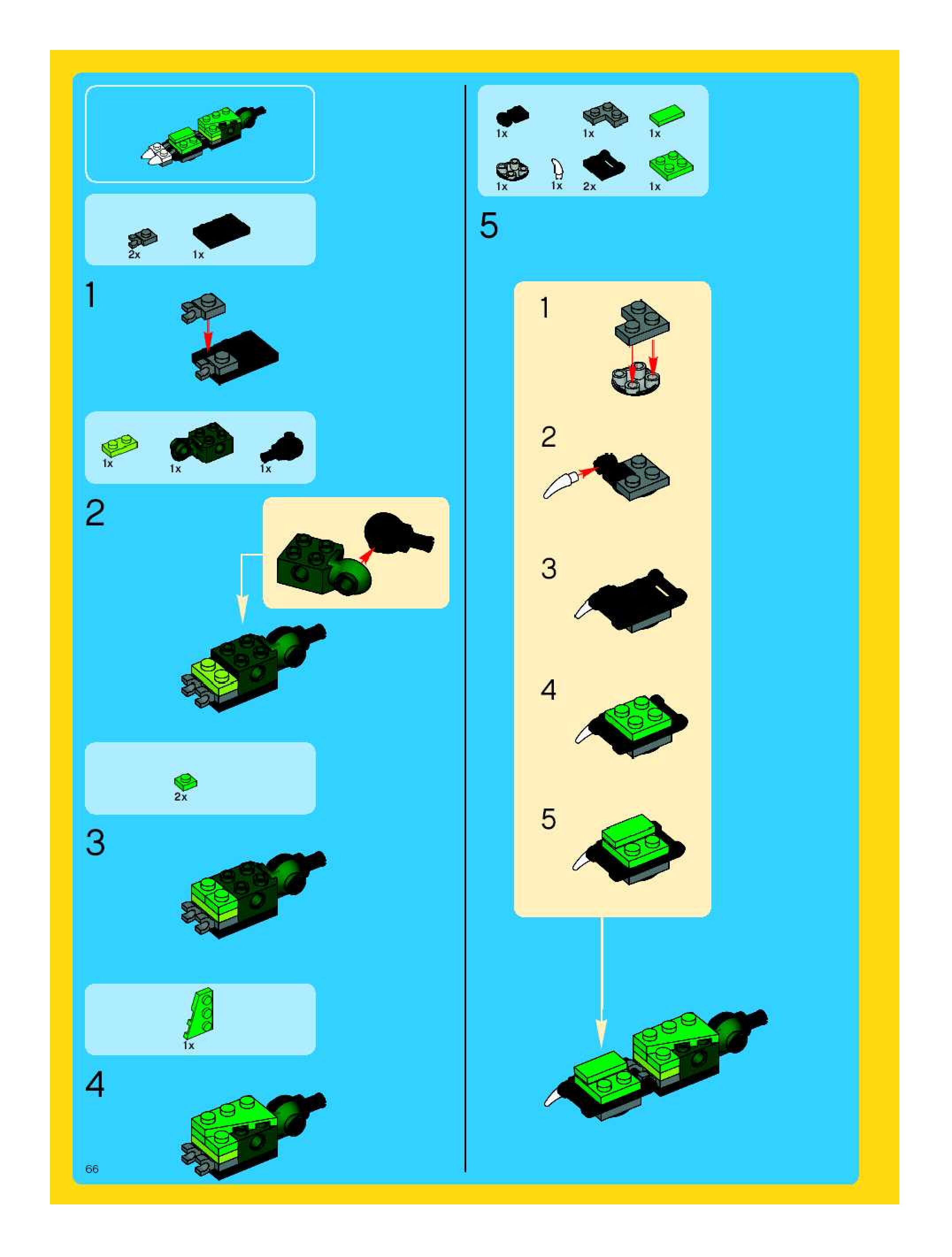 The assembly guide is prepared in a very understandable way for children and adult LEGO enthusiasts. A total of 184 picture galleries are shown, explaining the step-by-step construction stages for 2 different structures.