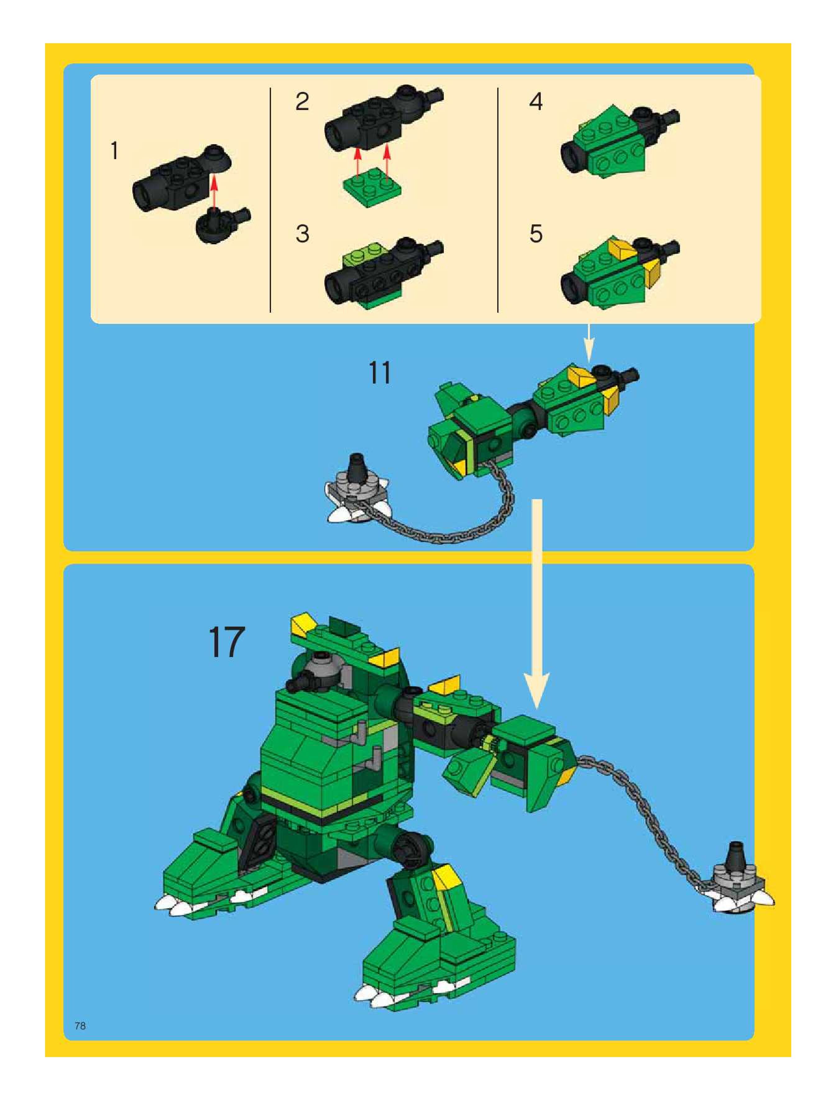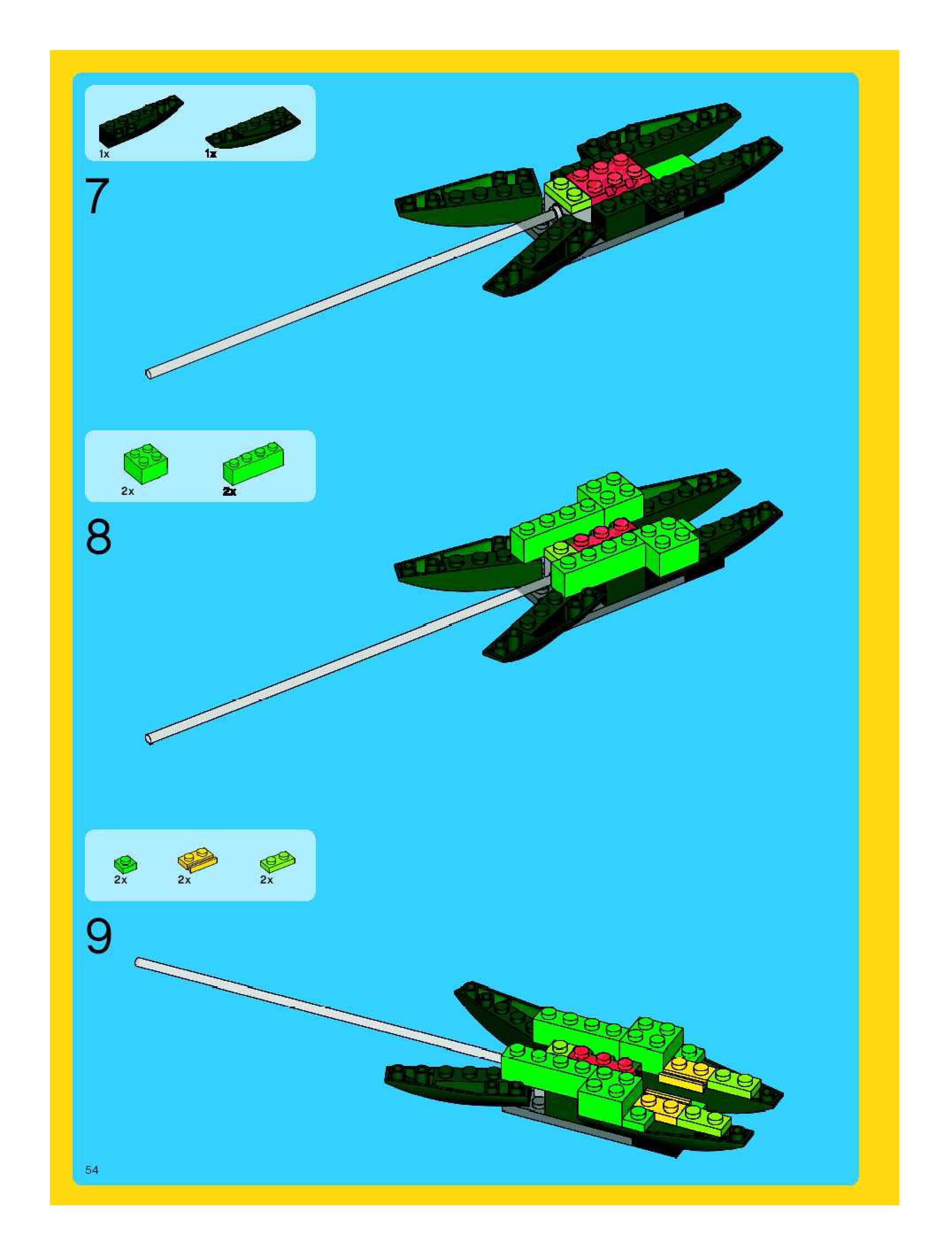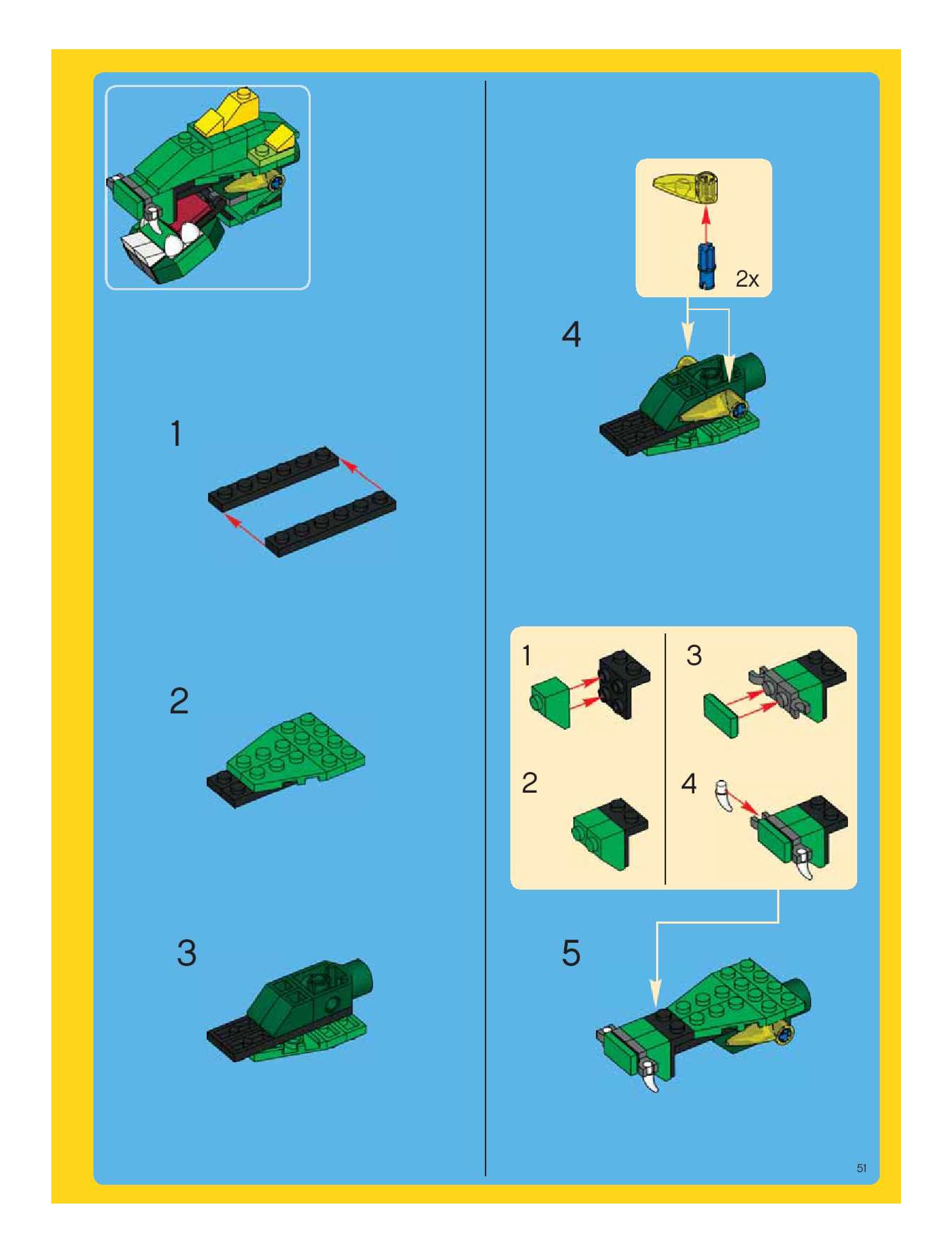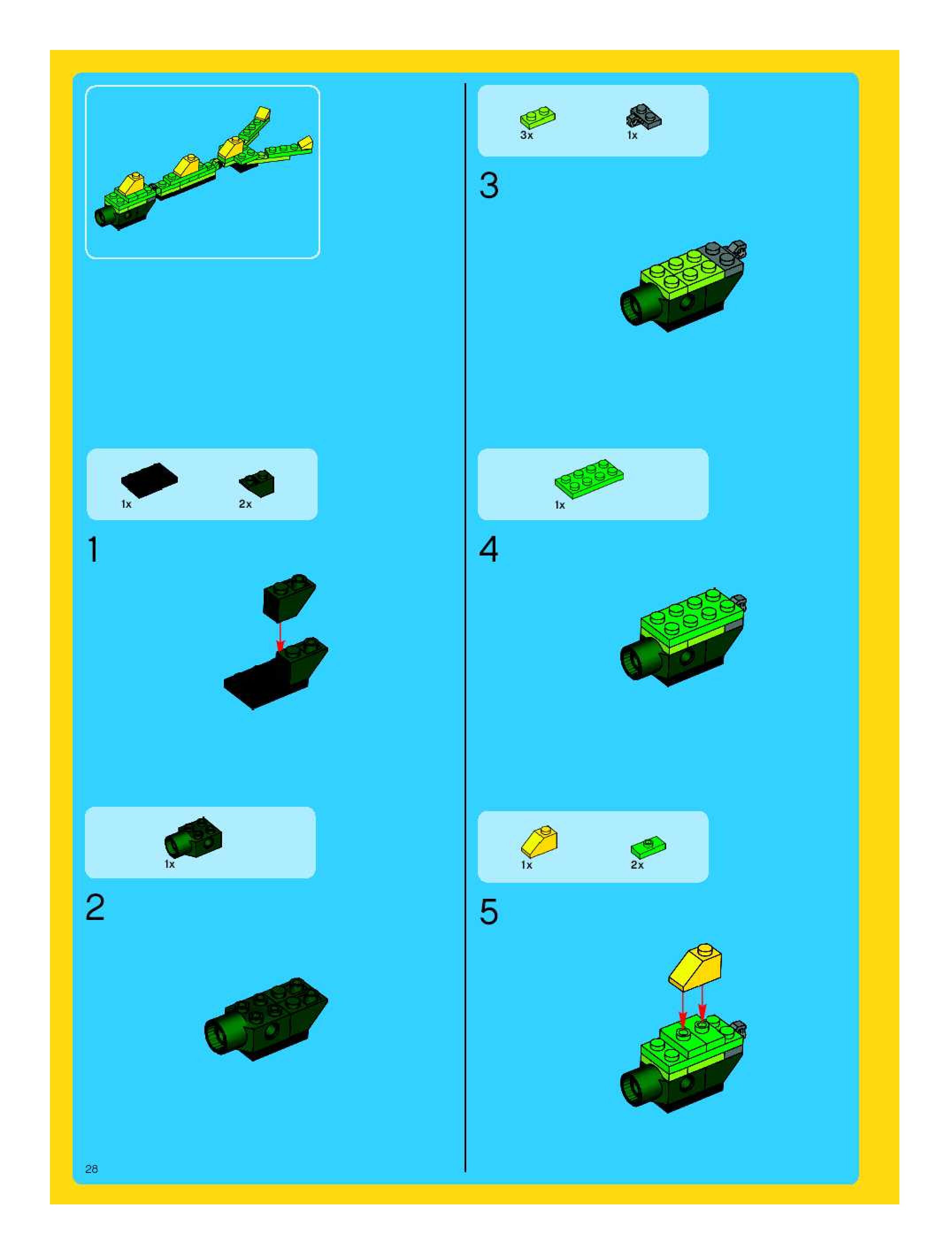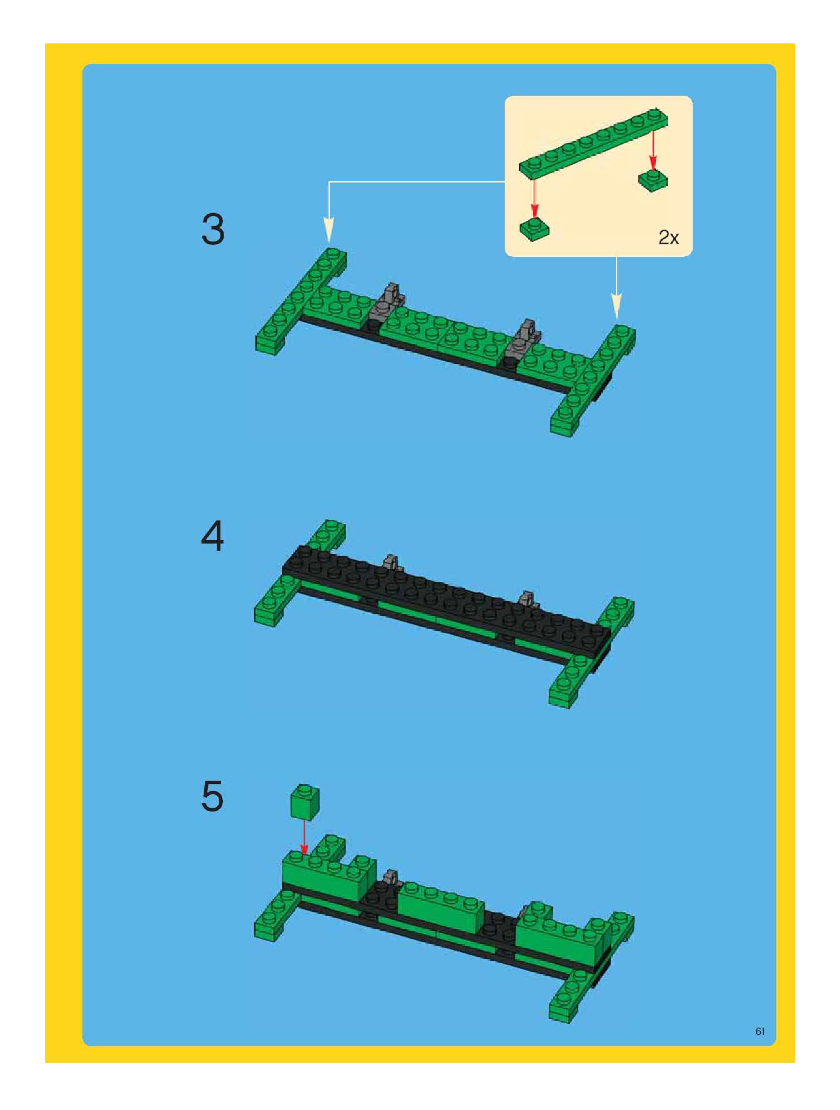 The assembly guide is prepared in a very understandable way for children and adult LEGO enthusiasts. A total of 184 picture galleries are shown, explaining the step-by-step construction stages for 2 different structures.