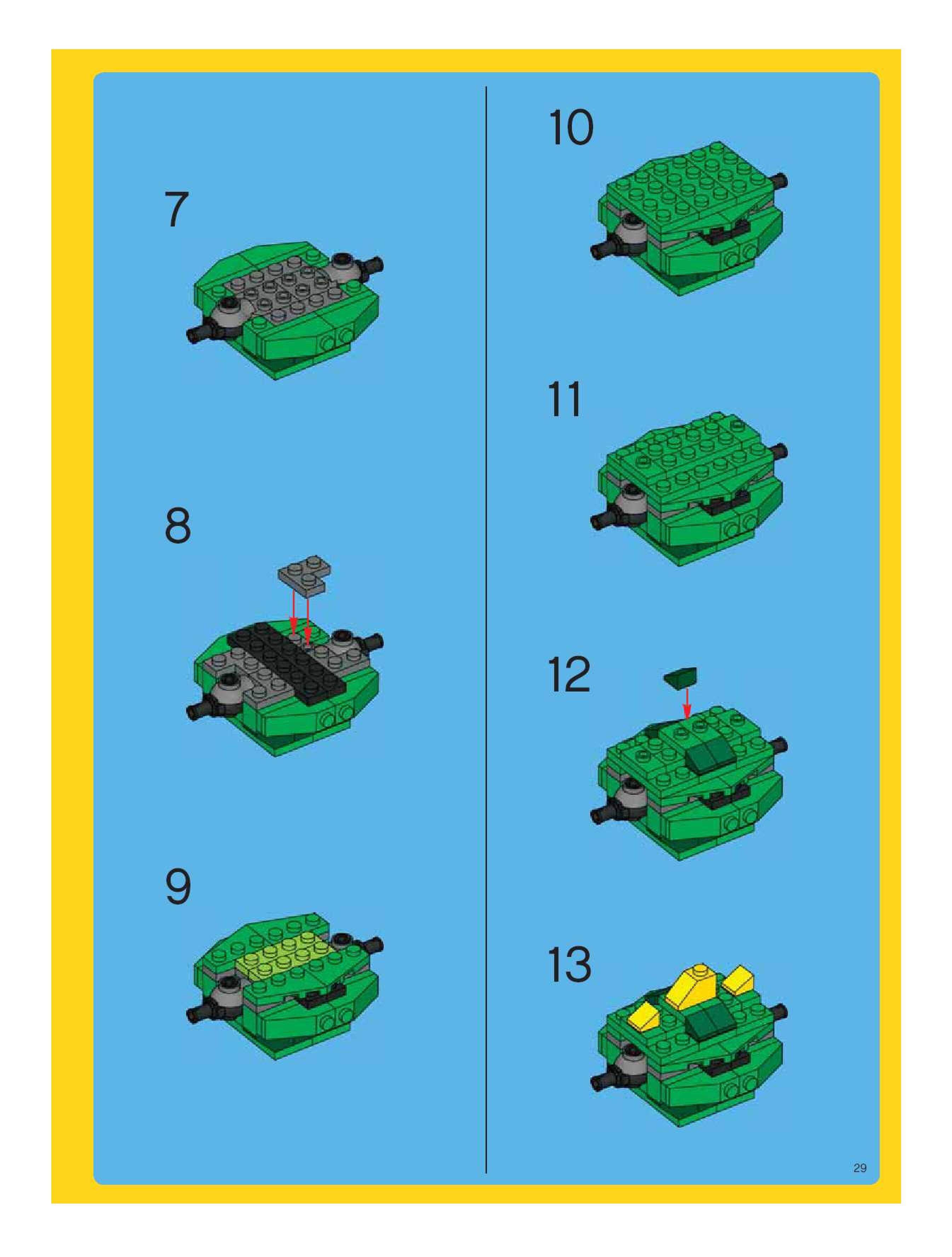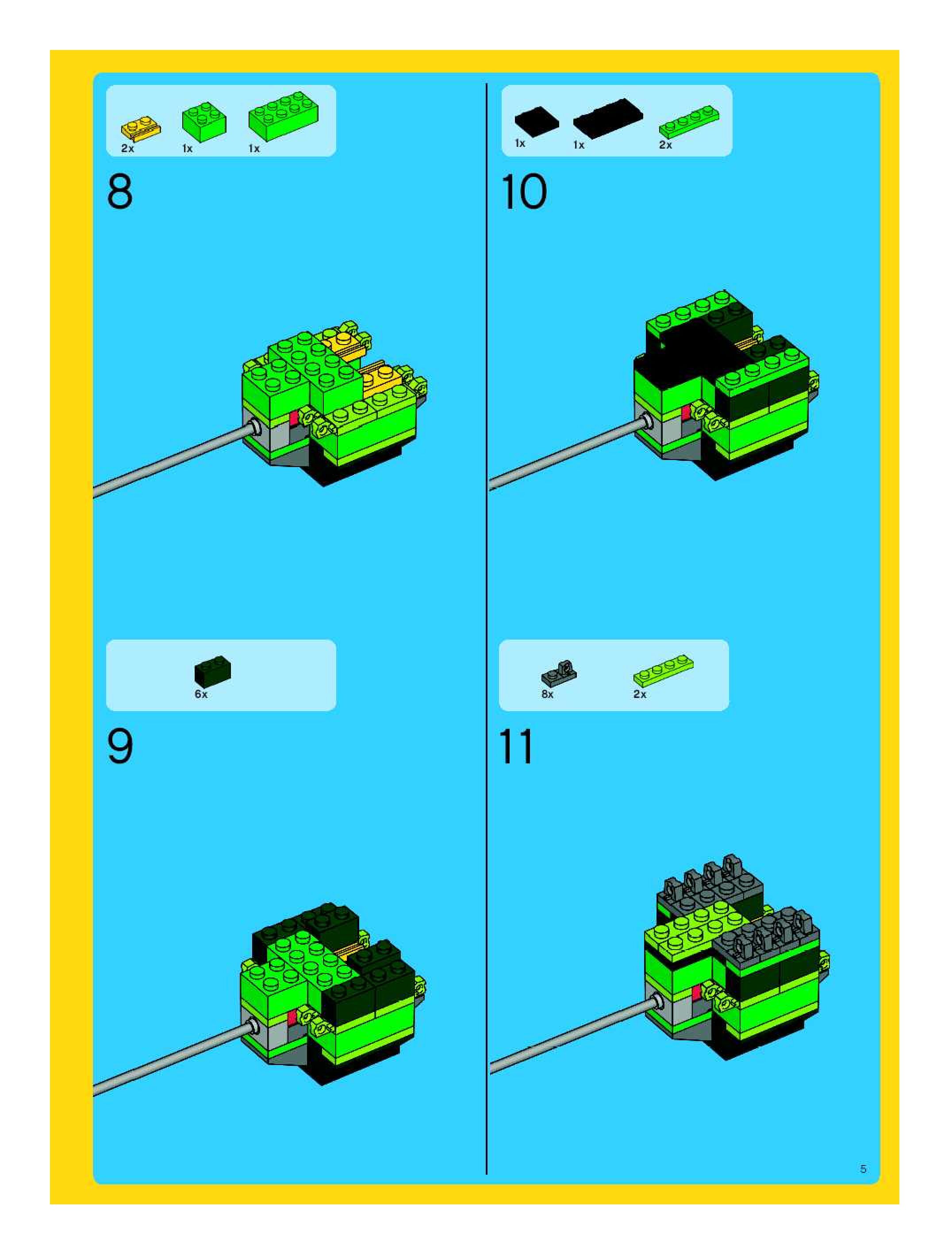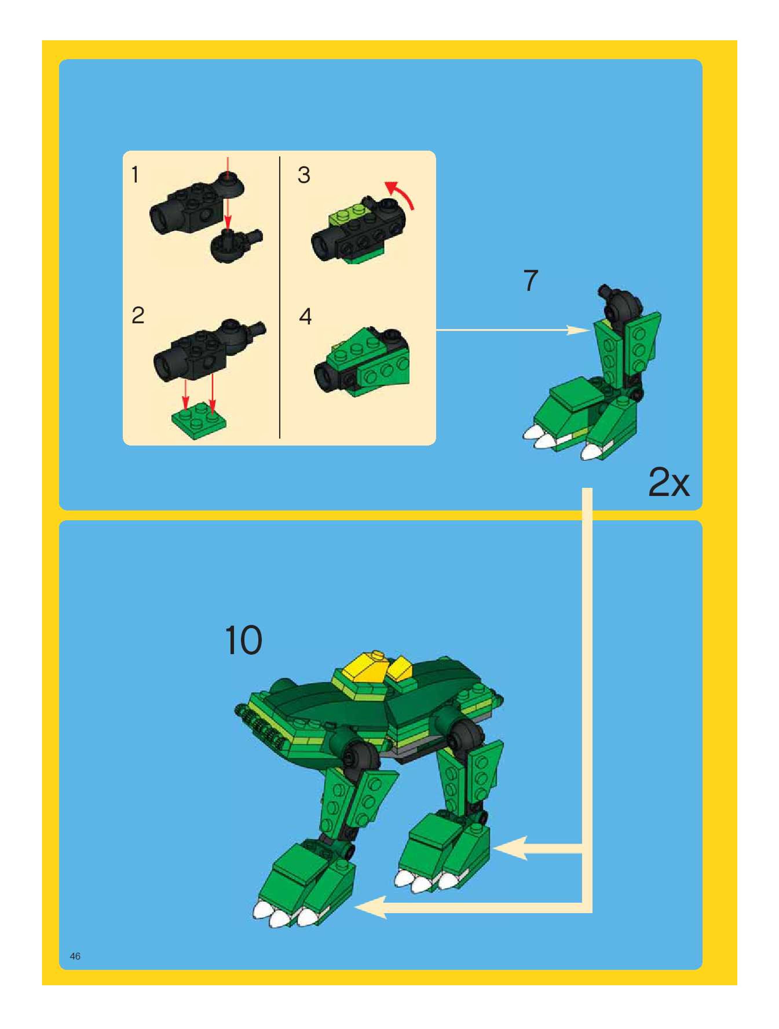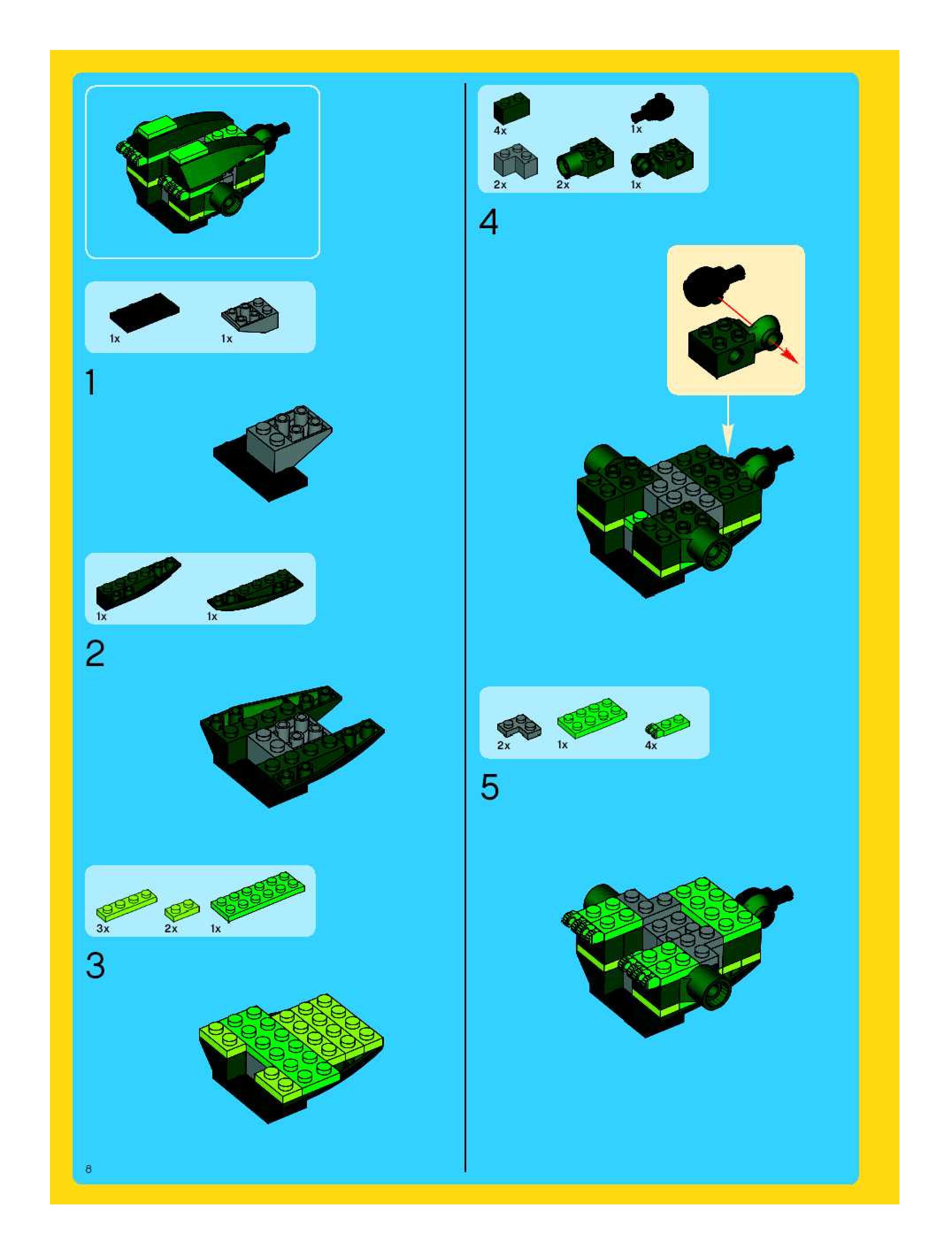 The assembly guide is prepared in a very understandable way for children and adult LEGO enthusiasts. A total of 184 picture galleries are shown, explaining the step-by-step construction stages for 2 different structures.